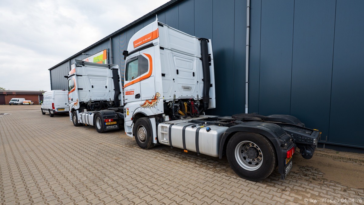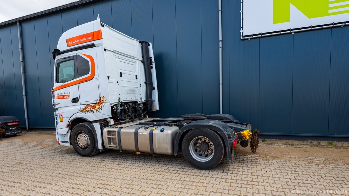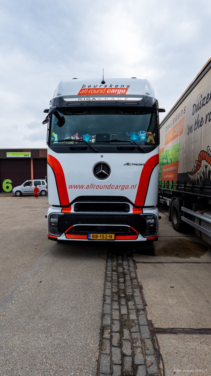 Neu im Fuhrpark sind ein weiterer Mercedes-Benz Actros L ProCabin und der zweite eActros 600. Das ist zugleich der erste in Firmenfarben.