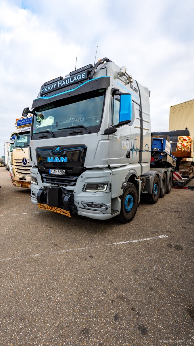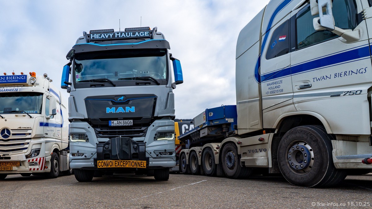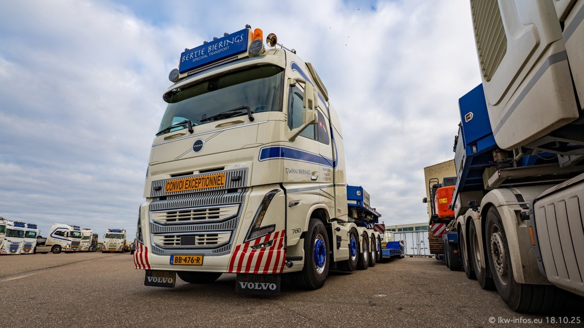 Diesmal waren fast alle LKW zuhause. Ganz neu ist ein VOLVO FH16 780 10x4, Kennzeichen BB-476-R.