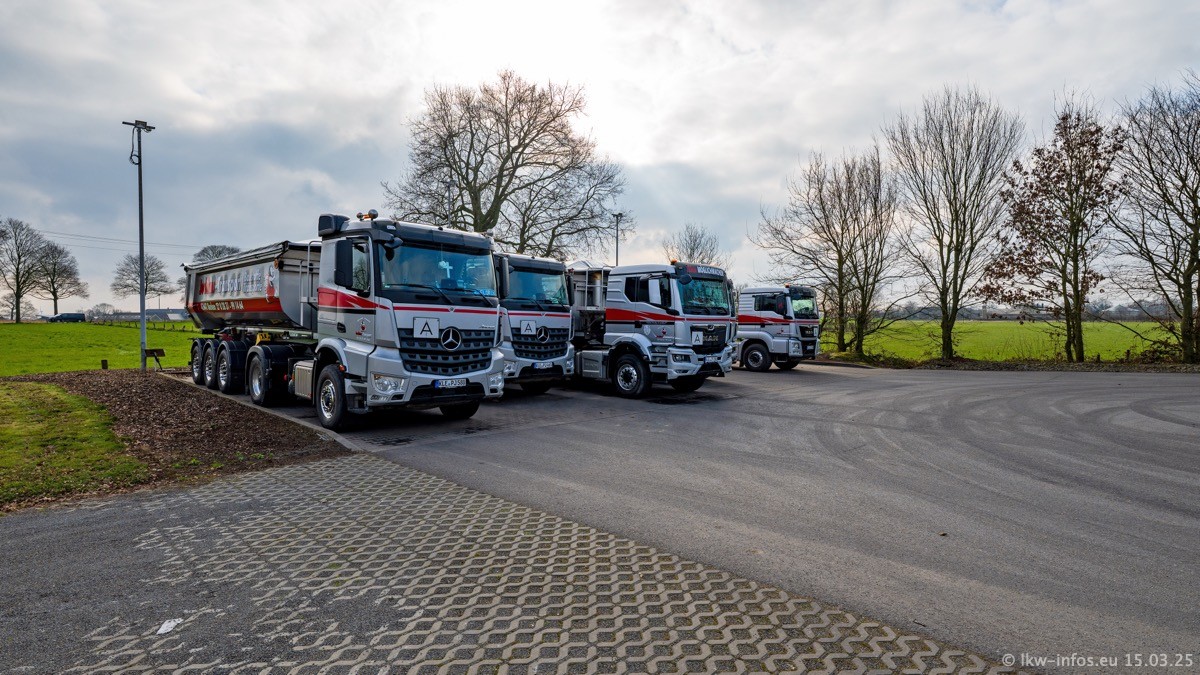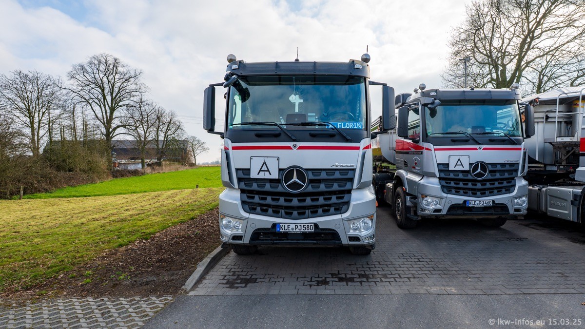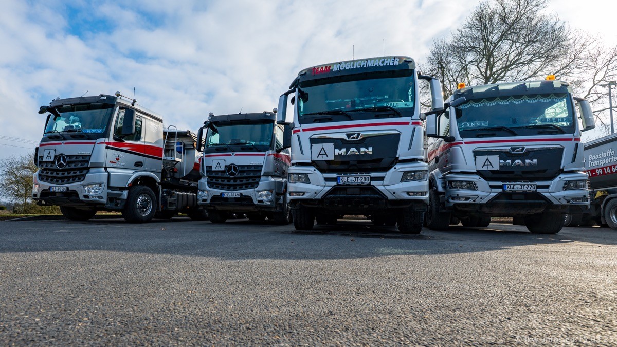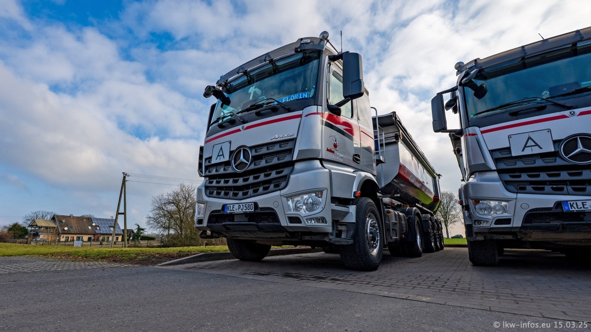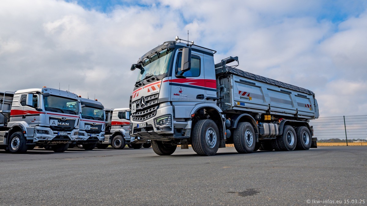 Neu sind die beiden Mercedes-Benz Arocs 8x4 Kipper, die aber schon im Sommer/Herbst 2024 gekauft wurden.