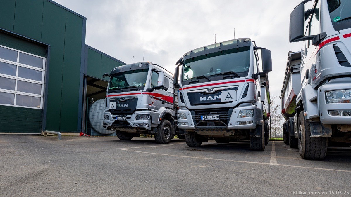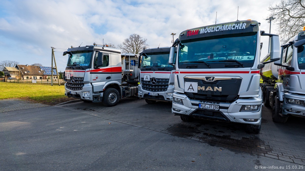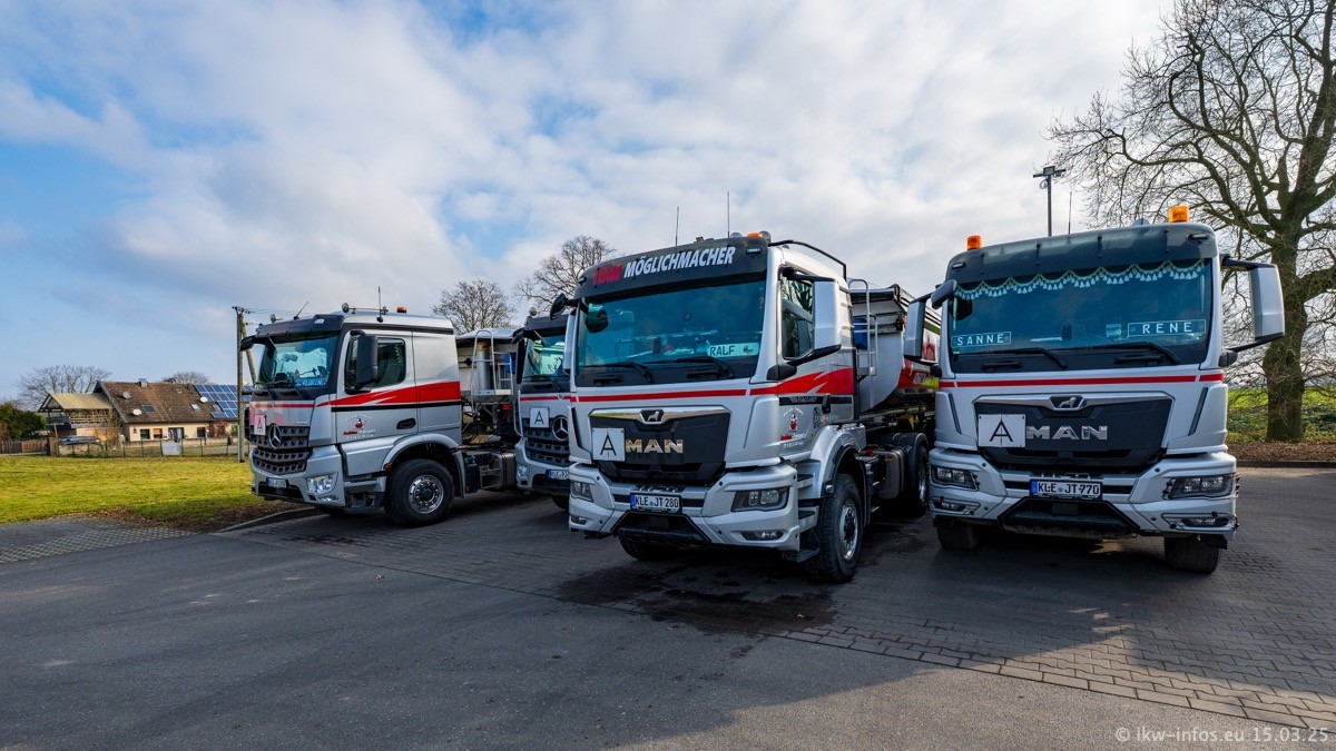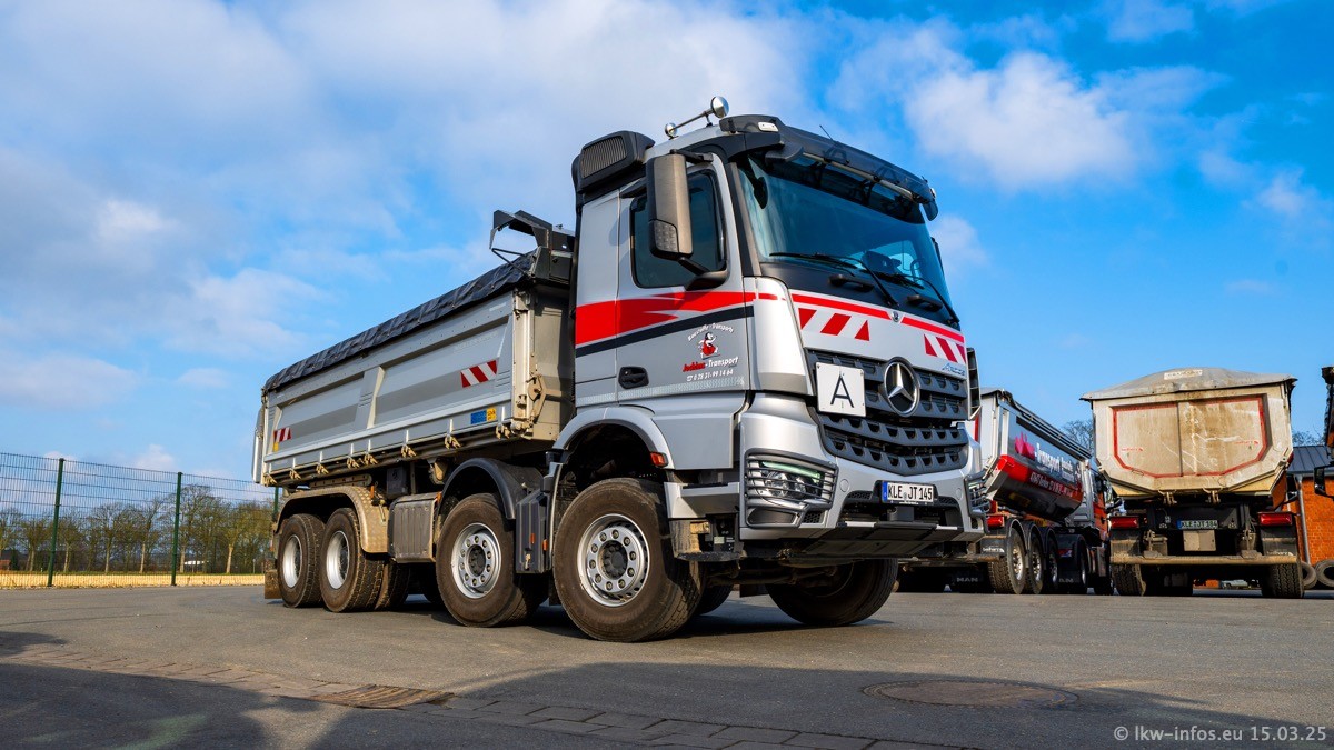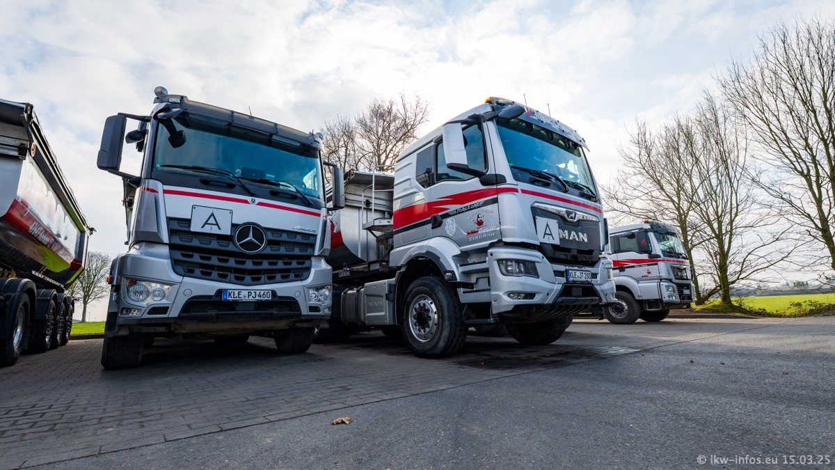 Neu sind die beiden Mercedes-Benz Arocs 8x4 Kipper, die aber schon im Sommer/Herbst 2024 gekauft wurden.
