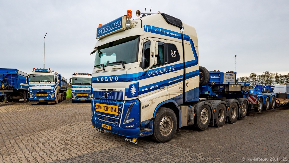 Neu im Fuhrpark sind ein VOLVO FH16 780 10x4, ein VOLVO FH Aero, ein VOLVO FH 5 sowie ein SCANIA T 144 G 530 V8, der vermutlich neu aufgebaut wurde.
