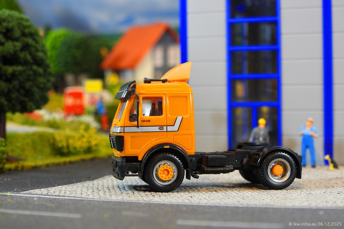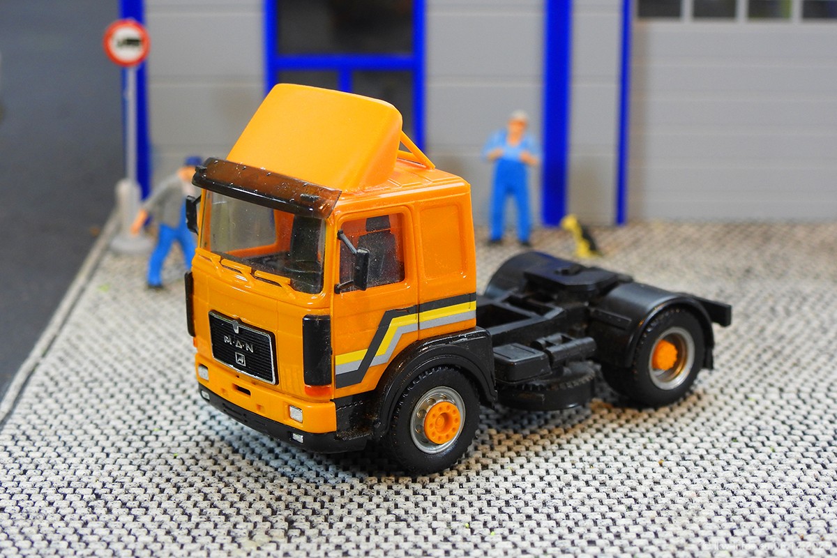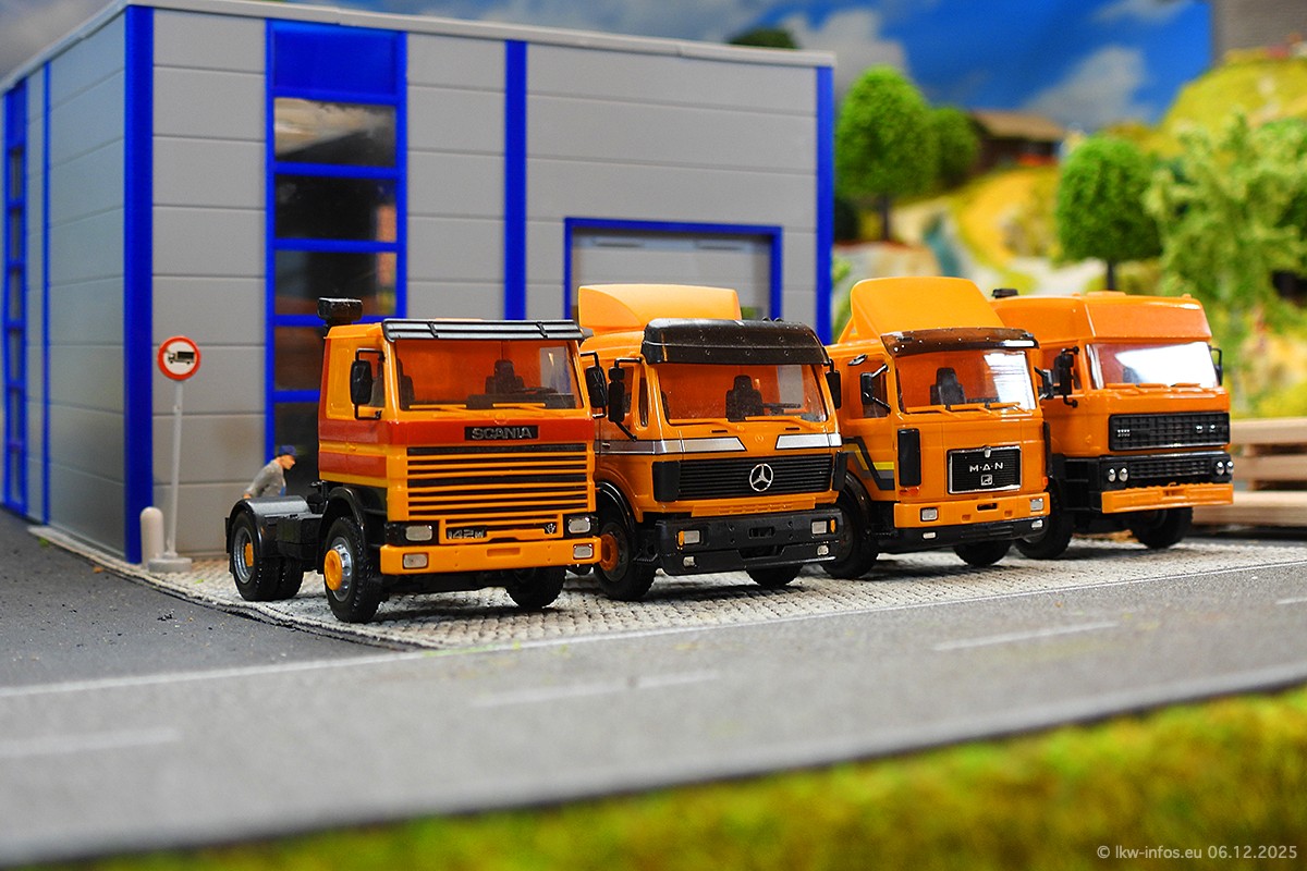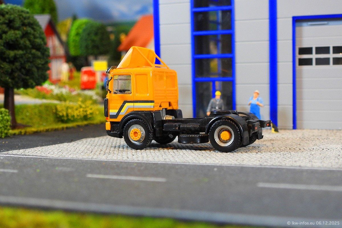 Dieses Viererset ist vermutlich aus den 1990er Jahren und das waren damals mit die ersten Modelle in meiner Sammlung. Ich habe die Modelle aufbereitet und mit Zubehör versehen. So können sich die LKW, die aus heutiger Sicht Klassiker/Oldtimer sind noch sehen lassen .