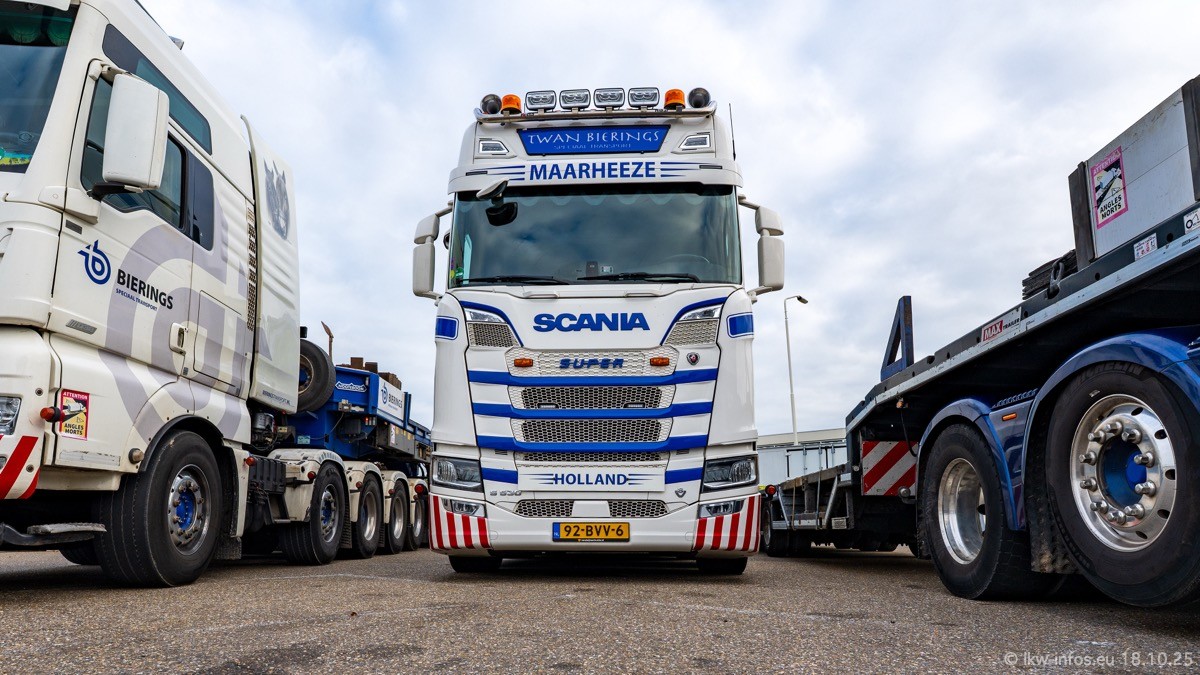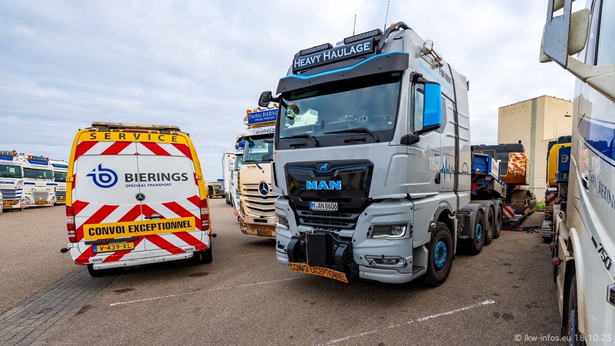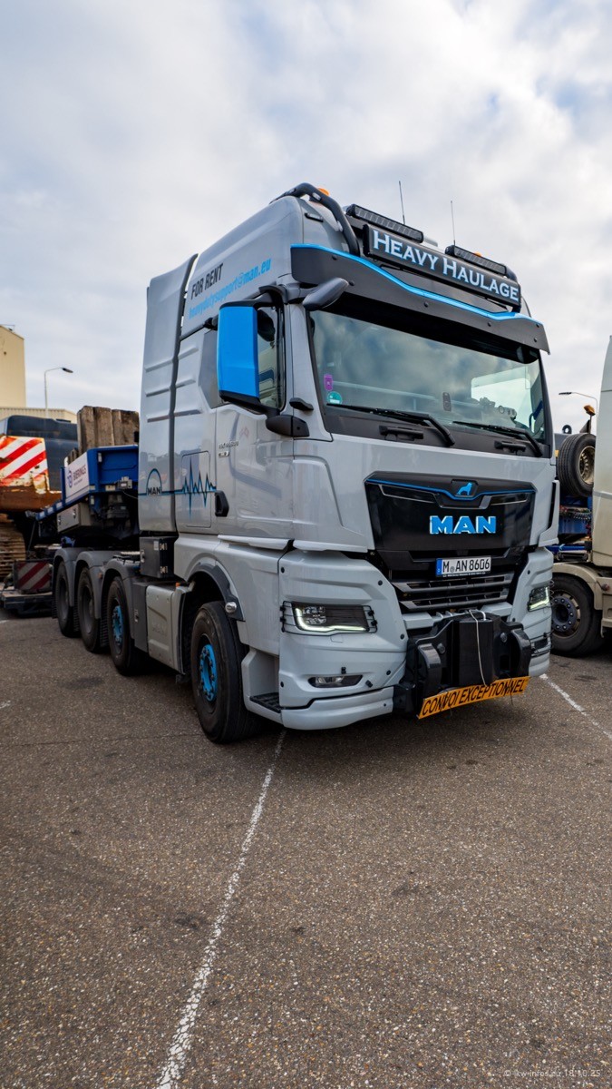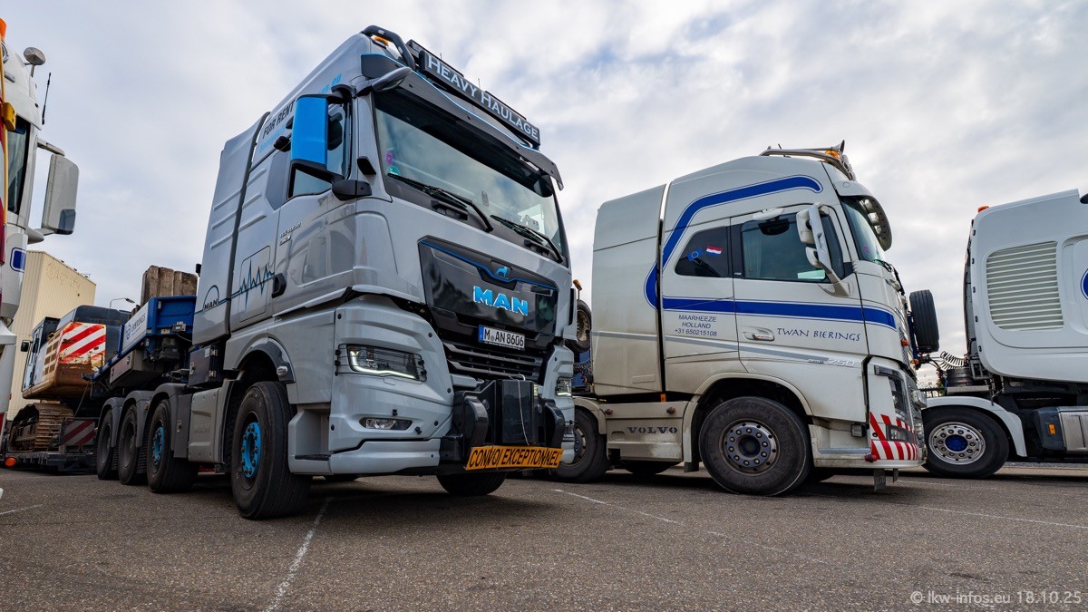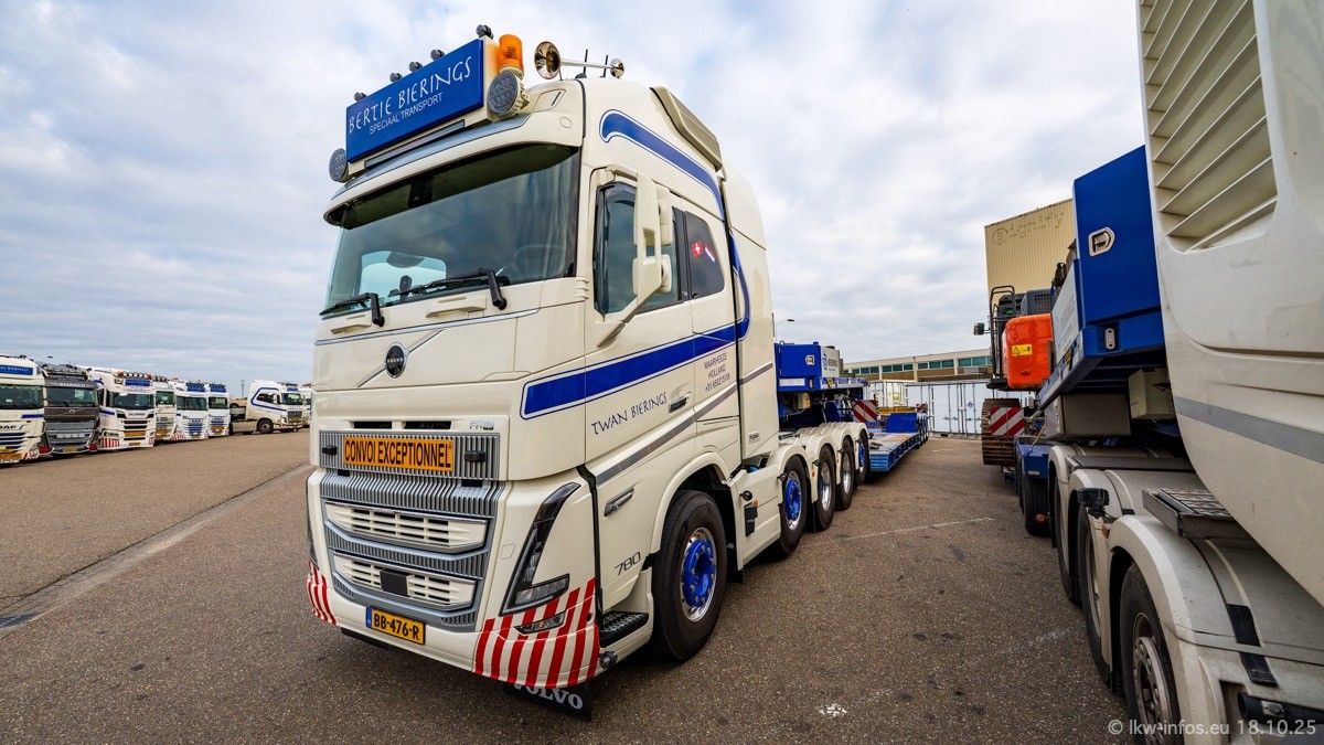 Diesmal waren fast alle LKW zuhause. Ganz neu ist ein VOLVO FH16 780 10x4, Kennzeichen BB-476-R.