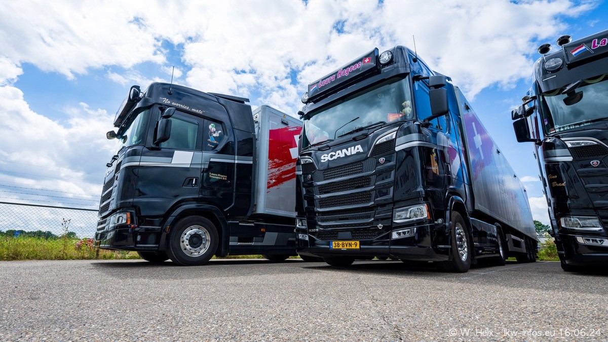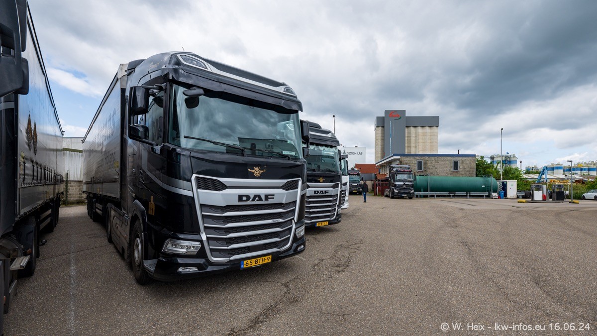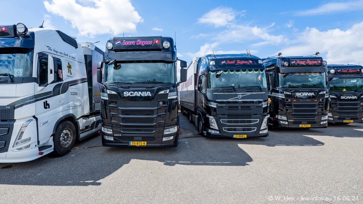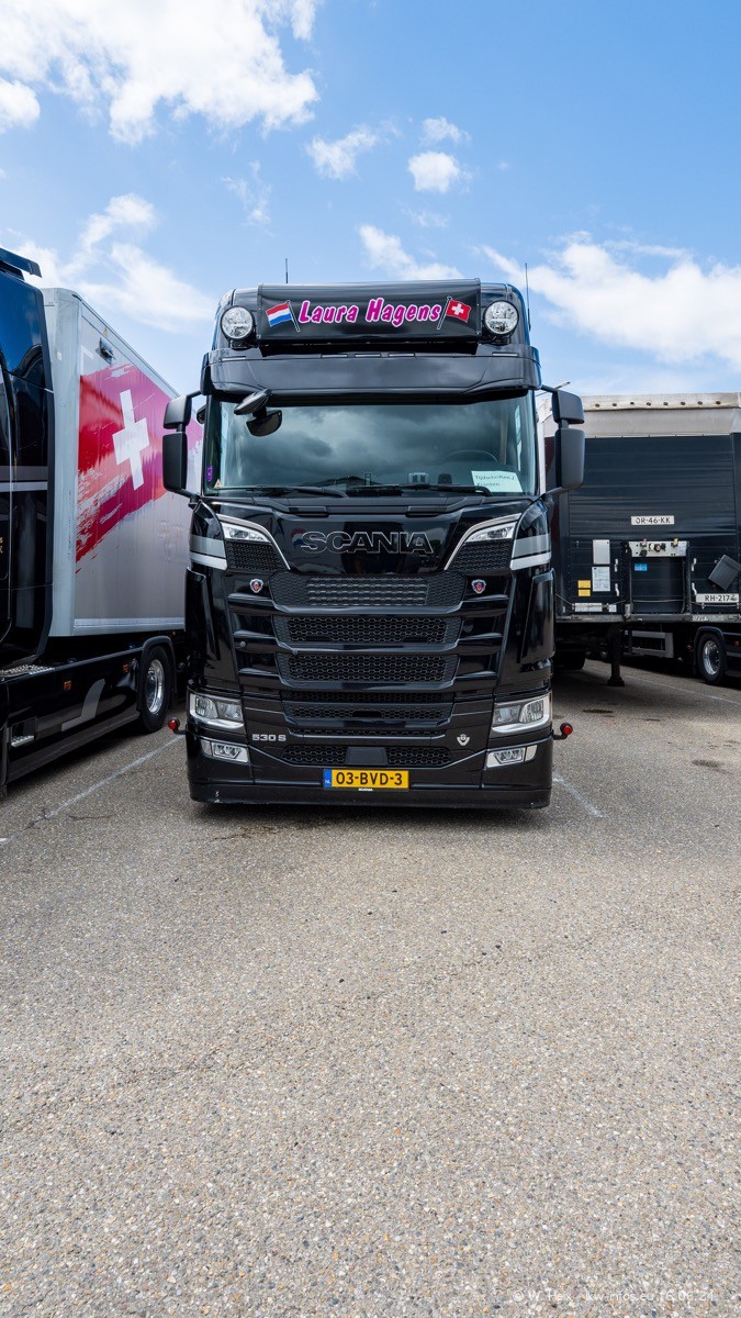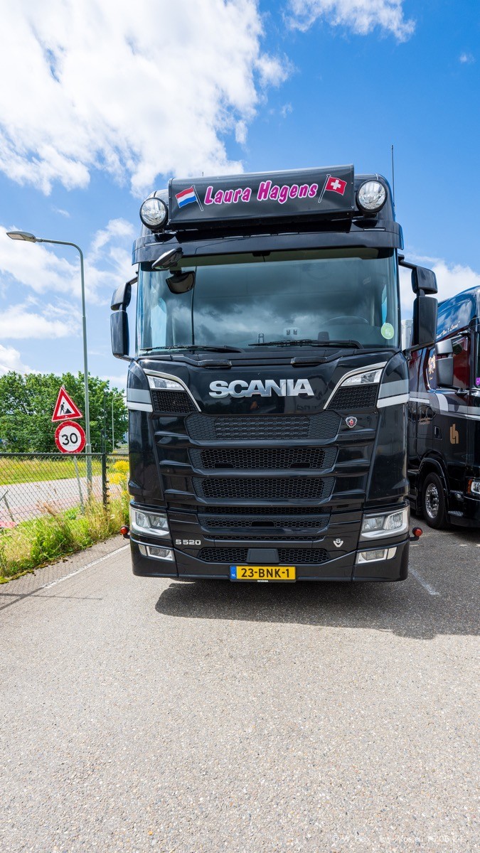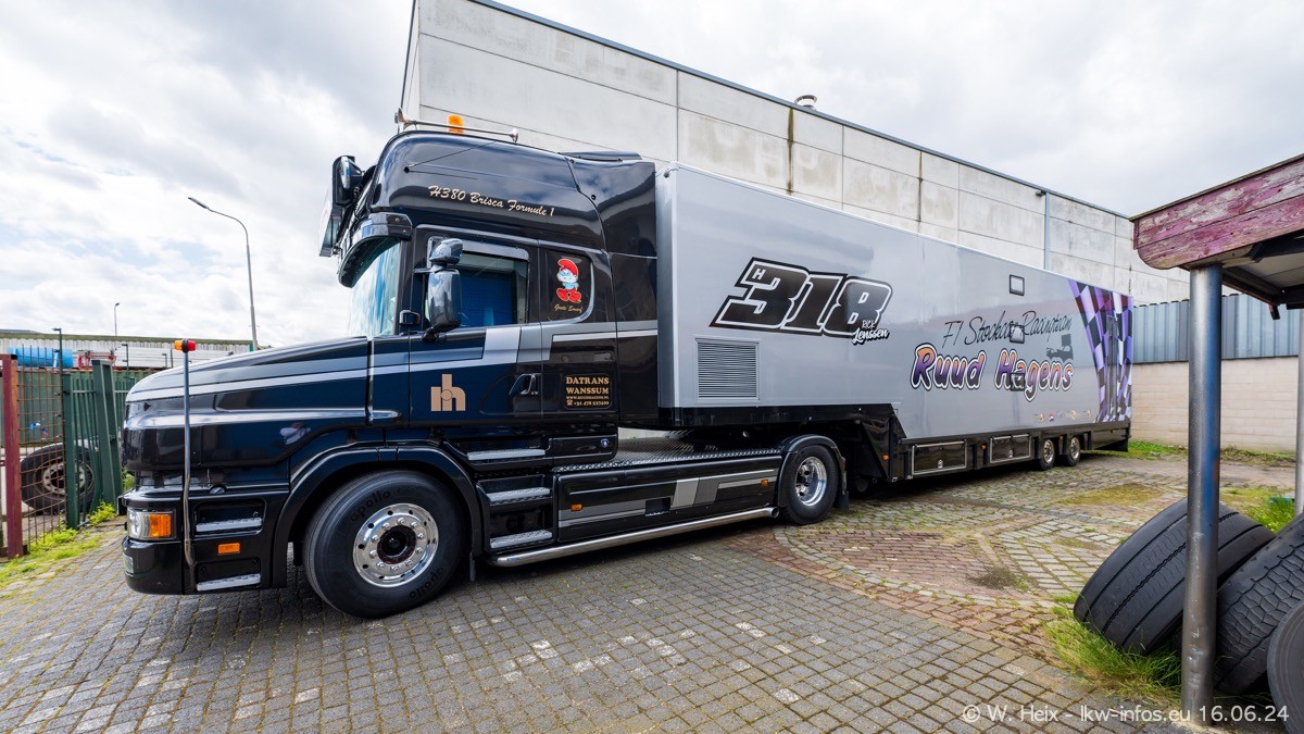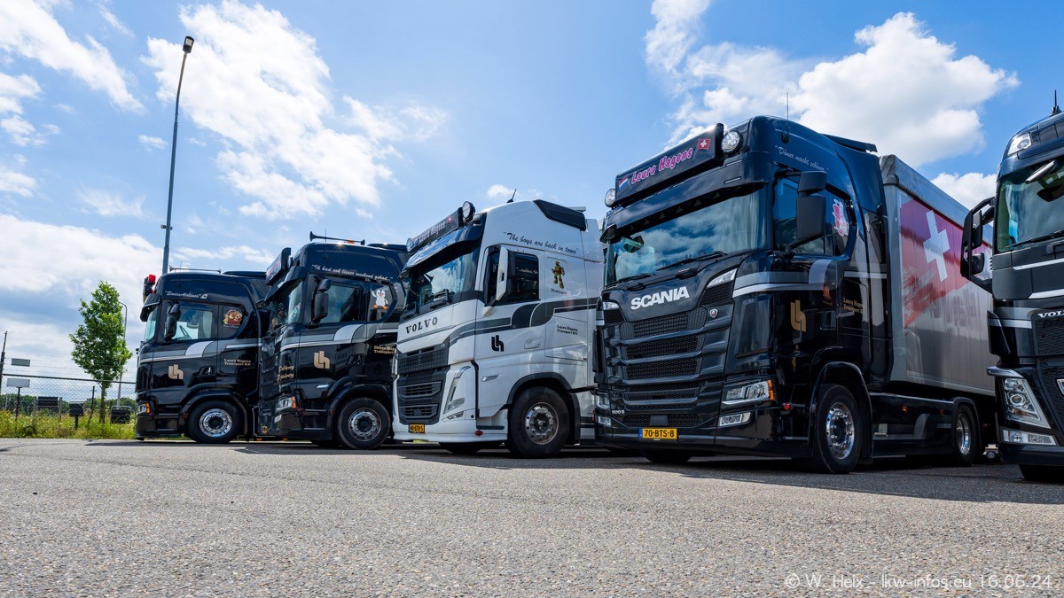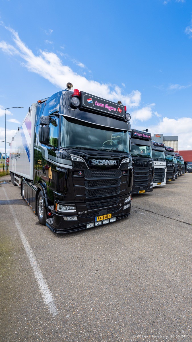 Ende Januar 2024 hat die Firma Gijs Boss die Fahrzeuge von Ruud Hagens Datrans B.V. übernommen. Das schwarze Design bleibt erhalten, den ersten neuen DAF XG+ mit neuem Aufleger, beschriftet mit "Datrans" gibt es auf den ersten Bildern in dieser Galerie zu sehen. Dazu kommen aktuell zwei weiße DAF XG+, die in Deutschland zugelassen sind (Moers MO, Kreis Wesel). Die Fahrzeuge in den bekannten Farben von Gijs Boss gibt es weiterhin. Diese stehen jedoch weiterhin verteilt bei Kunden oder Fahrern zuhause. Die zweite "neue" Firma ist jetzt Laura Hagens, Das ist bekanntlich die Tochter von Ruud Hagens. Unter dem Namen laufen alle SCANIA NextGen mit Schubboden/Walking-Floor Aufliegern. Die beiden M-Trex SCANIA gehören dazu. Alle Planenauflieger gehörten bisher Ruud Hagens Datrans B.V. Dazu kommen noch die IVECO S-Way, von Helene-Speed (Deutschland und Rumänien). Da sicherlich alle Fahrzeuge über länger Zeit noch "bunt gemischt" zu sehen sein werden, habe ich erstmal alles unter dem Namen Boss-Datrans & Laura Hagens zusammengefasst. Alle LKW werden auch weiterhin auf dem bekannten Gelände in Wanssum stehen.
