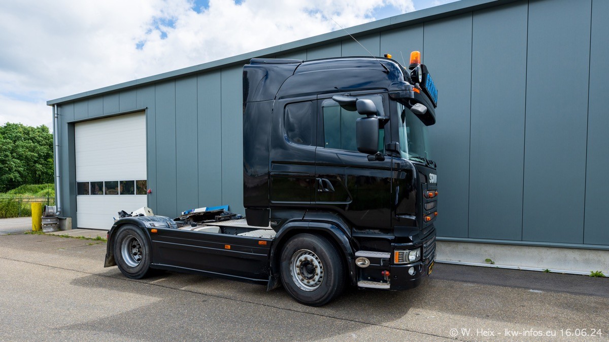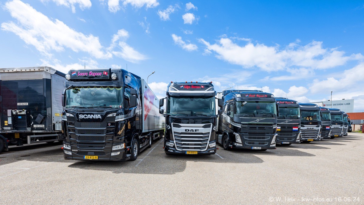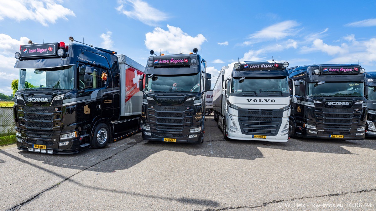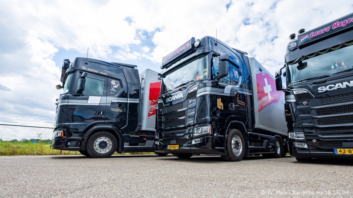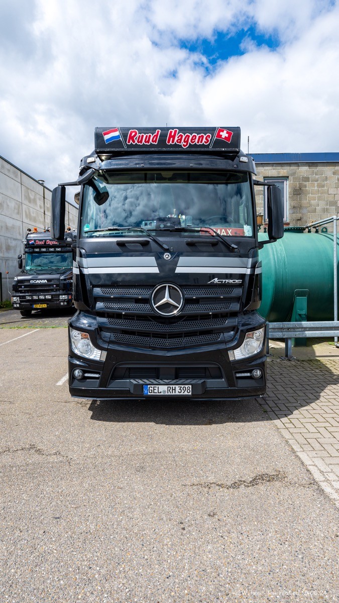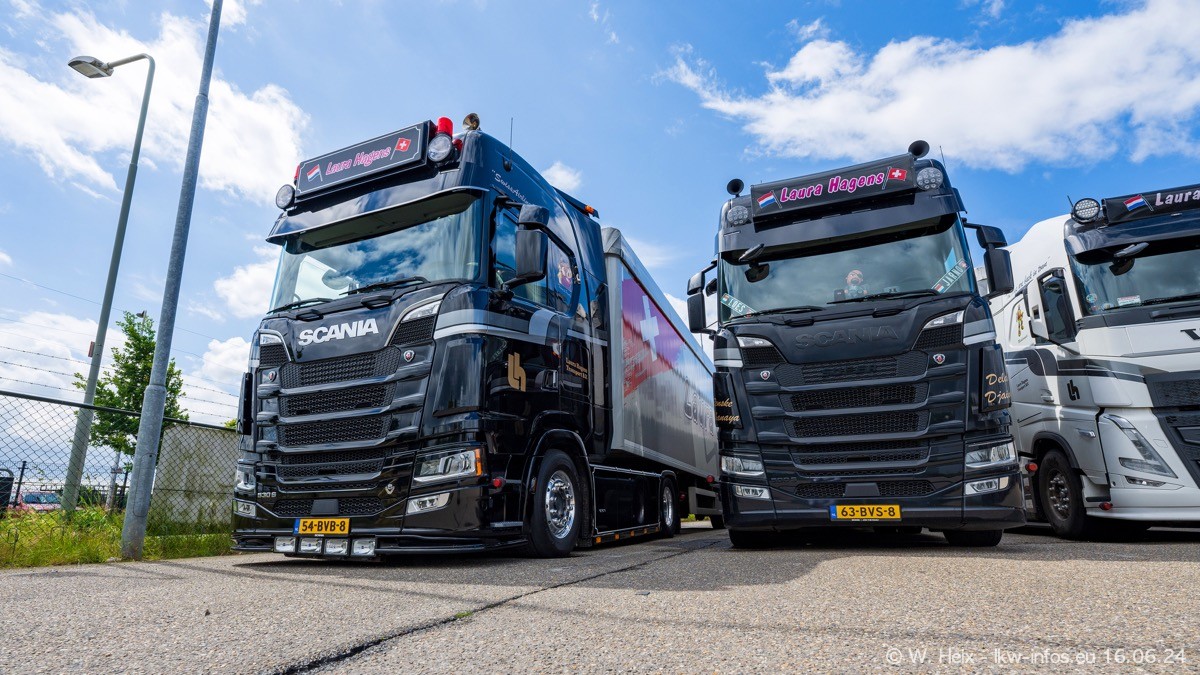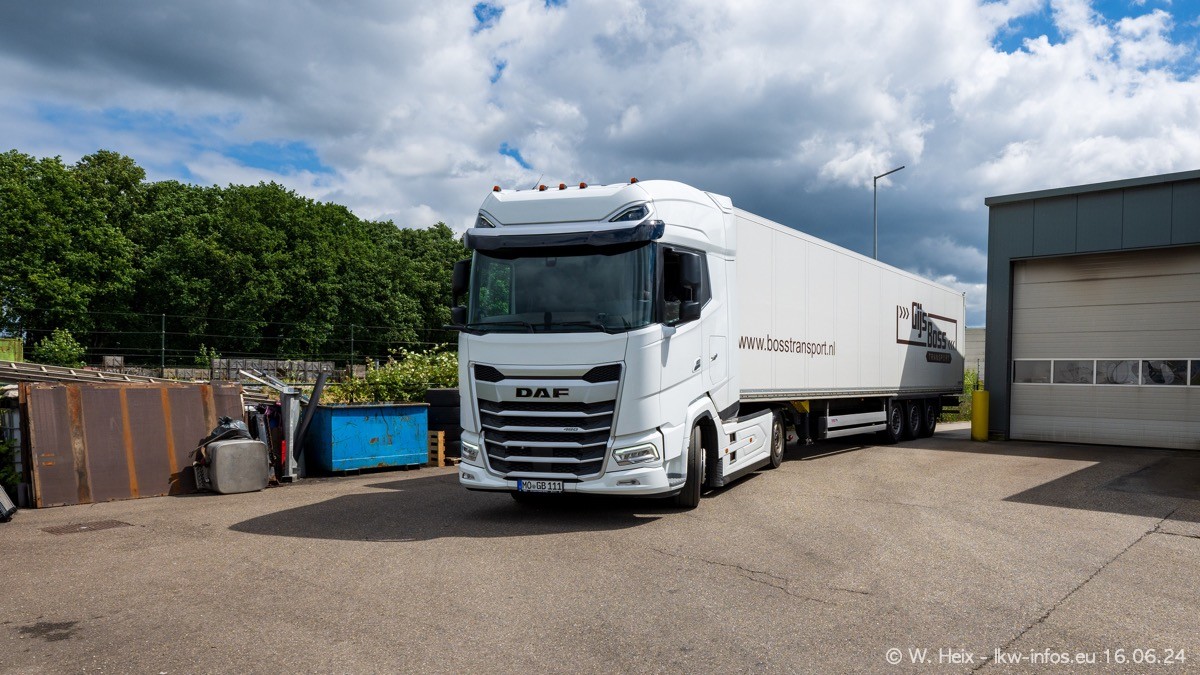 Ende Januar 2024 hat die Firma Gijs Boss die Fahrzeuge von Ruud Hagens Datrans B.V. übernommen. Das schwarze Design bleibt erhalten, den ersten neuen DAF XG+ mit neuem Aufleger, beschriftet mit "Datrans" gibt es auf den ersten Bildern in dieser Galerie zu sehen. Dazu kommen aktuell zwei weiße DAF XG+, die in Deutschland zugelassen sind (Moers MO, Kreis Wesel). Die Fahrzeuge in den bekannten Farben von Gijs Boss gibt es weiterhin. Diese stehen jedoch weiterhin verteilt bei Kunden oder Fahrern zuhause. Die zweite "neue" Firma ist jetzt Laura Hagens, Das ist bekanntlich die Tochter von Ruud Hagens. Unter dem Namen laufen alle SCANIA NextGen mit Schubboden/Walking-Floor Aufliegern. Die beiden M-Trex SCANIA gehören dazu. Alle Planenauflieger gehörten bisher Ruud Hagens Datrans B.V. Dazu kommen noch die IVECO S-Way, von Helene-Speed (Deutschland und Rumänien). Da sicherlich alle Fahrzeuge über länger Zeit noch "bunt gemischt" zu sehen sein werden, habe ich erstmal alles unter dem Namen Boss-Datrans & Laura Hagens zusammengefasst. Alle LKW werden auch weiterhin auf dem bekannten Gelände in Wanssum stehen.