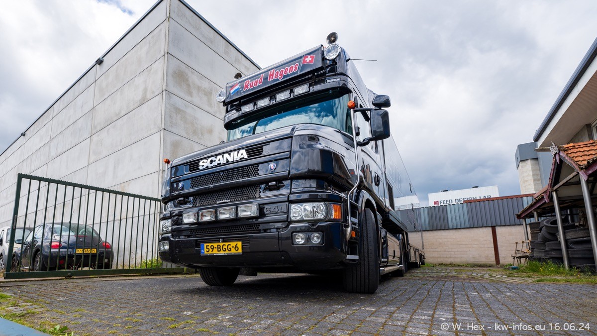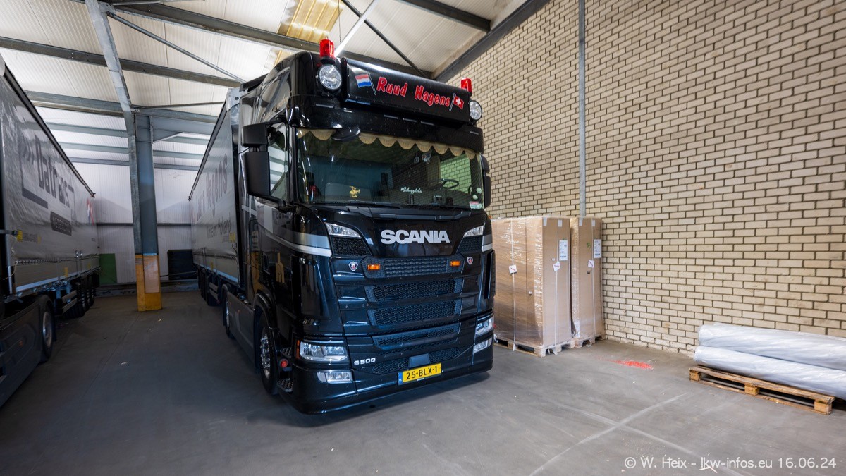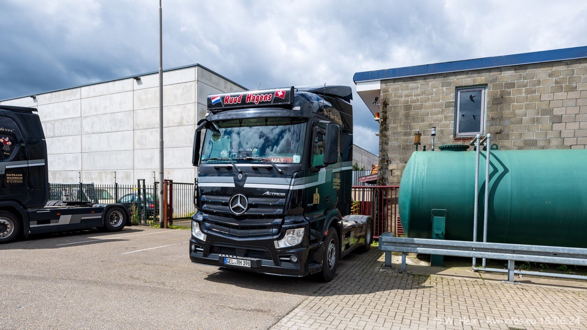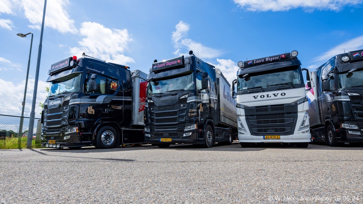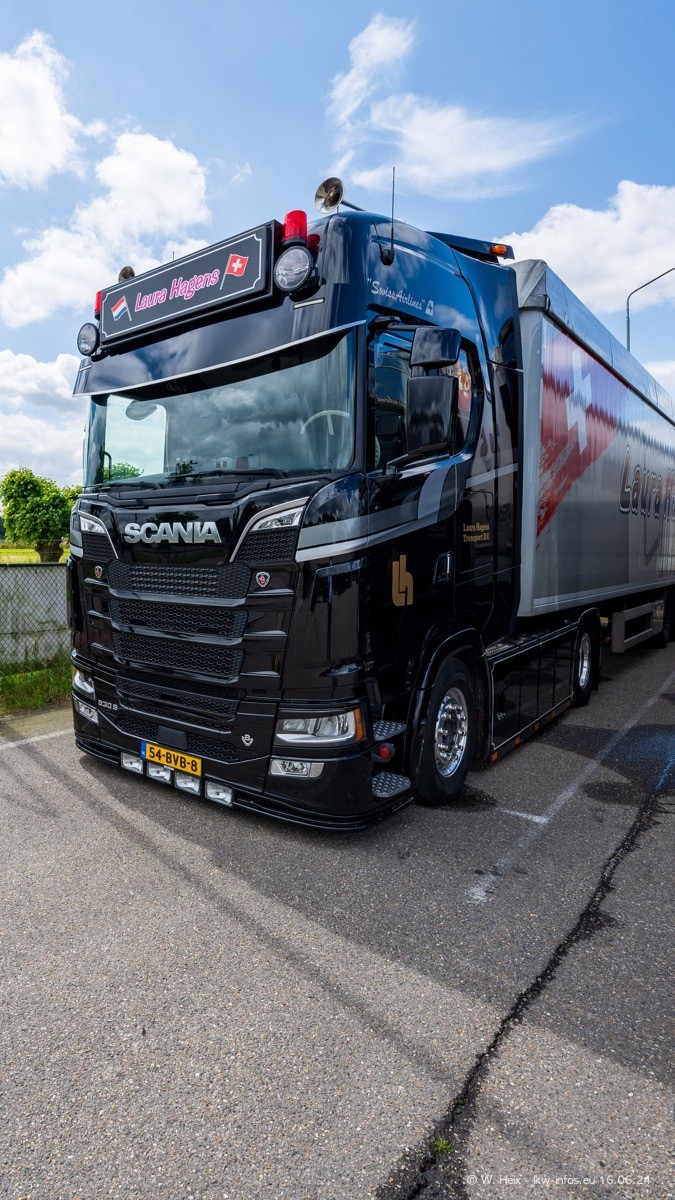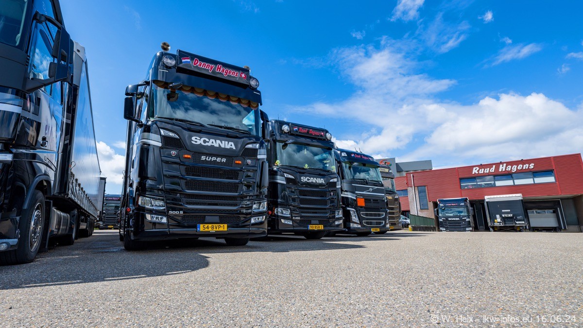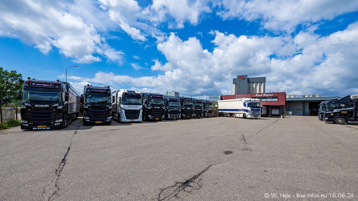 Ende Januar 2024 hat die Firma Gijs Boss die Fahrzeuge von Ruud Hagens Datrans B.V. übernommen. Das schwarze Design bleibt erhalten, den ersten neuen DAF XG+ mit neuem Aufleger, beschriftet mit "Datrans" gibt es auf den ersten Bildern in dieser Galerie zu sehen. Dazu kommen aktuell zwei weiße DAF XG+, die in Deutschland zugelassen sind (Moers MO, Kreis Wesel). Die Fahrzeuge in den bekannten Farben von Gijs Boss gibt es weiterhin. Diese stehen jedoch weiterhin verteilt bei Kunden oder Fahrern zuhause. Die zweite "neue" Firma ist jetzt Laura Hagens, Das ist bekanntlich die Tochter von Ruud Hagens. Unter dem Namen laufen alle SCANIA NextGen mit Schubboden/Walking-Floor Aufliegern. Die beiden M-Trex SCANIA gehören dazu. Alle Planenauflieger gehörten bisher Ruud Hagens Datrans B.V. Dazu kommen noch die IVECO S-Way, von Helene-Speed (Deutschland und Rumänien). Da sicherlich alle Fahrzeuge über länger Zeit noch "bunt gemischt" zu sehen sein werden, habe ich erstmal alles unter dem Namen Boss-Datrans & Laura Hagens zusammengefasst. Alle LKW werden auch weiterhin auf dem bekannten Gelände in Wanssum stehen.