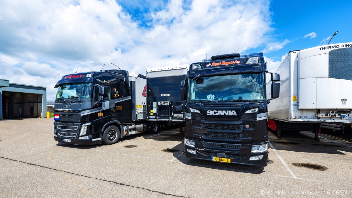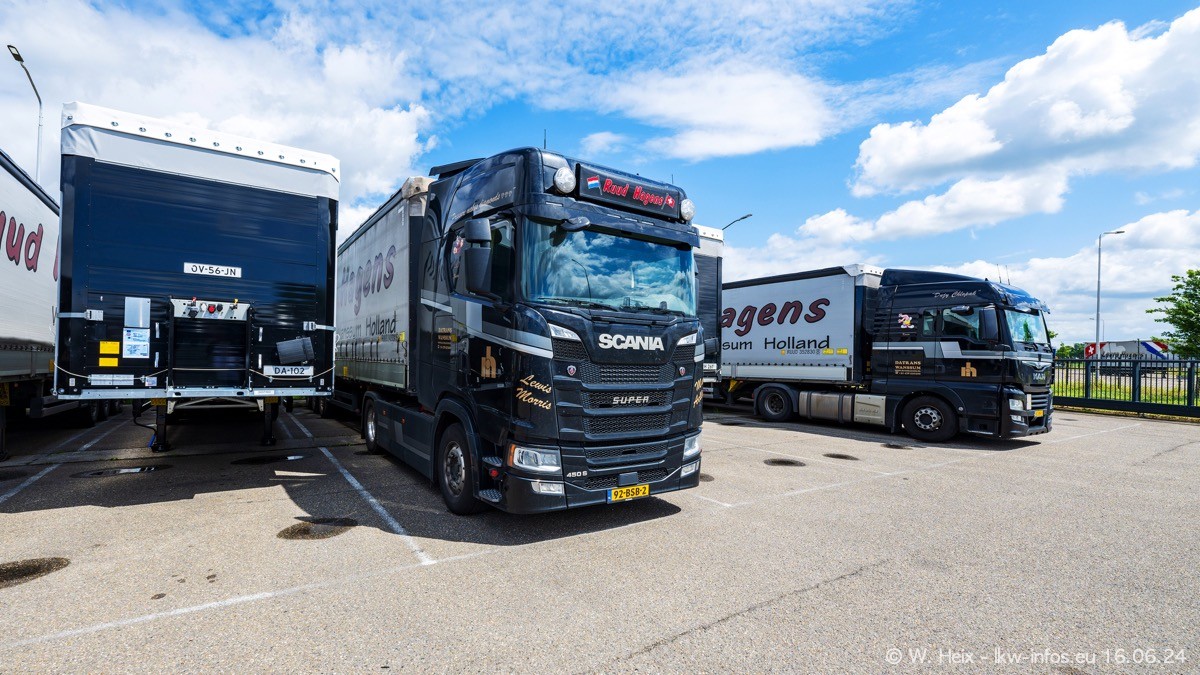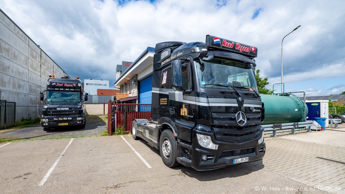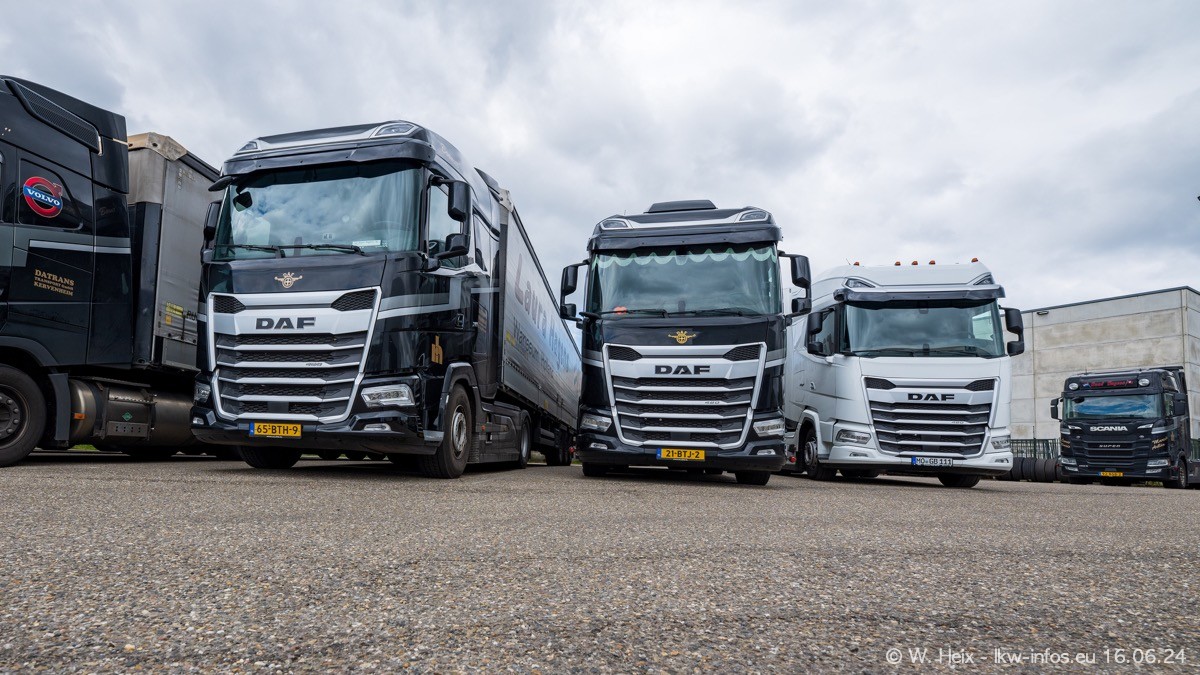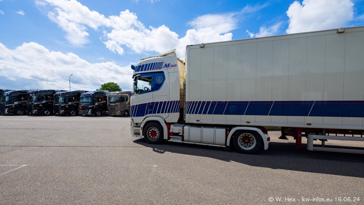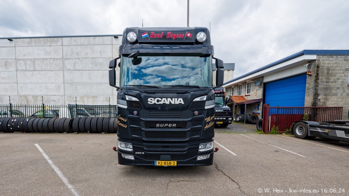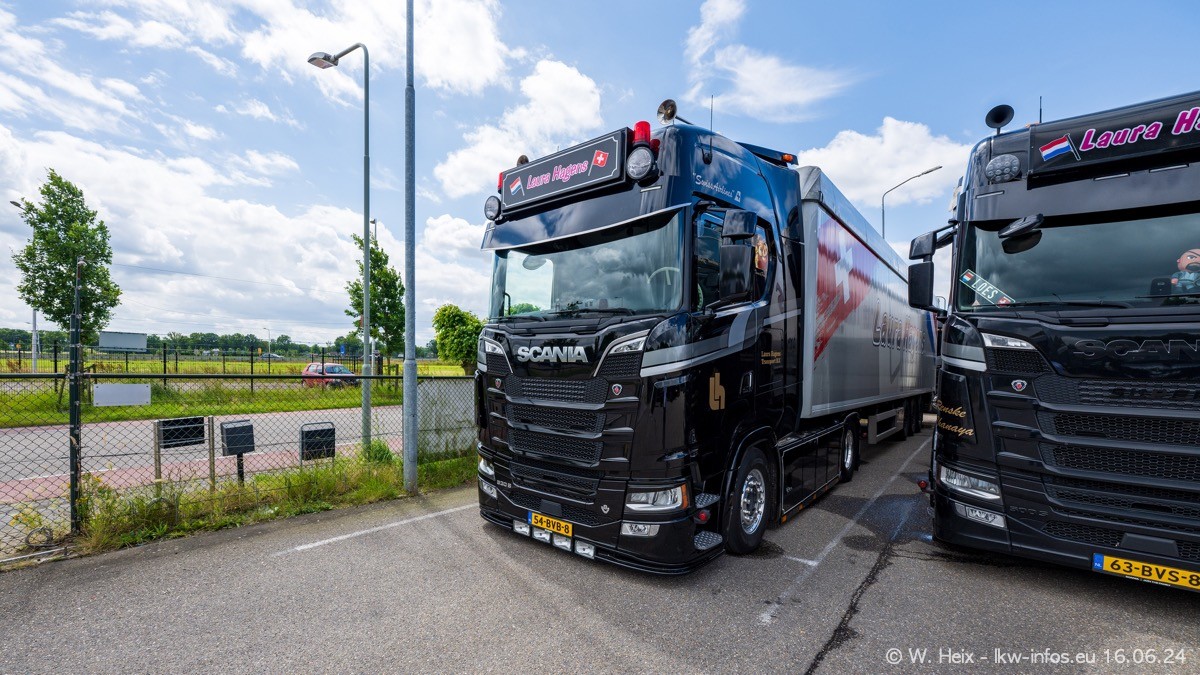 Ende Januar 2024 hat die Firma Gijs Boss die Fahrzeuge von Ruud Hagens Datrans B.V. übernommen. Das schwarze Design bleibt erhalten, den ersten neuen DAF XG+ mit neuem Aufleger, beschriftet mit "Datrans" gibt es auf den ersten Bildern in dieser Galerie zu sehen. Dazu kommen aktuell zwei weiße DAF XG+, die in Deutschland zugelassen sind (Moers MO, Kreis Wesel). Die Fahrzeuge in den bekannten Farben von Gijs Boss gibt es weiterhin. Diese stehen jedoch weiterhin verteilt bei Kunden oder Fahrern zuhause. Die zweite "neue" Firma ist jetzt Laura Hagens, Das ist bekanntlich die Tochter von Ruud Hagens. Unter dem Namen laufen alle SCANIA NextGen mit Schubboden/Walking-Floor Aufliegern. Die beiden M-Trex SCANIA gehören dazu. Alle Planenauflieger gehörten bisher Ruud Hagens Datrans B.V. Dazu kommen noch die IVECO S-Way, von Helene-Speed (Deutschland und Rumänien). Da sicherlich alle Fahrzeuge über länger Zeit noch "bunt gemischt" zu sehen sein werden, habe ich erstmal alles unter dem Namen Boss-Datrans & Laura Hagens zusammengefasst. Alle LKW werden auch weiterhin auf dem bekannten Gelände in Wanssum stehen.