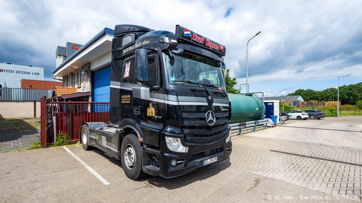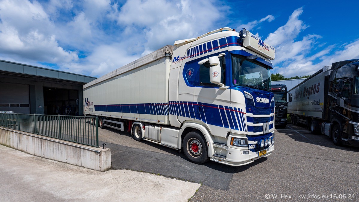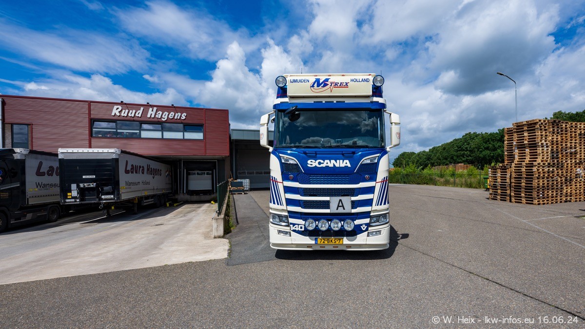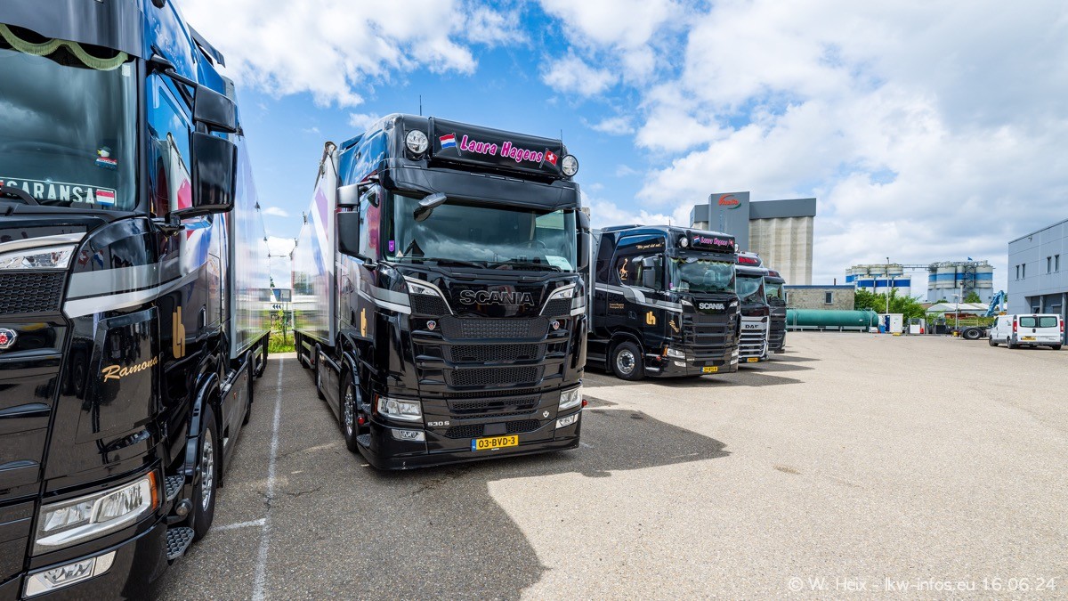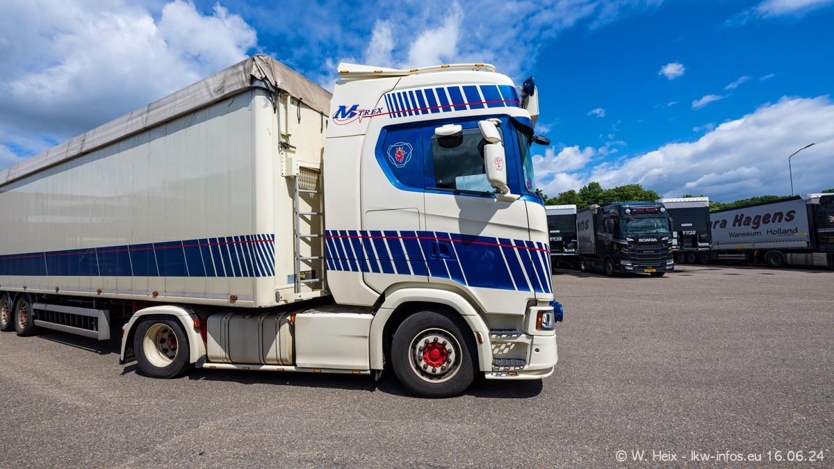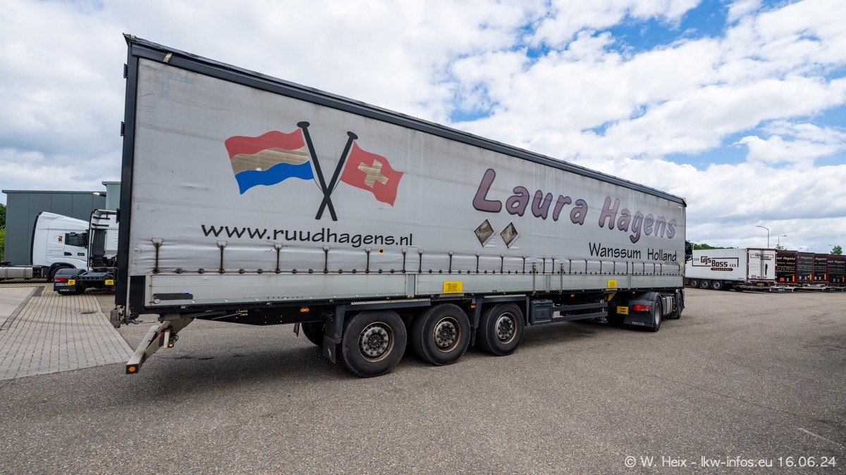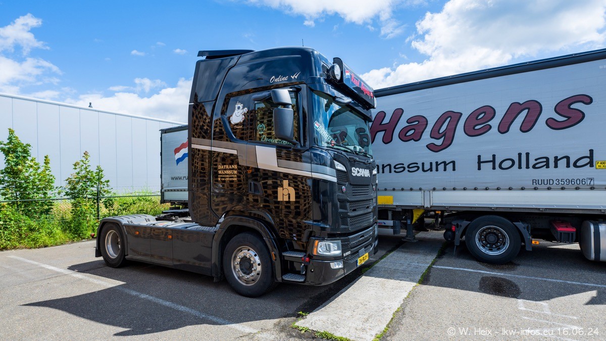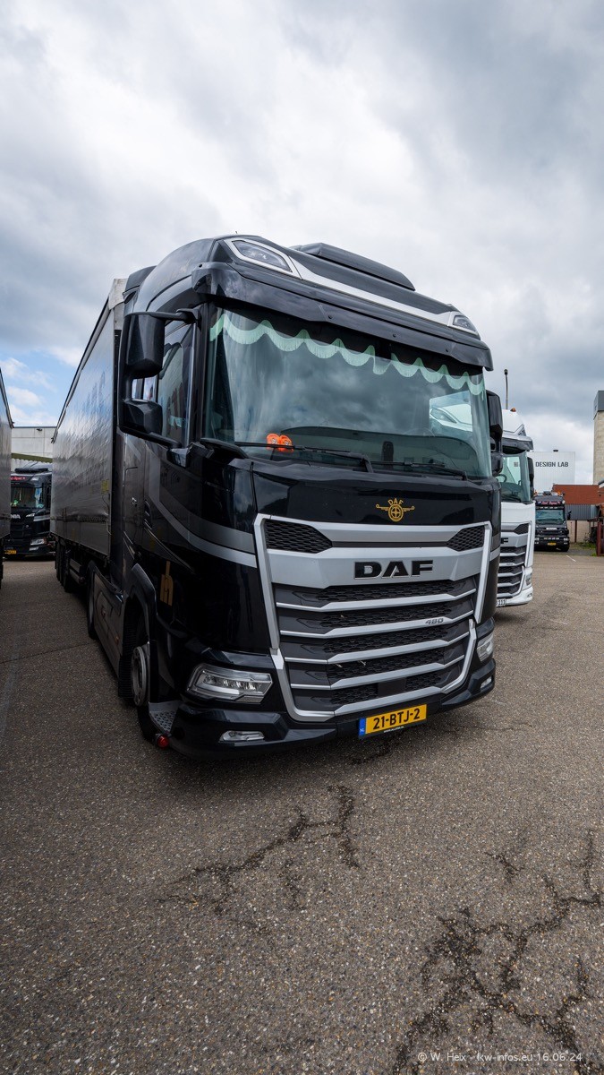 Ende Januar 2024 hat die Firma Gijs Boss die Fahrzeuge von Ruud Hagens Datrans B.V. übernommen. Das schwarze Design bleibt erhalten, den ersten neuen DAF XG+ mit neuem Aufleger, beschriftet mit "Datrans" gibt es auf den ersten Bildern in dieser Galerie zu sehen. Dazu kommen aktuell zwei weiße DAF XG+, die in Deutschland zugelassen sind (Moers MO, Kreis Wesel). Die Fahrzeuge in den bekannten Farben von Gijs Boss gibt es weiterhin. Diese stehen jedoch weiterhin verteilt bei Kunden oder Fahrern zuhause. Die zweite "neue" Firma ist jetzt Laura Hagens, Das ist bekanntlich die Tochter von Ruud Hagens. Unter dem Namen laufen alle SCANIA NextGen mit Schubboden/Walking-Floor Aufliegern. Die beiden M-Trex SCANIA gehören dazu. Alle Planenauflieger gehörten bisher Ruud Hagens Datrans B.V. Dazu kommen noch die IVECO S-Way, von Helene-Speed (Deutschland und Rumänien). Da sicherlich alle Fahrzeuge über länger Zeit noch "bunt gemischt" zu sehen sein werden, habe ich erstmal alles unter dem Namen Boss-Datrans & Laura Hagens zusammengefasst. Alle LKW werden auch weiterhin auf dem bekannten Gelände in Wanssum stehen.