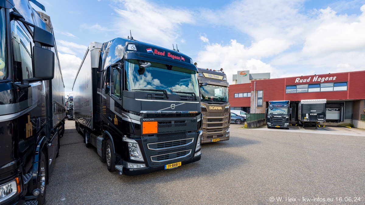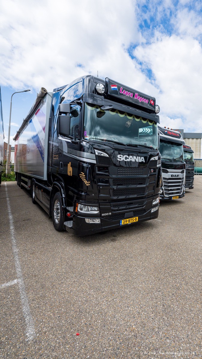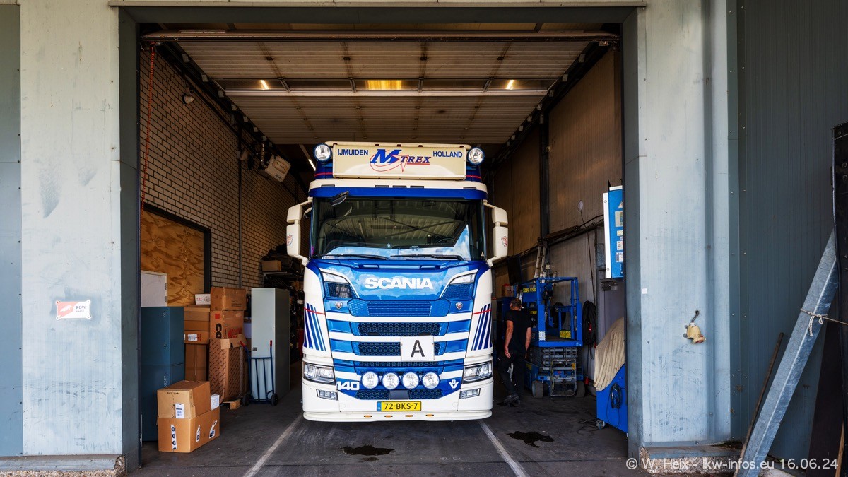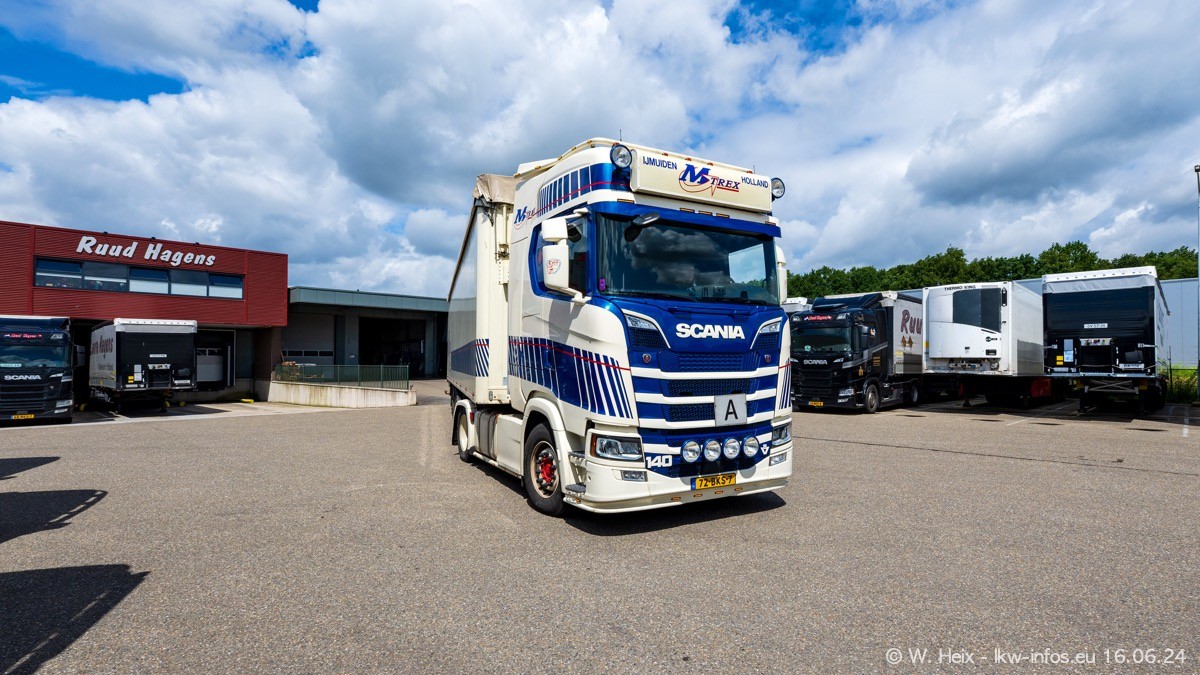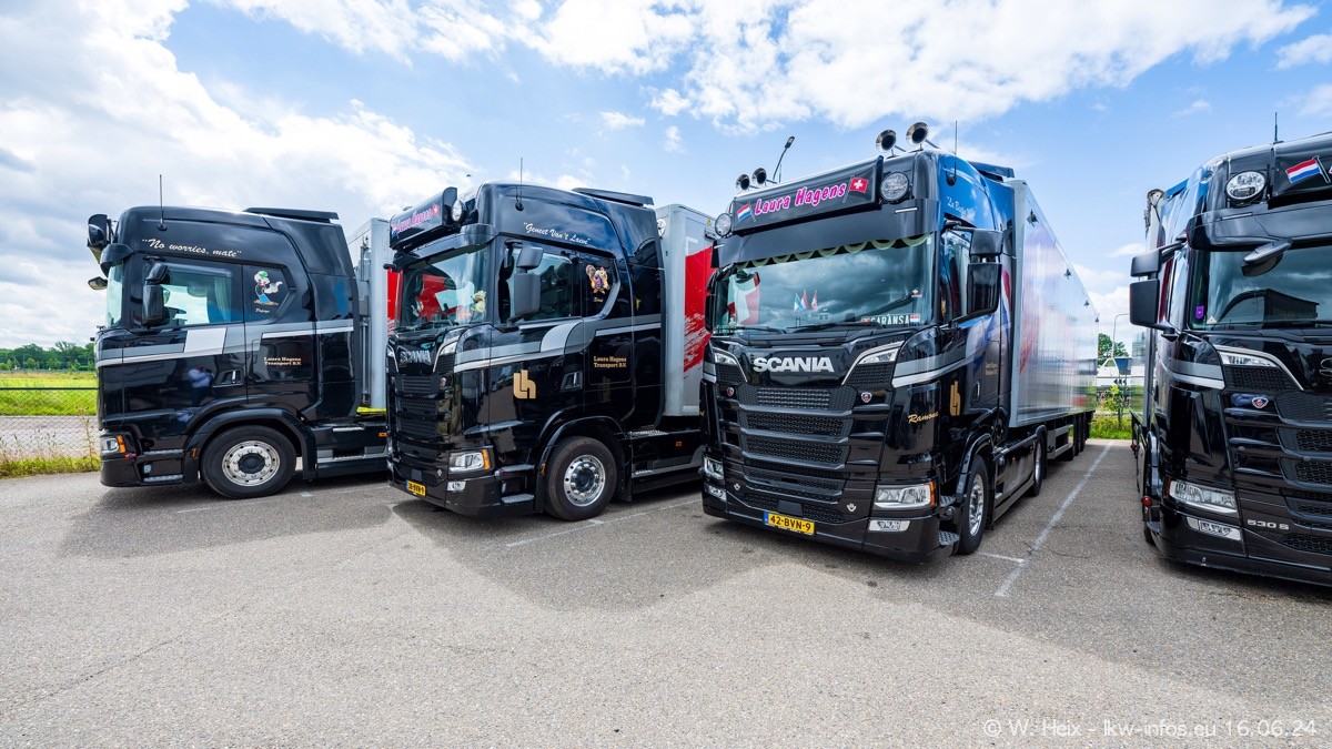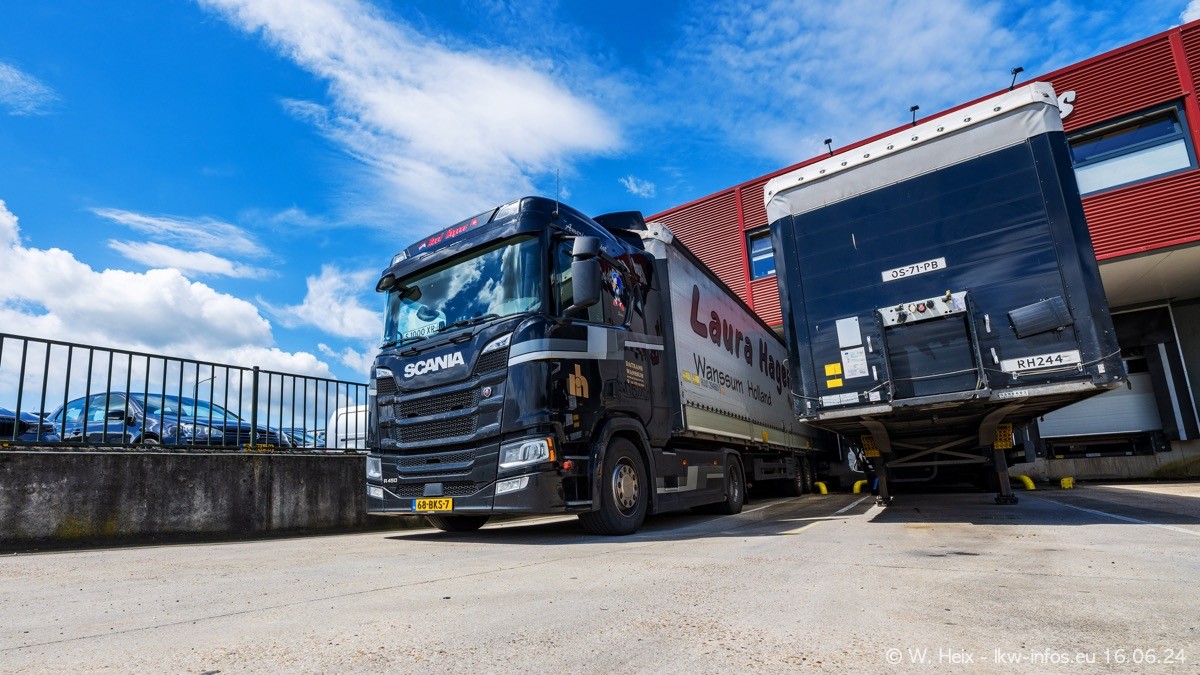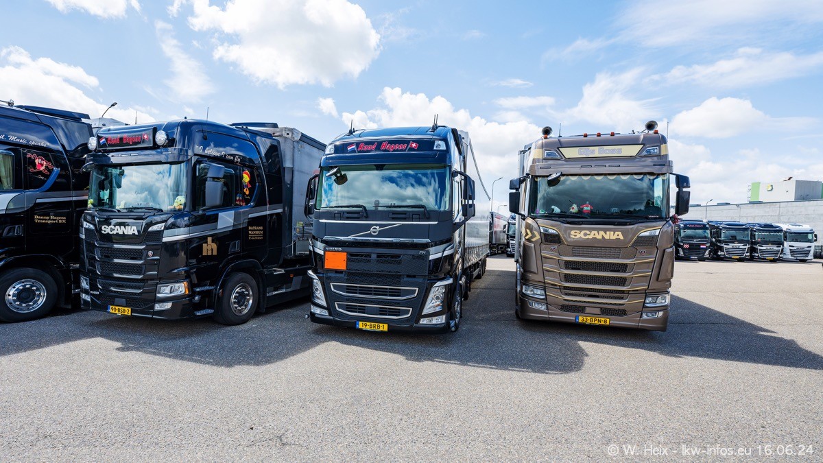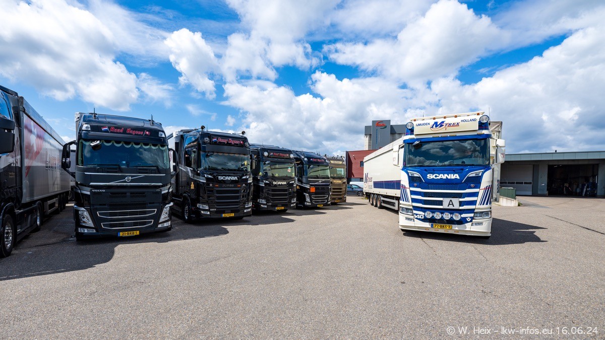 Ende Januar 2024 hat die Firma Gijs Boss die Fahrzeuge von Ruud Hagens Datrans B.V. übernommen. Das schwarze Design bleibt erhalten, den ersten neuen DAF XG+ mit neuem Aufleger, beschriftet mit "Datrans" gibt es auf den ersten Bildern in dieser Galerie zu sehen. Dazu kommen aktuell zwei weiße DAF XG+, die in Deutschland zugelassen sind (Moers MO, Kreis Wesel). Die Fahrzeuge in den bekannten Farben von Gijs Boss gibt es weiterhin. Diese stehen jedoch weiterhin verteilt bei Kunden oder Fahrern zuhause. Die zweite "neue" Firma ist jetzt Laura Hagens, Das ist bekanntlich die Tochter von Ruud Hagens. Unter dem Namen laufen alle SCANIA NextGen mit Schubboden/Walking-Floor Aufliegern. Die beiden M-Trex SCANIA gehören dazu. Alle Planenauflieger gehörten bisher Ruud Hagens Datrans B.V. Dazu kommen noch die IVECO S-Way, von Helene-Speed (Deutschland und Rumänien). Da sicherlich alle Fahrzeuge über länger Zeit noch "bunt gemischt" zu sehen sein werden, habe ich erstmal alles unter dem Namen Boss-Datrans & Laura Hagens zusammengefasst. Alle LKW werden auch weiterhin auf dem bekannten Gelände in Wanssum stehen.