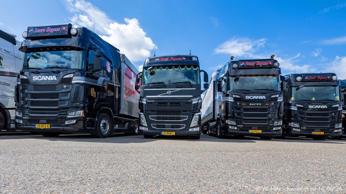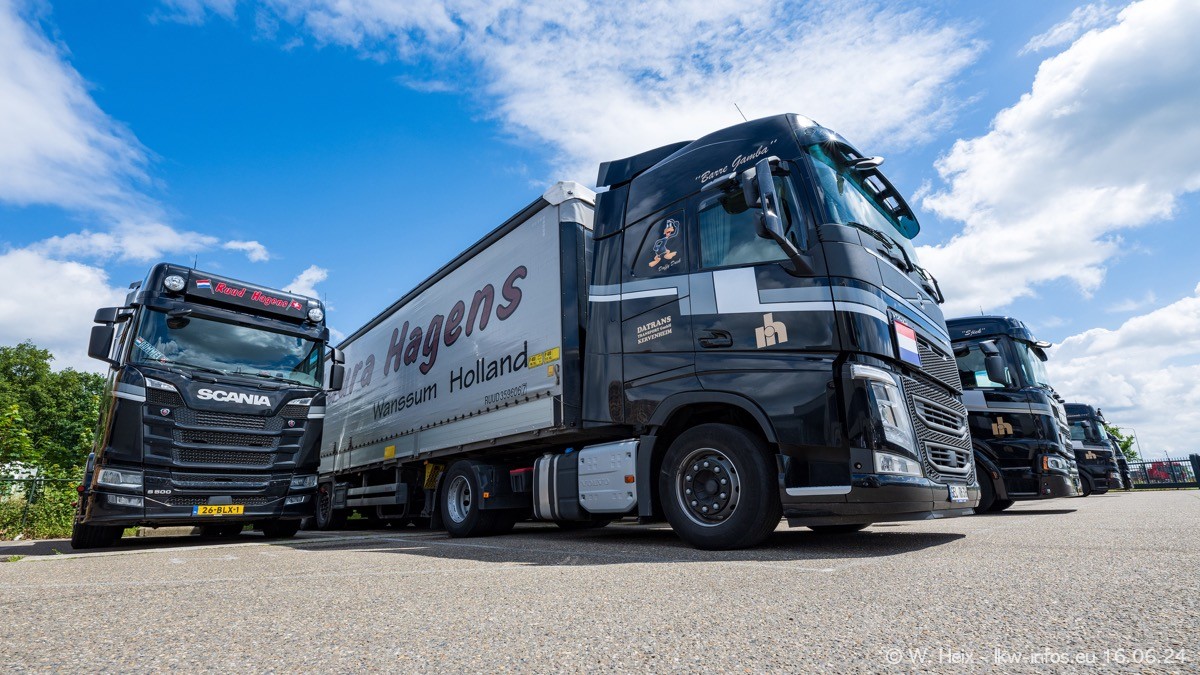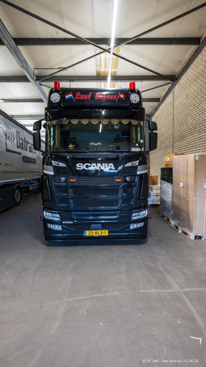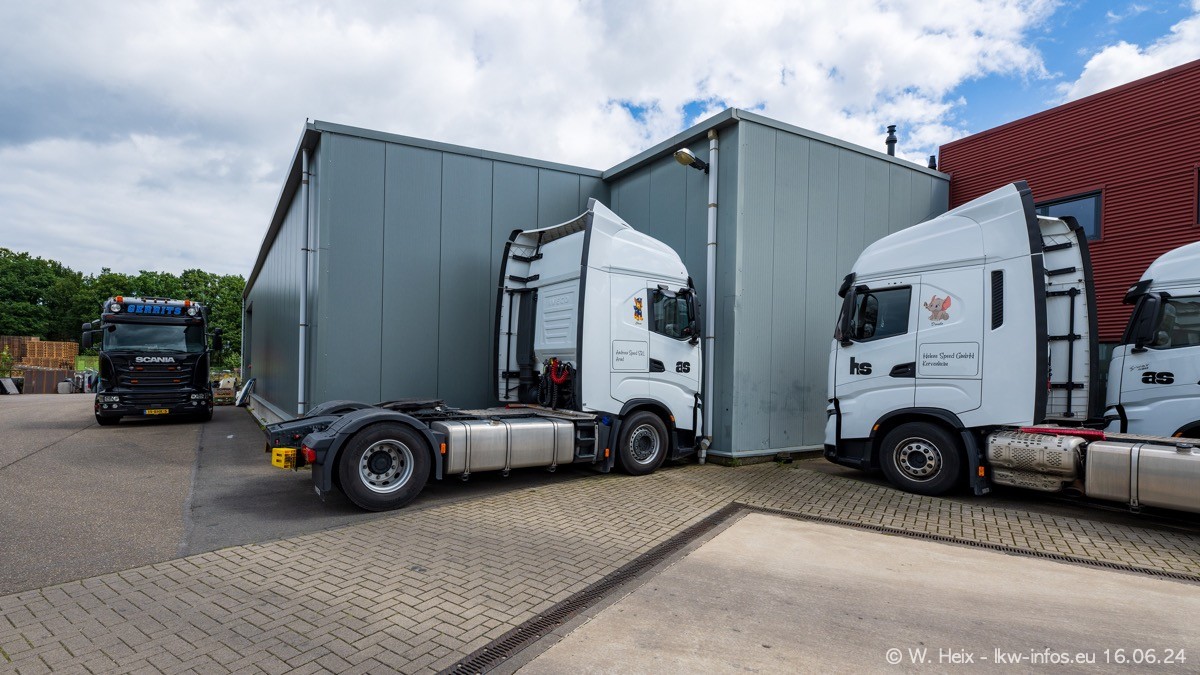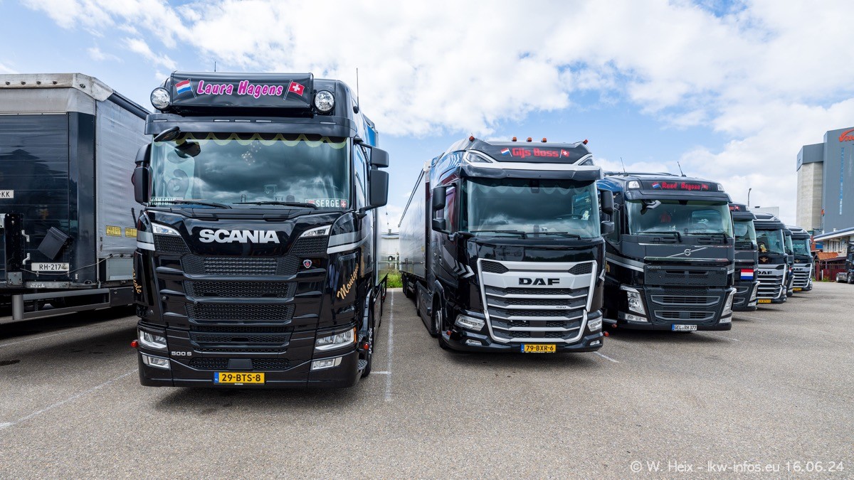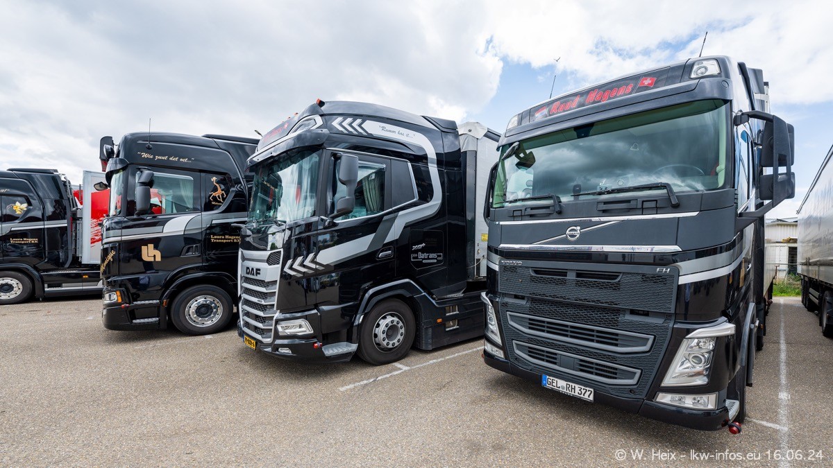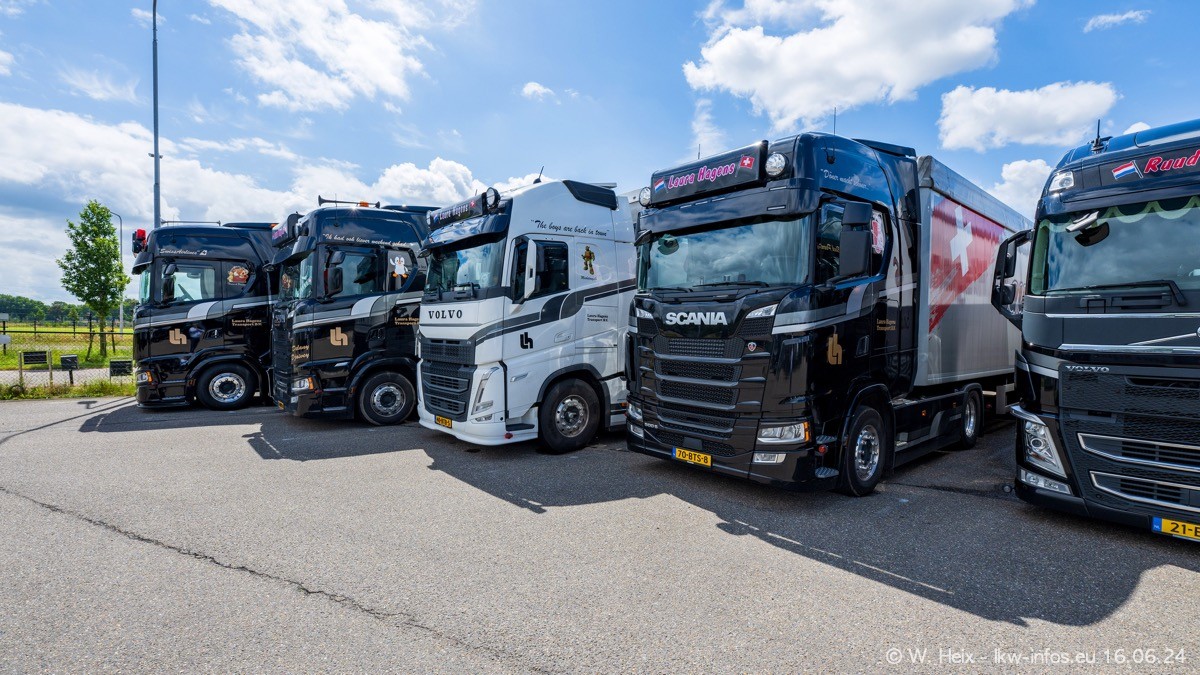 Ende Januar 2024 hat die Firma Gijs Boss die Fahrzeuge von Ruud Hagens Datrans B.V. übernommen. Das schwarze Design bleibt erhalten, den ersten neuen DAF XG+ mit neuem Aufleger, beschriftet mit "Datrans" gibt es auf den ersten Bildern in dieser Galerie zu sehen. Dazu kommen aktuell zwei weiße DAF XG+, die in Deutschland zugelassen sind (Moers MO, Kreis Wesel). Die Fahrzeuge in den bekannten Farben von Gijs Boss gibt es weiterhin. Diese stehen jedoch weiterhin verteilt bei Kunden oder Fahrern zuhause. Die zweite "neue" Firma ist jetzt Laura Hagens, Das ist bekanntlich die Tochter von Ruud Hagens. Unter dem Namen laufen alle SCANIA NextGen mit Schubboden/Walking-Floor Aufliegern. Die beiden M-Trex SCANIA gehören dazu. Alle Planenauflieger gehörten bisher Ruud Hagens Datrans B.V. Dazu kommen noch die IVECO S-Way, von Helene-Speed (Deutschland und Rumänien). Da sicherlich alle Fahrzeuge über länger Zeit noch "bunt gemischt" zu sehen sein werden, habe ich erstmal alles unter dem Namen Boss-Datrans & Laura Hagens zusammengefasst. Alle LKW werden auch weiterhin auf dem bekannten Gelände in Wanssum stehen.