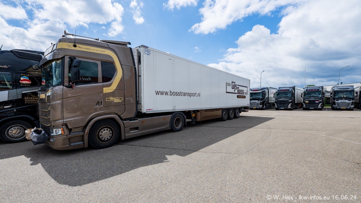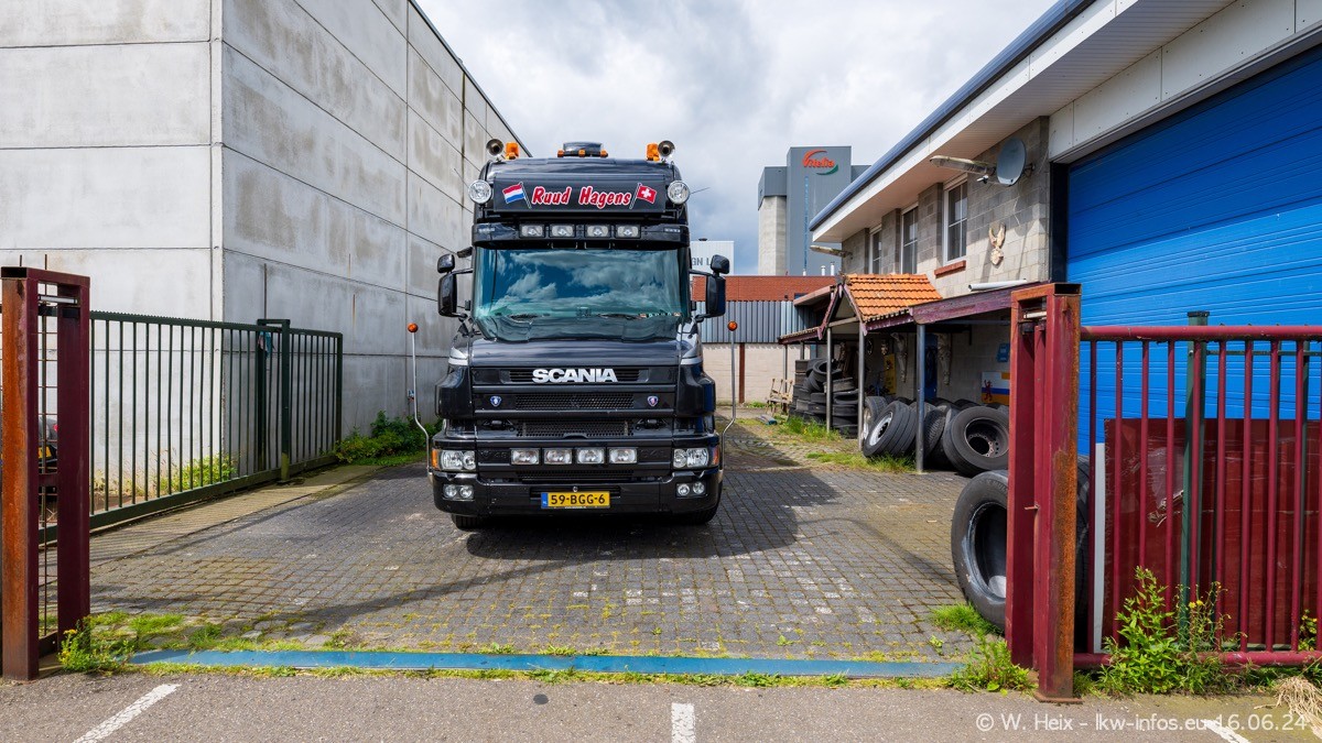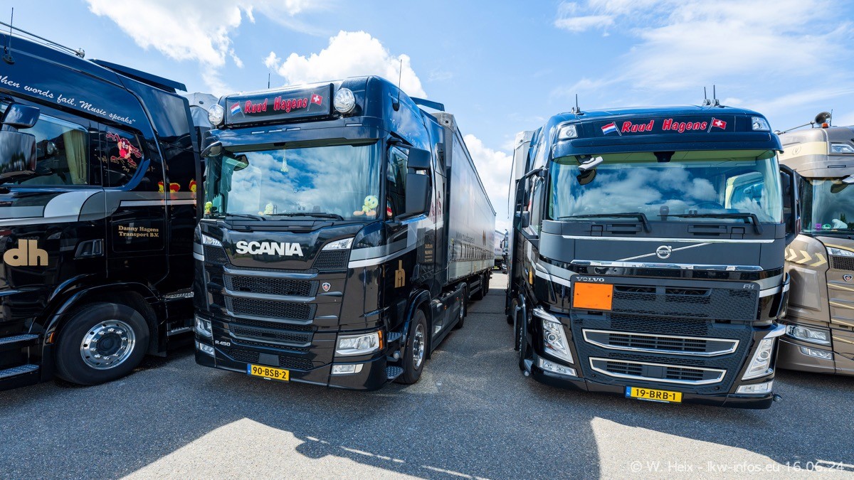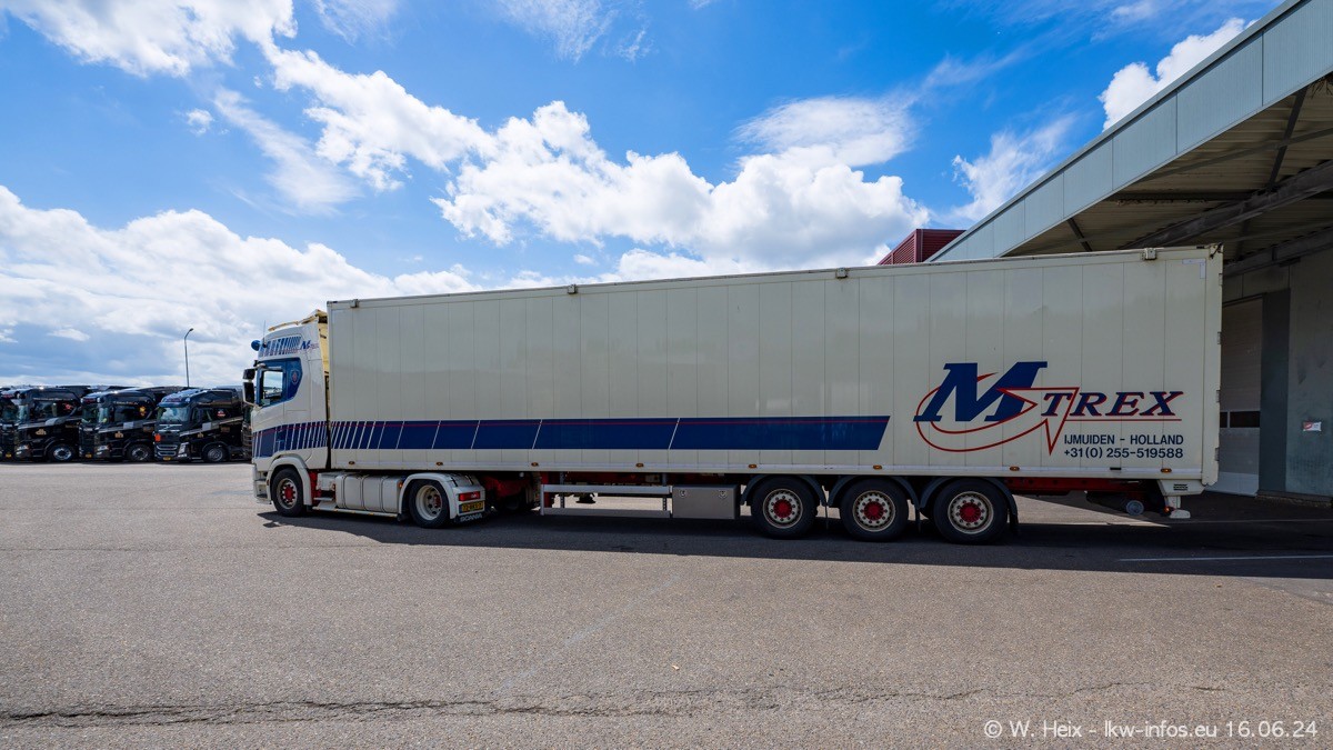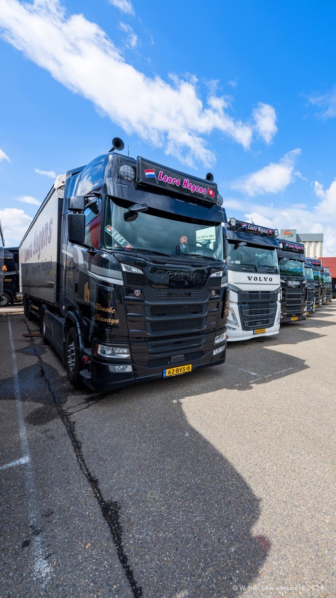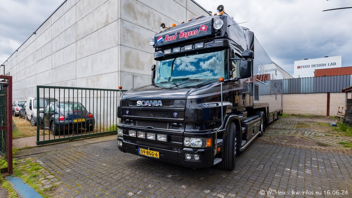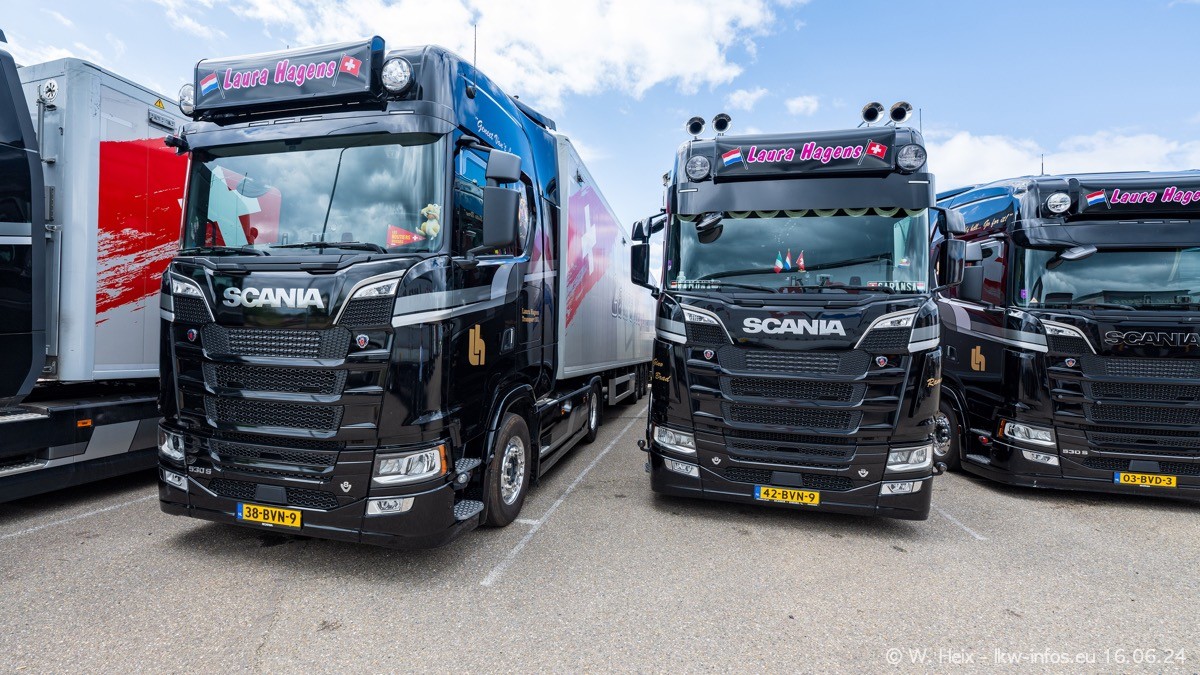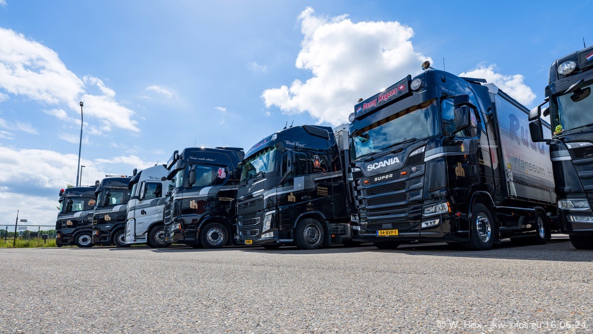 Ende Januar 2024 hat die Firma Gijs Boss die Fahrzeuge von Ruud Hagens Datrans B.V. übernommen. Das schwarze Design bleibt erhalten, den ersten neuen DAF XG+ mit neuem Aufleger, beschriftet mit "Datrans" gibt es auf den ersten Bildern in dieser Galerie zu sehen. Dazu kommen aktuell zwei weiße DAF XG+, die in Deutschland zugelassen sind (Moers MO, Kreis Wesel). Die Fahrzeuge in den bekannten Farben von Gijs Boss gibt es weiterhin. Diese stehen jedoch weiterhin verteilt bei Kunden oder Fahrern zuhause. Die zweite "neue" Firma ist jetzt Laura Hagens, Das ist bekanntlich die Tochter von Ruud Hagens. Unter dem Namen laufen alle SCANIA NextGen mit Schubboden/Walking-Floor Aufliegern. Die beiden M-Trex SCANIA gehören dazu. Alle Planenauflieger gehörten bisher Ruud Hagens Datrans B.V. Dazu kommen noch die IVECO S-Way, von Helene-Speed (Deutschland und Rumänien). Da sicherlich alle Fahrzeuge über länger Zeit noch "bunt gemischt" zu sehen sein werden, habe ich erstmal alles unter dem Namen Boss-Datrans & Laura Hagens zusammengefasst. Alle LKW werden auch weiterhin auf dem bekannten Gelände in Wanssum stehen.