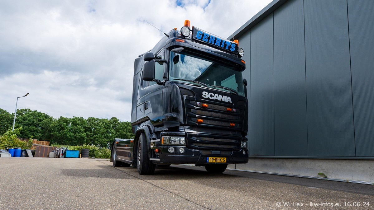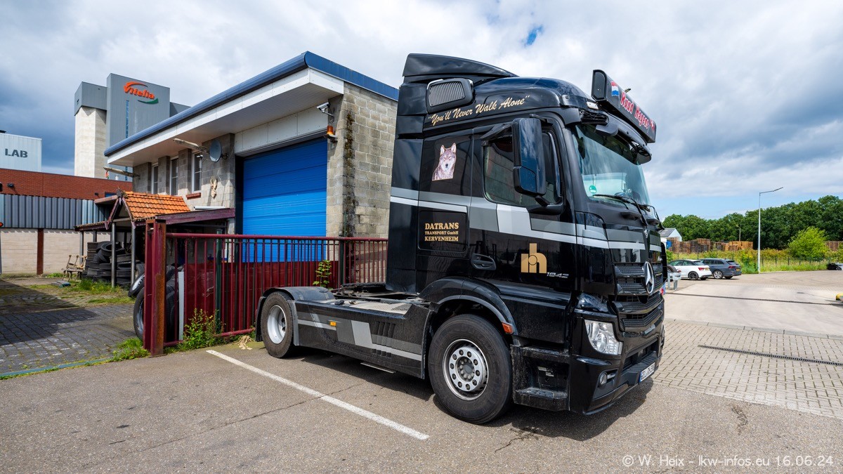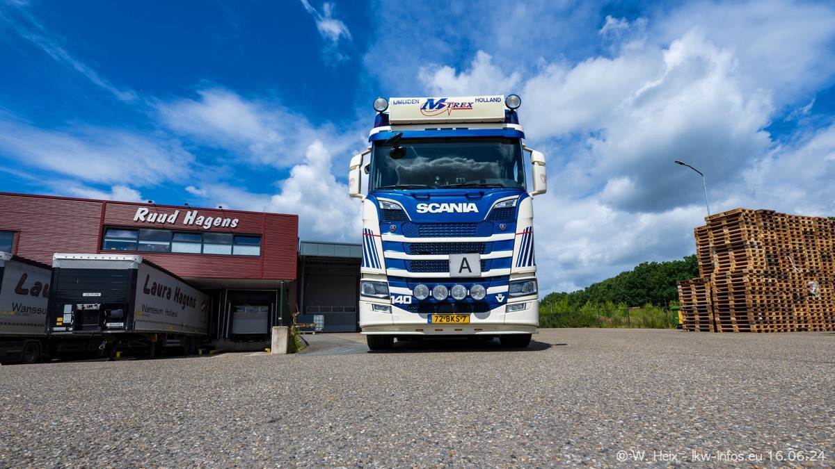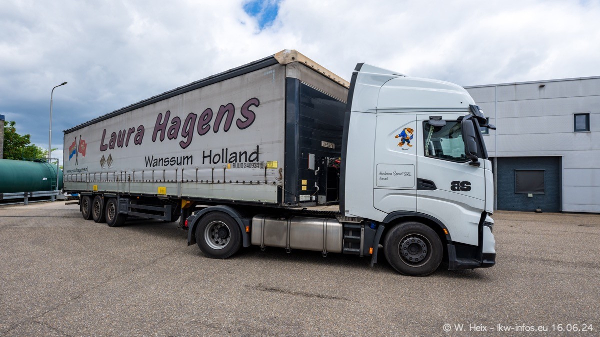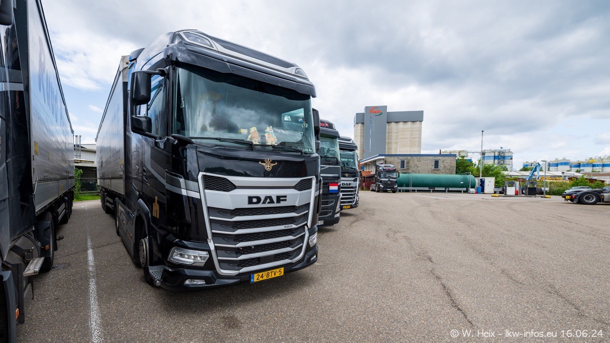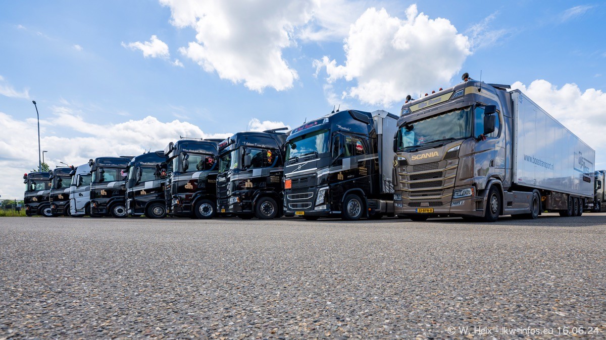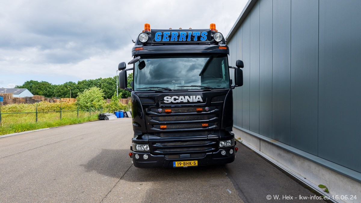 Ende Januar 2024 hat die Firma Gijs Boss die Fahrzeuge von Ruud Hagens Datrans B.V. übernommen. Das schwarze Design bleibt erhalten, den ersten neuen DAF XG+ mit neuem Aufleger, beschriftet mit "Datrans" gibt es auf den ersten Bildern in dieser Galerie zu sehen. Dazu kommen aktuell zwei weiße DAF XG+, die in Deutschland zugelassen sind (Moers MO, Kreis Wesel). Die Fahrzeuge in den bekannten Farben von Gijs Boss gibt es weiterhin. Diese stehen jedoch weiterhin verteilt bei Kunden oder Fahrern zuhause. Die zweite "neue" Firma ist jetzt Laura Hagens, Das ist bekanntlich die Tochter von Ruud Hagens. Unter dem Namen laufen alle SCANIA NextGen mit Schubboden/Walking-Floor Aufliegern. Die beiden M-Trex SCANIA gehören dazu. Alle Planenauflieger gehörten bisher Ruud Hagens Datrans B.V. Dazu kommen noch die IVECO S-Way, von Helene-Speed (Deutschland und Rumänien). Da sicherlich alle Fahrzeuge über länger Zeit noch "bunt gemischt" zu sehen sein werden, habe ich erstmal alles unter dem Namen Boss-Datrans & Laura Hagens zusammengefasst. Alle LKW werden auch weiterhin auf dem bekannten Gelände in Wanssum stehen.