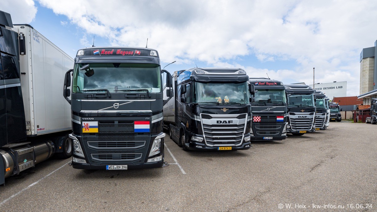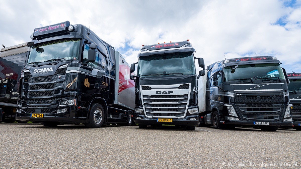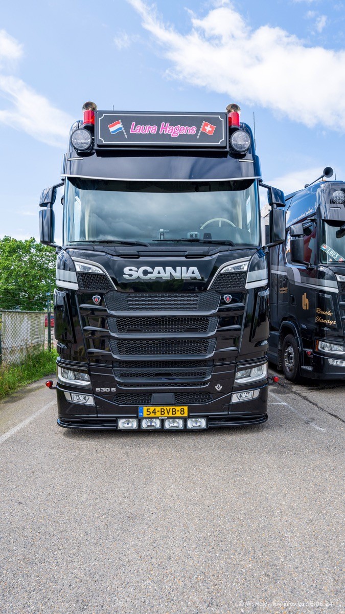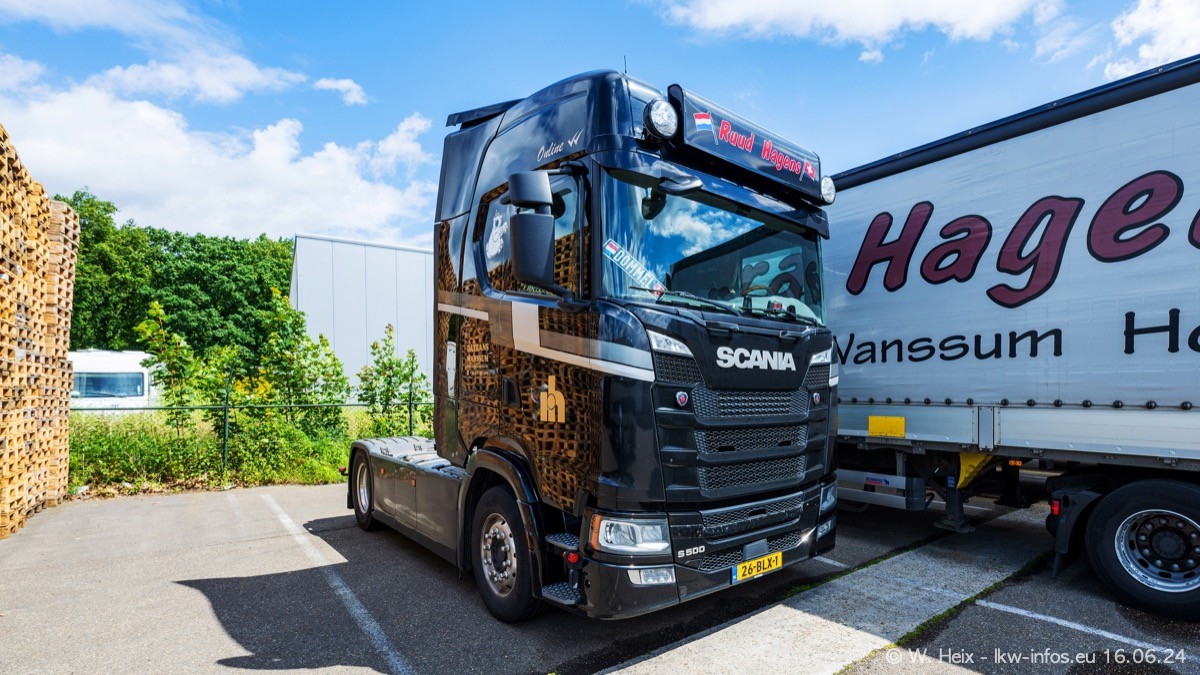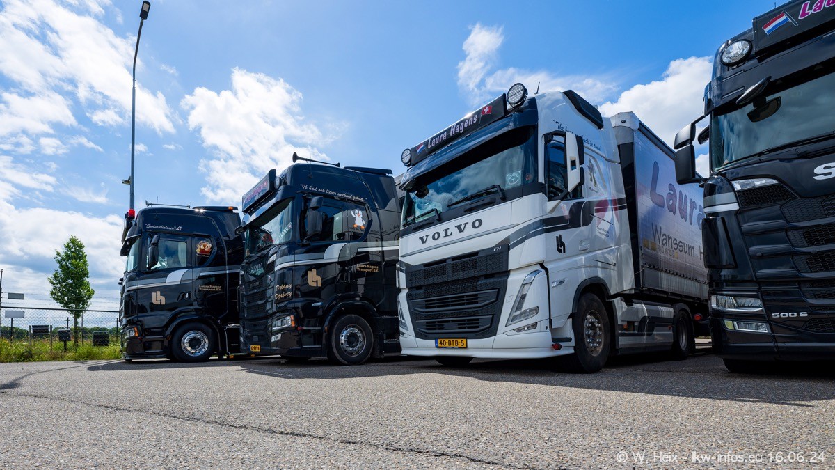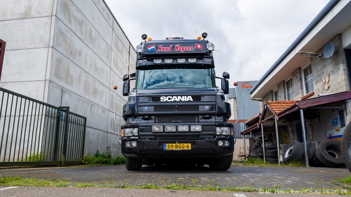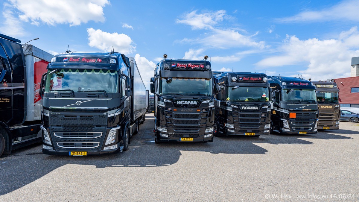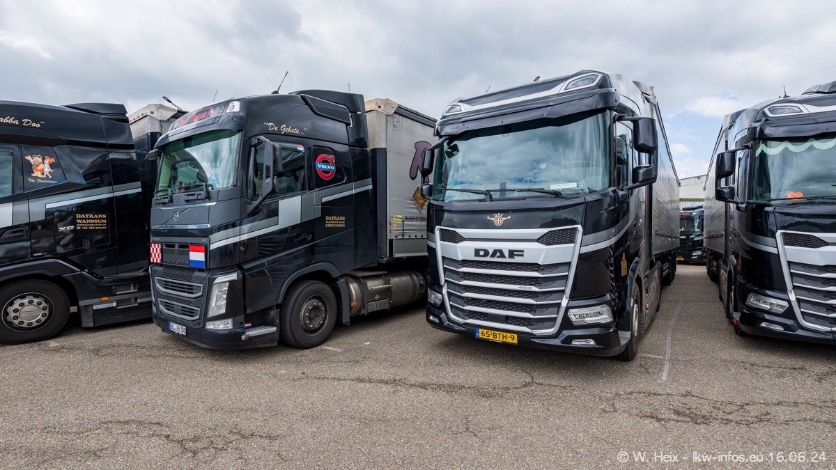 Ende Januar 2024 hat die Firma Gijs Boss die Fahrzeuge von Ruud Hagens Datrans B.V. übernommen. Das schwarze Design bleibt erhalten, den ersten neuen DAF XG+ mit neuem Aufleger, beschriftet mit "Datrans" gibt es auf den ersten Bildern in dieser Galerie zu sehen. Dazu kommen aktuell zwei weiße DAF XG+, die in Deutschland zugelassen sind (Moers MO, Kreis Wesel). Die Fahrzeuge in den bekannten Farben von Gijs Boss gibt es weiterhin. Diese stehen jedoch weiterhin verteilt bei Kunden oder Fahrern zuhause. Die zweite "neue" Firma ist jetzt Laura Hagens, Das ist bekanntlich die Tochter von Ruud Hagens. Unter dem Namen laufen alle SCANIA NextGen mit Schubboden/Walking-Floor Aufliegern. Die beiden M-Trex SCANIA gehören dazu. Alle Planenauflieger gehörten bisher Ruud Hagens Datrans B.V. Dazu kommen noch die IVECO S-Way, von Helene-Speed (Deutschland und Rumänien). Da sicherlich alle Fahrzeuge über länger Zeit noch "bunt gemischt" zu sehen sein werden, habe ich erstmal alles unter dem Namen Boss-Datrans & Laura Hagens zusammengefasst. Alle LKW werden auch weiterhin auf dem bekannten Gelände in Wanssum stehen.