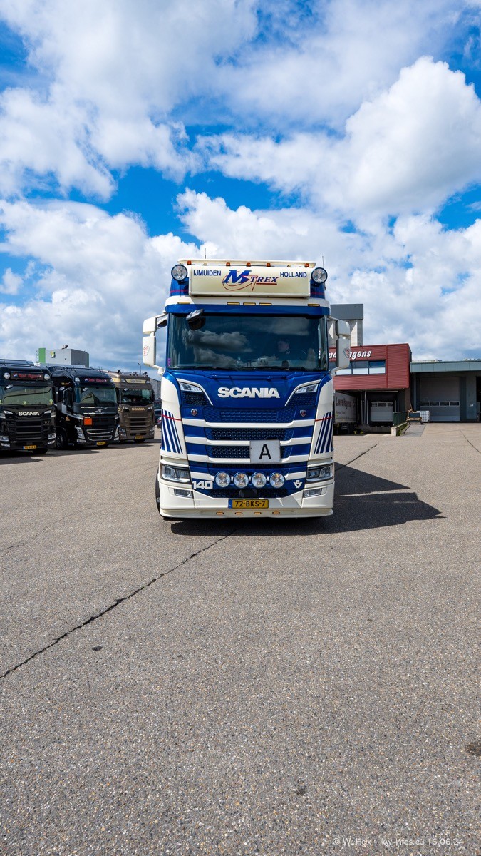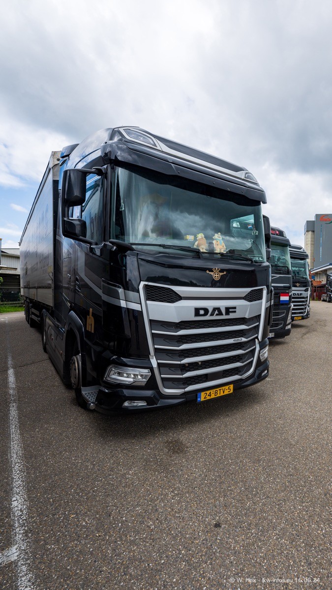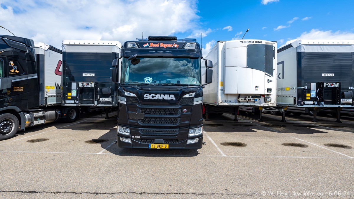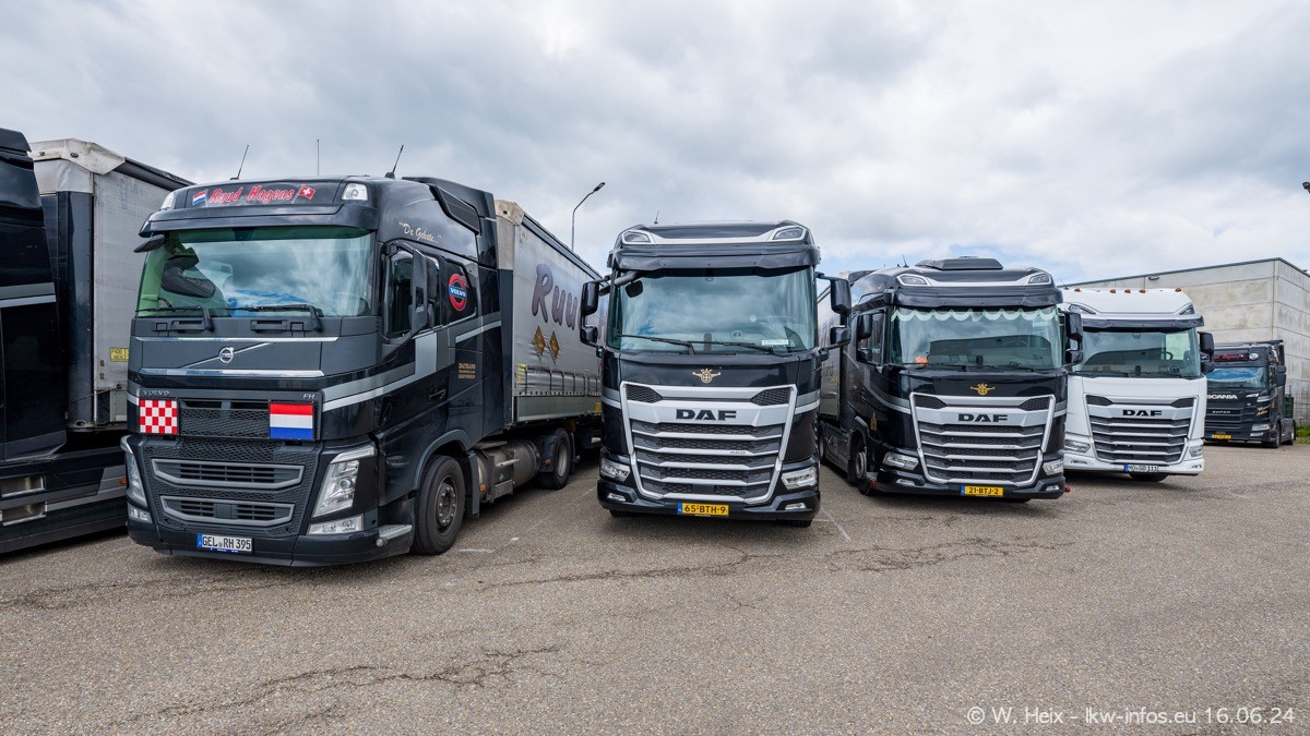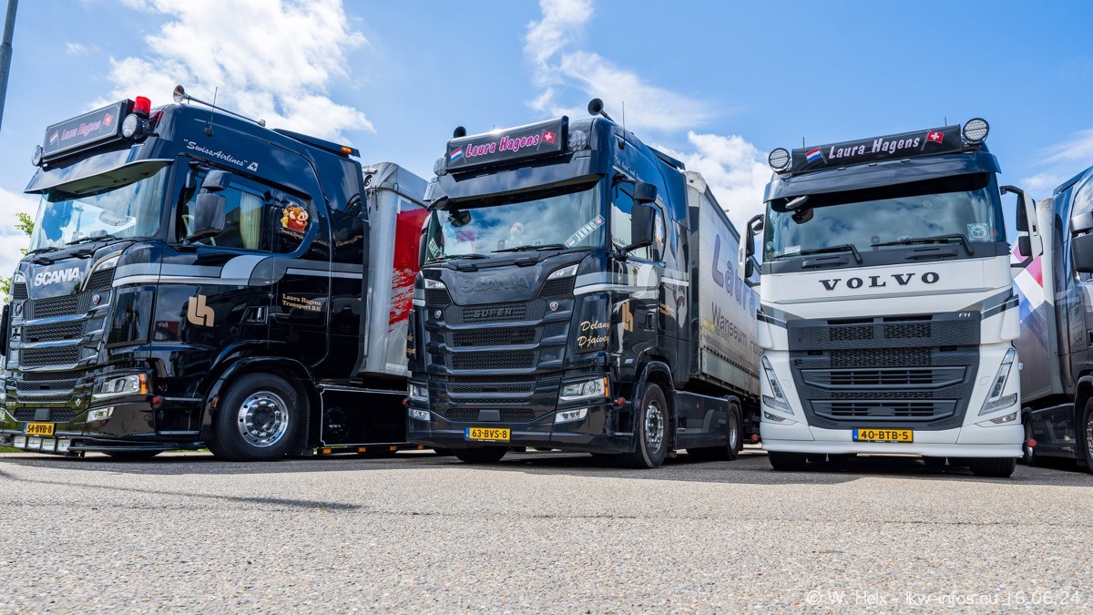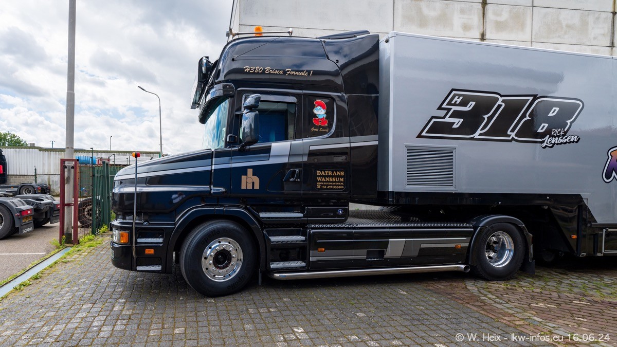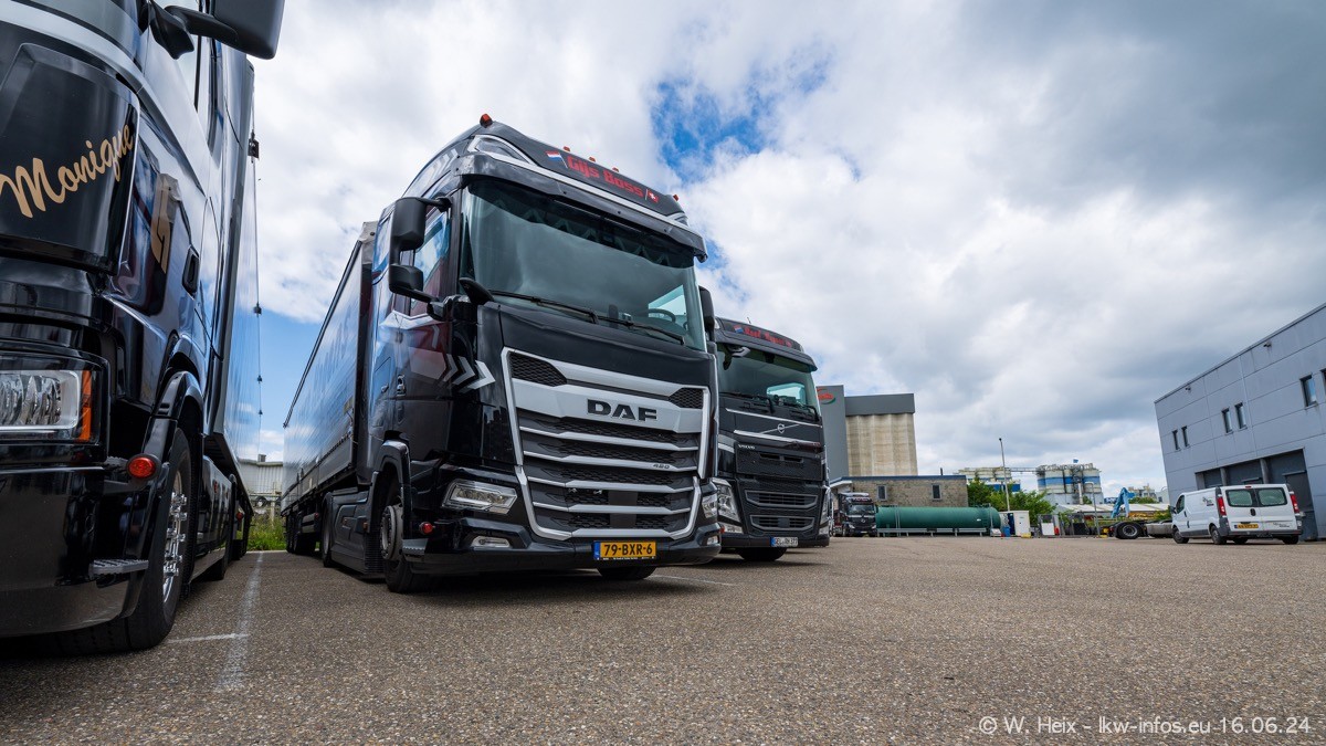 Ende Januar 2024 hat die Firma Gijs Boss die Fahrzeuge von Ruud Hagens Datrans B.V. übernommen. Das schwarze Design bleibt erhalten, den ersten neuen DAF XG+ mit neuem Aufleger, beschriftet mit "Datrans" gibt es auf den ersten Bildern in dieser Galerie zu sehen. Dazu kommen aktuell zwei weiße DAF XG+, die in Deutschland zugelassen sind (Moers MO, Kreis Wesel). Die Fahrzeuge in den bekannten Farben von Gijs Boss gibt es weiterhin. Diese stehen jedoch weiterhin verteilt bei Kunden oder Fahrern zuhause. Die zweite "neue" Firma ist jetzt Laura Hagens, Das ist bekanntlich die Tochter von Ruud Hagens. Unter dem Namen laufen alle SCANIA NextGen mit Schubboden/Walking-Floor Aufliegern. Die beiden M-Trex SCANIA gehören dazu. Alle Planenauflieger gehörten bisher Ruud Hagens Datrans B.V. Dazu kommen noch die IVECO S-Way, von Helene-Speed (Deutschland und Rumänien). Da sicherlich alle Fahrzeuge über länger Zeit noch "bunt gemischt" zu sehen sein werden, habe ich erstmal alles unter dem Namen Boss-Datrans & Laura Hagens zusammengefasst. Alle LKW werden auch weiterhin auf dem bekannten Gelände in Wanssum stehen.