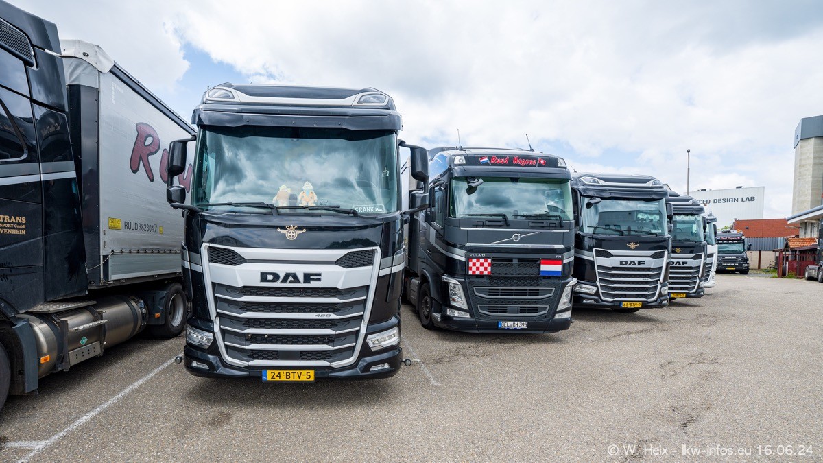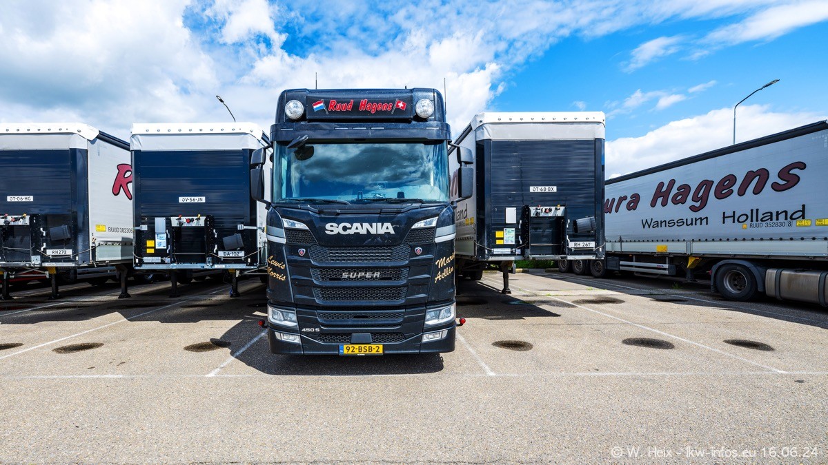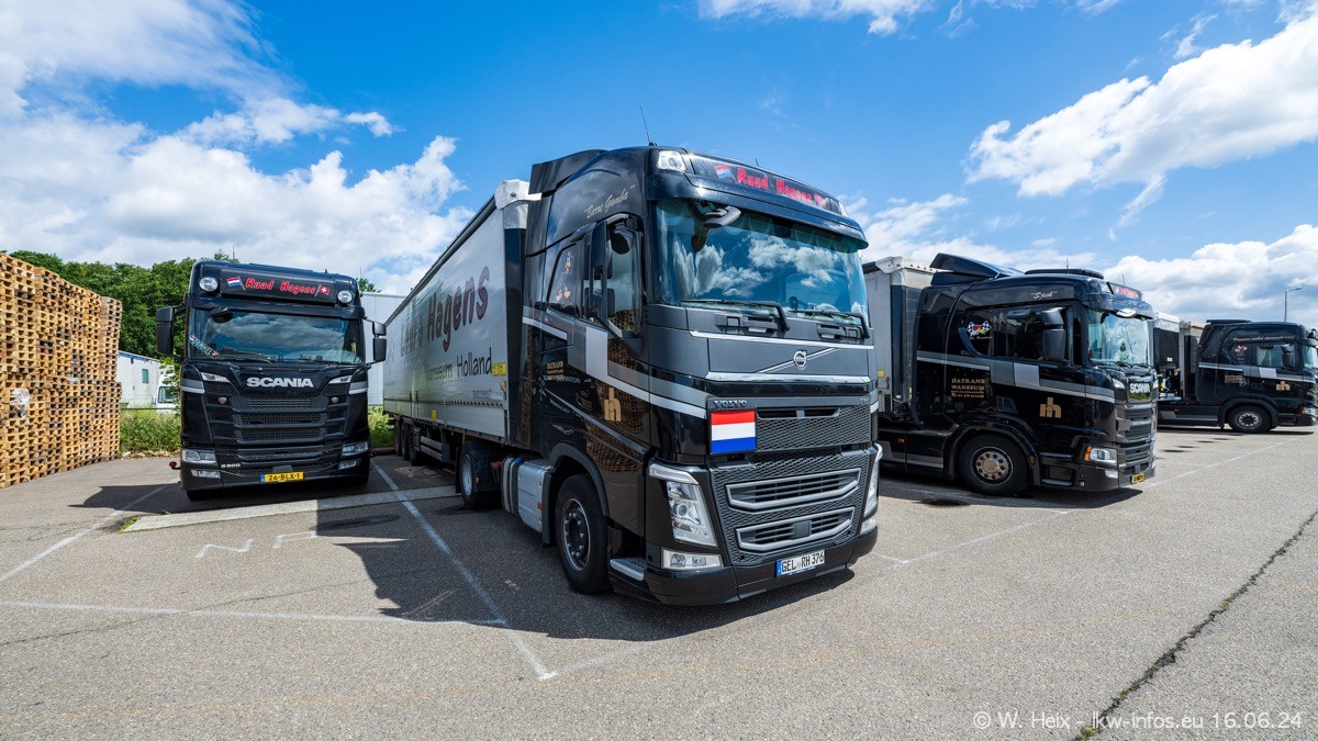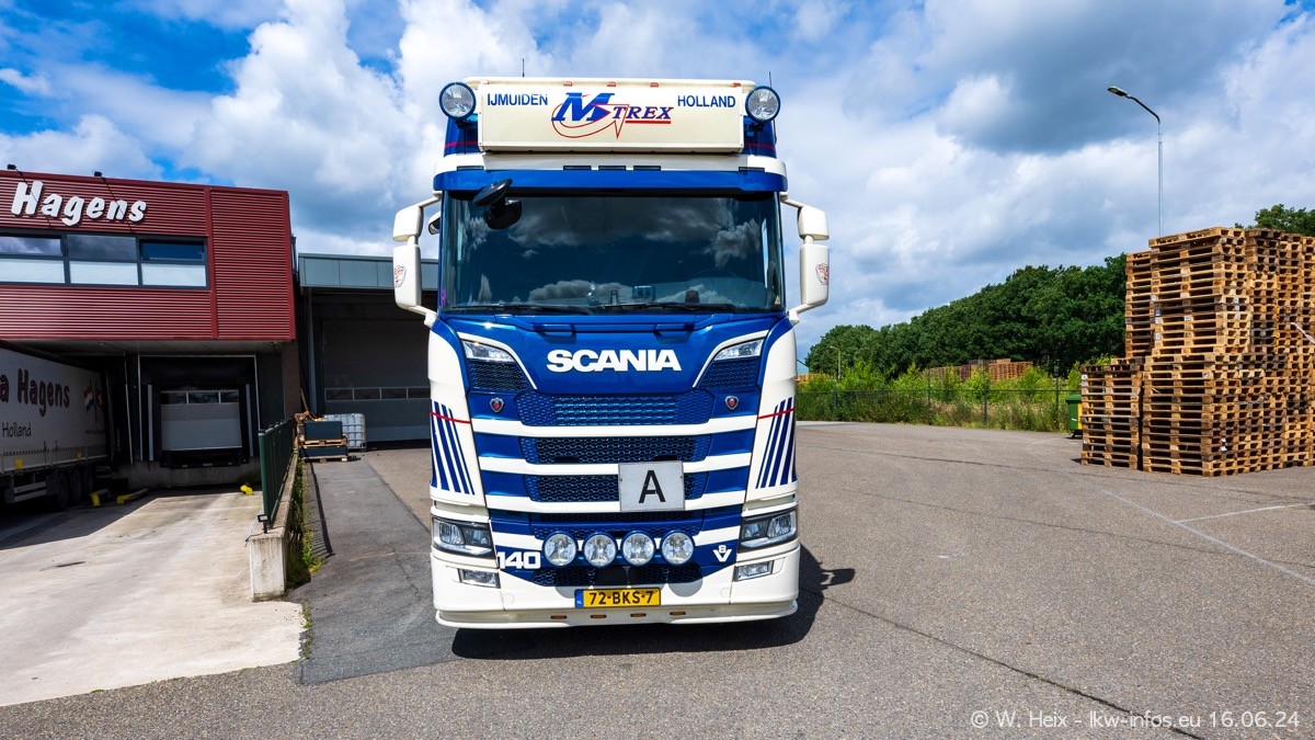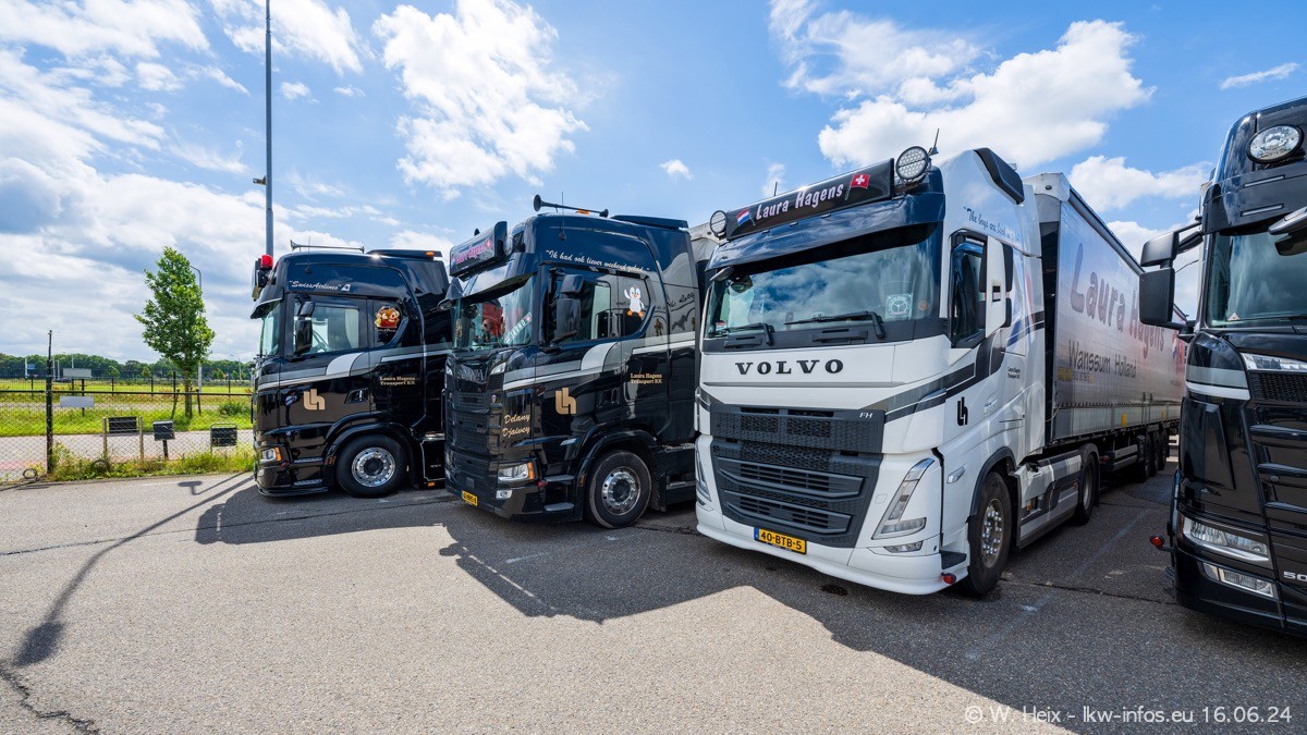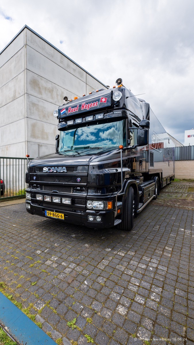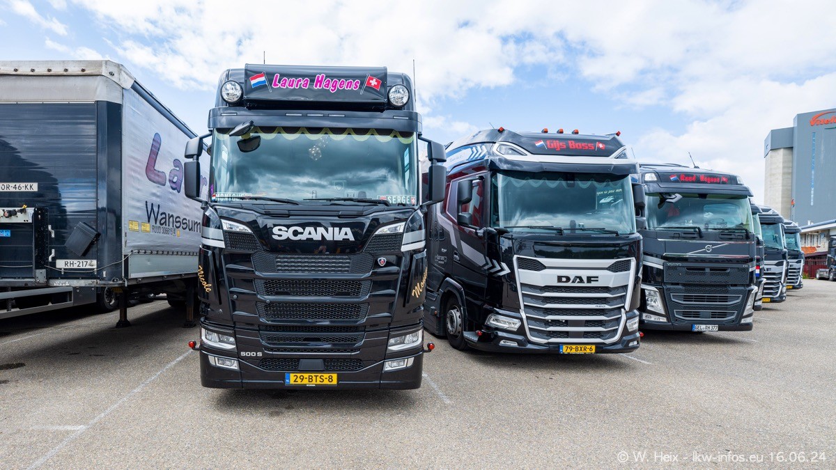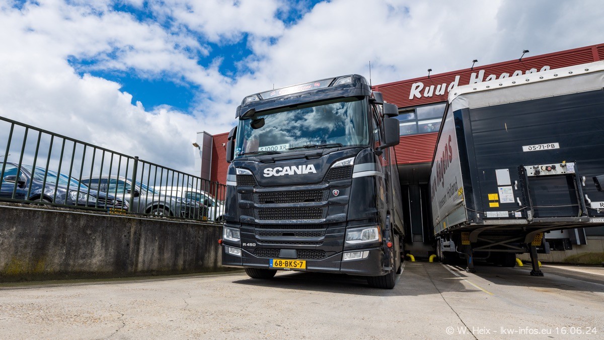 Ende Januar 2024 hat die Firma Gijs Boss die Fahrzeuge von Ruud Hagens Datrans B.V. übernommen. Das schwarze Design bleibt erhalten, den ersten neuen DAF XG+ mit neuem Aufleger, beschriftet mit "Datrans" gibt es auf den ersten Bildern in dieser Galerie zu sehen. Dazu kommen aktuell zwei weiße DAF XG+, die in Deutschland zugelassen sind (Moers MO, Kreis Wesel). Die Fahrzeuge in den bekannten Farben von Gijs Boss gibt es weiterhin. Diese stehen jedoch weiterhin verteilt bei Kunden oder Fahrern zuhause. Die zweite "neue" Firma ist jetzt Laura Hagens, Das ist bekanntlich die Tochter von Ruud Hagens. Unter dem Namen laufen alle SCANIA NextGen mit Schubboden/Walking-Floor Aufliegern. Die beiden M-Trex SCANIA gehören dazu. Alle Planenauflieger gehörten bisher Ruud Hagens Datrans B.V. Dazu kommen noch die IVECO S-Way, von Helene-Speed (Deutschland und Rumänien). Da sicherlich alle Fahrzeuge über länger Zeit noch "bunt gemischt" zu sehen sein werden, habe ich erstmal alles unter dem Namen Boss-Datrans & Laura Hagens zusammengefasst. Alle LKW werden auch weiterhin auf dem bekannten Gelände in Wanssum stehen.