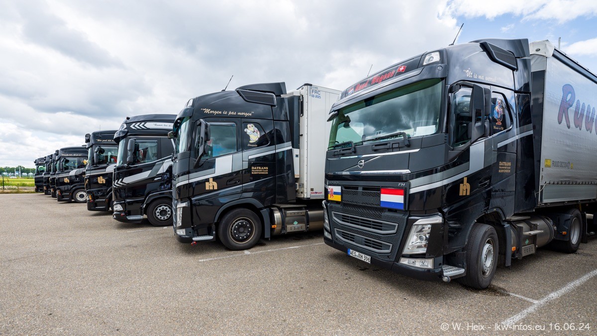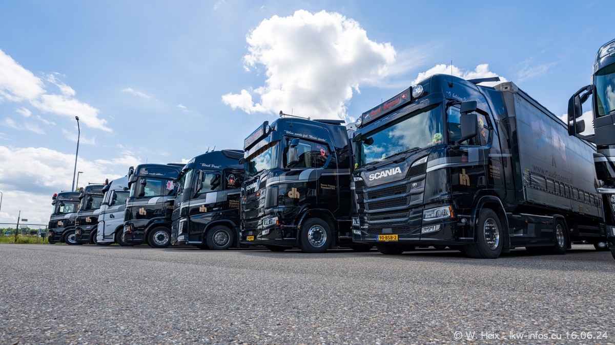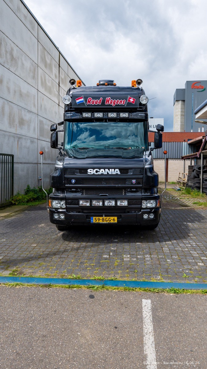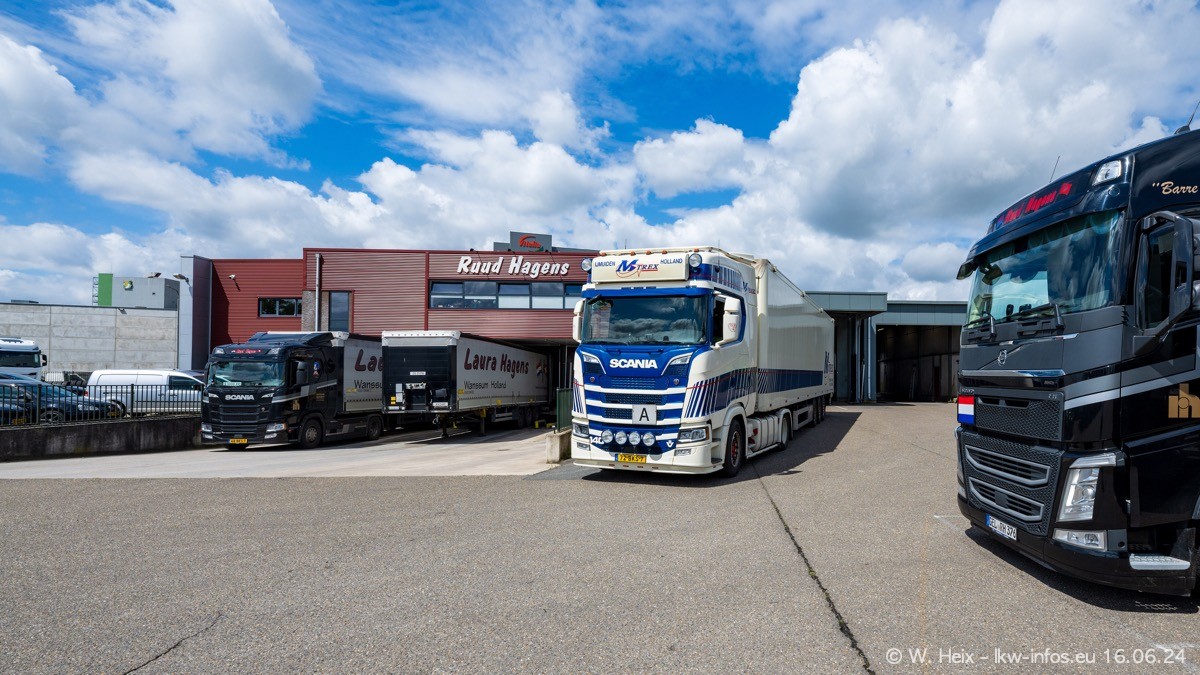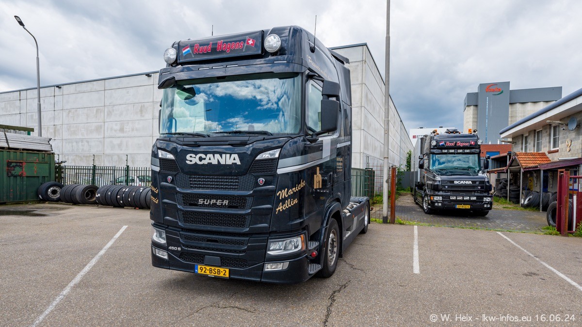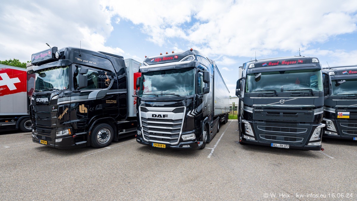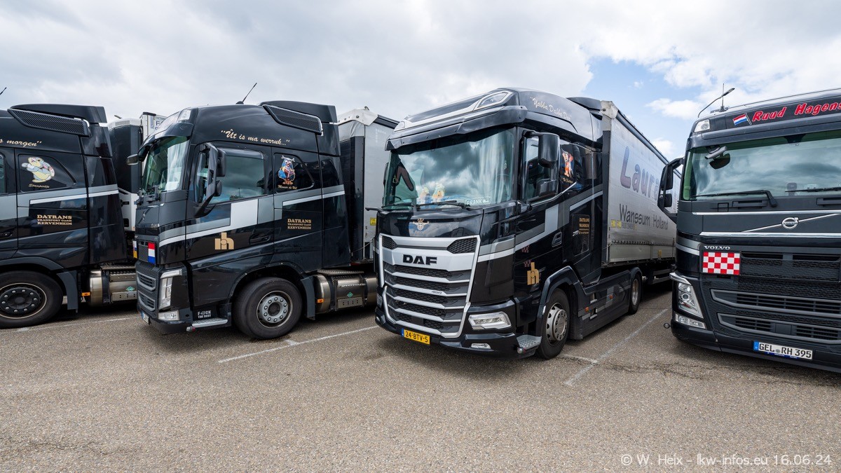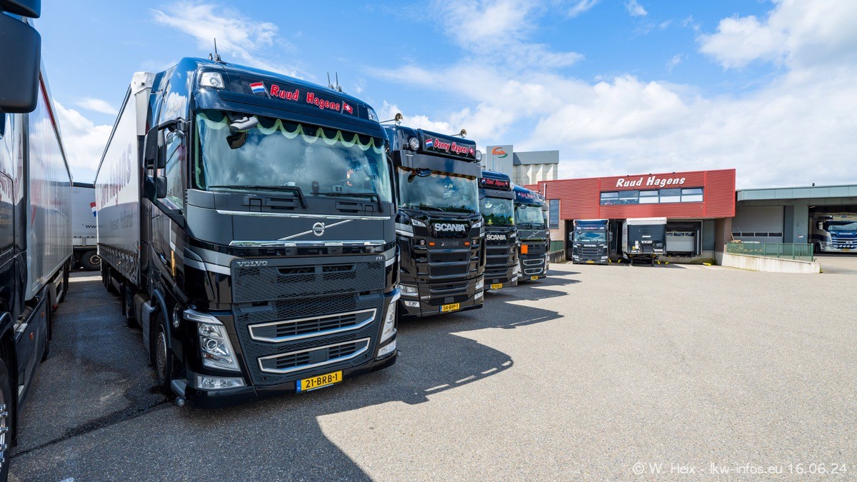 Ende Januar 2024 hat die Firma Gijs Boss die Fahrzeuge von Ruud Hagens Datrans B.V. übernommen. Das schwarze Design bleibt erhalten, den ersten neuen DAF XG+ mit neuem Aufleger, beschriftet mit "Datrans" gibt es auf den ersten Bildern in dieser Galerie zu sehen. Dazu kommen aktuell zwei weiße DAF XG+, die in Deutschland zugelassen sind (Moers MO, Kreis Wesel). Die Fahrzeuge in den bekannten Farben von Gijs Boss gibt es weiterhin. Diese stehen jedoch weiterhin verteilt bei Kunden oder Fahrern zuhause. Die zweite "neue" Firma ist jetzt Laura Hagens, Das ist bekanntlich die Tochter von Ruud Hagens. Unter dem Namen laufen alle SCANIA NextGen mit Schubboden/Walking-Floor Aufliegern. Die beiden M-Trex SCANIA gehören dazu. Alle Planenauflieger gehörten bisher Ruud Hagens Datrans B.V. Dazu kommen noch die IVECO S-Way, von Helene-Speed (Deutschland und Rumänien). Da sicherlich alle Fahrzeuge über länger Zeit noch "bunt gemischt" zu sehen sein werden, habe ich erstmal alles unter dem Namen Boss-Datrans & Laura Hagens zusammengefasst. Alle LKW werden auch weiterhin auf dem bekannten Gelände in Wanssum stehen.
