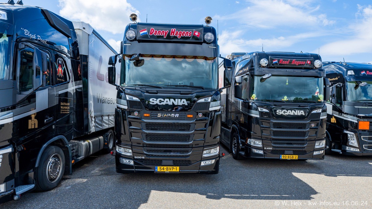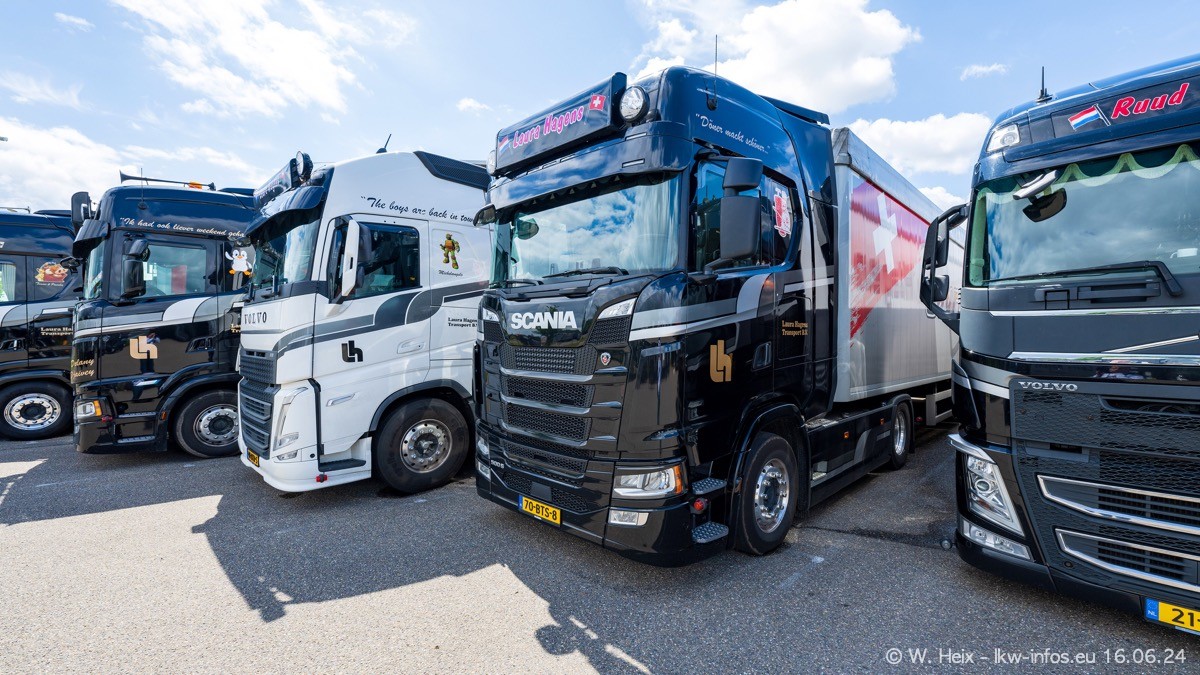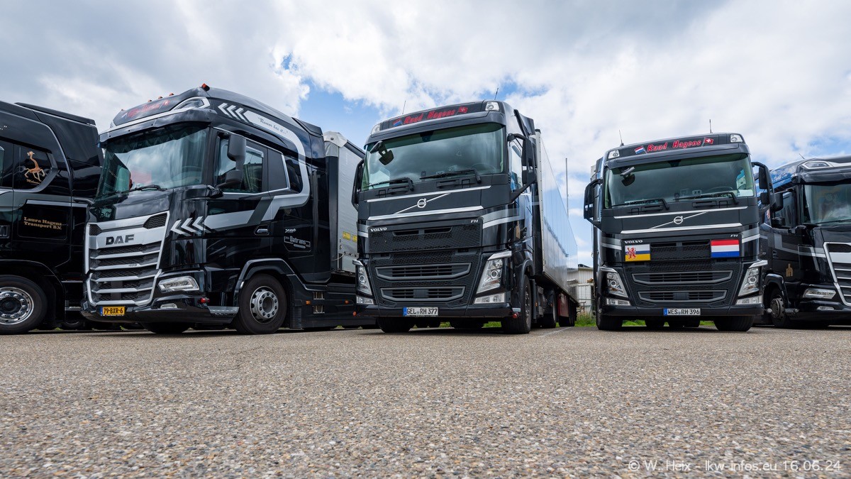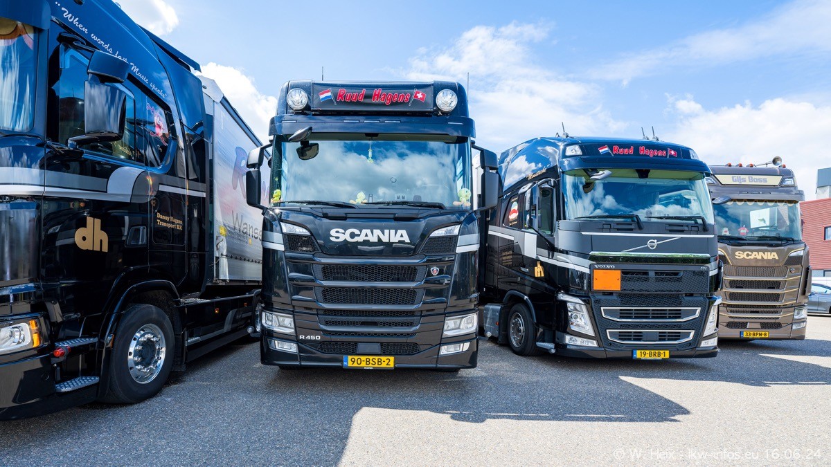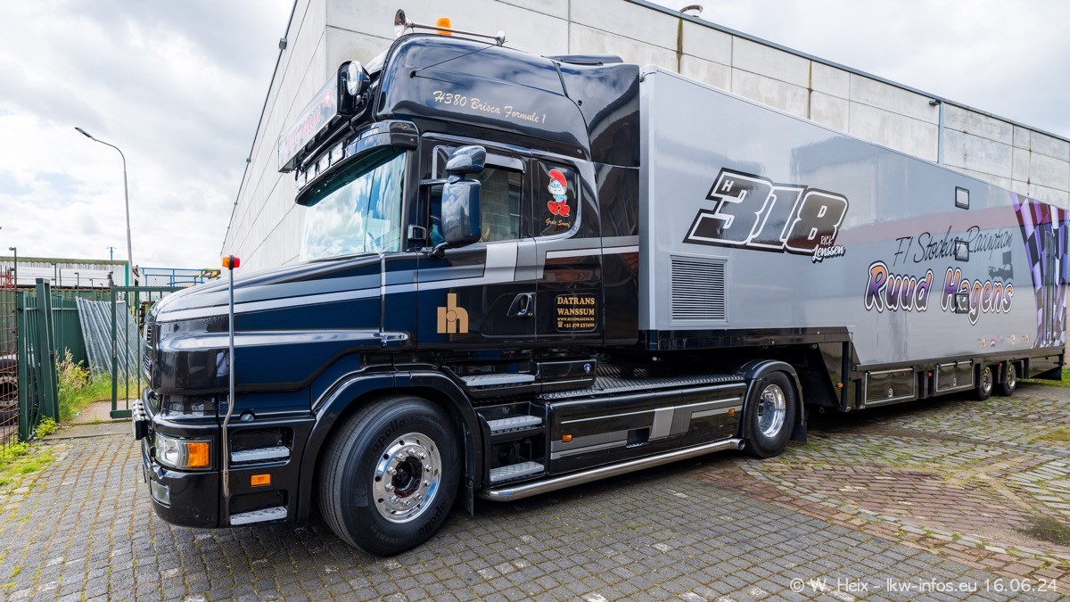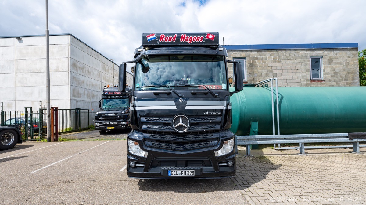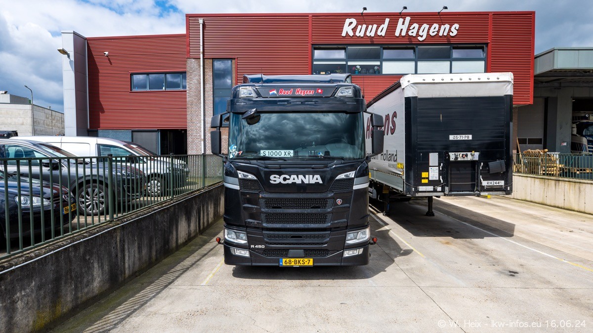 Ende Januar 2024 hat die Firma Gijs Boss die Fahrzeuge von Ruud Hagens Datrans B.V. übernommen. Das schwarze Design bleibt erhalten, den ersten neuen DAF XG+ mit neuem Aufleger, beschriftet mit "Datrans" gibt es auf den ersten Bildern in dieser Galerie zu sehen. Dazu kommen aktuell zwei weiße DAF XG+, die in Deutschland zugelassen sind (Moers MO, Kreis Wesel). Die Fahrzeuge in den bekannten Farben von Gijs Boss gibt es weiterhin. Diese stehen jedoch weiterhin verteilt bei Kunden oder Fahrern zuhause. Die zweite "neue" Firma ist jetzt Laura Hagens, Das ist bekanntlich die Tochter von Ruud Hagens. Unter dem Namen laufen alle SCANIA NextGen mit Schubboden/Walking-Floor Aufliegern. Die beiden M-Trex SCANIA gehören dazu. Alle Planenauflieger gehörten bisher Ruud Hagens Datrans B.V. Dazu kommen noch die IVECO S-Way, von Helene-Speed (Deutschland und Rumänien). Da sicherlich alle Fahrzeuge über länger Zeit noch "bunt gemischt" zu sehen sein werden, habe ich erstmal alles unter dem Namen Boss-Datrans & Laura Hagens zusammengefasst. Alle LKW werden auch weiterhin auf dem bekannten Gelände in Wanssum stehen.