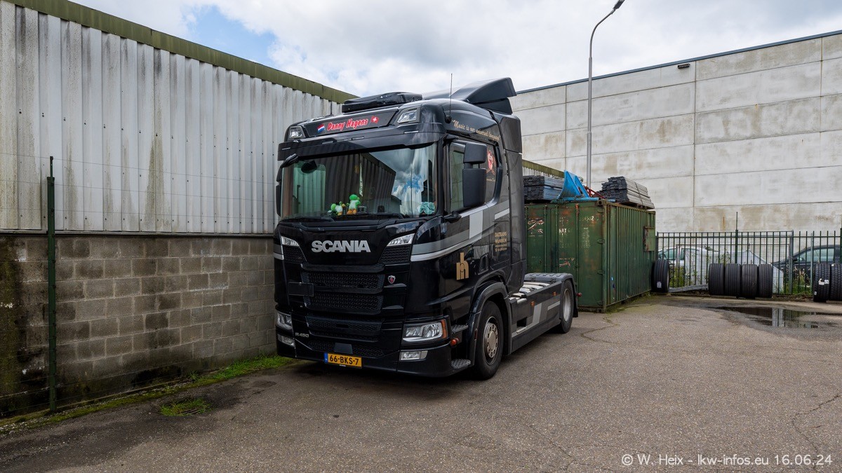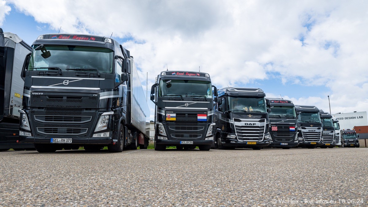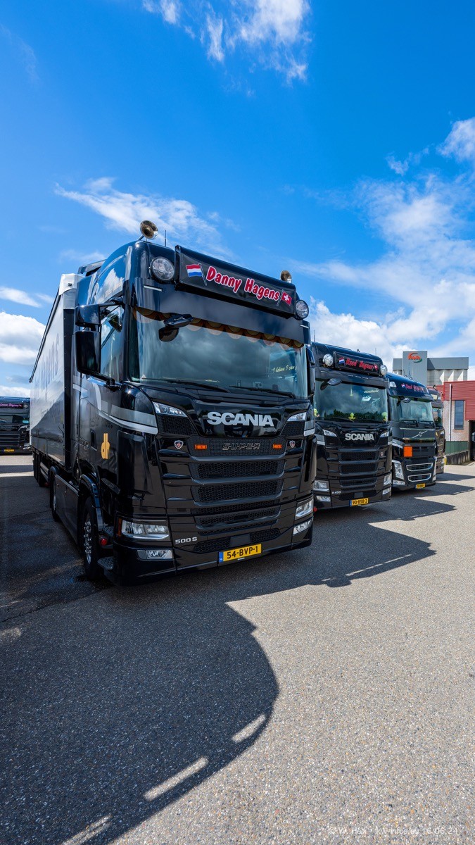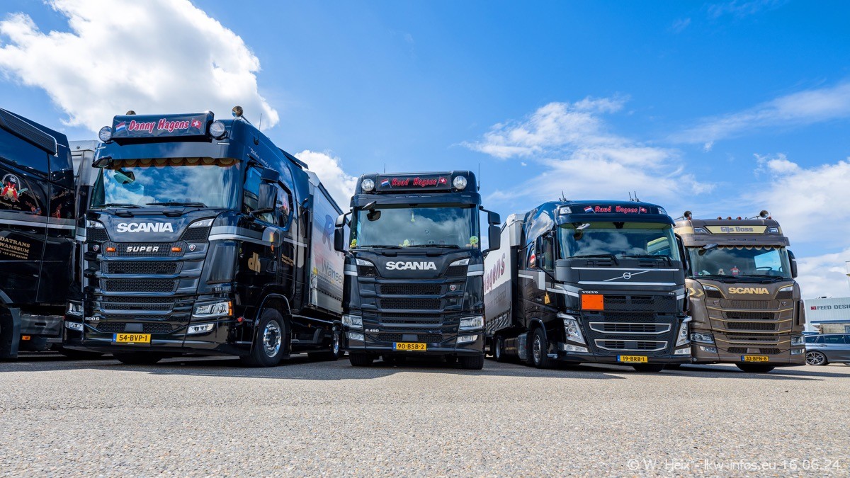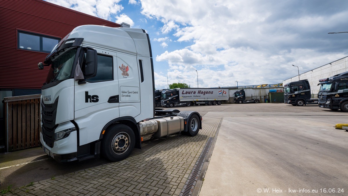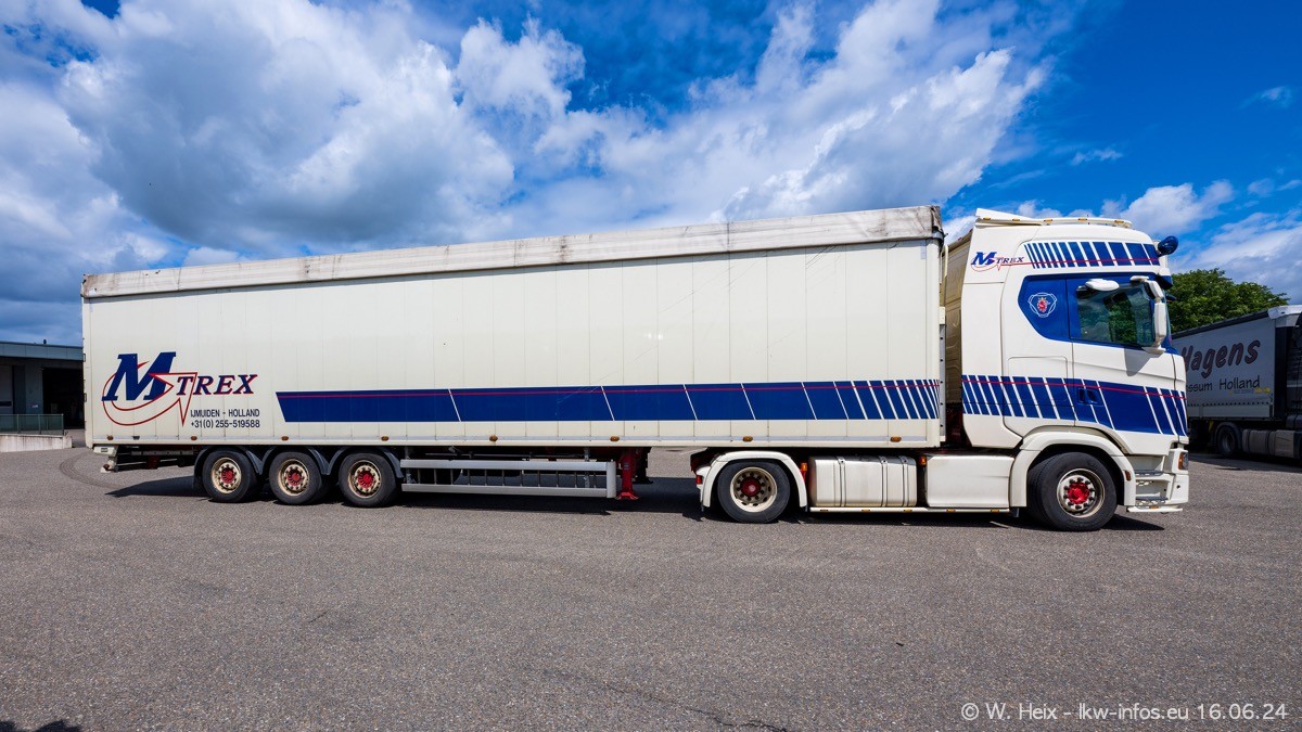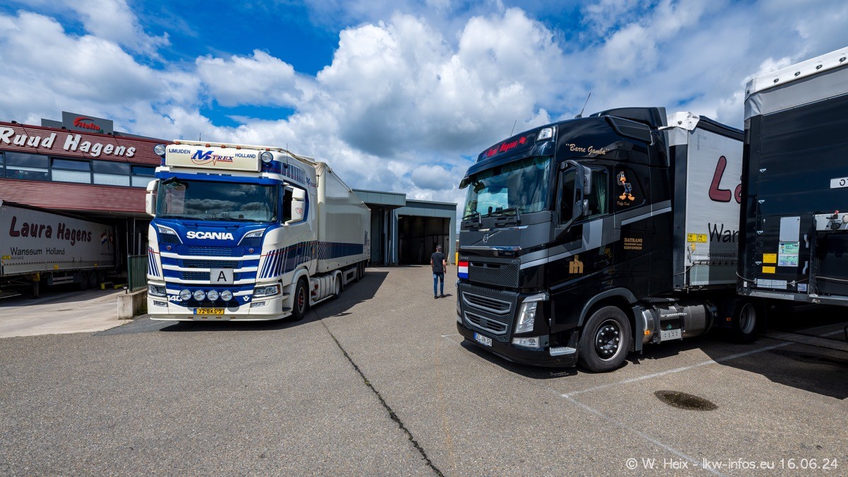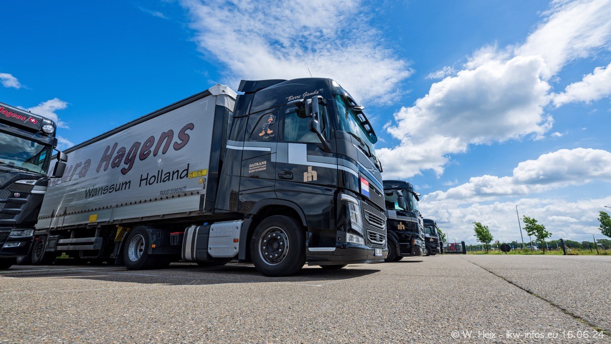 Ende Januar 2024 hat die Firma Gijs Boss die Fahrzeuge von Ruud Hagens Datrans B.V. übernommen. Das schwarze Design bleibt erhalten, den ersten neuen DAF XG+ mit neuem Aufleger, beschriftet mit "Datrans" gibt es auf den ersten Bildern in dieser Galerie zu sehen. Dazu kommen aktuell zwei weiße DAF XG+, die in Deutschland zugelassen sind (Moers MO, Kreis Wesel). Die Fahrzeuge in den bekannten Farben von Gijs Boss gibt es weiterhin. Diese stehen jedoch weiterhin verteilt bei Kunden oder Fahrern zuhause. Die zweite "neue" Firma ist jetzt Laura Hagens, Das ist bekanntlich die Tochter von Ruud Hagens. Unter dem Namen laufen alle SCANIA NextGen mit Schubboden/Walking-Floor Aufliegern. Die beiden M-Trex SCANIA gehören dazu. Alle Planenauflieger gehörten bisher Ruud Hagens Datrans B.V. Dazu kommen noch die IVECO S-Way, von Helene-Speed (Deutschland und Rumänien). Da sicherlich alle Fahrzeuge über länger Zeit noch "bunt gemischt" zu sehen sein werden, habe ich erstmal alles unter dem Namen Boss-Datrans & Laura Hagens zusammengefasst. Alle LKW werden auch weiterhin auf dem bekannten Gelände in Wanssum stehen.
