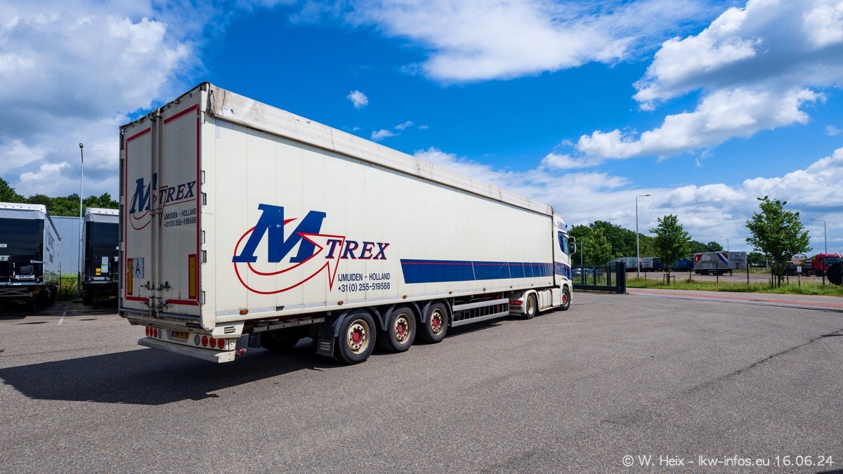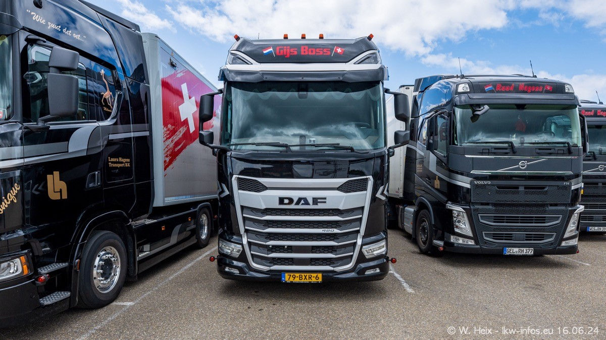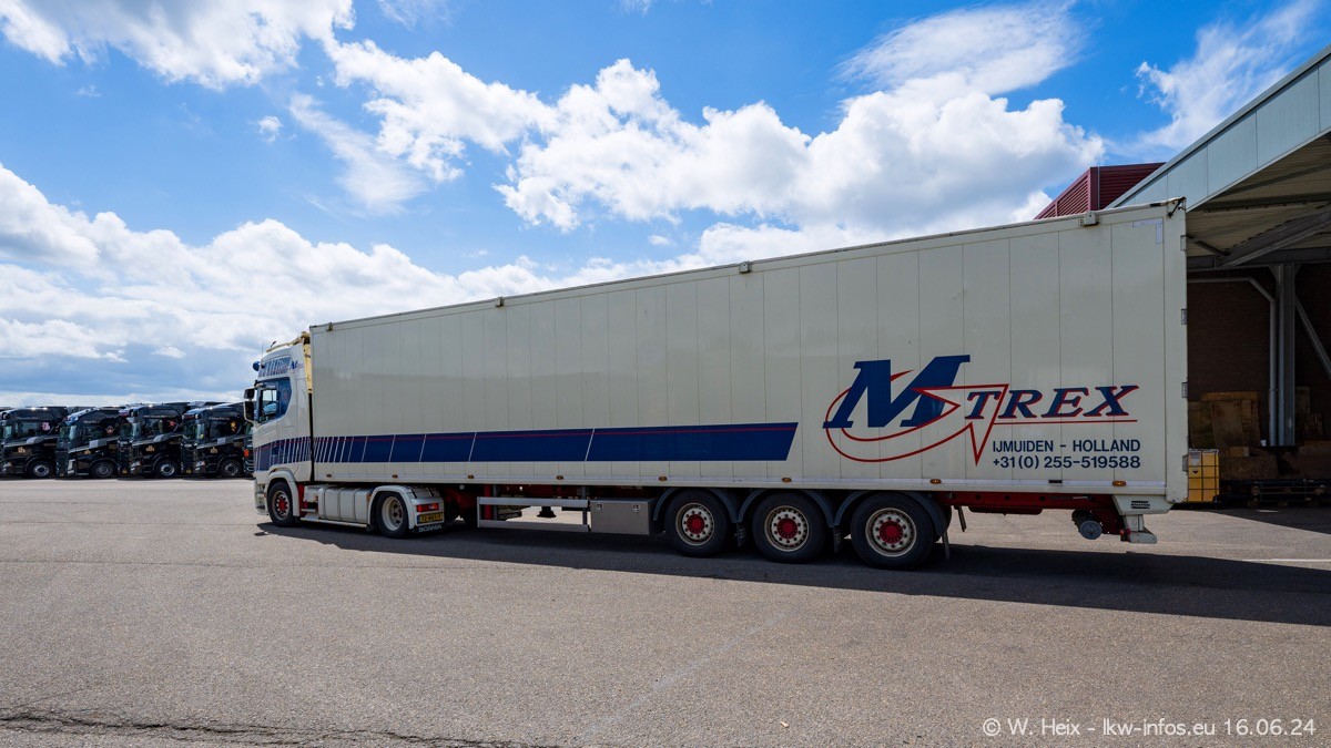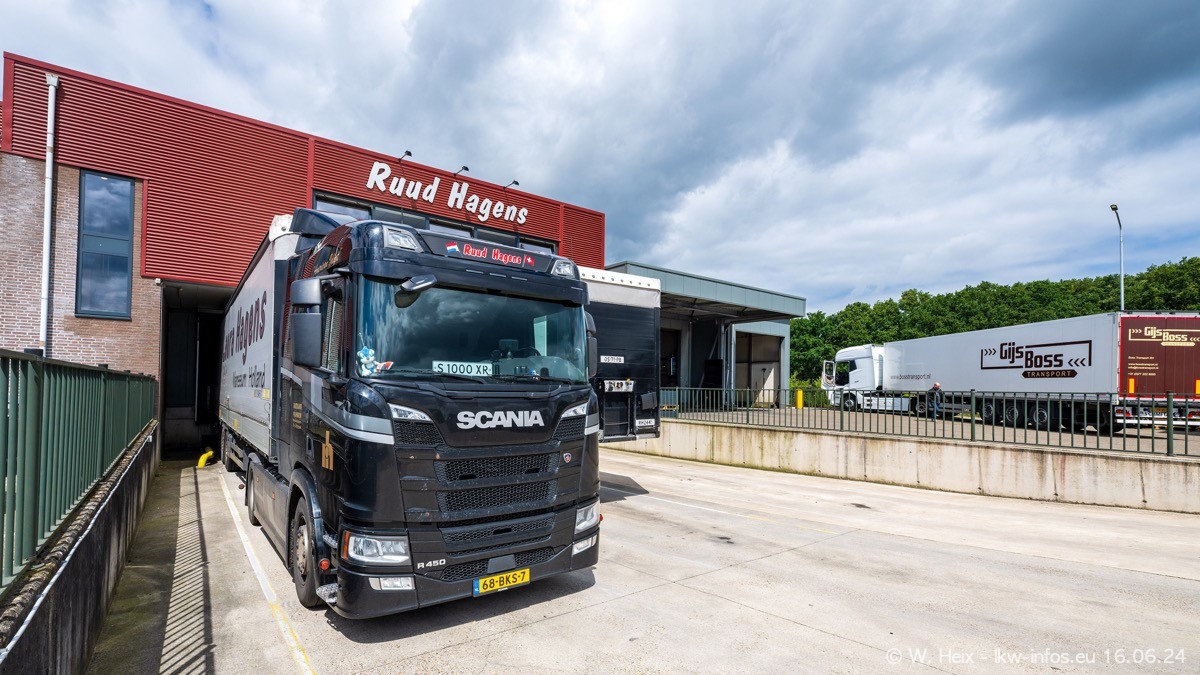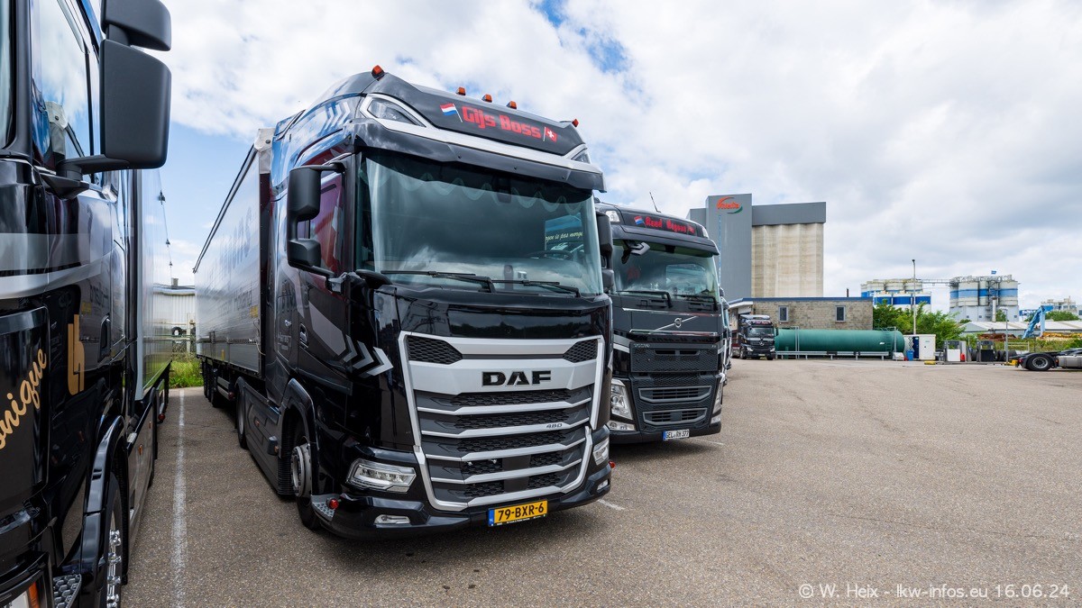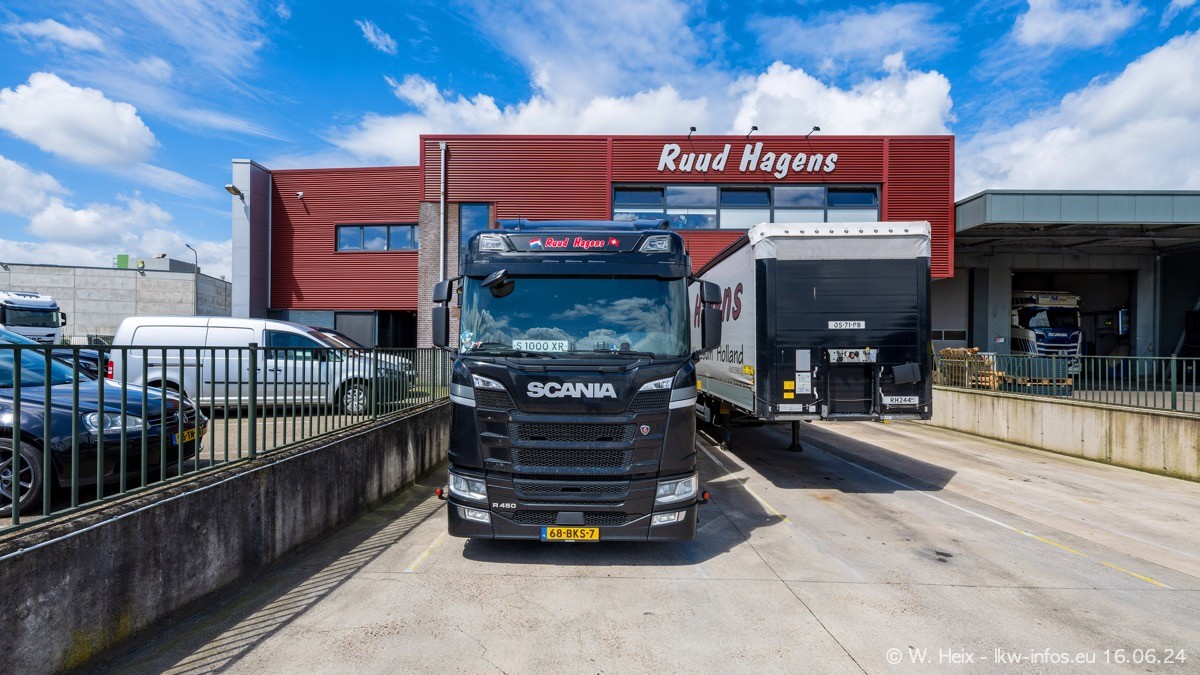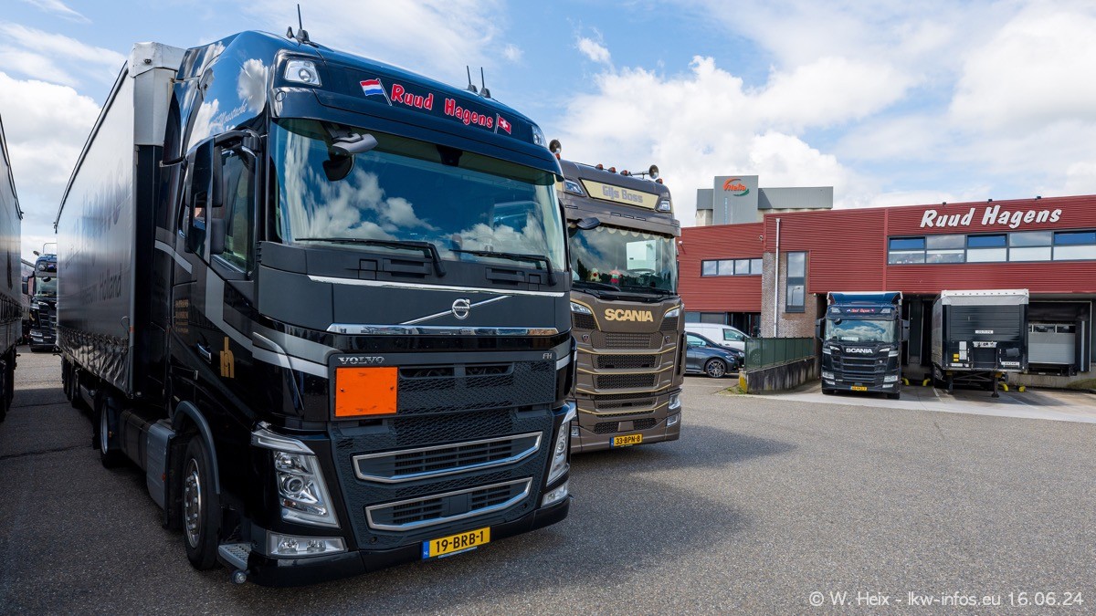 Ende Januar 2024 hat die Firma Gijs Boss die Fahrzeuge von Ruud Hagens Datrans B.V. übernommen. Das schwarze Design bleibt erhalten, den ersten neuen DAF XG+ mit neuem Aufleger, beschriftet mit "Datrans" gibt es auf den ersten Bildern in dieser Galerie zu sehen. Dazu kommen aktuell zwei weiße DAF XG+, die in Deutschland zugelassen sind (Moers MO, Kreis Wesel). Die Fahrzeuge in den bekannten Farben von Gijs Boss gibt es weiterhin. Diese stehen jedoch weiterhin verteilt bei Kunden oder Fahrern zuhause. Die zweite "neue" Firma ist jetzt Laura Hagens, Das ist bekanntlich die Tochter von Ruud Hagens. Unter dem Namen laufen alle SCANIA NextGen mit Schubboden/Walking-Floor Aufliegern. Die beiden M-Trex SCANIA gehören dazu. Alle Planenauflieger gehörten bisher Ruud Hagens Datrans B.V. Dazu kommen noch die IVECO S-Way, von Helene-Speed (Deutschland und Rumänien). Da sicherlich alle Fahrzeuge über länger Zeit noch "bunt gemischt" zu sehen sein werden, habe ich erstmal alles unter dem Namen Boss-Datrans & Laura Hagens zusammengefasst. Alle LKW werden auch weiterhin auf dem bekannten Gelände in Wanssum stehen.