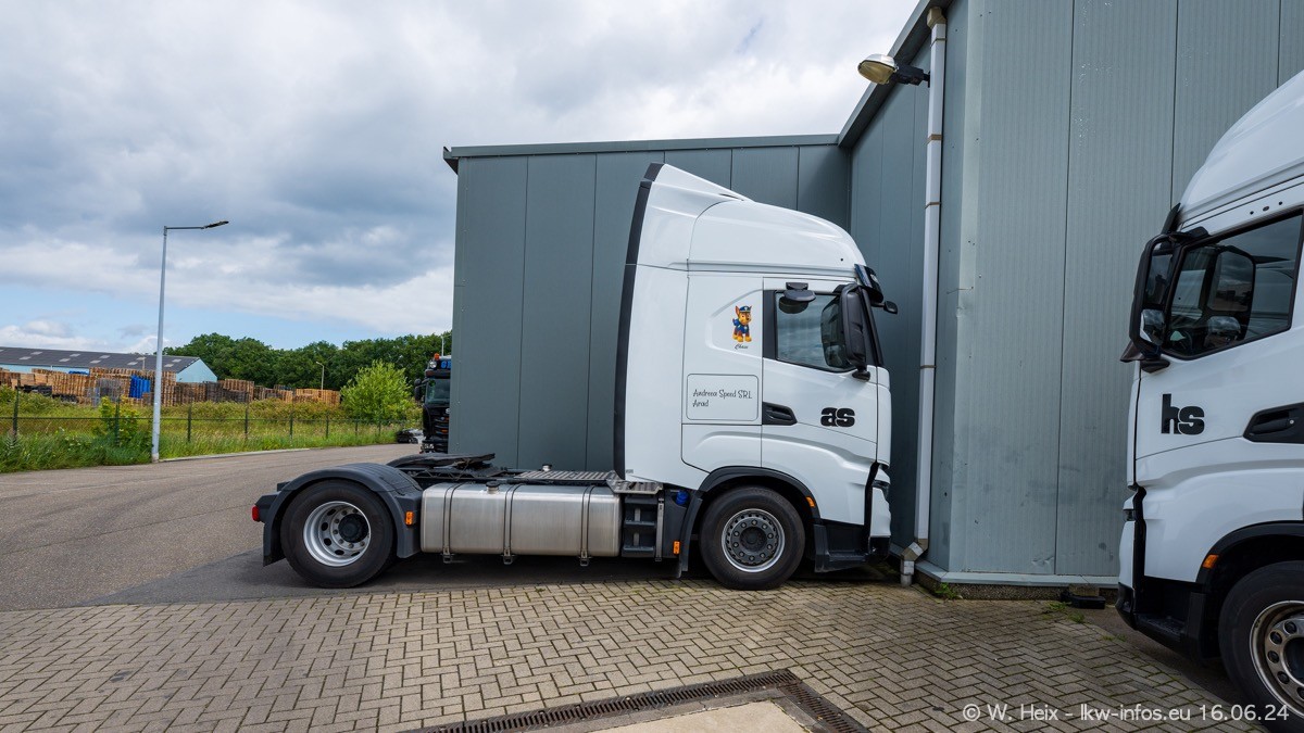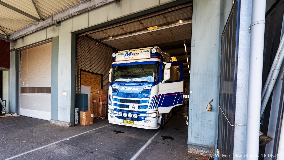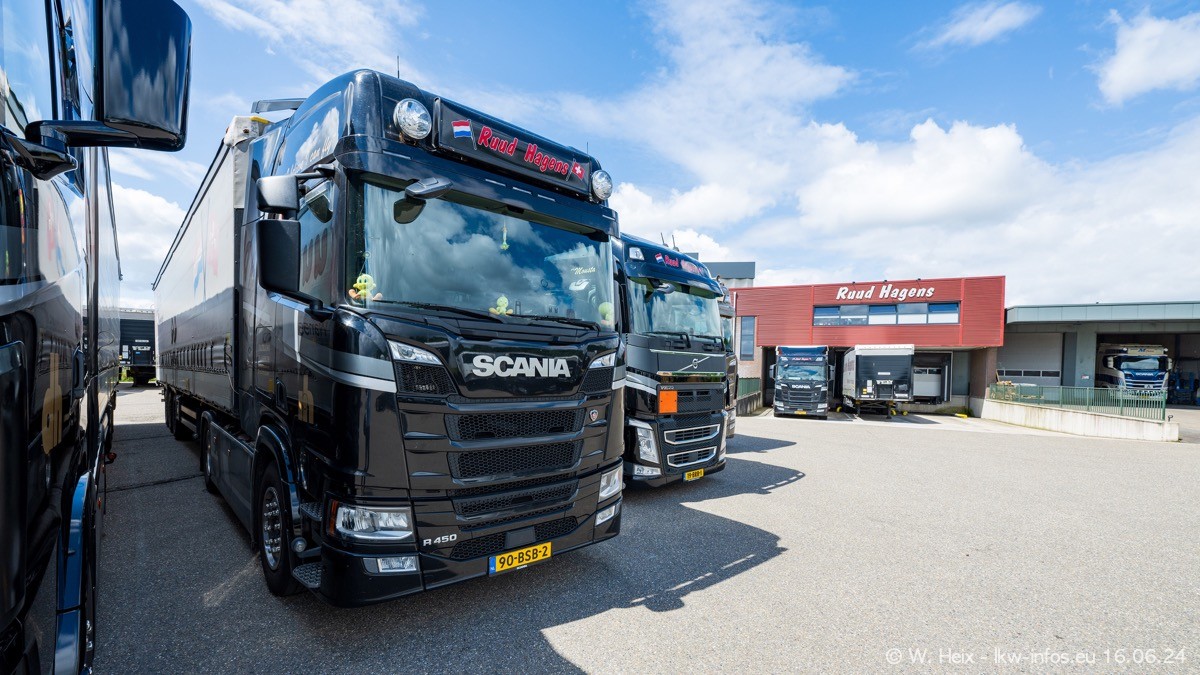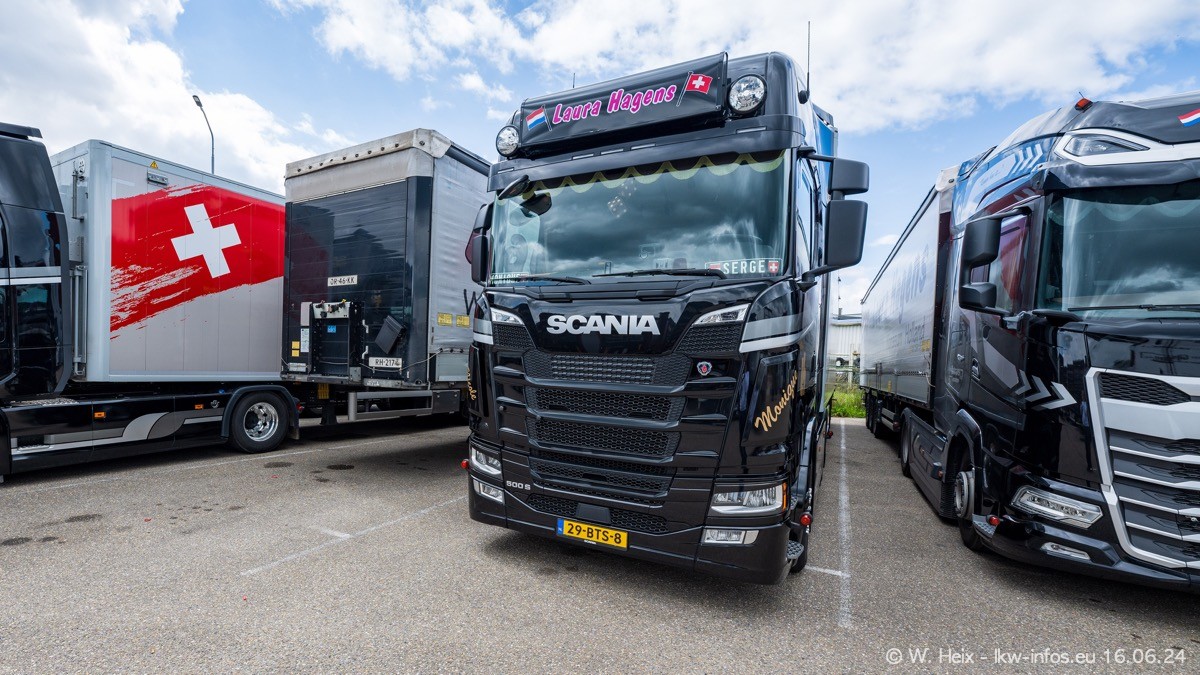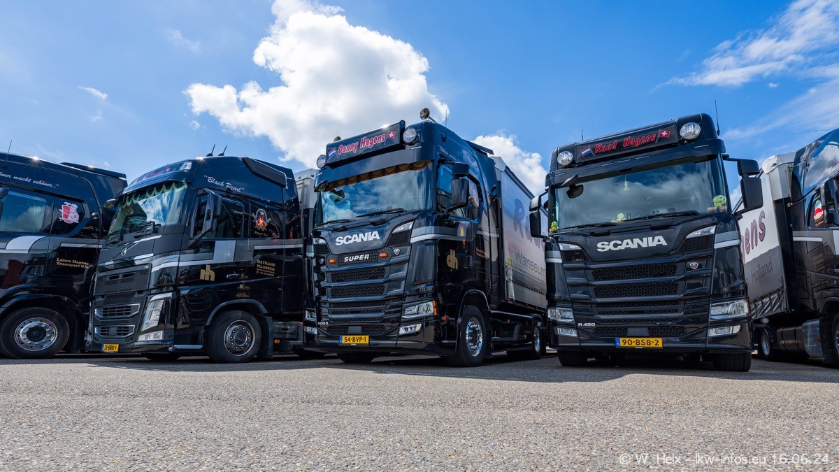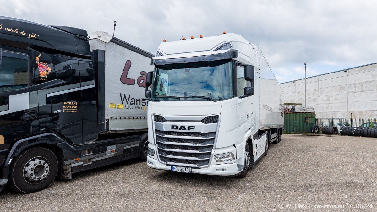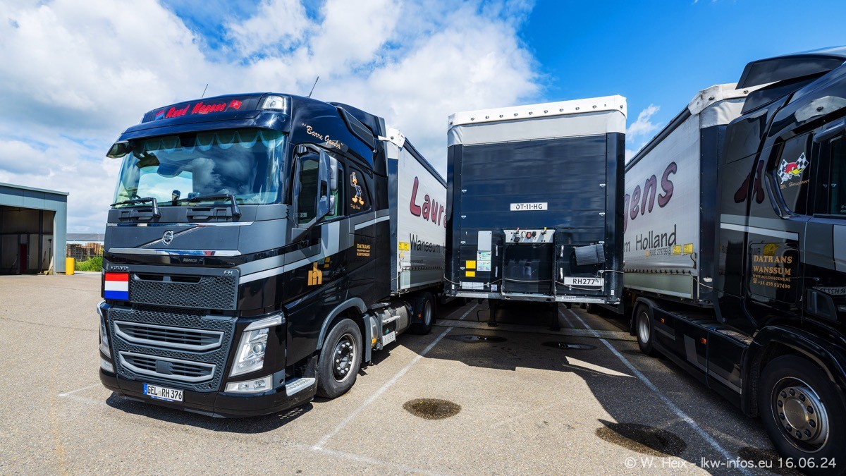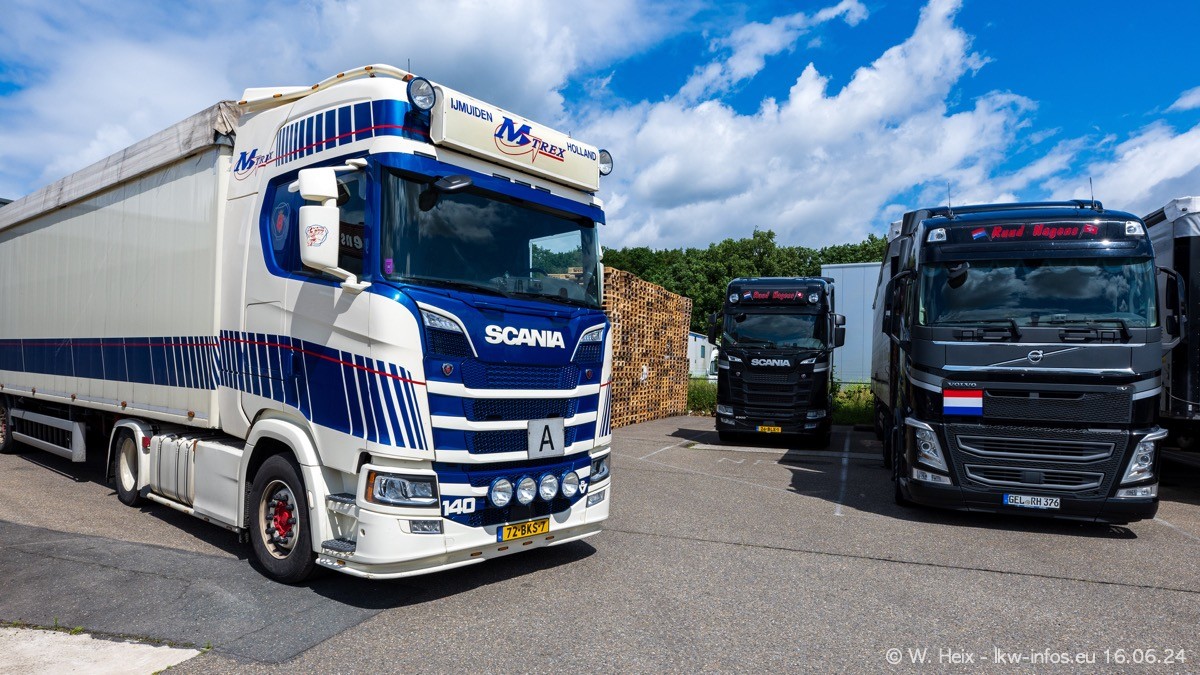 Ende Januar 2024 hat die Firma Gijs Boss die Fahrzeuge von Ruud Hagens Datrans B.V. übernommen. Das schwarze Design bleibt erhalten, den ersten neuen DAF XG+ mit neuem Aufleger, beschriftet mit "Datrans" gibt es auf den ersten Bildern in dieser Galerie zu sehen. Dazu kommen aktuell zwei weiße DAF XG+, die in Deutschland zugelassen sind (Moers MO, Kreis Wesel). Die Fahrzeuge in den bekannten Farben von Gijs Boss gibt es weiterhin. Diese stehen jedoch weiterhin verteilt bei Kunden oder Fahrern zuhause. Die zweite "neue" Firma ist jetzt Laura Hagens, Das ist bekanntlich die Tochter von Ruud Hagens. Unter dem Namen laufen alle SCANIA NextGen mit Schubboden/Walking-Floor Aufliegern. Die beiden M-Trex SCANIA gehören dazu. Alle Planenauflieger gehörten bisher Ruud Hagens Datrans B.V. Dazu kommen noch die IVECO S-Way, von Helene-Speed (Deutschland und Rumänien). Da sicherlich alle Fahrzeuge über länger Zeit noch "bunt gemischt" zu sehen sein werden, habe ich erstmal alles unter dem Namen Boss-Datrans & Laura Hagens zusammengefasst. Alle LKW werden auch weiterhin auf dem bekannten Gelände in Wanssum stehen.