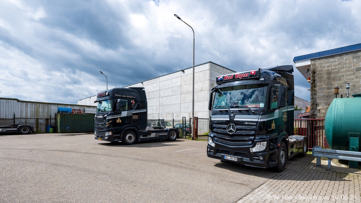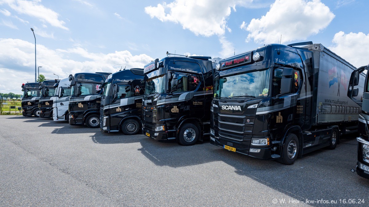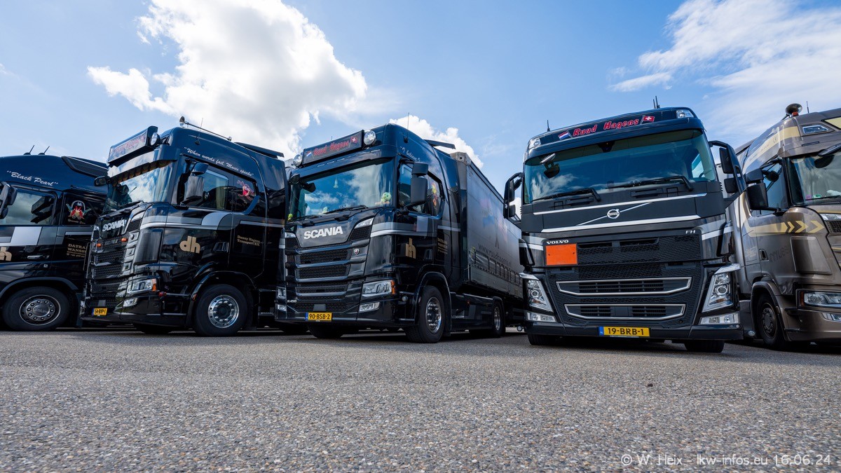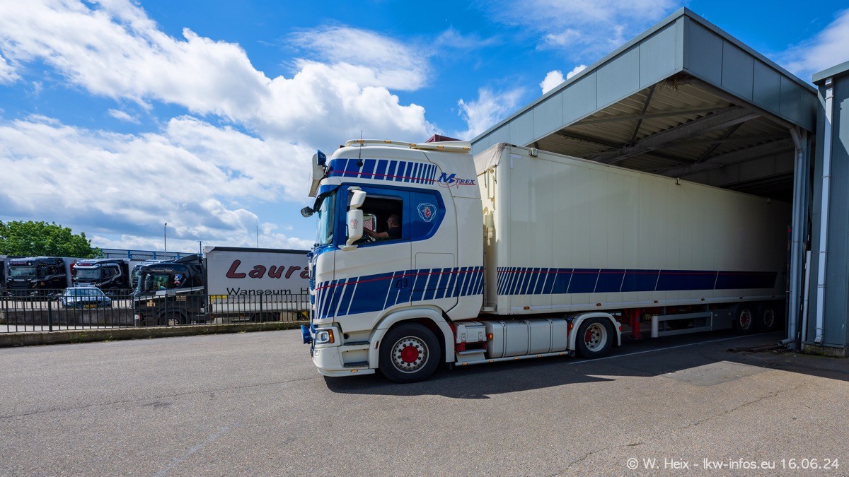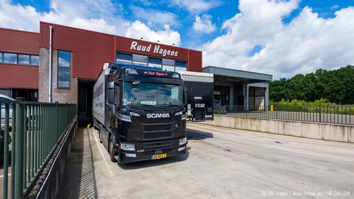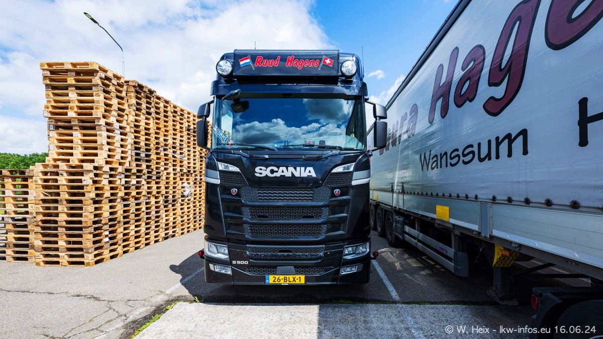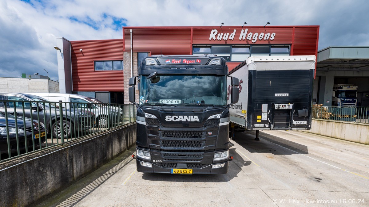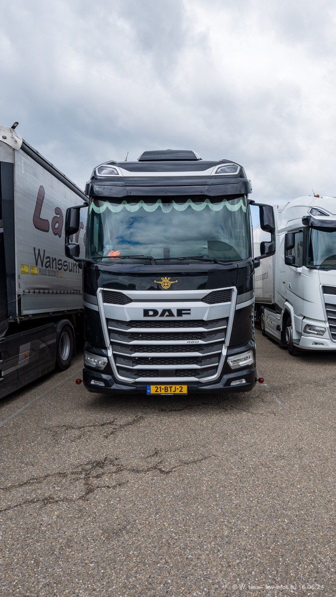 Ende Januar 2024 hat die Firma Gijs Boss die Fahrzeuge von Ruud Hagens Datrans B.V. übernommen. Das schwarze Design bleibt erhalten, den ersten neuen DAF XG+ mit neuem Aufleger, beschriftet mit "Datrans" gibt es auf den ersten Bildern in dieser Galerie zu sehen. Dazu kommen aktuell zwei weiße DAF XG+, die in Deutschland zugelassen sind (Moers MO, Kreis Wesel). Die Fahrzeuge in den bekannten Farben von Gijs Boss gibt es weiterhin. Diese stehen jedoch weiterhin verteilt bei Kunden oder Fahrern zuhause. Die zweite "neue" Firma ist jetzt Laura Hagens, Das ist bekanntlich die Tochter von Ruud Hagens. Unter dem Namen laufen alle SCANIA NextGen mit Schubboden/Walking-Floor Aufliegern. Die beiden M-Trex SCANIA gehören dazu. Alle Planenauflieger gehörten bisher Ruud Hagens Datrans B.V. Dazu kommen noch die IVECO S-Way, von Helene-Speed (Deutschland und Rumänien). Da sicherlich alle Fahrzeuge über länger Zeit noch "bunt gemischt" zu sehen sein werden, habe ich erstmal alles unter dem Namen Boss-Datrans & Laura Hagens zusammengefasst. Alle LKW werden auch weiterhin auf dem bekannten Gelände in Wanssum stehen.