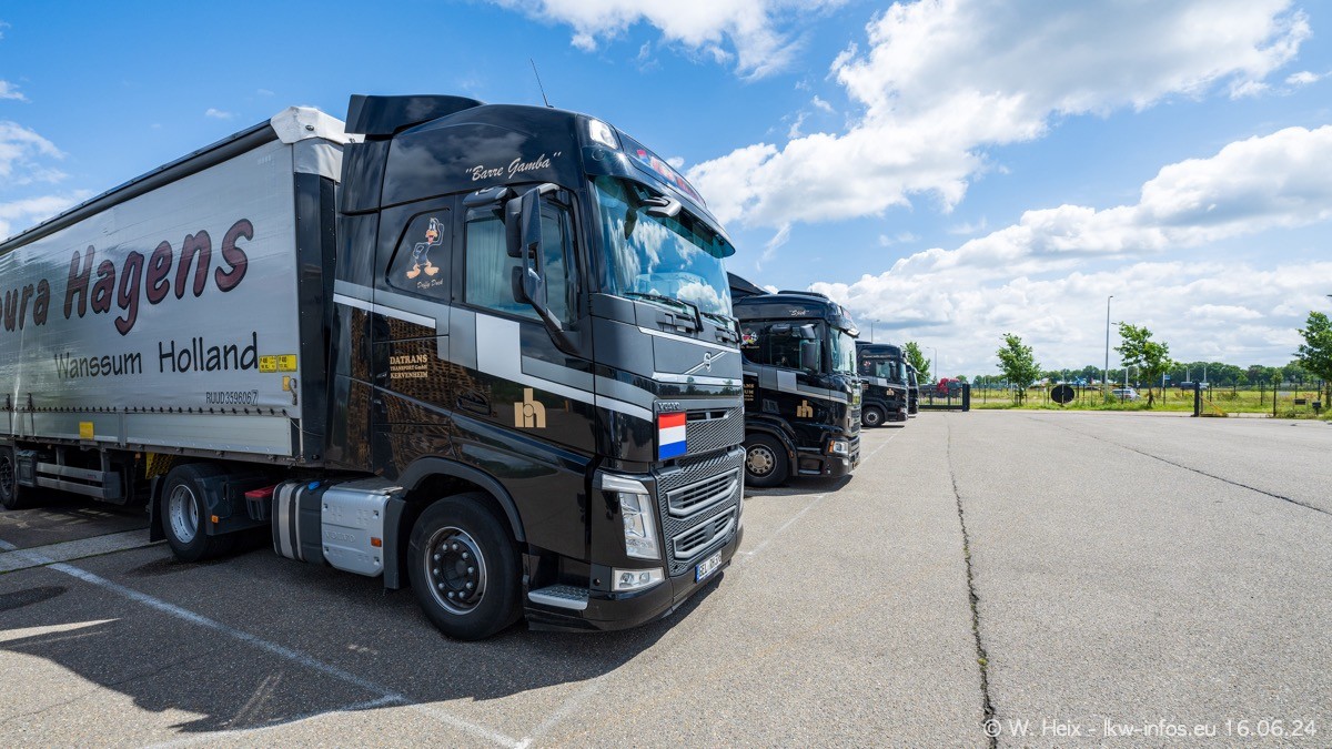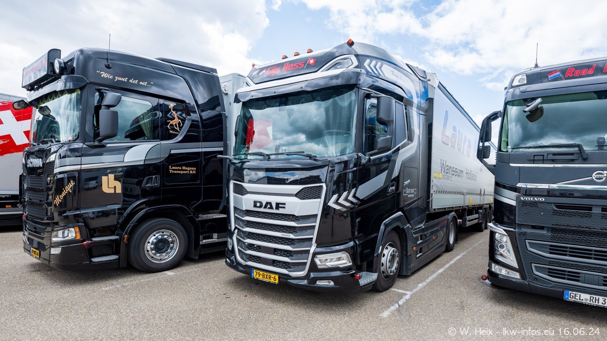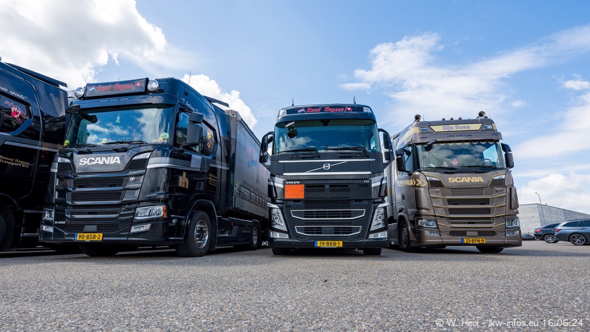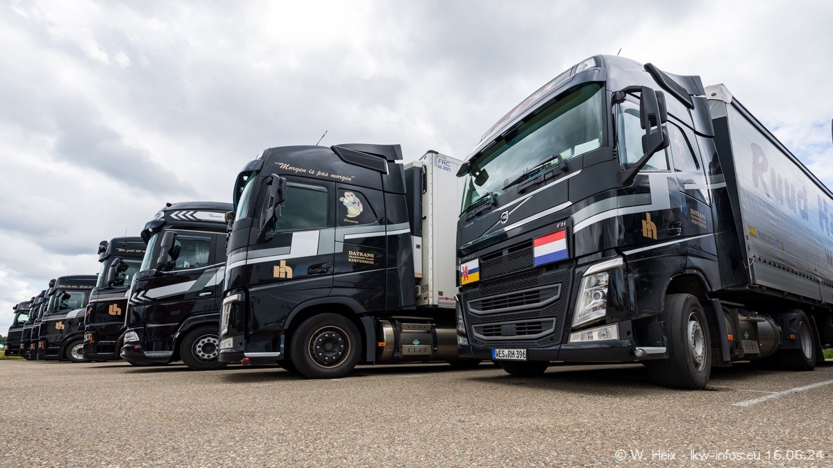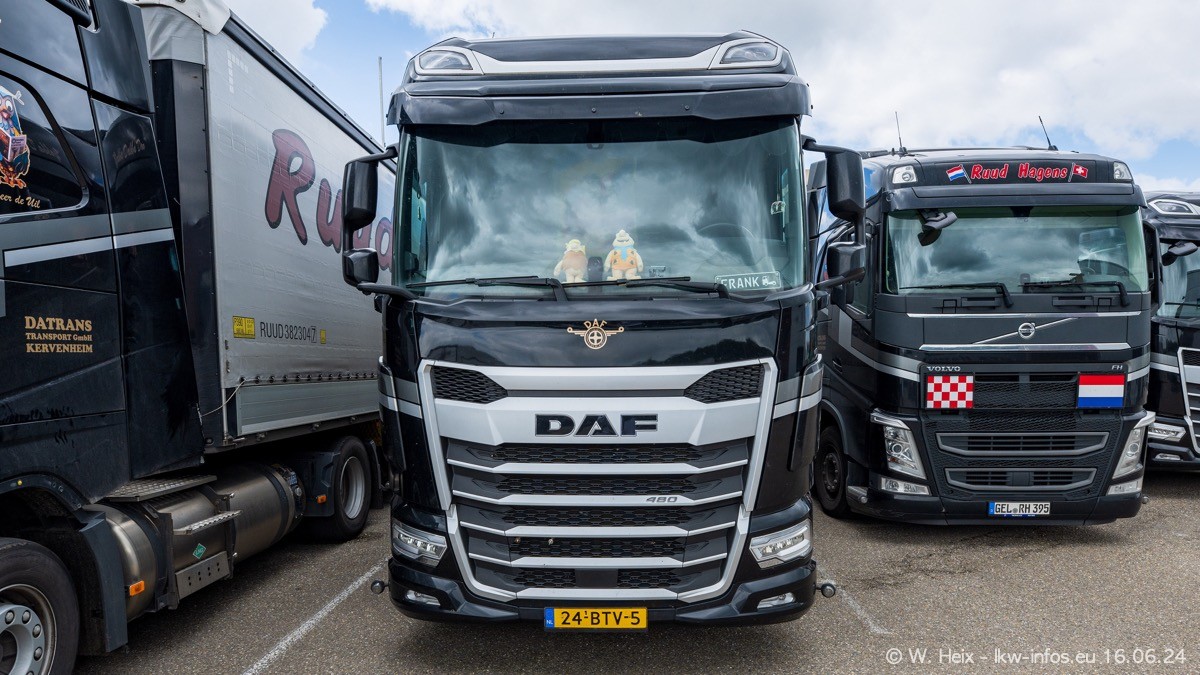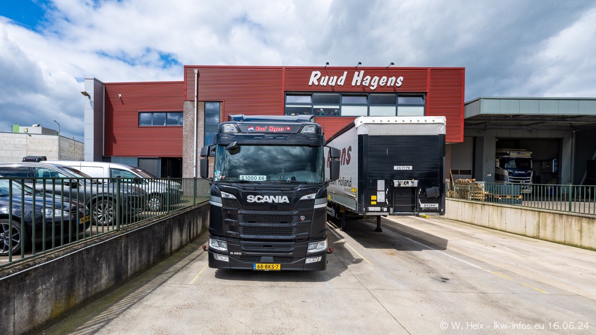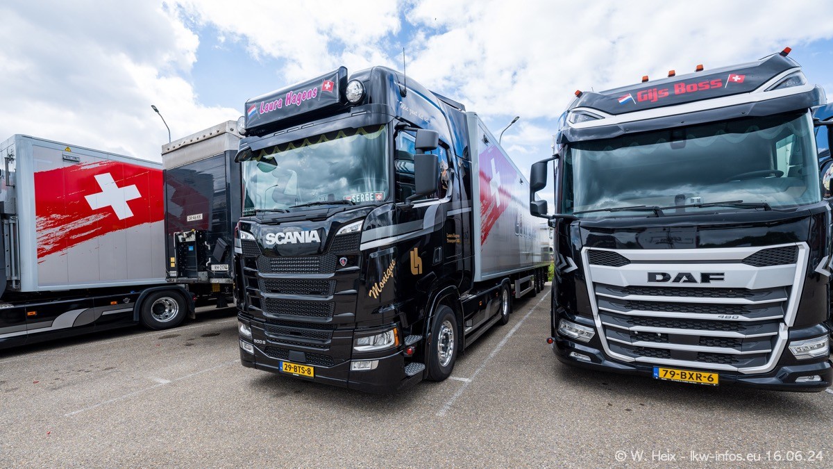 Ende Januar 2024 hat die Firma Gijs Boss die Fahrzeuge von Ruud Hagens Datrans B.V. übernommen. Das schwarze Design bleibt erhalten, den ersten neuen DAF XG+ mit neuem Aufleger, beschriftet mit "Datrans" gibt es auf den ersten Bildern in dieser Galerie zu sehen. Dazu kommen aktuell zwei weiße DAF XG+, die in Deutschland zugelassen sind (Moers MO, Kreis Wesel). Die Fahrzeuge in den bekannten Farben von Gijs Boss gibt es weiterhin. Diese stehen jedoch weiterhin verteilt bei Kunden oder Fahrern zuhause. Die zweite "neue" Firma ist jetzt Laura Hagens, Das ist bekanntlich die Tochter von Ruud Hagens. Unter dem Namen laufen alle SCANIA NextGen mit Schubboden/Walking-Floor Aufliegern. Die beiden M-Trex SCANIA gehören dazu. Alle Planenauflieger gehörten bisher Ruud Hagens Datrans B.V. Dazu kommen noch die IVECO S-Way, von Helene-Speed (Deutschland und Rumänien). Da sicherlich alle Fahrzeuge über länger Zeit noch "bunt gemischt" zu sehen sein werden, habe ich erstmal alles unter dem Namen Boss-Datrans & Laura Hagens zusammengefasst. Alle LKW werden auch weiterhin auf dem bekannten Gelände in Wanssum stehen.