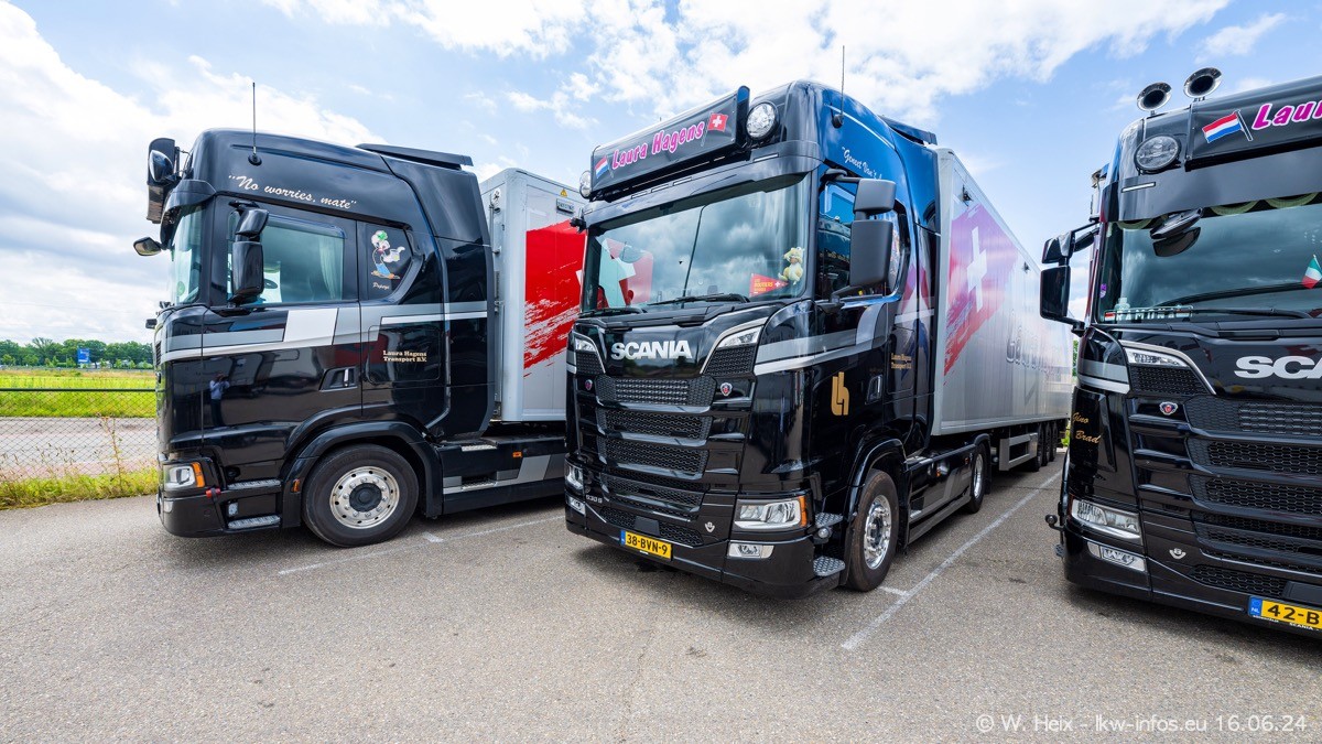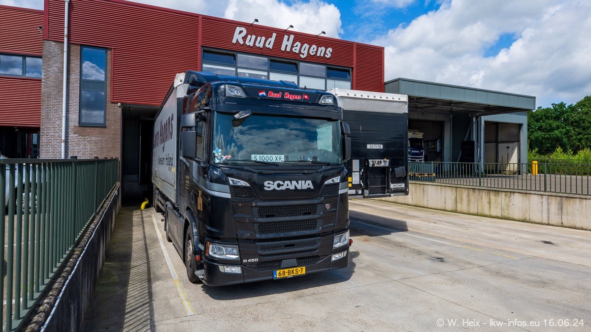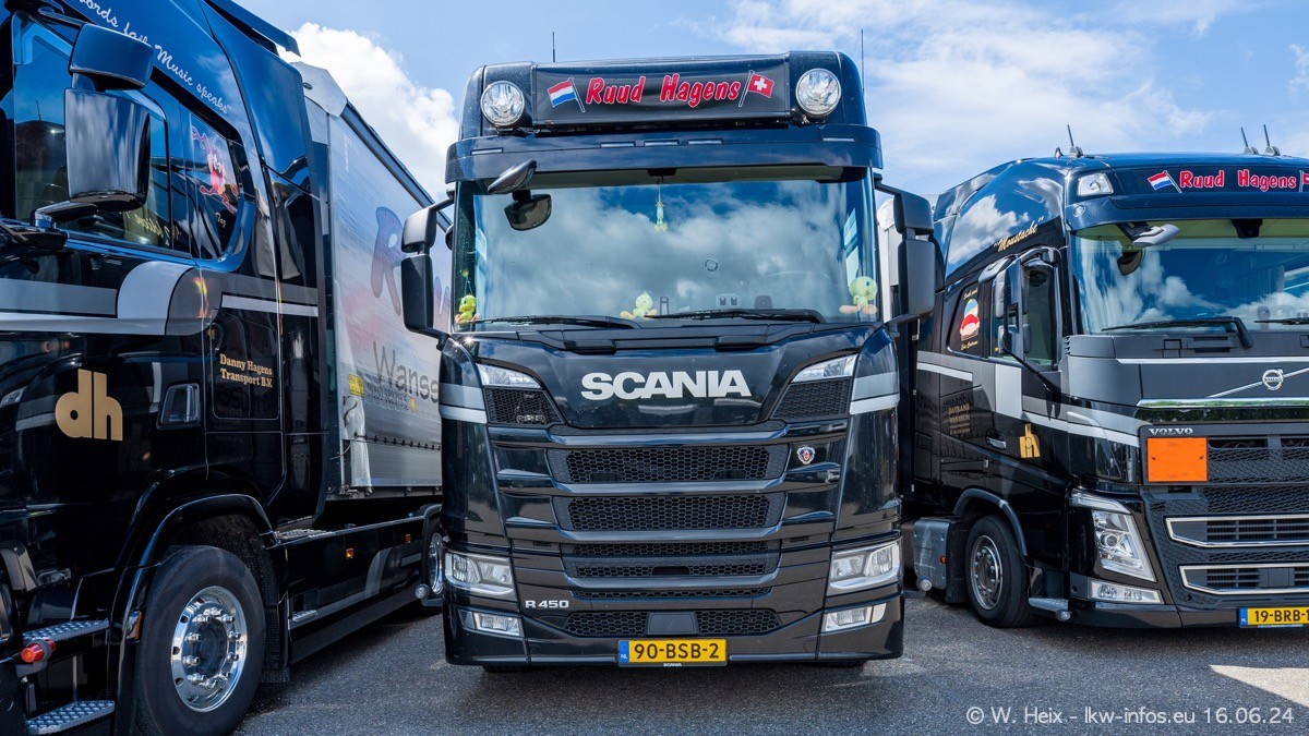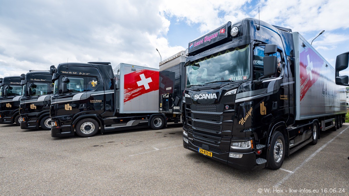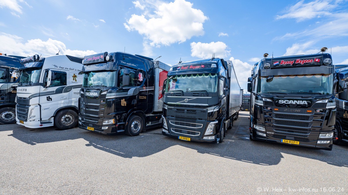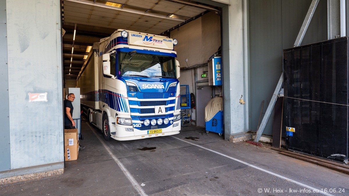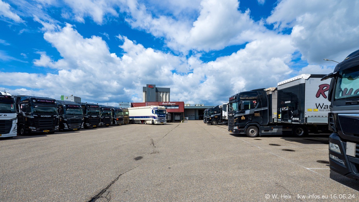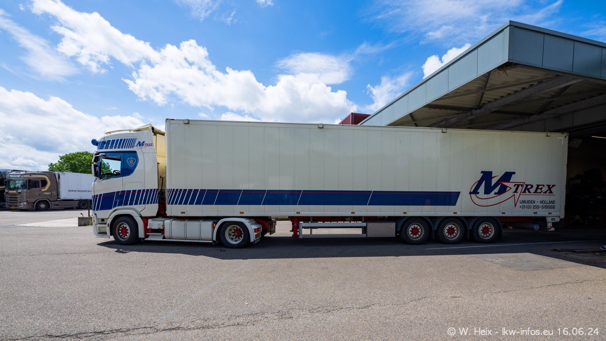 Ende Januar 2024 hat die Firma Gijs Boss die Fahrzeuge von Ruud Hagens Datrans B.V. übernommen. Das schwarze Design bleibt erhalten, den ersten neuen DAF XG+ mit neuem Aufleger, beschriftet mit "Datrans" gibt es auf den ersten Bildern in dieser Galerie zu sehen. Dazu kommen aktuell zwei weiße DAF XG+, die in Deutschland zugelassen sind (Moers MO, Kreis Wesel). Die Fahrzeuge in den bekannten Farben von Gijs Boss gibt es weiterhin. Diese stehen jedoch weiterhin verteilt bei Kunden oder Fahrern zuhause. Die zweite "neue" Firma ist jetzt Laura Hagens, Das ist bekanntlich die Tochter von Ruud Hagens. Unter dem Namen laufen alle SCANIA NextGen mit Schubboden/Walking-Floor Aufliegern. Die beiden M-Trex SCANIA gehören dazu. Alle Planenauflieger gehörten bisher Ruud Hagens Datrans B.V. Dazu kommen noch die IVECO S-Way, von Helene-Speed (Deutschland und Rumänien). Da sicherlich alle Fahrzeuge über länger Zeit noch "bunt gemischt" zu sehen sein werden, habe ich erstmal alles unter dem Namen Boss-Datrans & Laura Hagens zusammengefasst. Alle LKW werden auch weiterhin auf dem bekannten Gelände in Wanssum stehen.