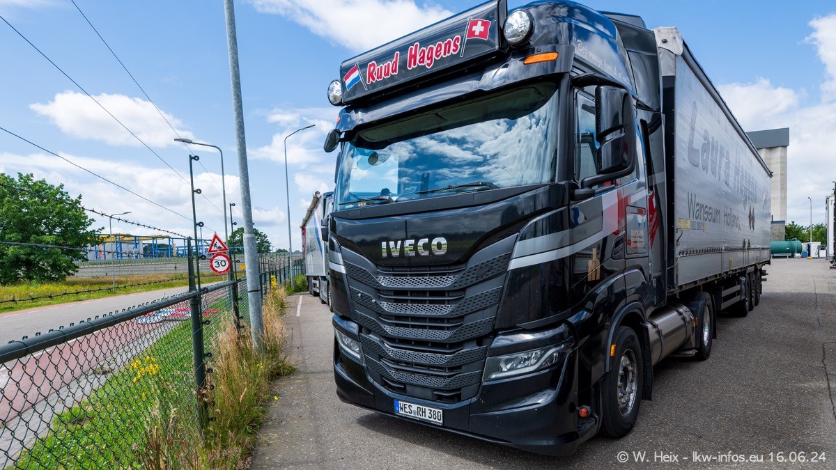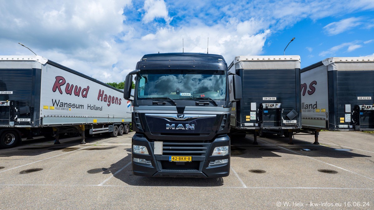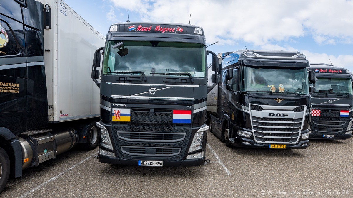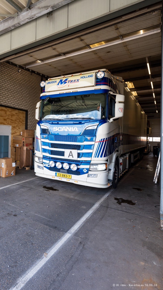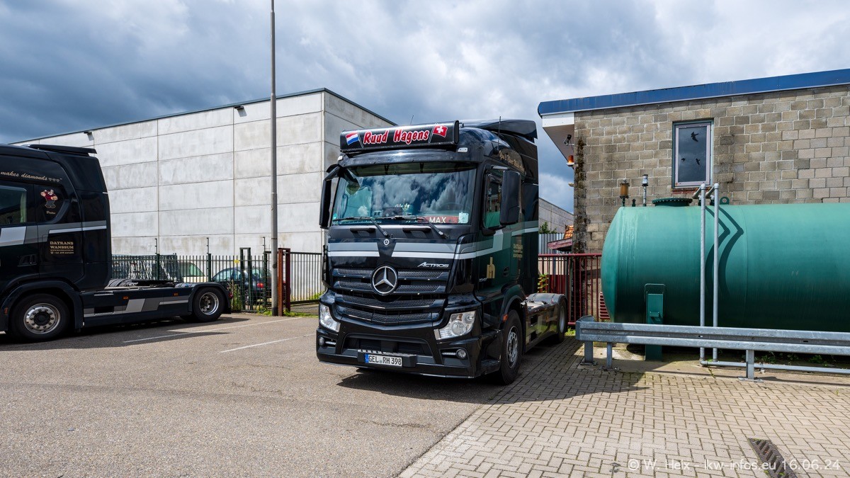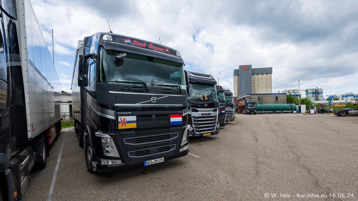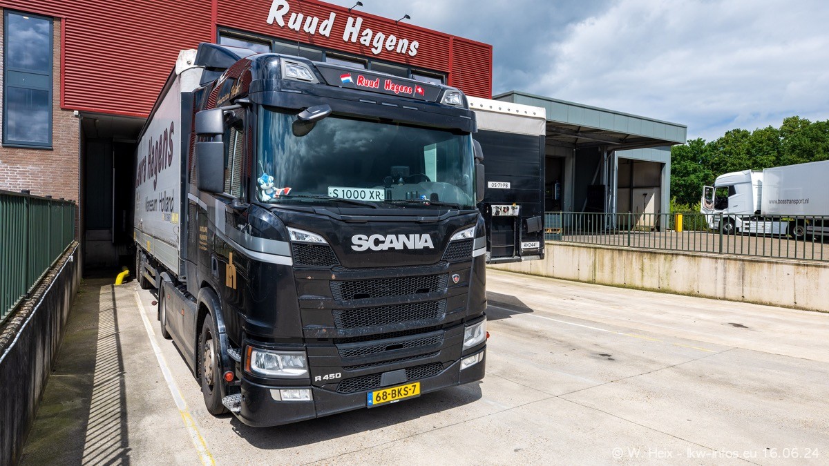 Ende Januar 2024 hat die Firma Gijs Boss die Fahrzeuge von Ruud Hagens Datrans B.V. übernommen. Das schwarze Design bleibt erhalten, den ersten neuen DAF XG+ mit neuem Aufleger, beschriftet mit "Datrans" gibt es auf den ersten Bildern in dieser Galerie zu sehen. Dazu kommen aktuell zwei weiße DAF XG+, die in Deutschland zugelassen sind (Moers MO, Kreis Wesel). Die Fahrzeuge in den bekannten Farben von Gijs Boss gibt es weiterhin. Diese stehen jedoch weiterhin verteilt bei Kunden oder Fahrern zuhause. Die zweite "neue" Firma ist jetzt Laura Hagens, Das ist bekanntlich die Tochter von Ruud Hagens. Unter dem Namen laufen alle SCANIA NextGen mit Schubboden/Walking-Floor Aufliegern. Die beiden M-Trex SCANIA gehören dazu. Alle Planenauflieger gehörten bisher Ruud Hagens Datrans B.V. Dazu kommen noch die IVECO S-Way, von Helene-Speed (Deutschland und Rumänien). Da sicherlich alle Fahrzeuge über länger Zeit noch "bunt gemischt" zu sehen sein werden, habe ich erstmal alles unter dem Namen Boss-Datrans & Laura Hagens zusammengefasst. Alle LKW werden auch weiterhin auf dem bekannten Gelände in Wanssum stehen.