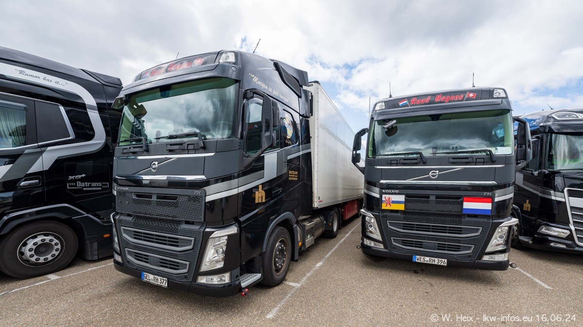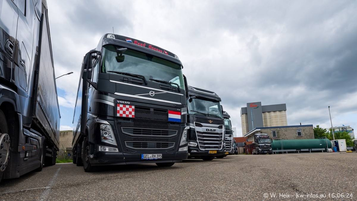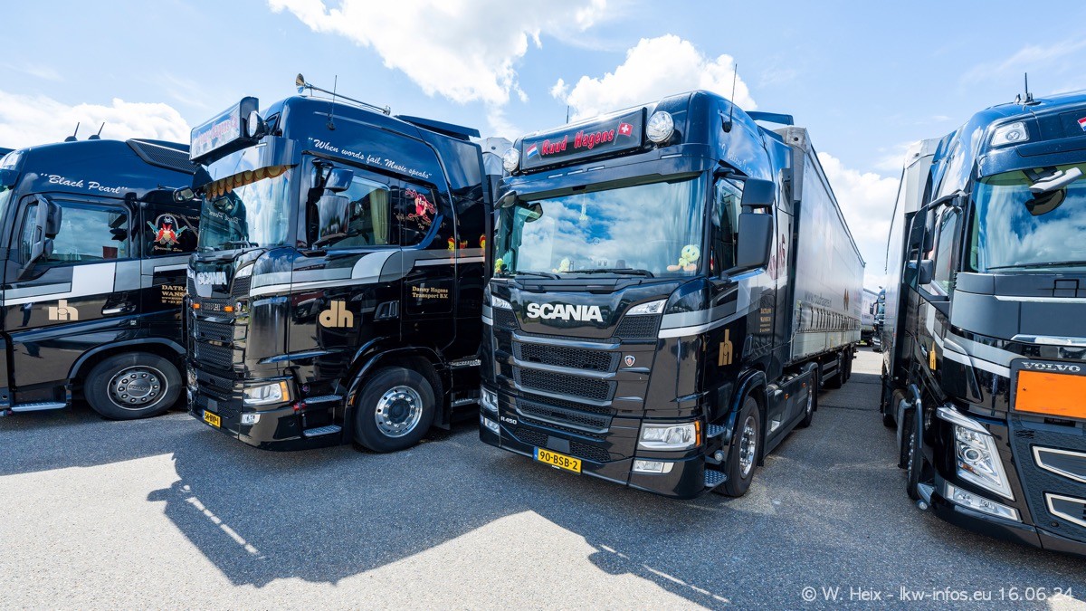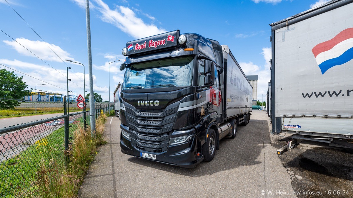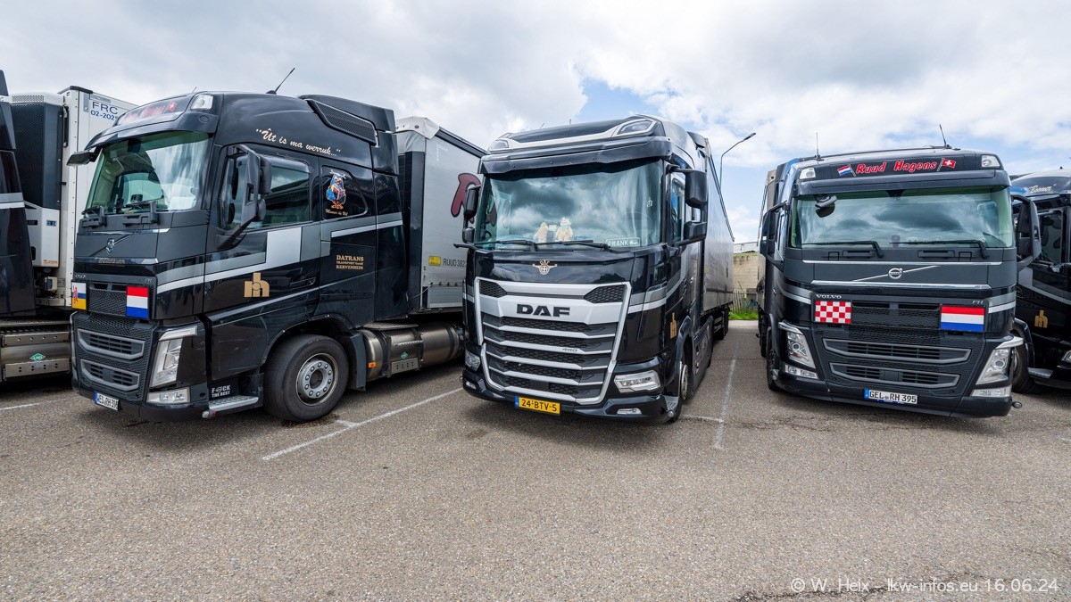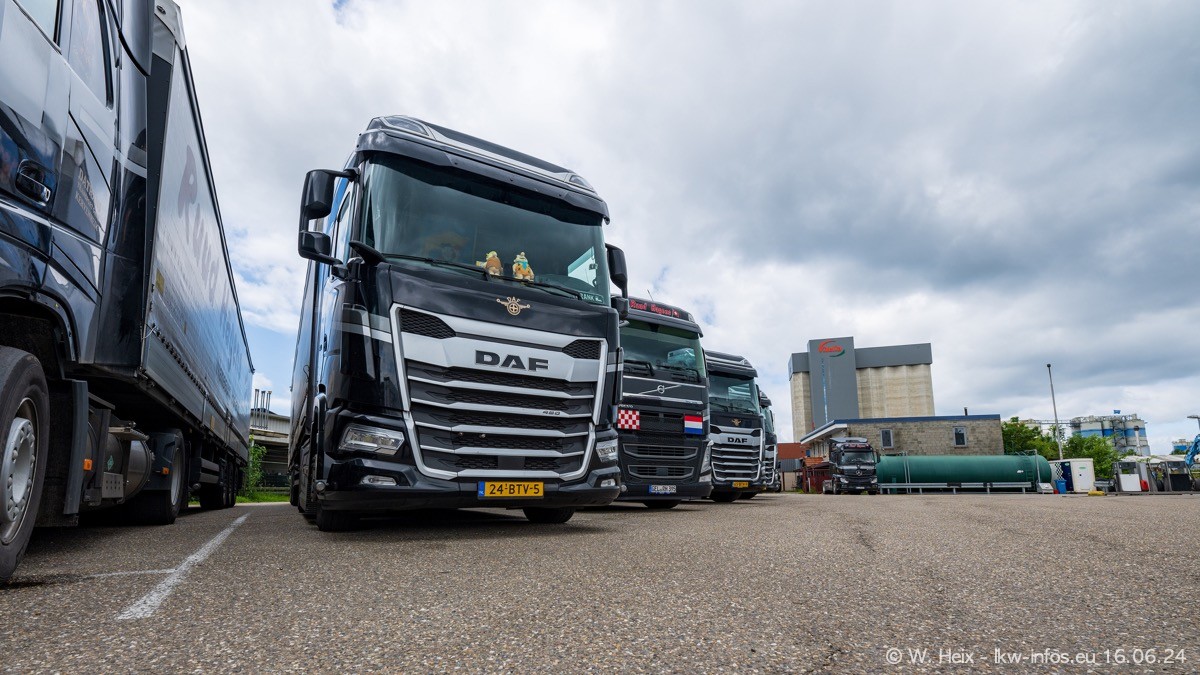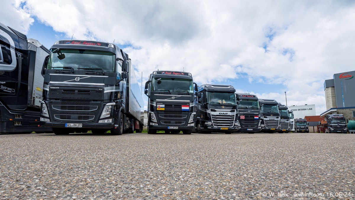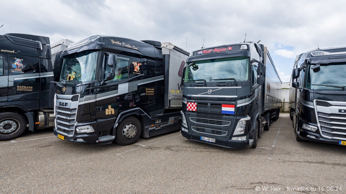 Ende Januar 2024 hat die Firma Gijs Boss die Fahrzeuge von Ruud Hagens Datrans B.V. übernommen. Das schwarze Design bleibt erhalten, den ersten neuen DAF XG+ mit neuem Aufleger, beschriftet mit "Datrans" gibt es auf den ersten Bildern in dieser Galerie zu sehen. Dazu kommen aktuell zwei weiße DAF XG+, die in Deutschland zugelassen sind (Moers MO, Kreis Wesel). Die Fahrzeuge in den bekannten Farben von Gijs Boss gibt es weiterhin. Diese stehen jedoch weiterhin verteilt bei Kunden oder Fahrern zuhause. Die zweite "neue" Firma ist jetzt Laura Hagens, Das ist bekanntlich die Tochter von Ruud Hagens. Unter dem Namen laufen alle SCANIA NextGen mit Schubboden/Walking-Floor Aufliegern. Die beiden M-Trex SCANIA gehören dazu. Alle Planenauflieger gehörten bisher Ruud Hagens Datrans B.V. Dazu kommen noch die IVECO S-Way, von Helene-Speed (Deutschland und Rumänien). Da sicherlich alle Fahrzeuge über länger Zeit noch "bunt gemischt" zu sehen sein werden, habe ich erstmal alles unter dem Namen Boss-Datrans & Laura Hagens zusammengefasst. Alle LKW werden auch weiterhin auf dem bekannten Gelände in Wanssum stehen.