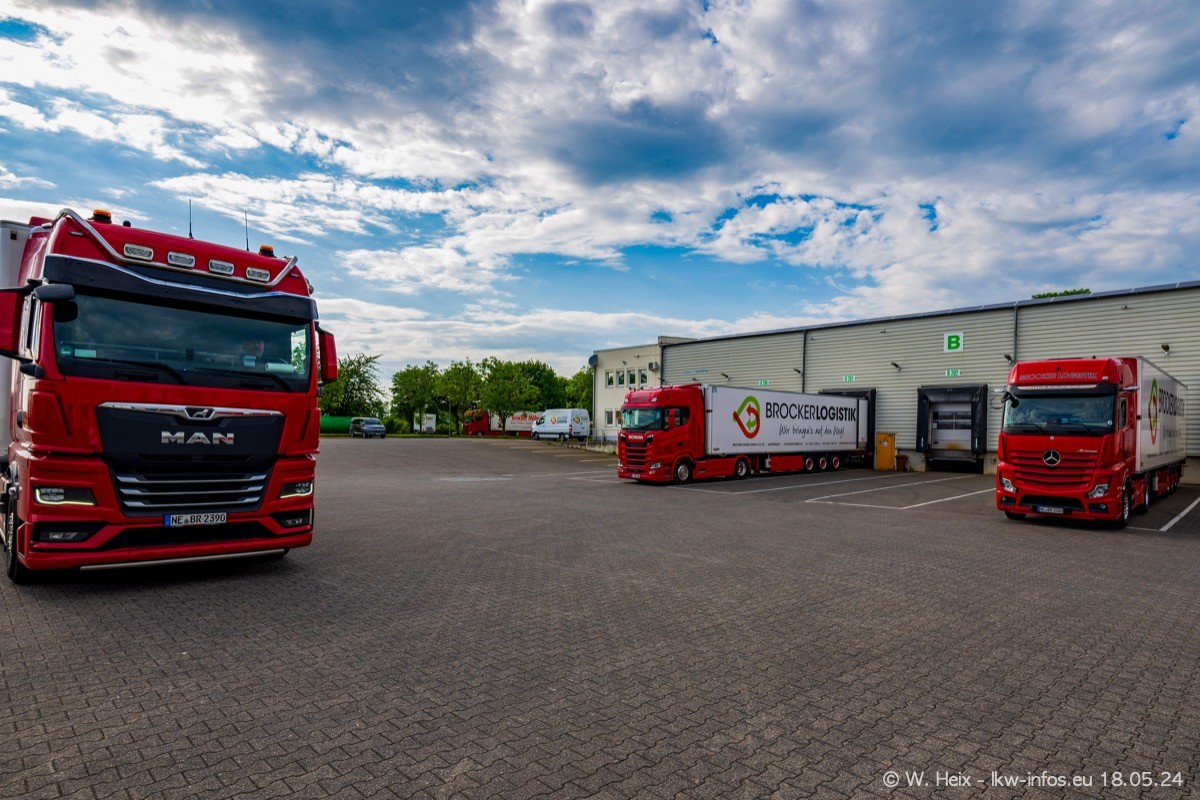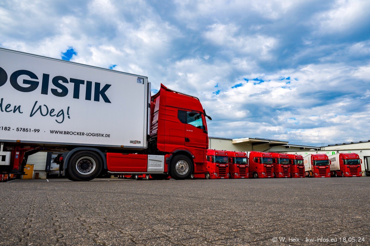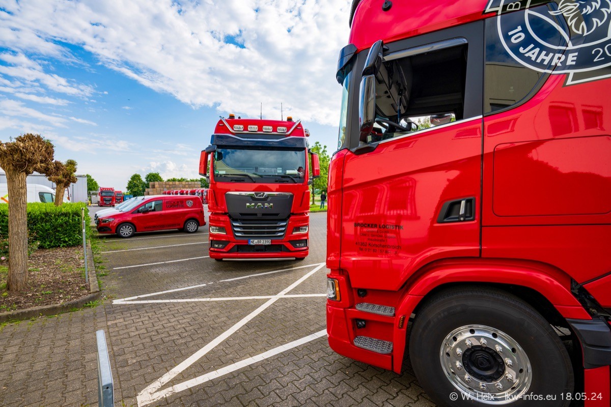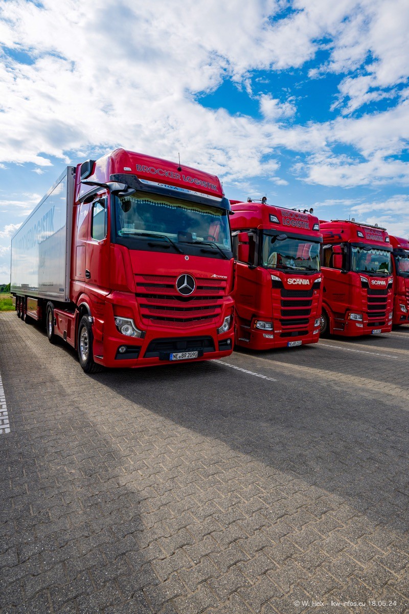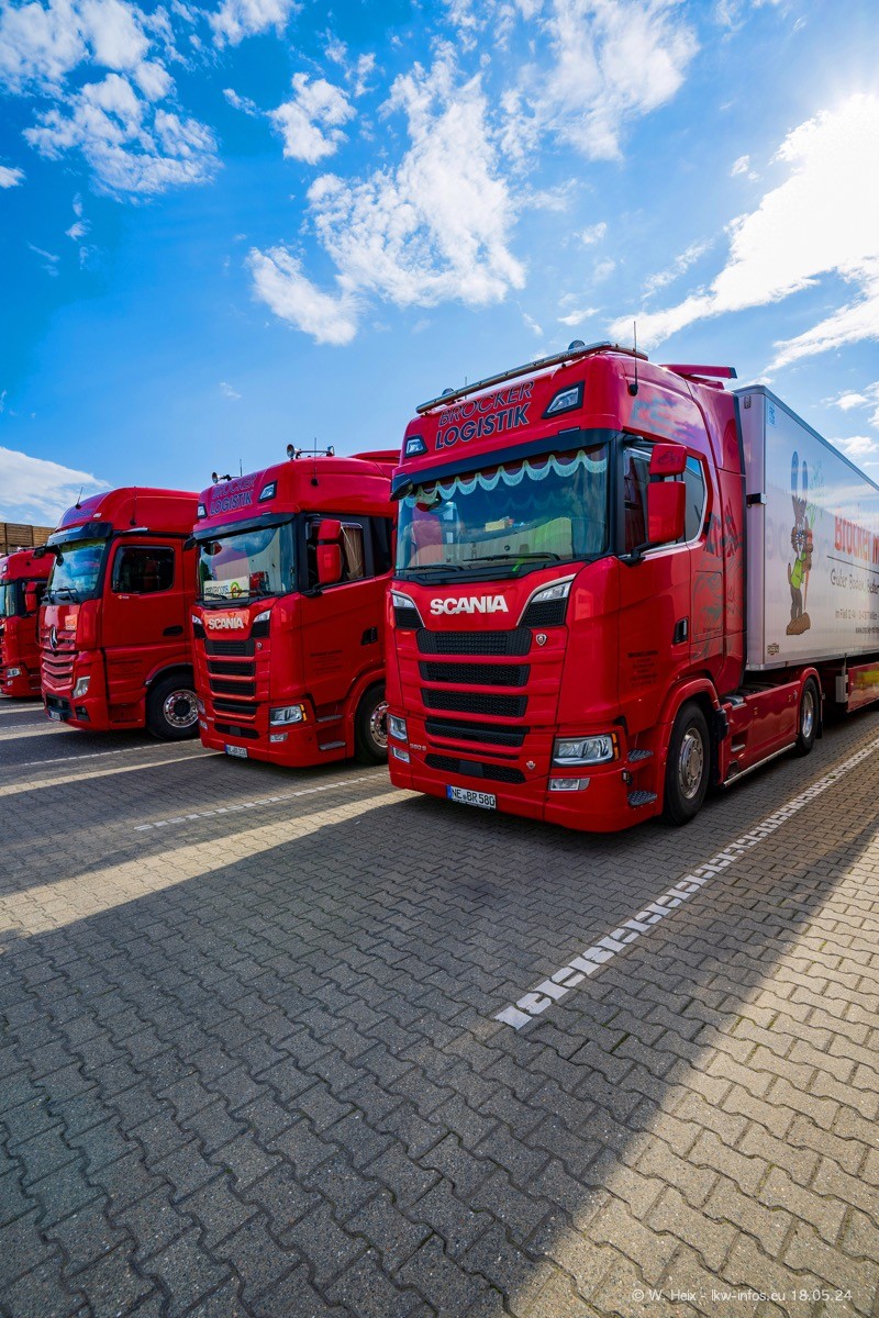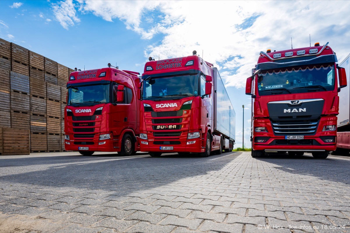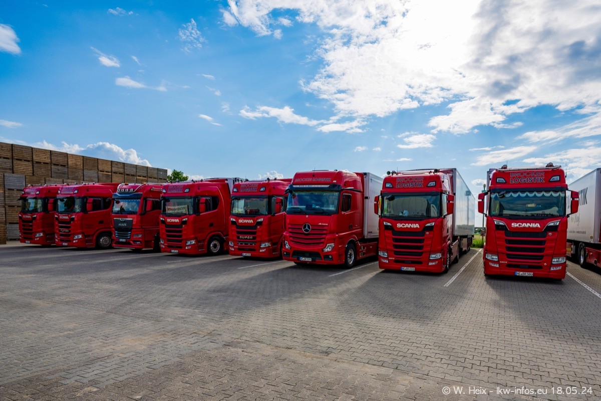 Nach über fünf Jahren war ich wieder bei Brocker Logistik in Korschenbroich. Diesmal wurde ich zu einem kleinen Fotoshooting eingeladen. Am späten Samstag Nachmittag war fast der komplette Fuhrpark zuhause. Das sind aktuell 38 LKW. Zwei fehlten. Zum 10-jährigen Firmenjubiläum wurde im März ein SCANIA 660 S V8 NextGen gekauft. Dieser ist etwas aufwändiger gestaltet als der restliche Fuhrpark, der sich aber auch sehen lassen kann. Auf dem weitläufigen Gelände gab es genug schöne Plätze für dieses kleine Fotoshooting.