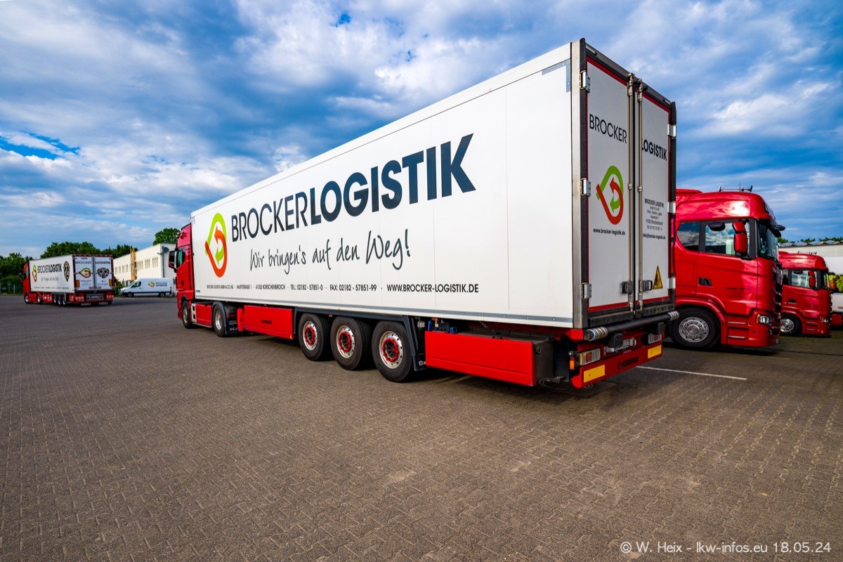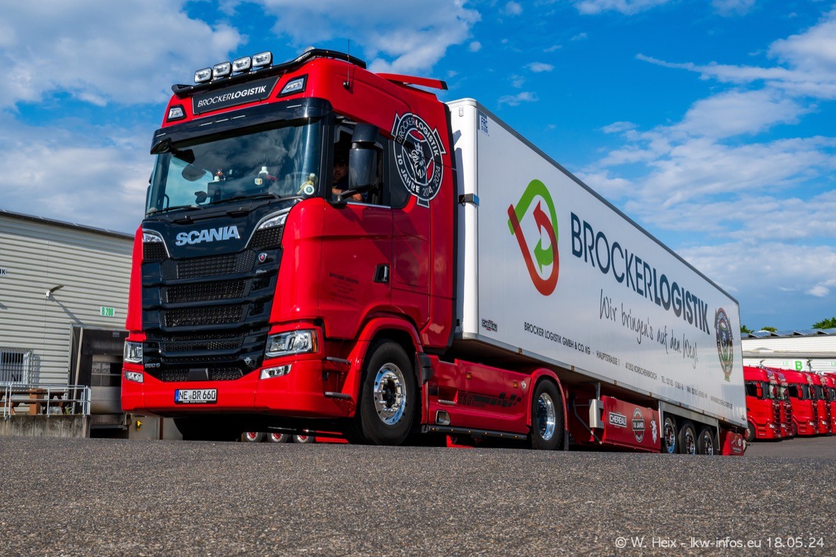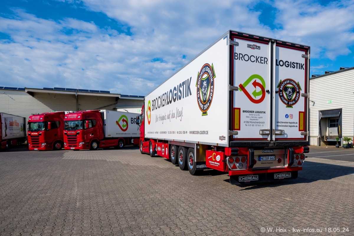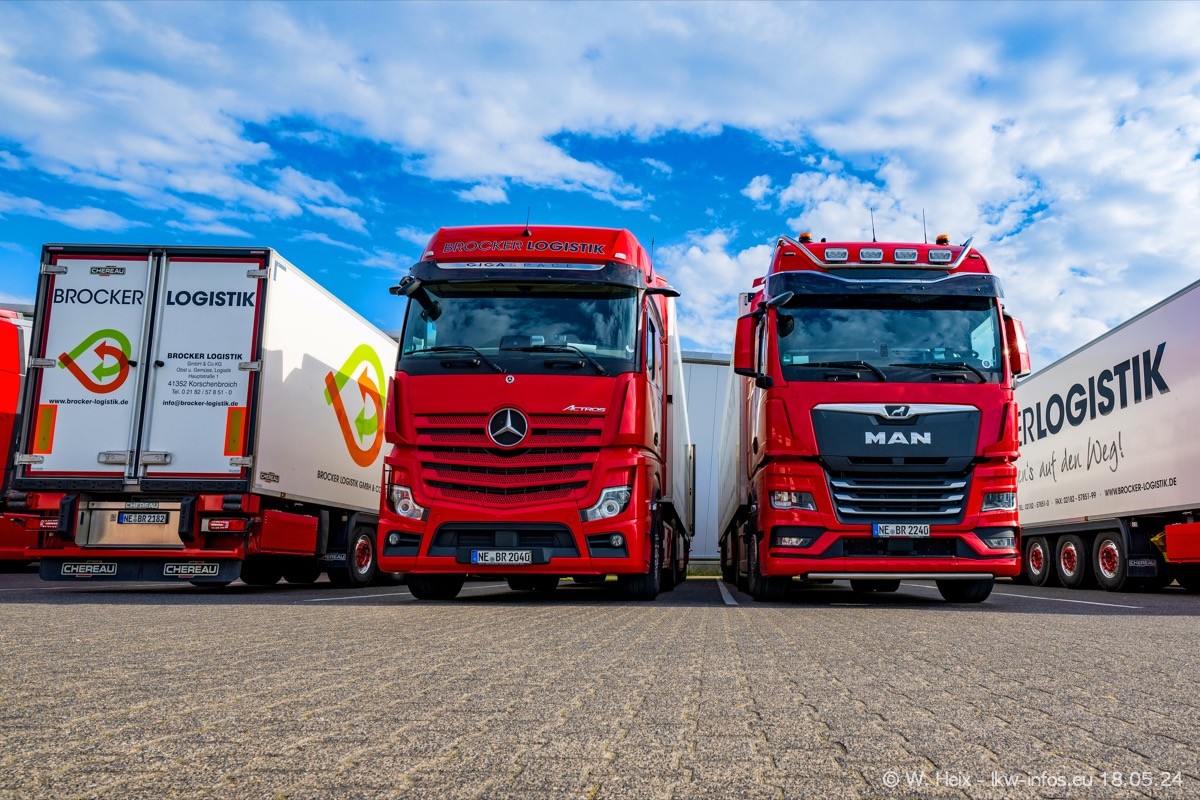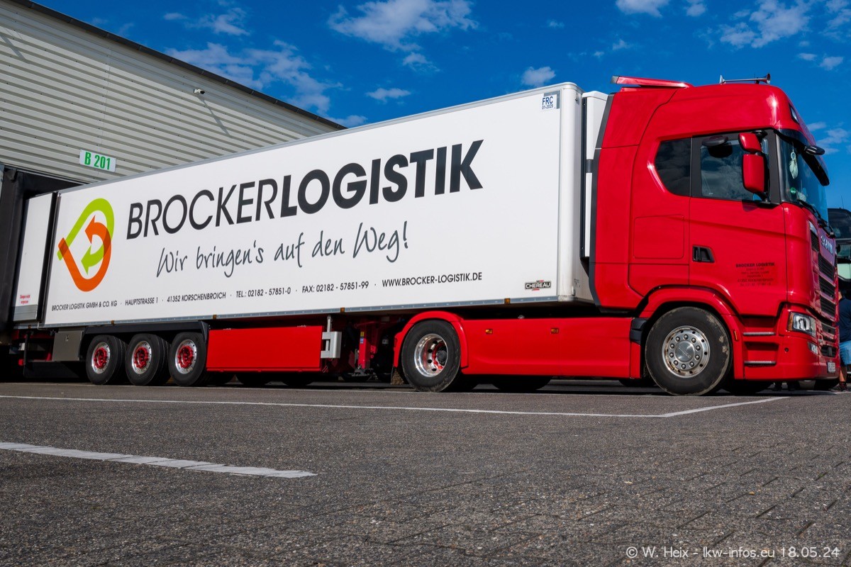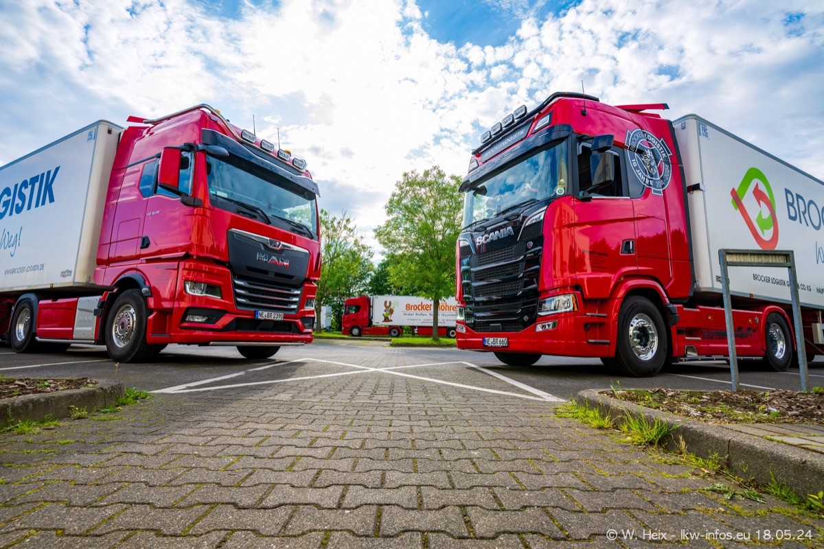 Nach über fünf Jahren war ich wieder bei Brocker Logistik in Korschenbroich. Diesmal wurde ich zu einem kleinen Fotoshooting eingeladen. Am späten Samstag Nachmittag war fast der komplette Fuhrpark zuhause. Das sind aktuell 38 LKW. Zwei fehlten. Zum 10-jährigen Firmenjubiläum wurde im März ein SCANIA 660 S V8 NextGen gekauft. Dieser ist etwas aufwändiger gestaltet als der restliche Fuhrpark, der sich aber auch sehen lassen kann. Auf dem weitläufigen Gelände gab es genug schöne Plätze für dieses kleine Fotoshooting.