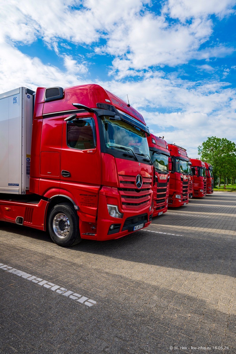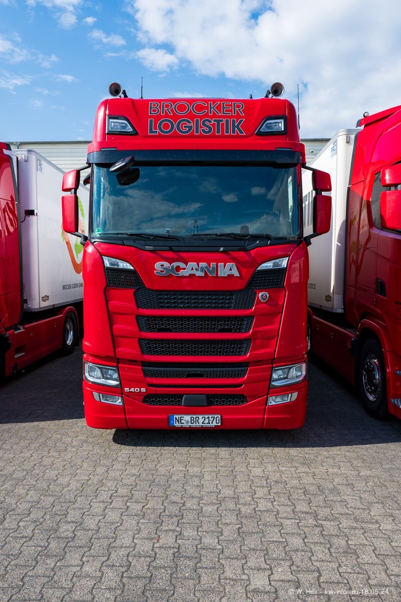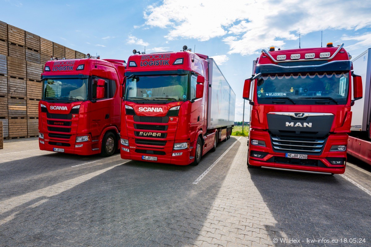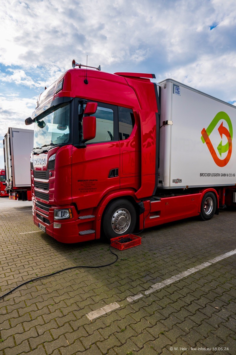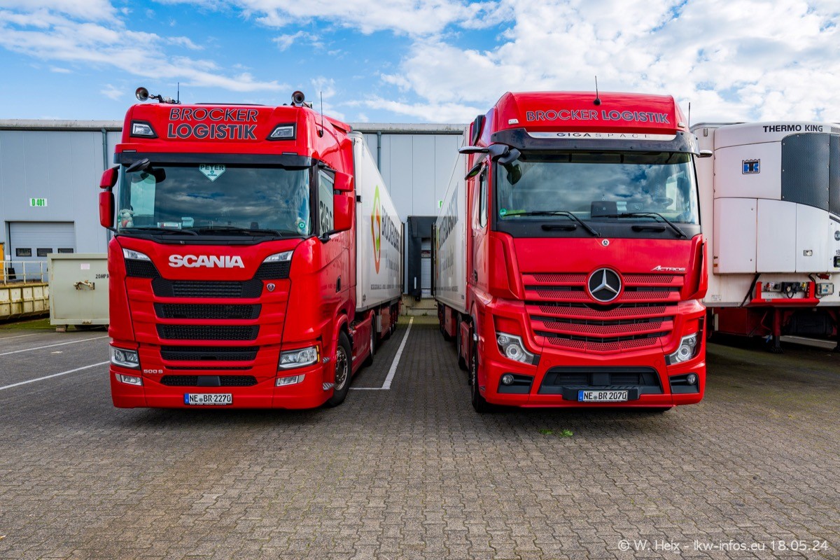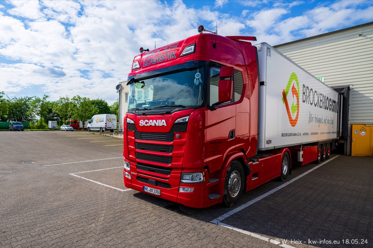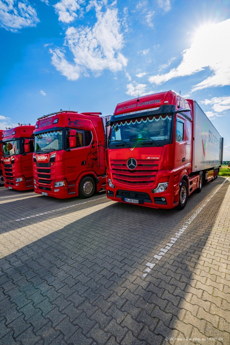Nach über fünf Jahren war ich wieder bei Brocker Logistik in Korschenbroich. Diesmal wurde ich zu einem kleinen Fotoshooting eingeladen. Am späten Samstag Nachmittag war fast der komplette Fuhrpark zuhause. Das sind aktuell 38 LKW. Zwei fehlten. Zum 10-jährigen Firmenjubiläum wurde im März ein SCANIA 660 S V8 NextGen gekauft. Dieser ist etwas aufwändiger gestaltet als der restliche Fuhrpark, der sich aber auch sehen lassen kann. Auf dem weitläufigen Gelände gab es genug schöne Plätze für dieses kleine Fotoshooting.