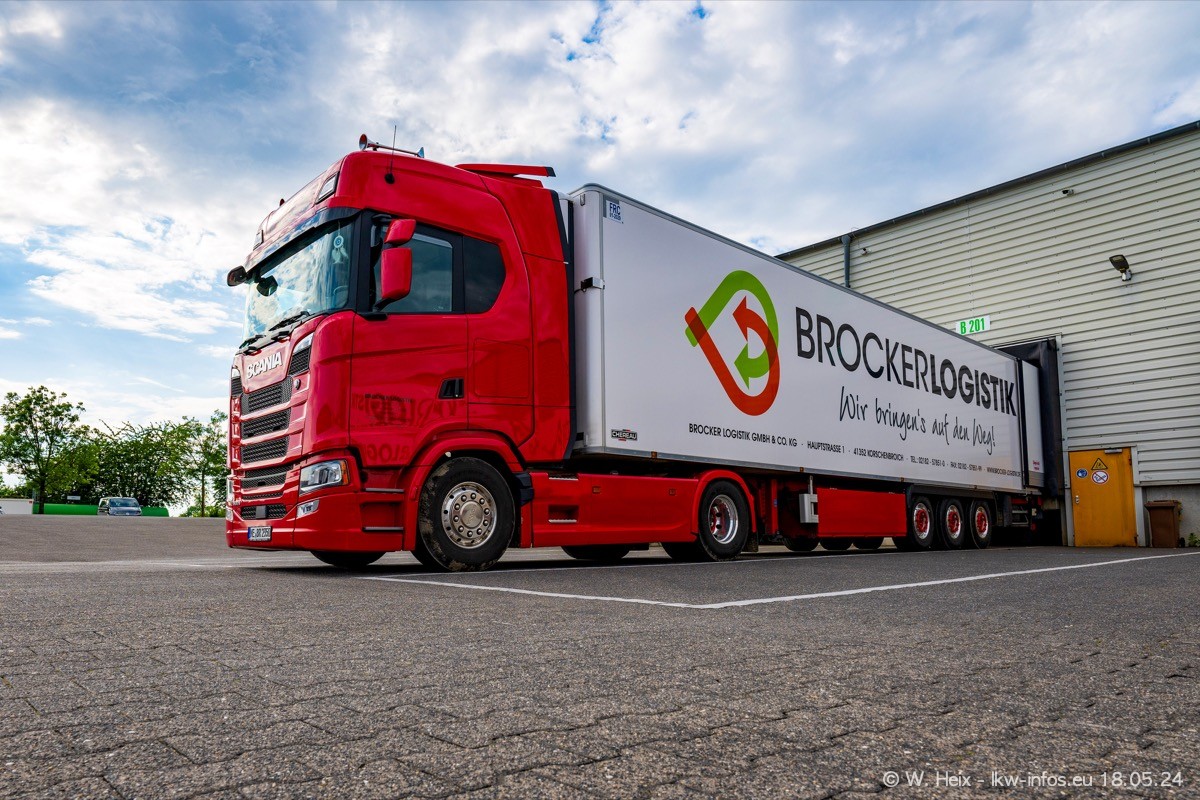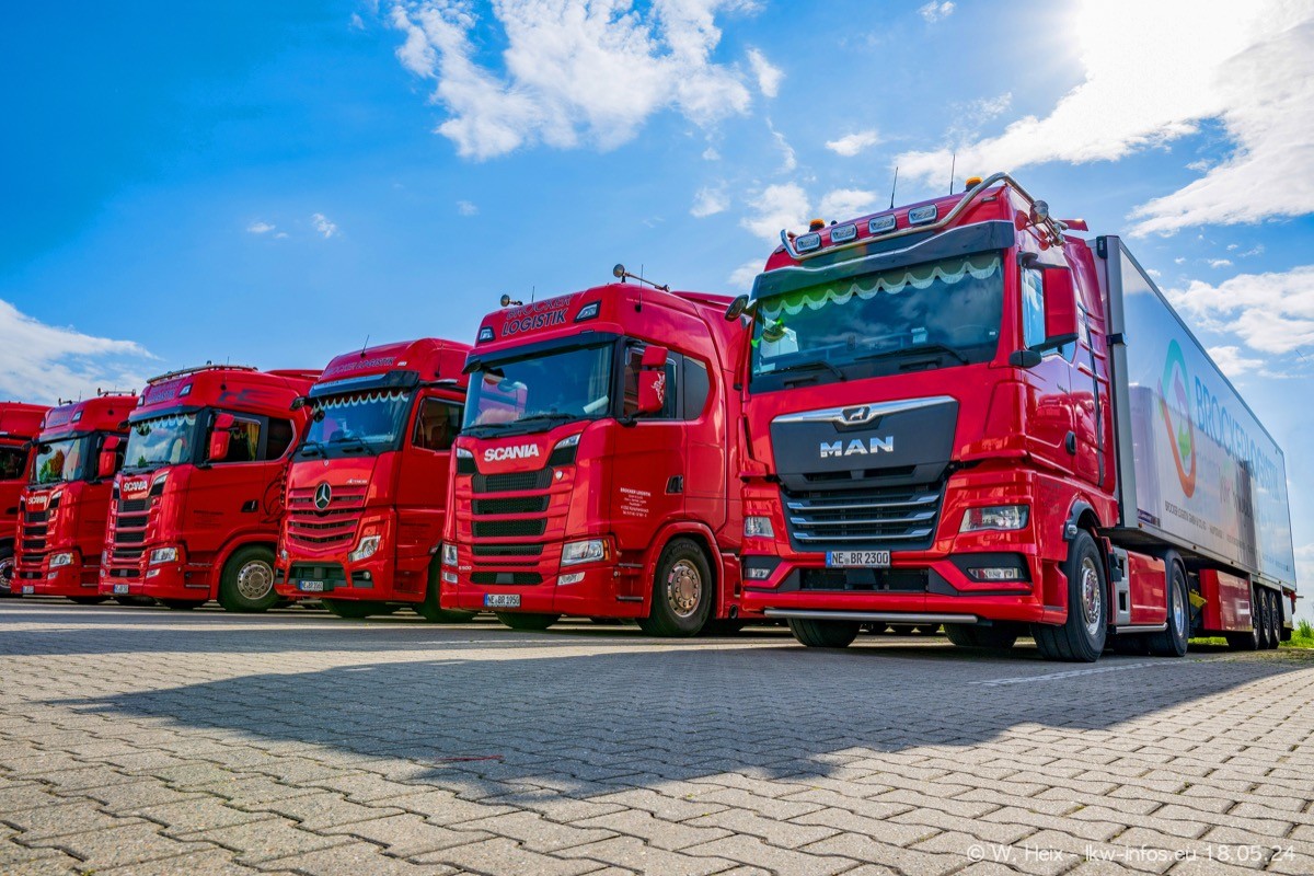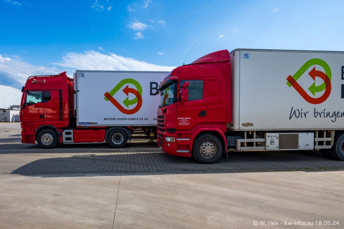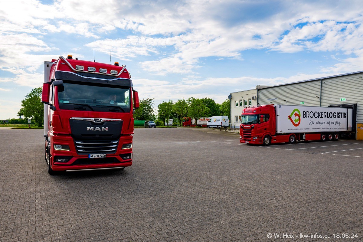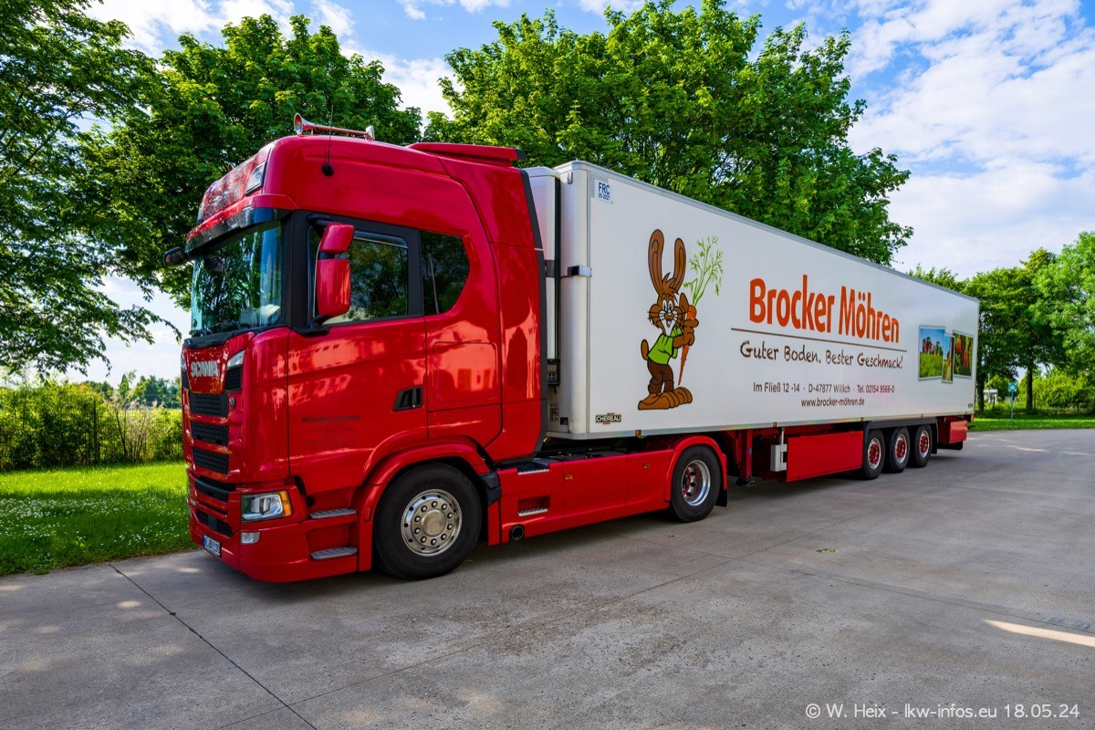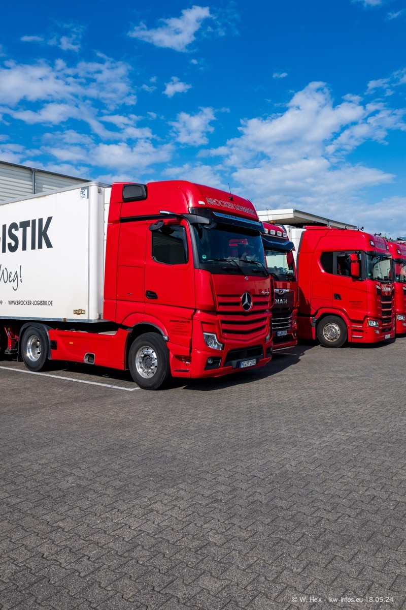 Nach über fünf Jahren war ich wieder bei Brocker Logistik in Korschenbroich. Diesmal wurde ich zu einem kleinen Fotoshooting eingeladen. Am späten Samstag Nachmittag war fast der komplette Fuhrpark zuhause. Das sind aktuell 38 LKW. Zwei fehlten. Zum 10-jährigen Firmenjubiläum wurde im März ein SCANIA 660 S V8 NextGen gekauft. Dieser ist etwas aufwändiger gestaltet als der restliche Fuhrpark, der sich aber auch sehen lassen kann. Auf dem weitläufigen Gelände gab es genug schöne Plätze für dieses kleine Fotoshooting.