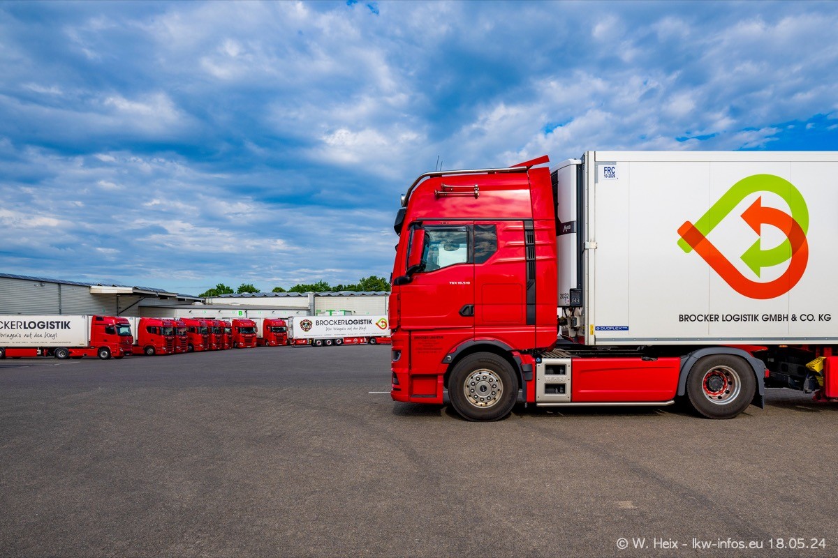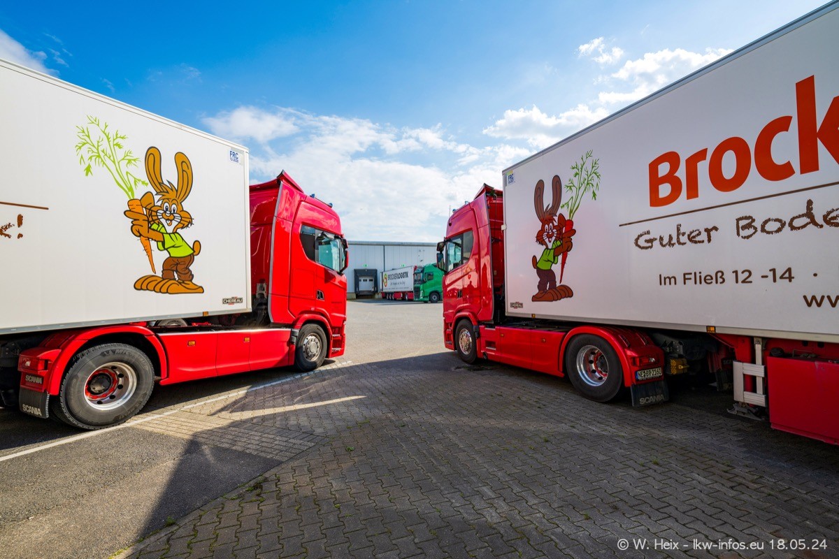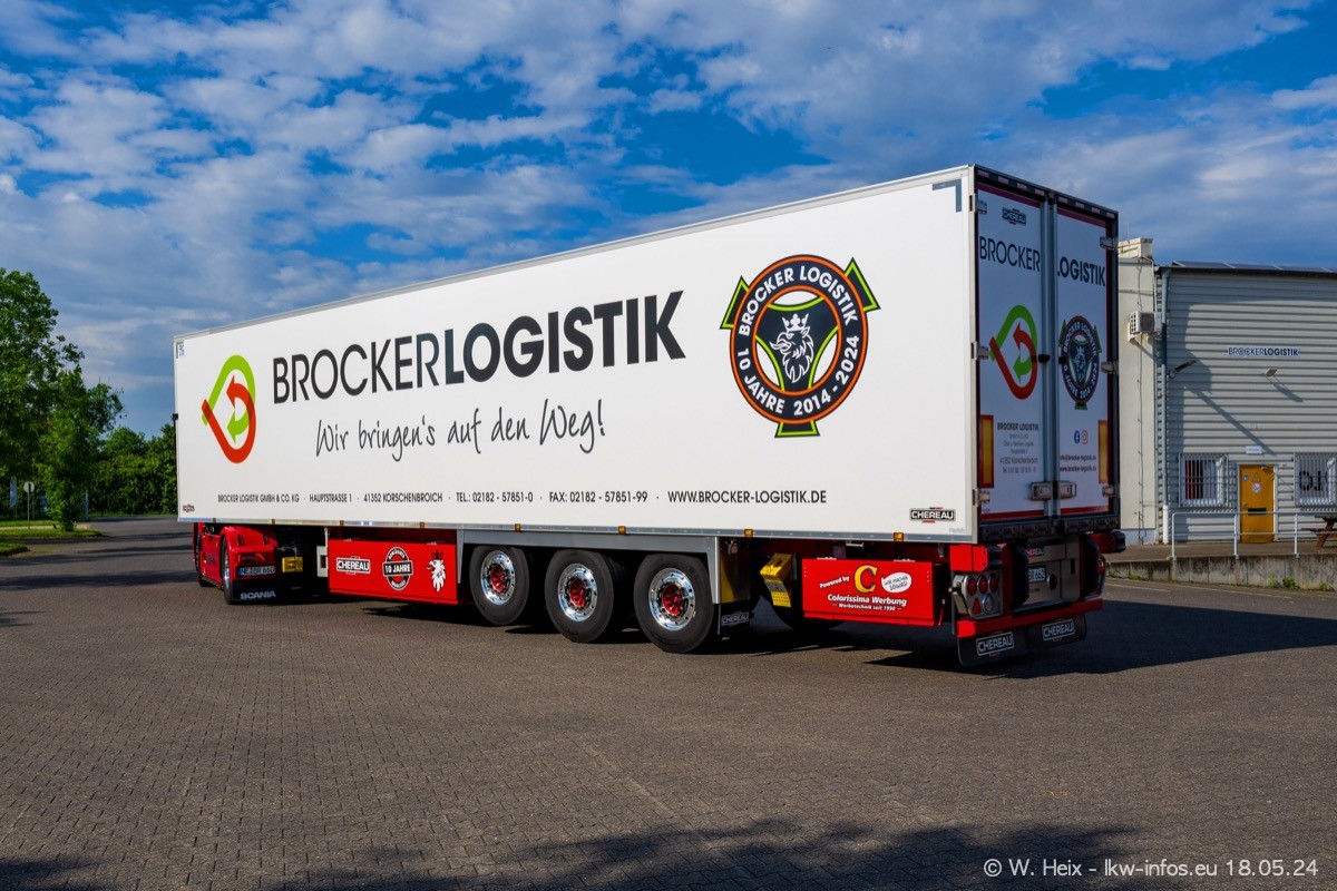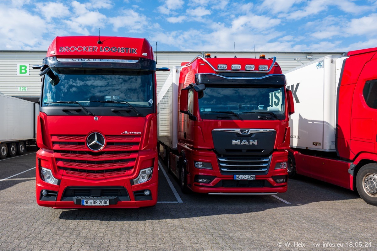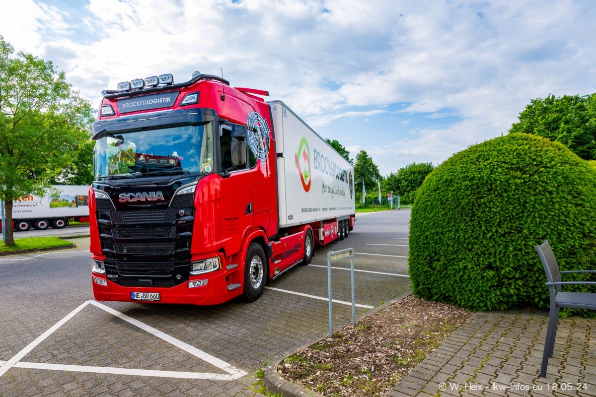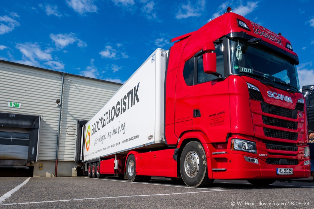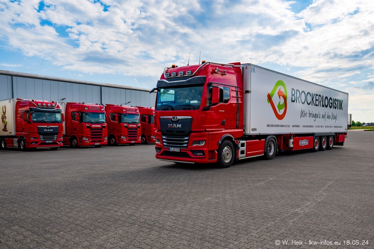 Nach über fünf Jahren war ich wieder bei Brocker Logistik in Korschenbroich. Diesmal wurde ich zu einem kleinen Fotoshooting eingeladen. Am späten Samstag Nachmittag war fast der komplette Fuhrpark zuhause. Das sind aktuell 38 LKW. Zwei fehlten. Zum 10-jährigen Firmenjubiläum wurde im März ein SCANIA 660 S V8 NextGen gekauft. Dieser ist etwas aufwändiger gestaltet als der restliche Fuhrpark, der sich aber auch sehen lassen kann. Auf dem weitläufigen Gelände gab es genug schöne Plätze für dieses kleine Fotoshooting.