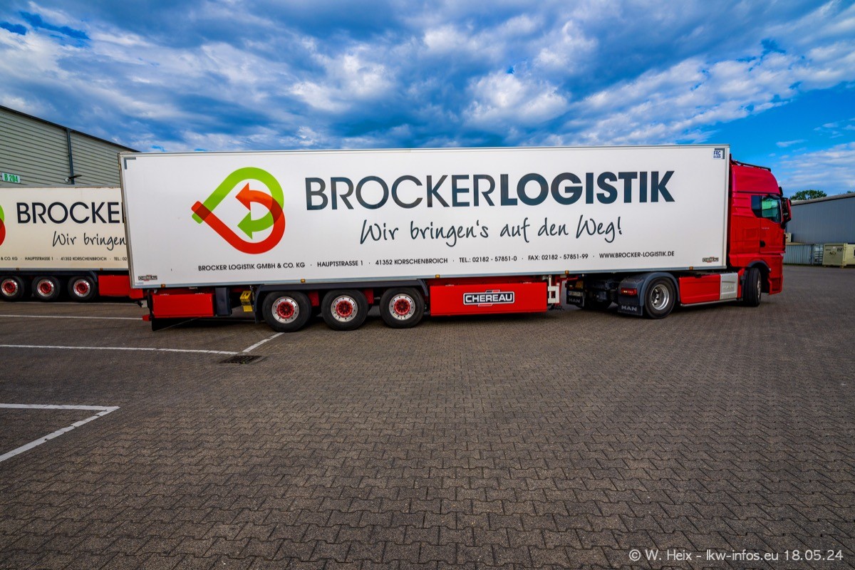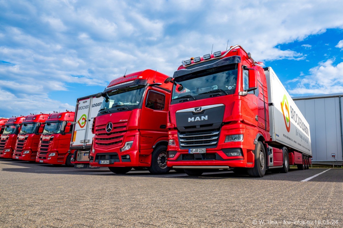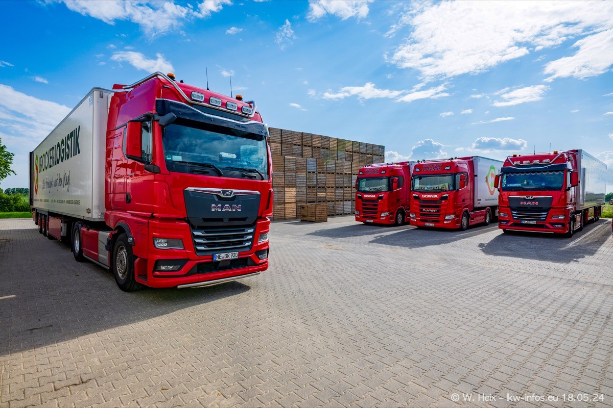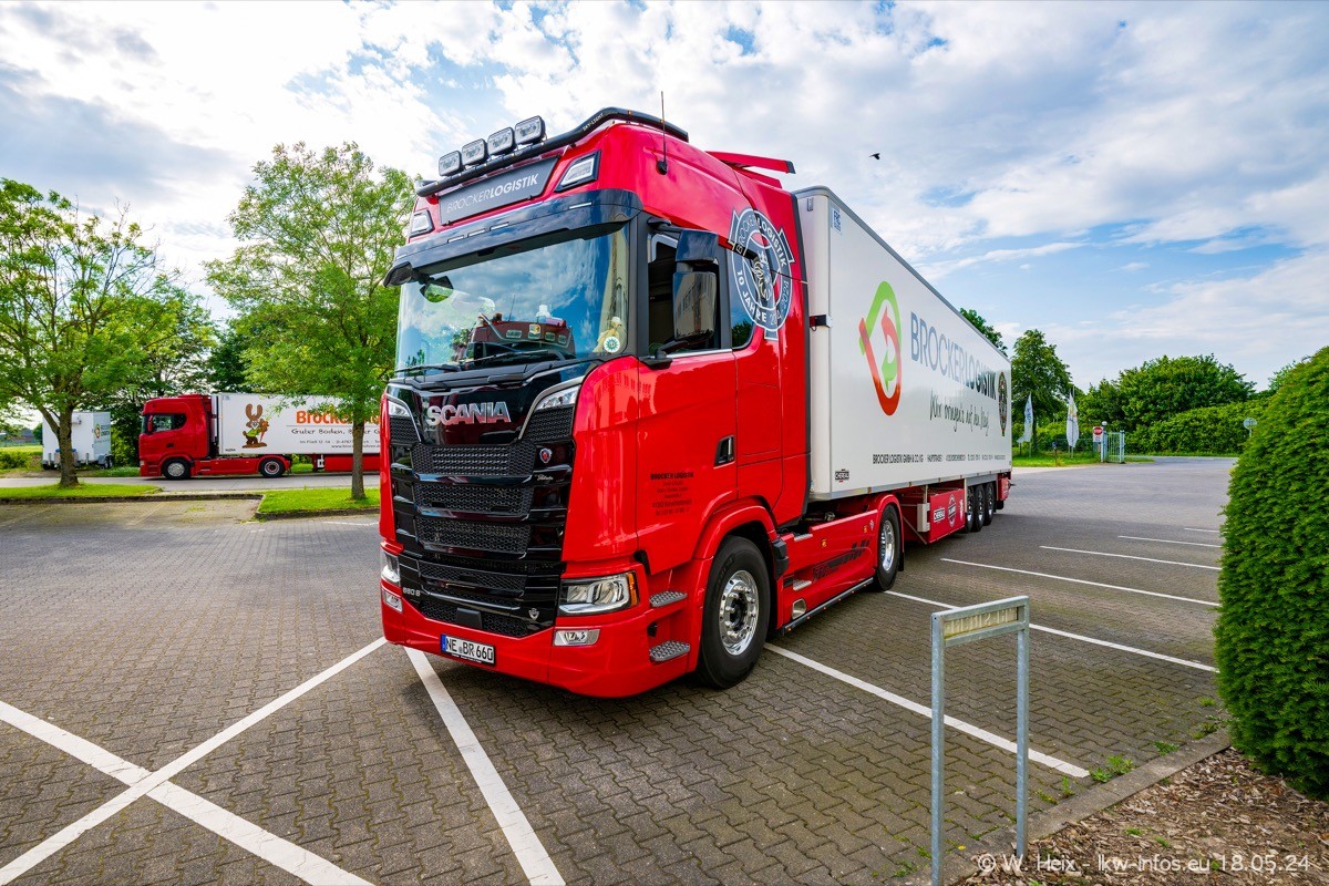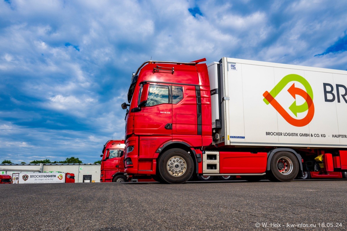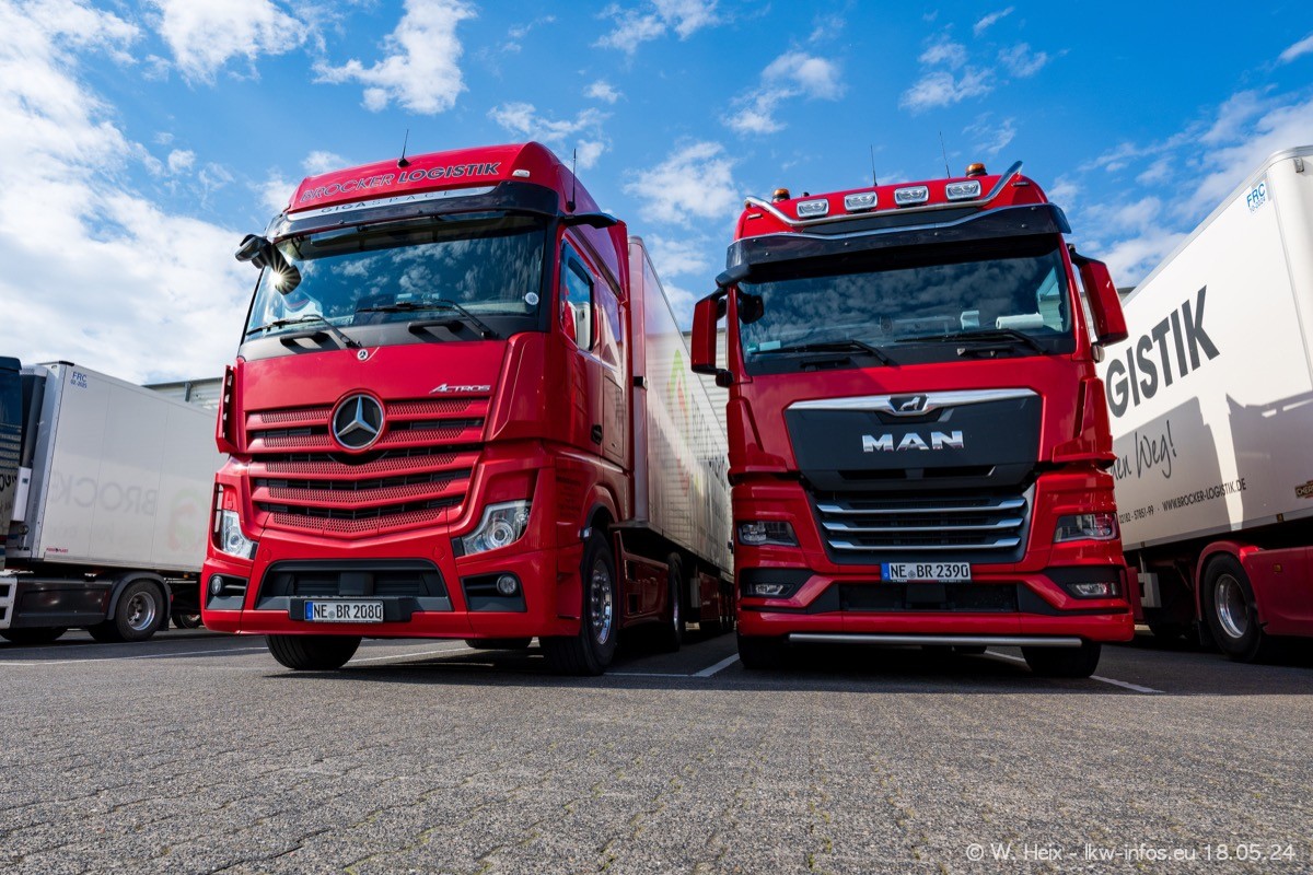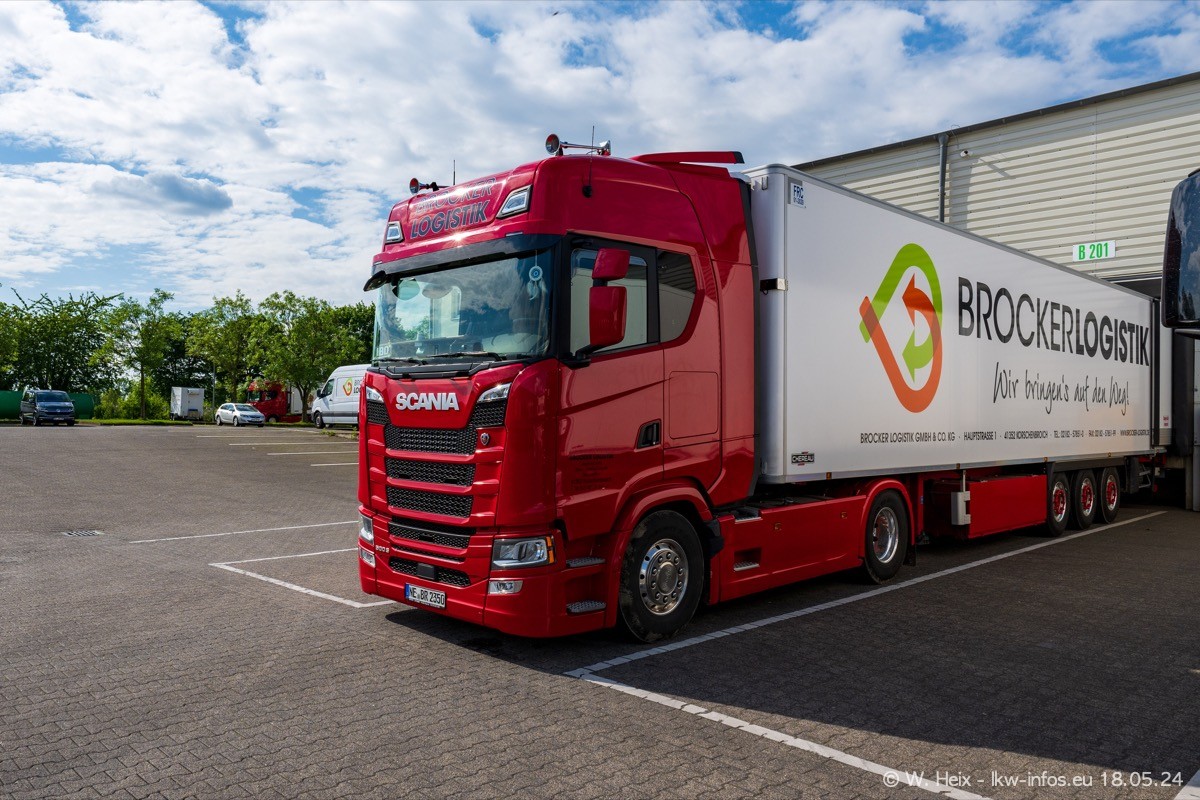 Nach über fünf Jahren war ich wieder bei Brocker Logistik in Korschenbroich. Diesmal wurde ich zu einem kleinen Fotoshooting eingeladen. Am späten Samstag Nachmittag war fast der komplette Fuhrpark zuhause. Das sind aktuell 38 LKW. Zwei fehlten. Zum 10-jährigen Firmenjubiläum wurde im März ein SCANIA 660 S V8 NextGen gekauft. Dieser ist etwas aufwändiger gestaltet als der restliche Fuhrpark, der sich aber auch sehen lassen kann. Auf dem weitläufigen Gelände gab es genug schöne Plätze für dieses kleine Fotoshooting.