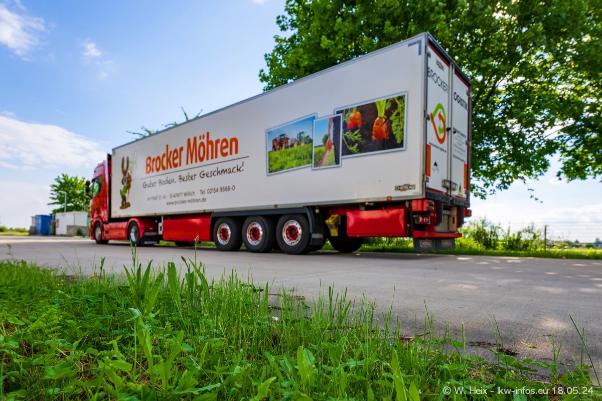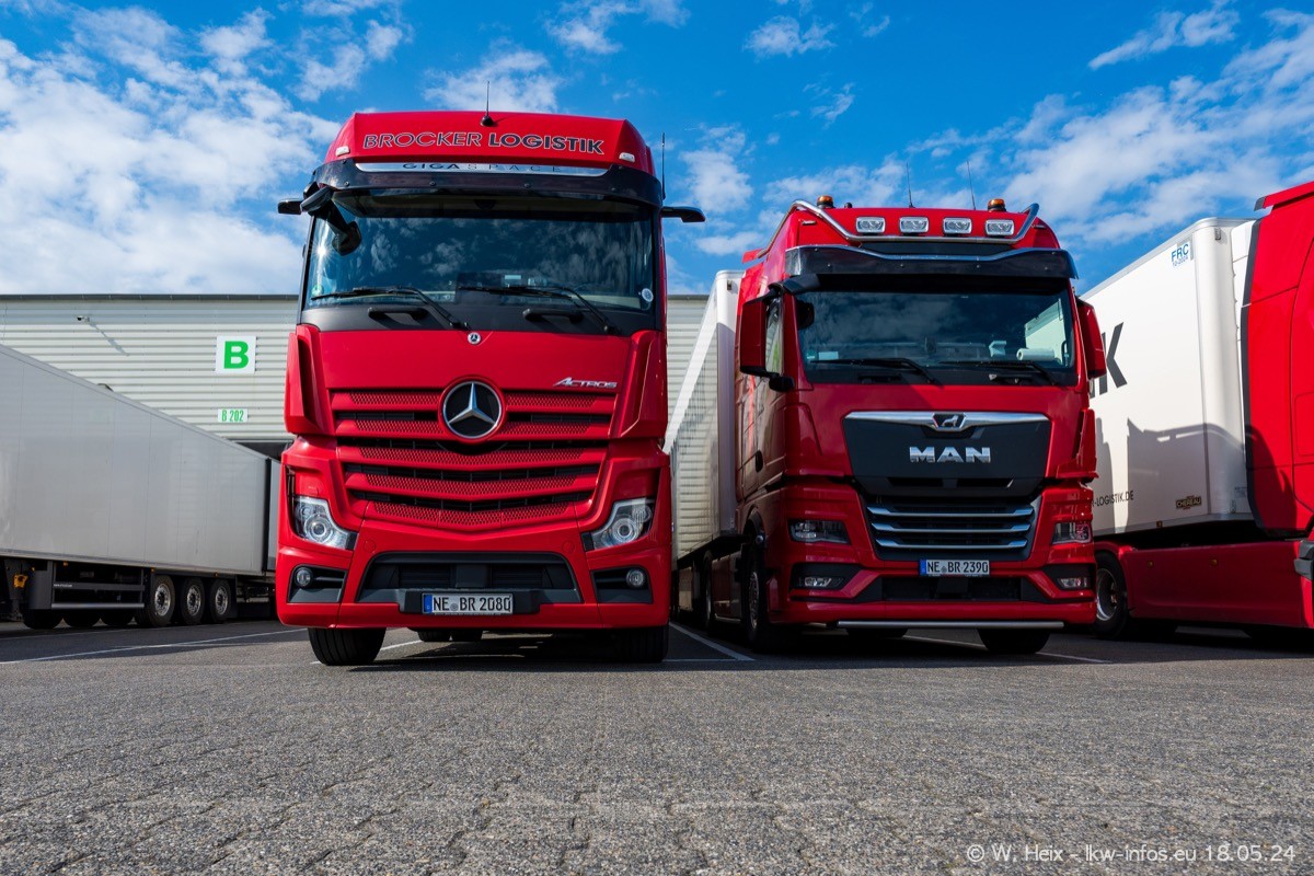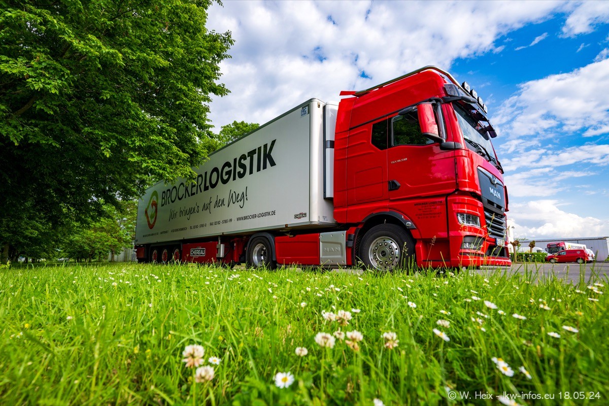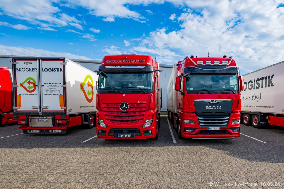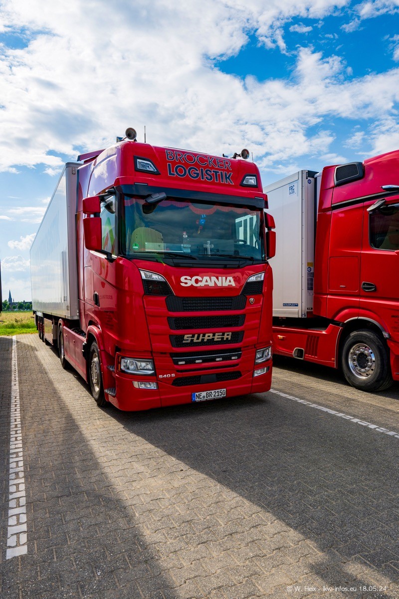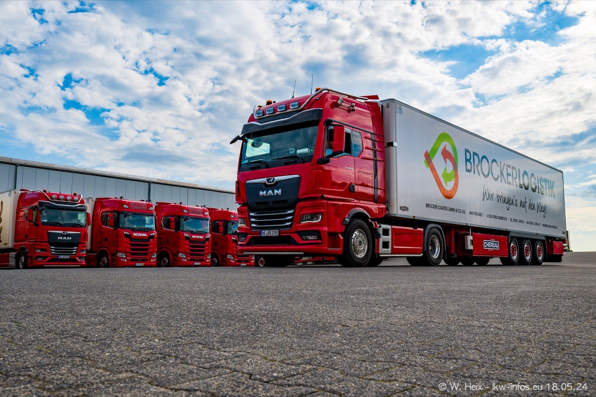 Nach über fünf Jahren war ich wieder bei Brocker Logistik in Korschenbroich. Diesmal wurde ich zu einem kleinen Fotoshooting eingeladen. Am späten Samstag Nachmittag war fast der komplette Fuhrpark zuhause. Das sind aktuell 38 LKW. Zwei fehlten. Zum 10-jährigen Firmenjubiläum wurde im März ein SCANIA 660 S V8 NextGen gekauft. Dieser ist etwas aufwändiger gestaltet als der restliche Fuhrpark, der sich aber auch sehen lassen kann. Auf dem weitläufigen Gelände gab es genug schöne Plätze für dieses kleine Fotoshooting.