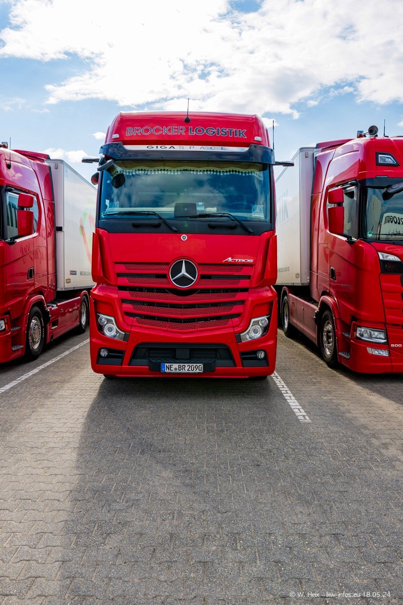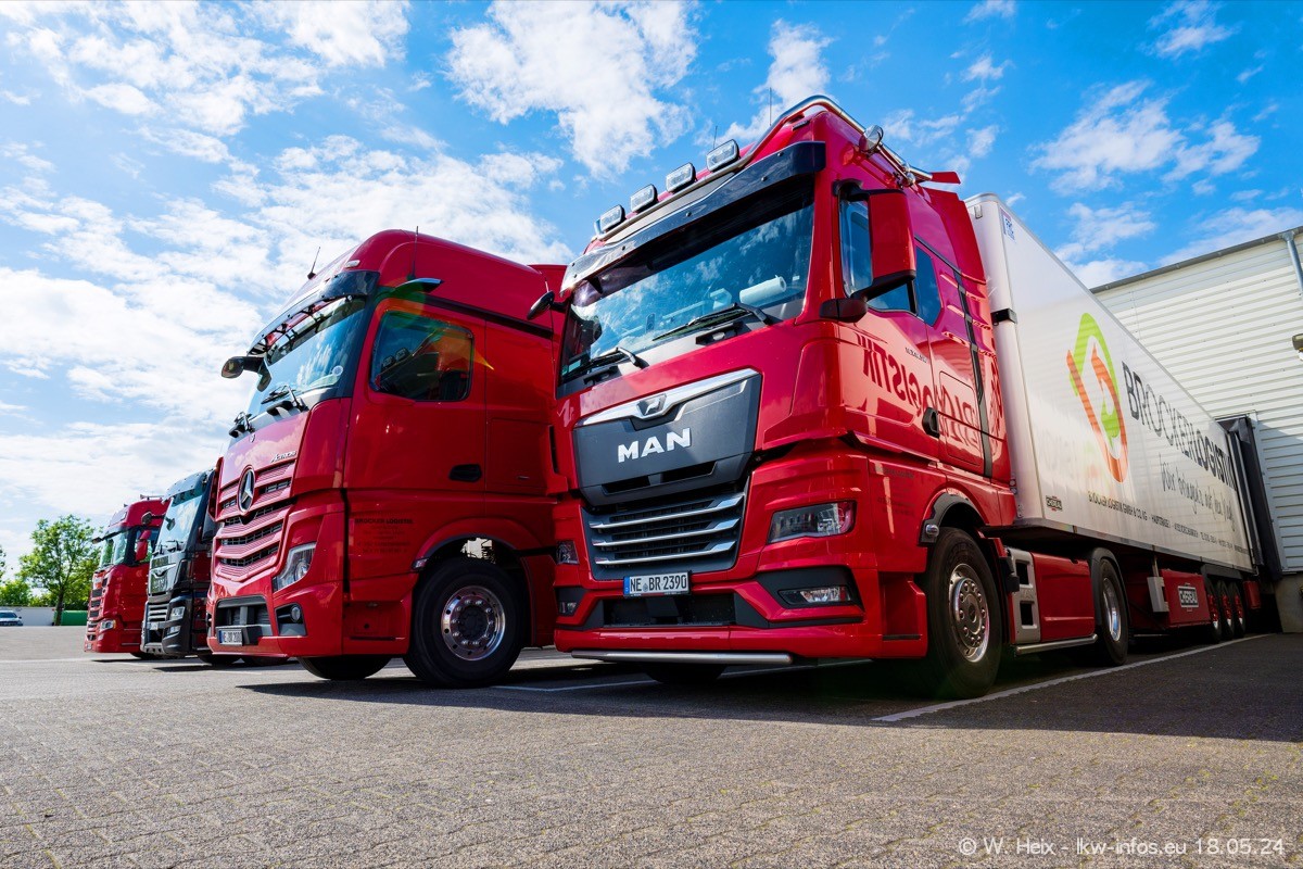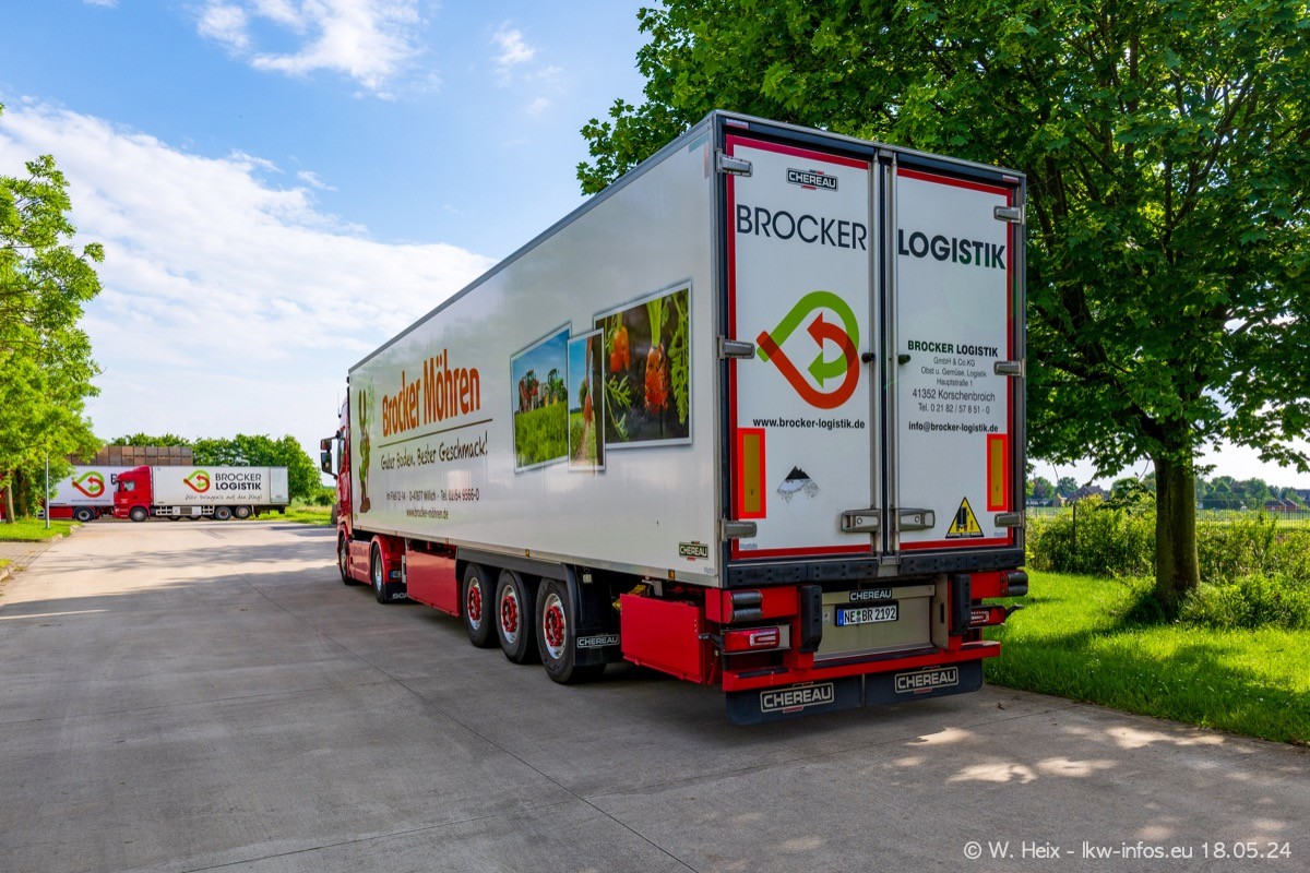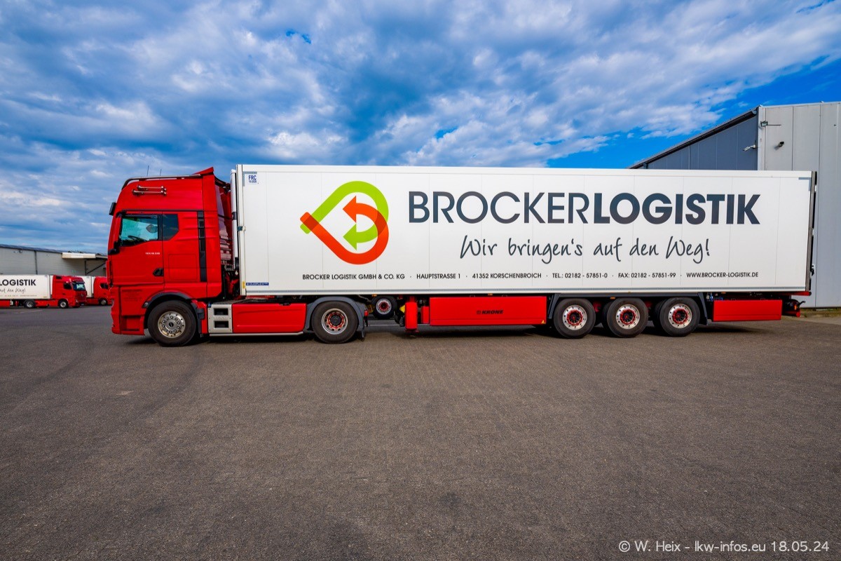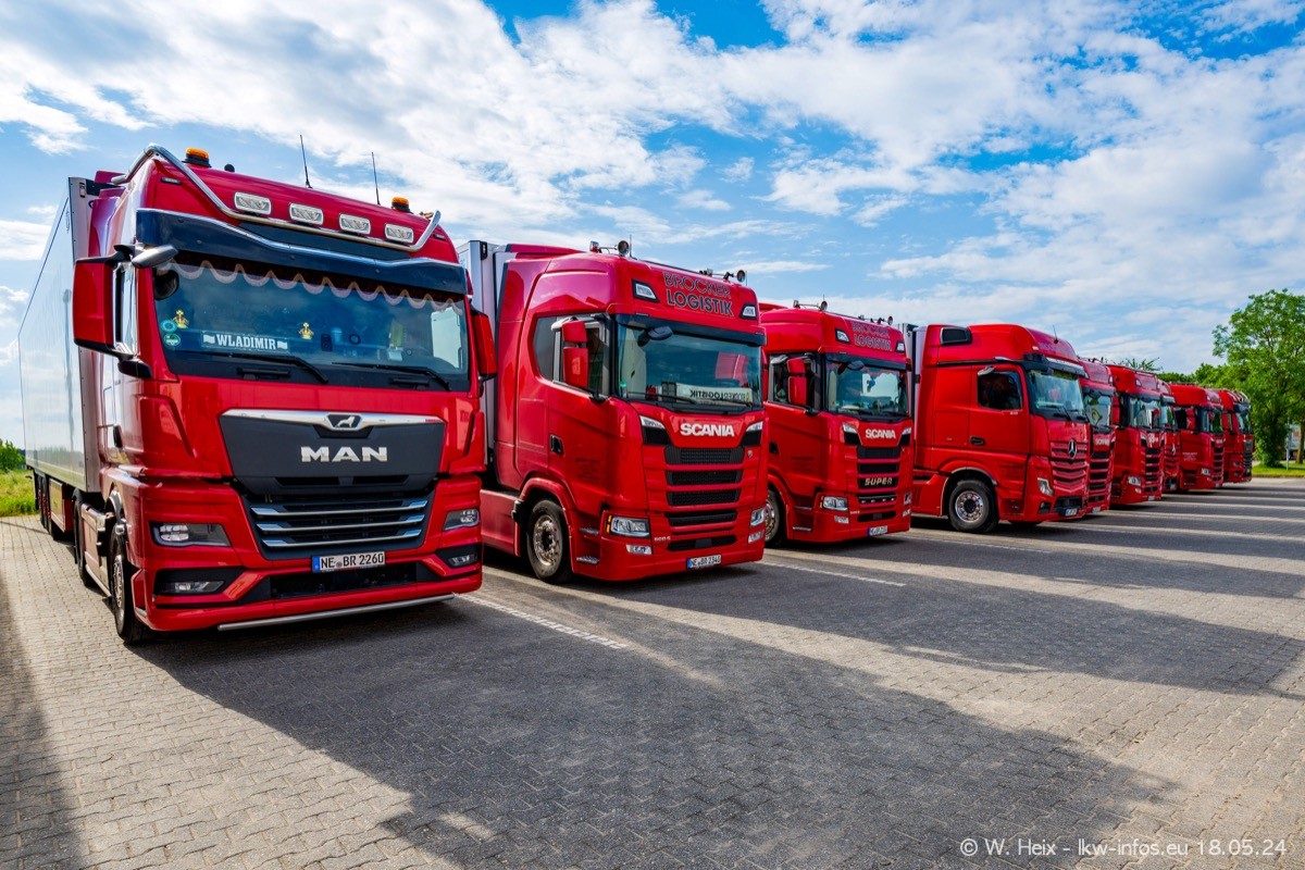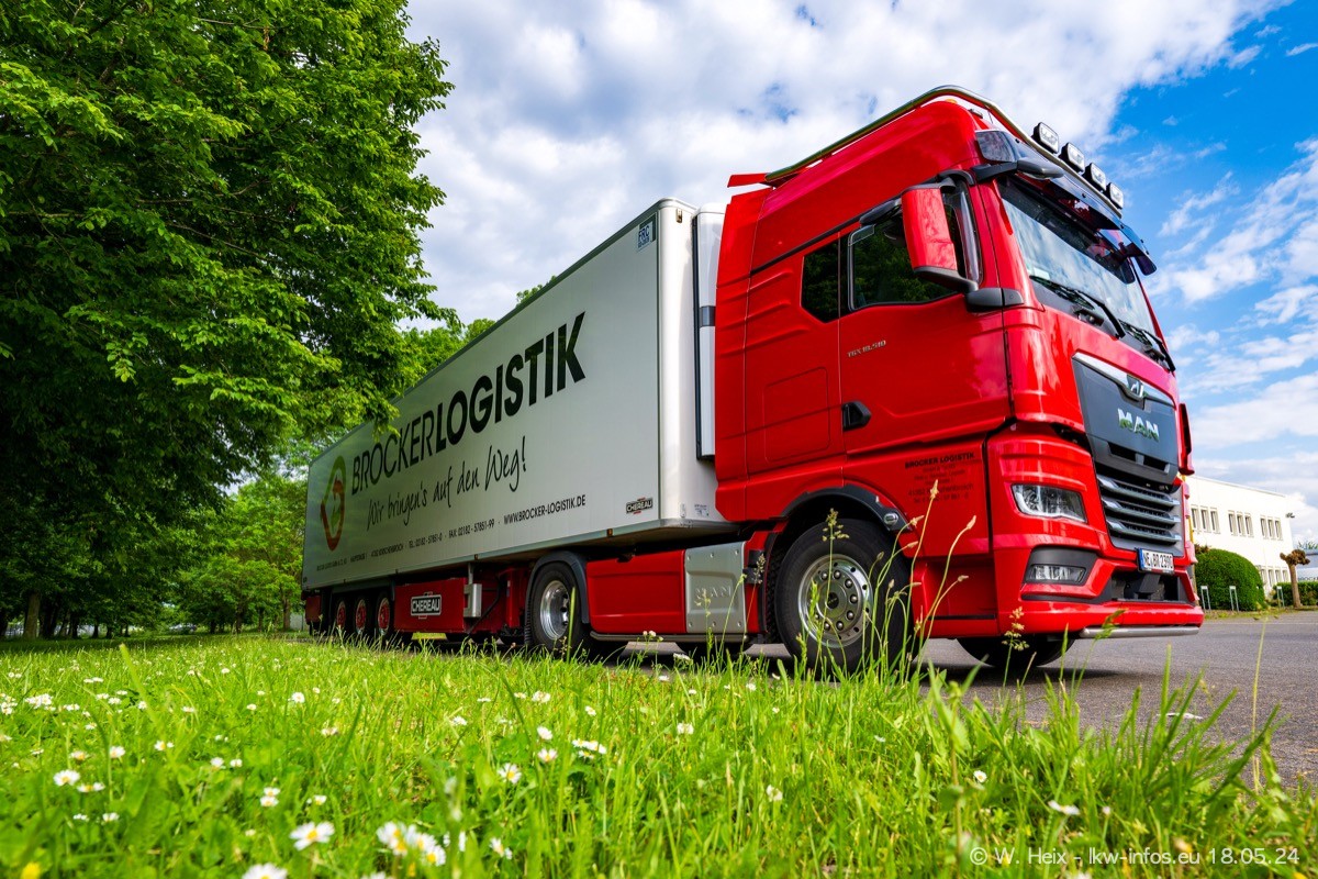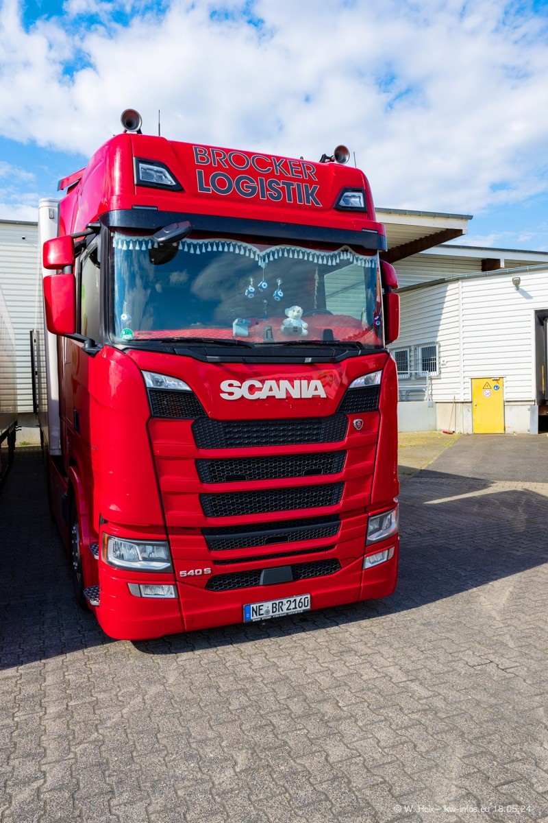 Nach über fünf Jahren war ich wieder bei Brocker Logistik in Korschenbroich. Diesmal wurde ich zu einem kleinen Fotoshooting eingeladen. Am späten Samstag Nachmittag war fast der komplette Fuhrpark zuhause. Das sind aktuell 38 LKW. Zwei fehlten. Zum 10-jährigen Firmenjubiläum wurde im März ein SCANIA 660 S V8 NextGen gekauft. Dieser ist etwas aufwändiger gestaltet als der restliche Fuhrpark, der sich aber auch sehen lassen kann. Auf dem weitläufigen Gelände gab es genug schöne Plätze für dieses kleine Fotoshooting.