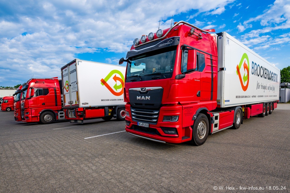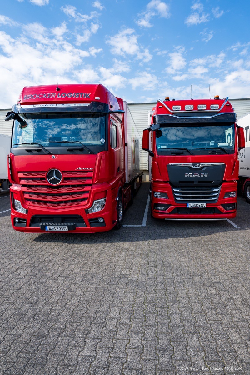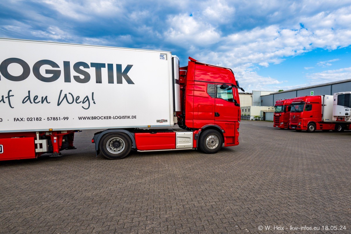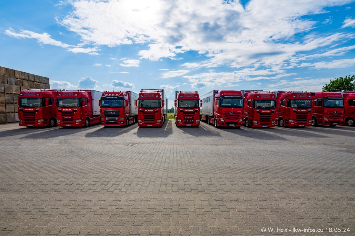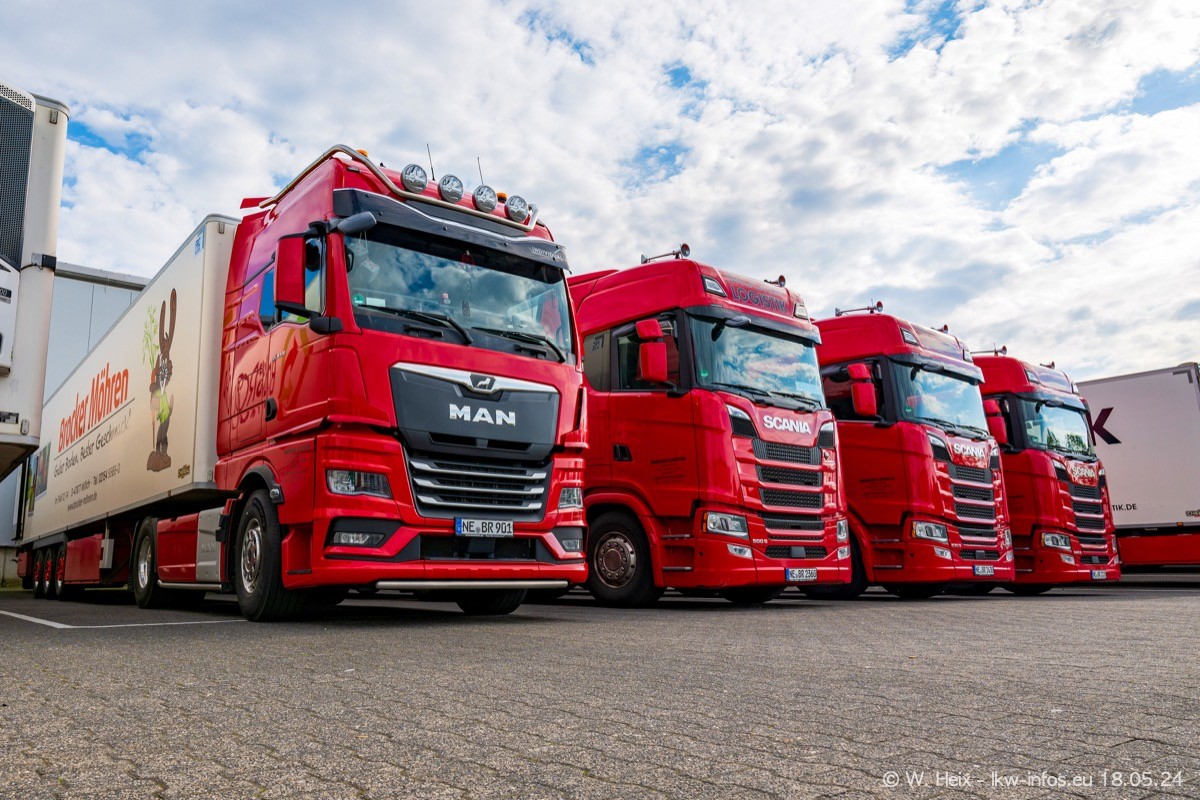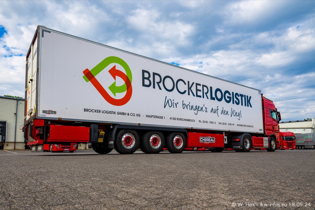 Nach über fünf Jahren war ich wieder bei Brocker Logistik in Korschenbroich. Diesmal wurde ich zu einem kleinen Fotoshooting eingeladen. Am späten Samstag Nachmittag war fast der komplette Fuhrpark zuhause. Das sind aktuell 38 LKW. Zwei fehlten. Zum 10-jährigen Firmenjubiläum wurde im März ein SCANIA 660 S V8 NextGen gekauft. Dieser ist etwas aufwändiger gestaltet als der restliche Fuhrpark, der sich aber auch sehen lassen kann. Auf dem weitläufigen Gelände gab es genug schöne Plätze für dieses kleine Fotoshooting.