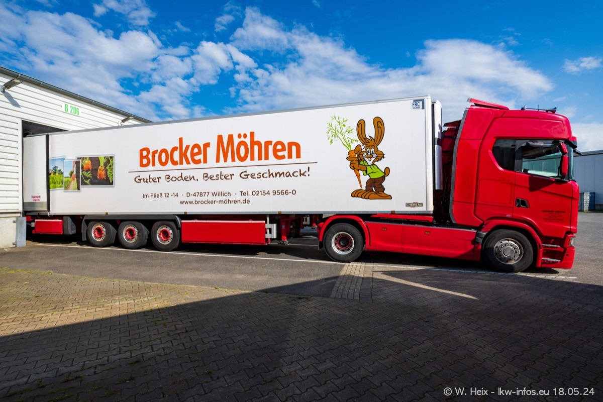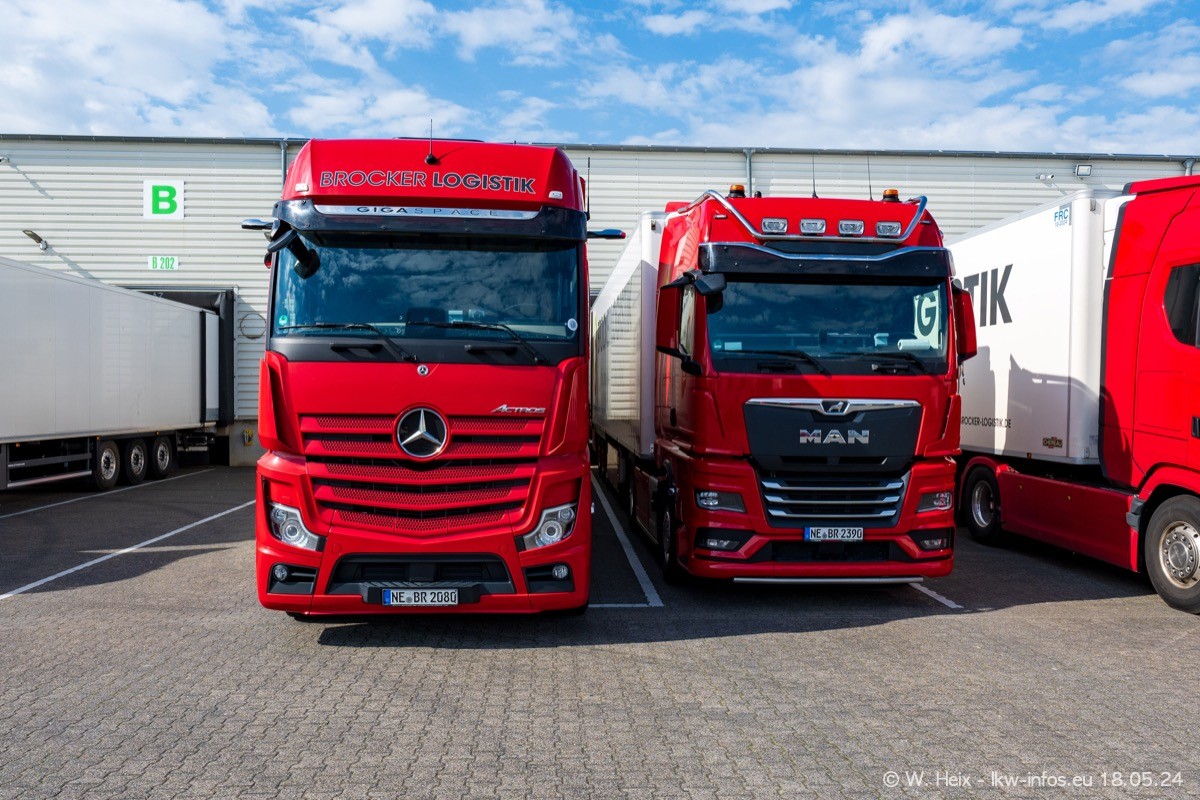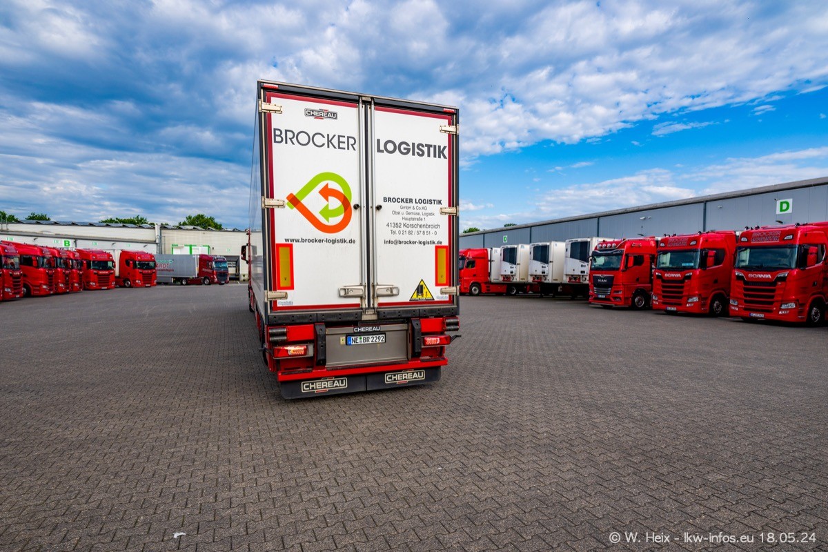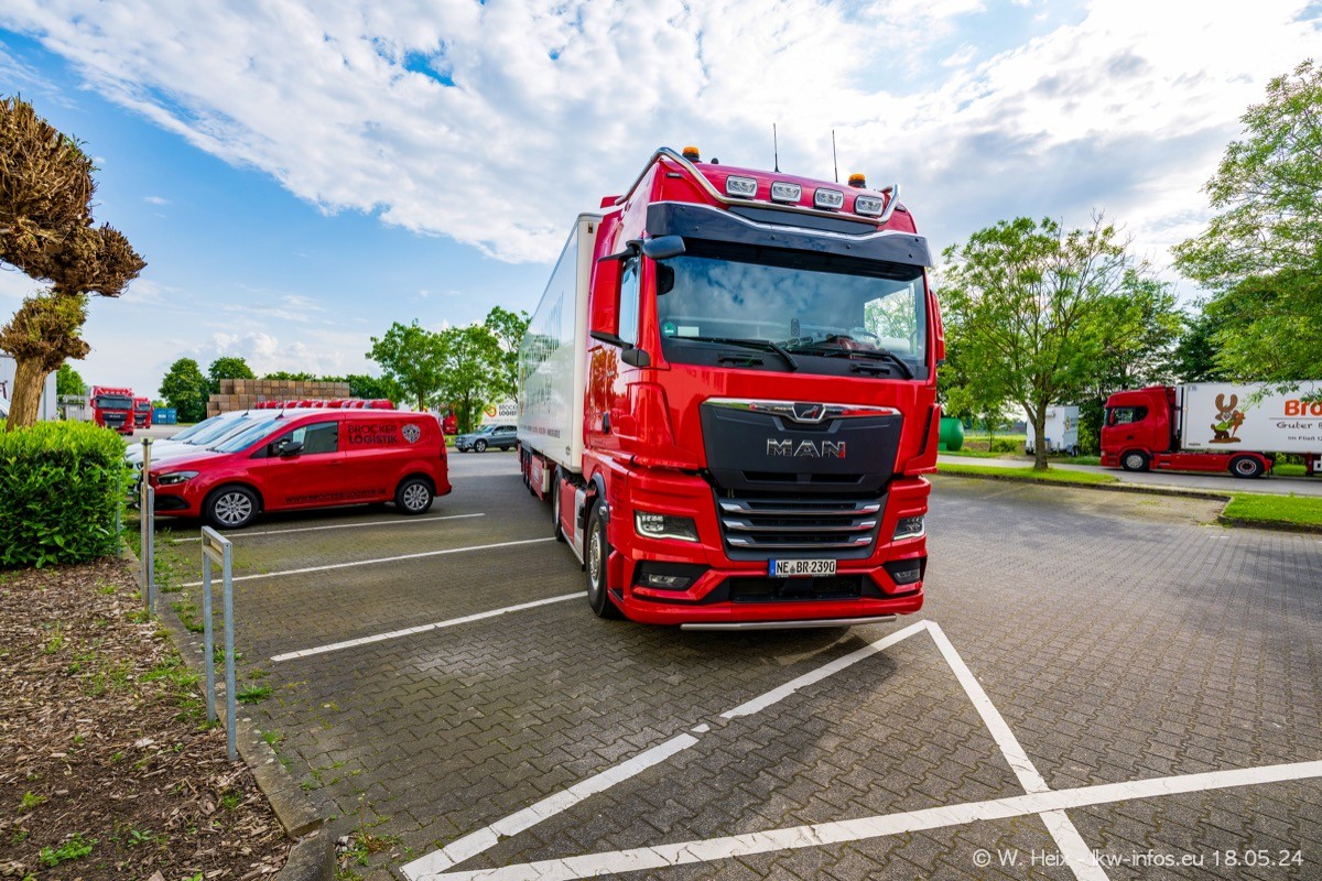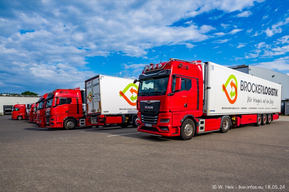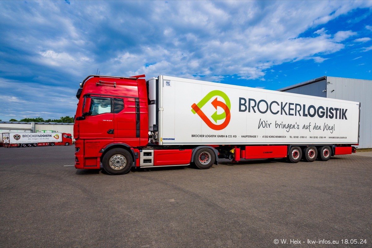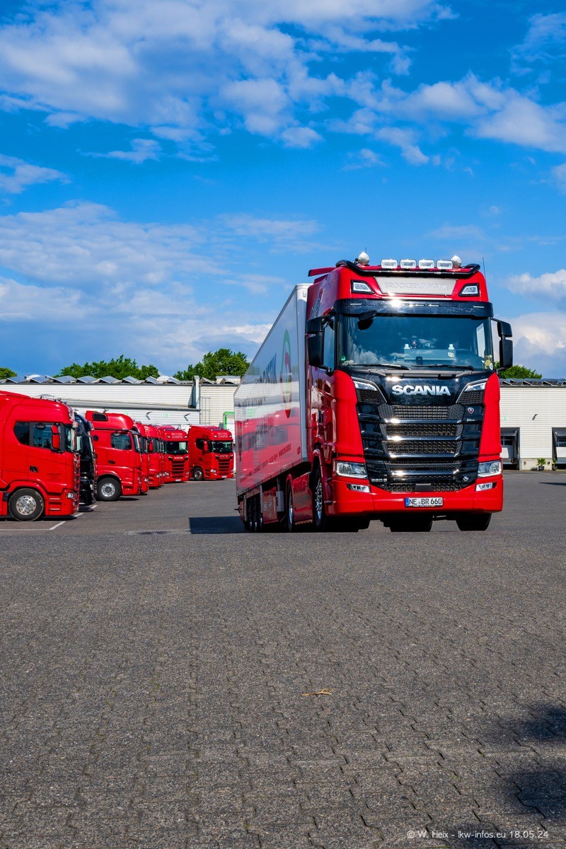 Nach über fünf Jahren war ich wieder bei Brocker Logistik in Korschenbroich. Diesmal wurde ich zu einem kleinen Fotoshooting eingeladen. Am späten Samstag Nachmittag war fast der komplette Fuhrpark zuhause. Das sind aktuell 38 LKW. Zwei fehlten. Zum 10-jährigen Firmenjubiläum wurde im März ein SCANIA 660 S V8 NextGen gekauft. Dieser ist etwas aufwändiger gestaltet als der restliche Fuhrpark, der sich aber auch sehen lassen kann. Auf dem weitläufigen Gelände gab es genug schöne Plätze für dieses kleine Fotoshooting.