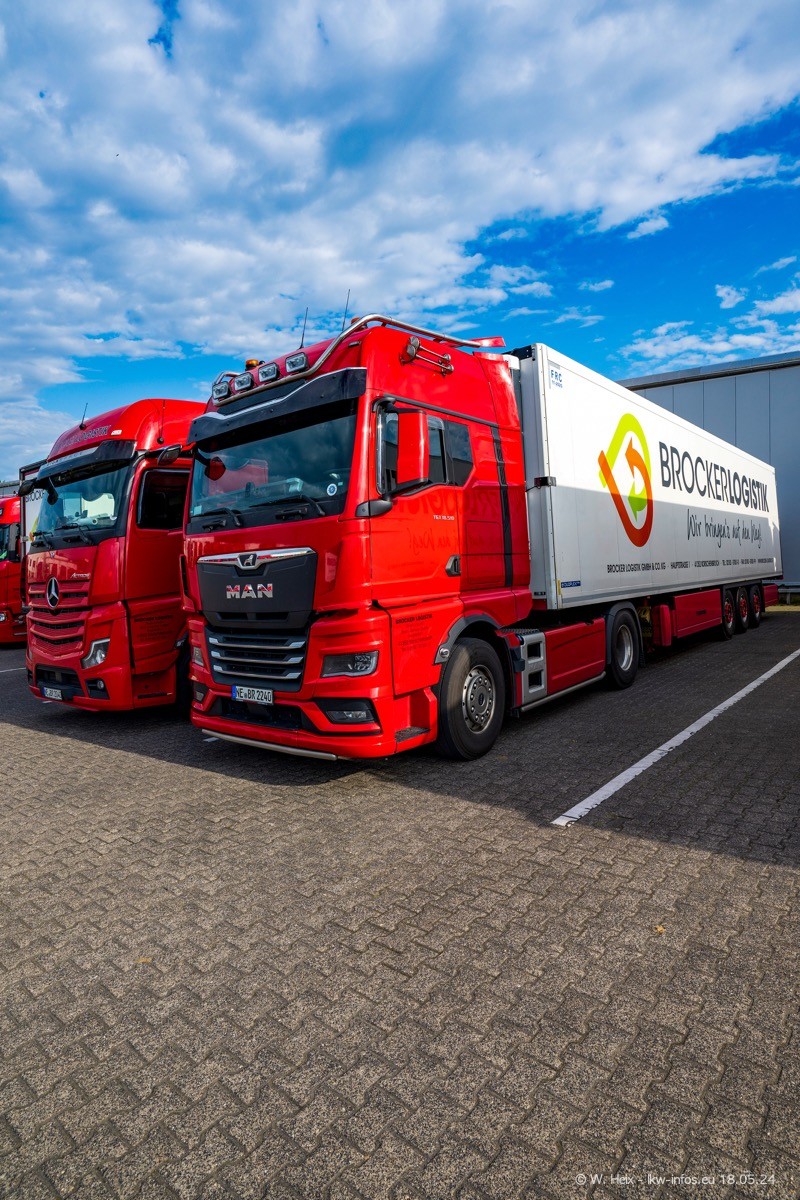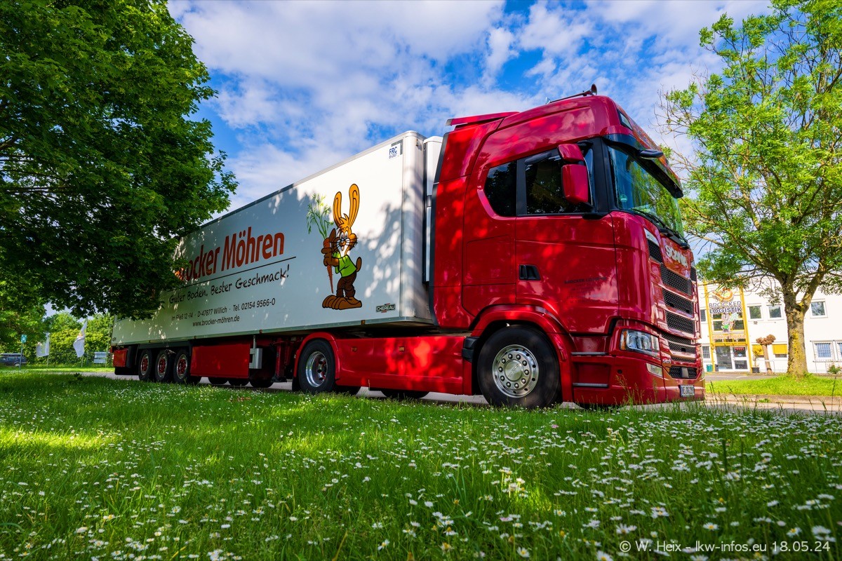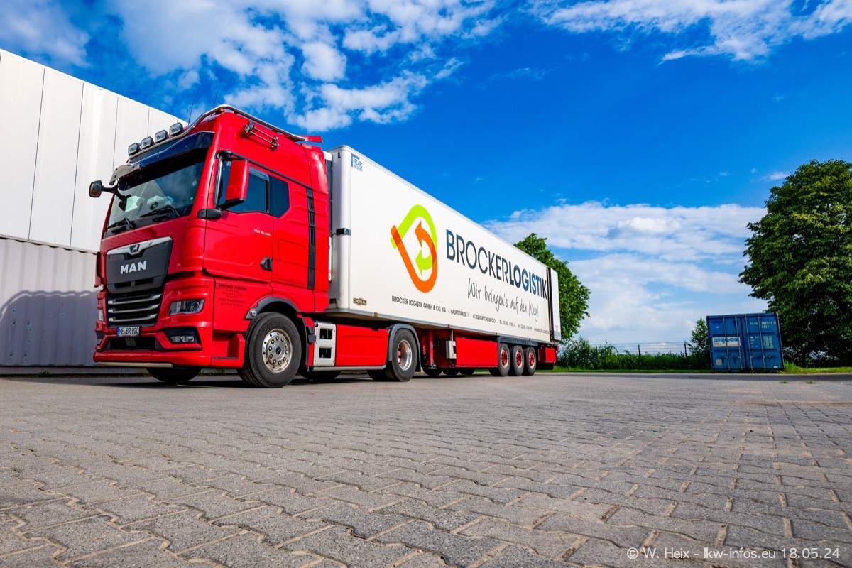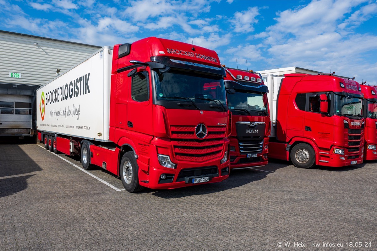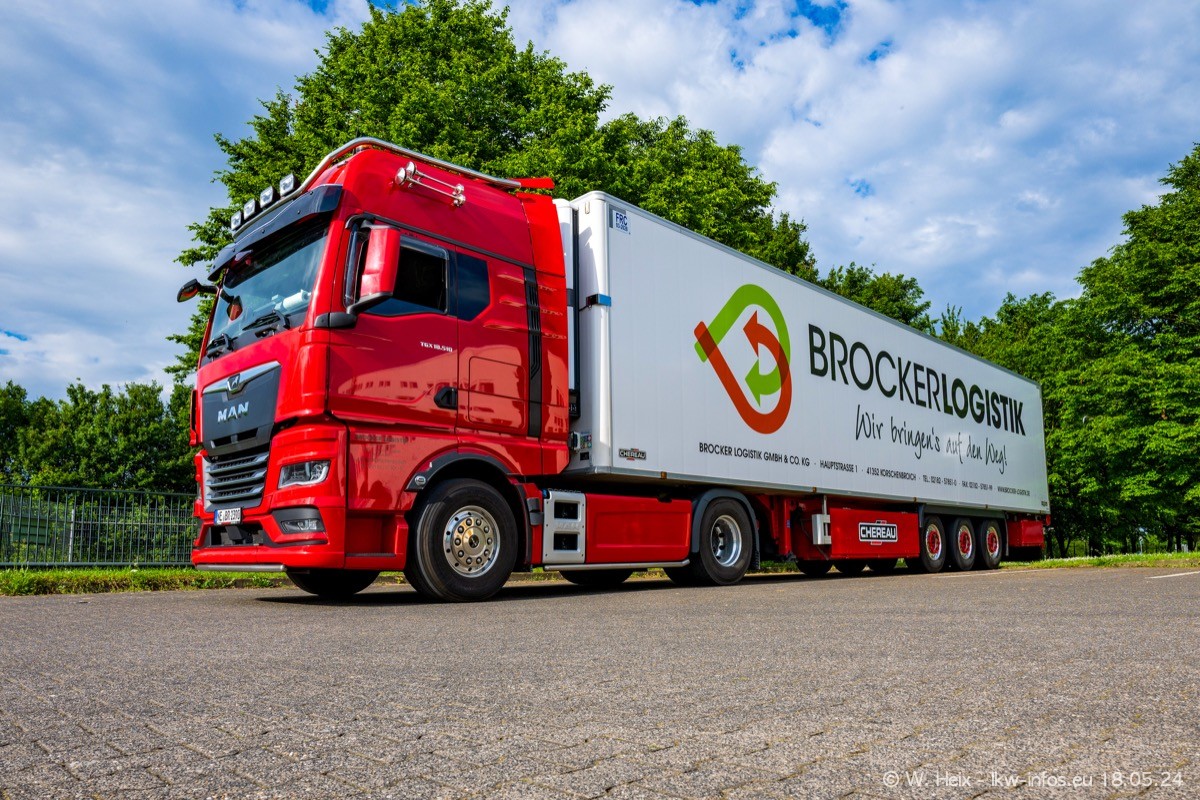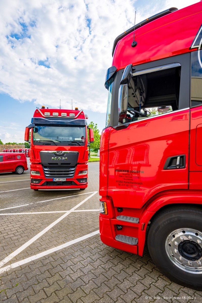 Nach über fünf Jahren war ich wieder bei Brocker Logistik in Korschenbroich. Diesmal wurde ich zu einem kleinen Fotoshooting eingeladen. Am späten Samstag Nachmittag war fast der komplette Fuhrpark zuhause. Das sind aktuell 38 LKW. Zwei fehlten. Zum 10-jährigen Firmenjubiläum wurde im März ein SCANIA 660 S V8 NextGen gekauft. Dieser ist etwas aufwändiger gestaltet als der restliche Fuhrpark, der sich aber auch sehen lassen kann. Auf dem weitläufigen Gelände gab es genug schöne Plätze für dieses kleine Fotoshooting.