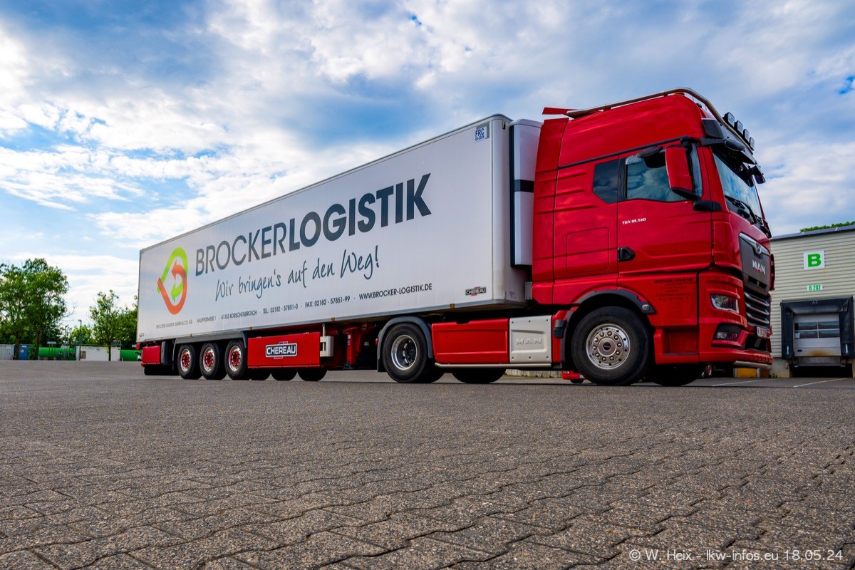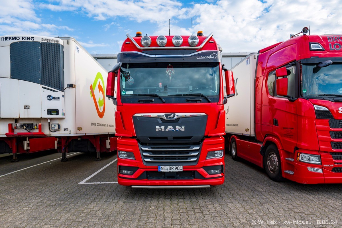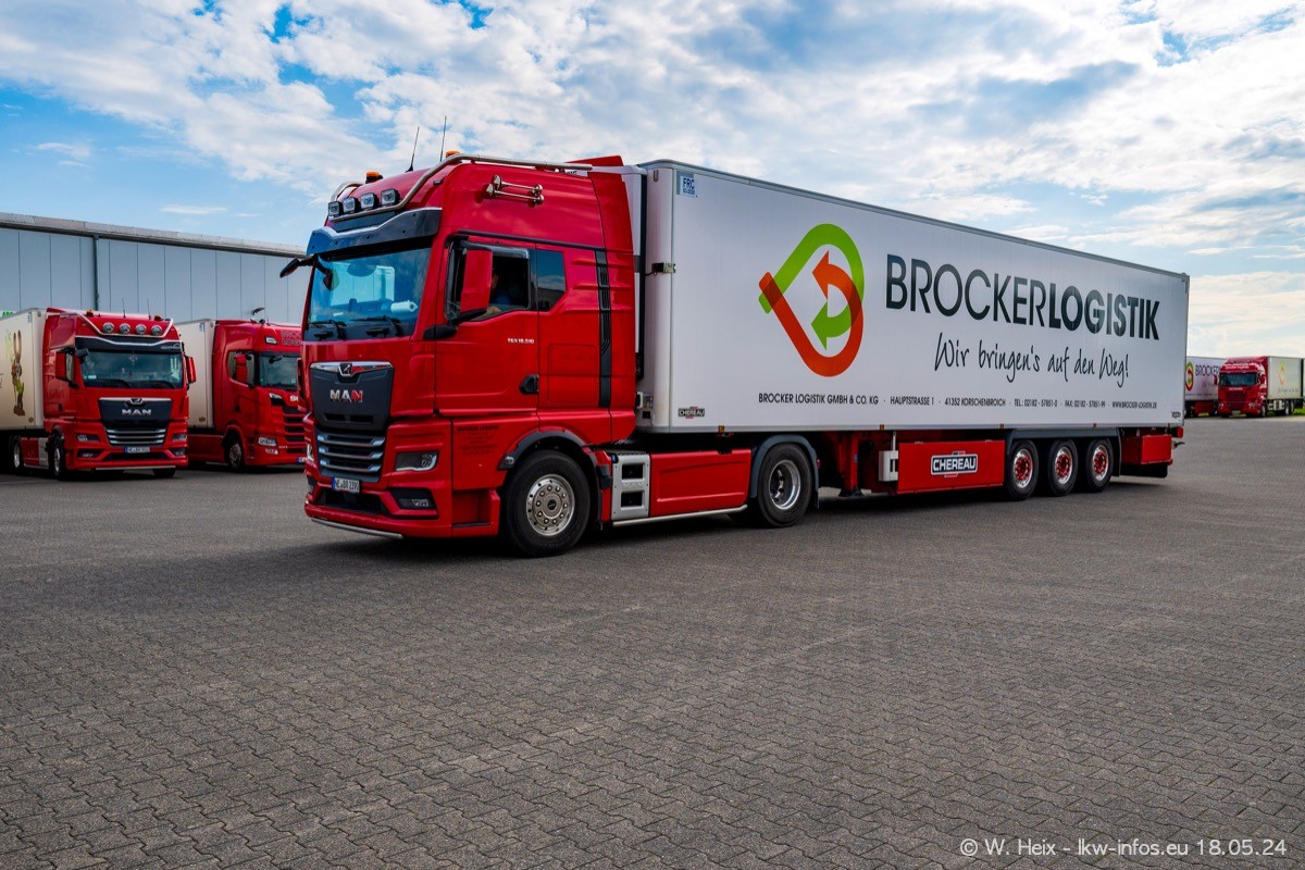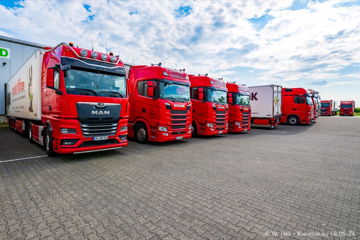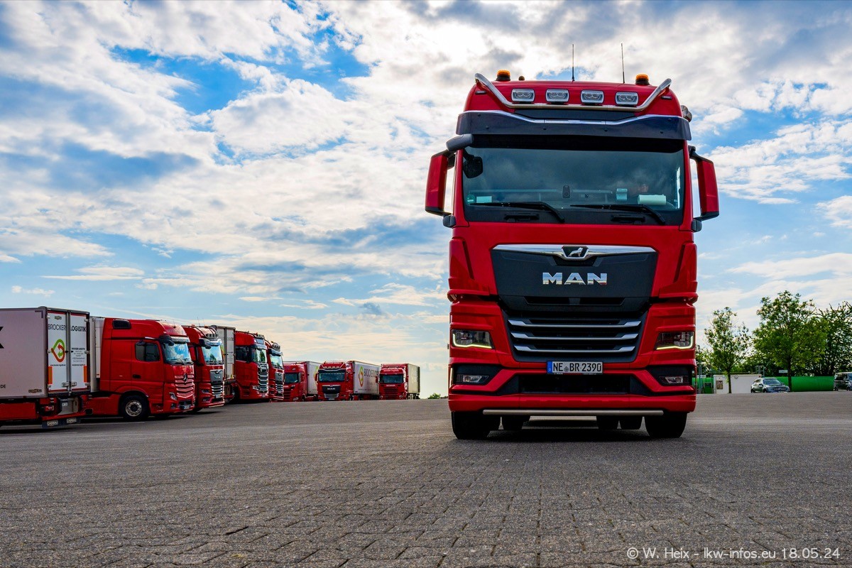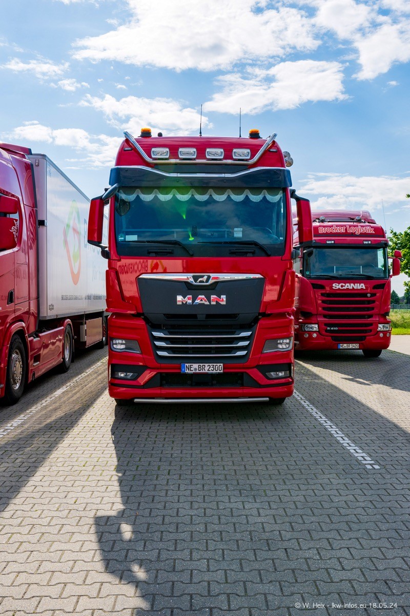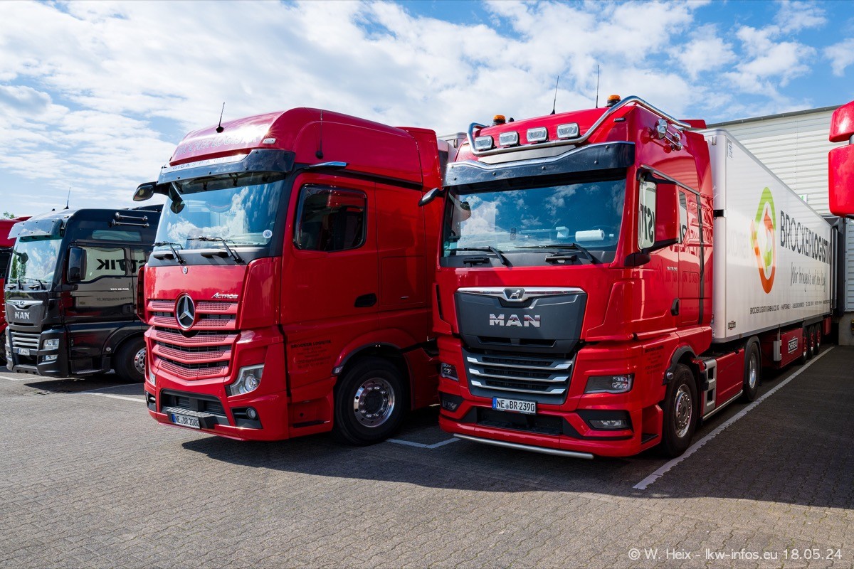 Nach über fünf Jahren war ich wieder bei Brocker Logistik in Korschenbroich. Diesmal wurde ich zu einem kleinen Fotoshooting eingeladen. Am späten Samstag Nachmittag war fast der komplette Fuhrpark zuhause. Das sind aktuell 38 LKW. Zwei fehlten. Zum 10-jährigen Firmenjubiläum wurde im März ein SCANIA 660 S V8 NextGen gekauft. Dieser ist etwas aufwändiger gestaltet als der restliche Fuhrpark, der sich aber auch sehen lassen kann. Auf dem weitläufigen Gelände gab es genug schöne Plätze für dieses kleine Fotoshooting.