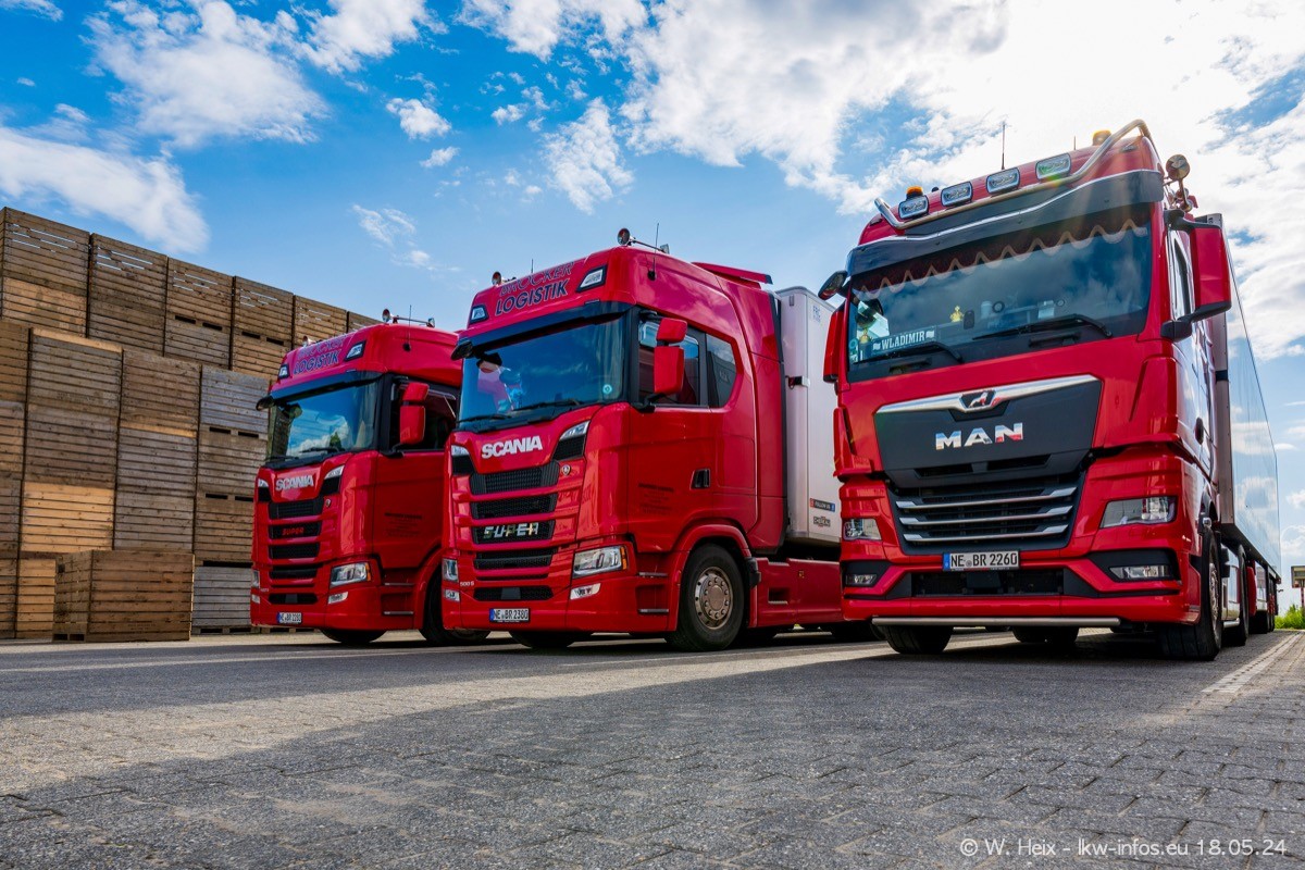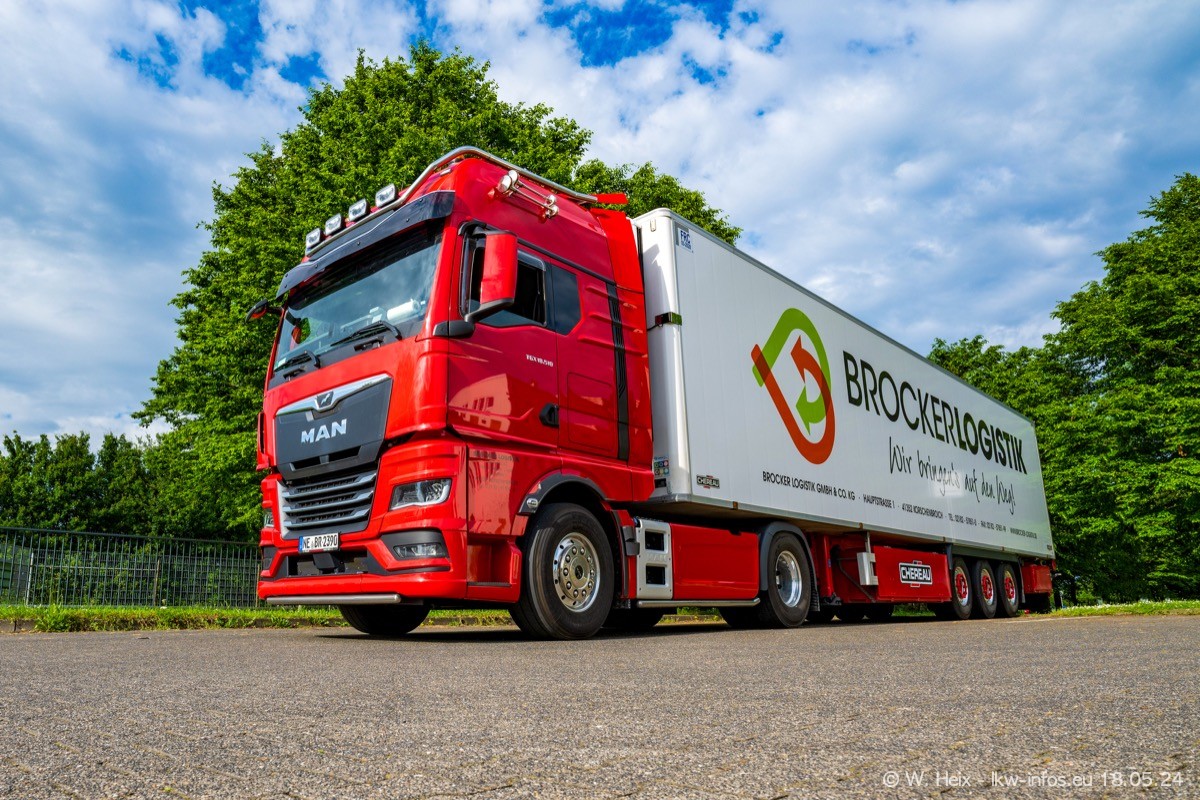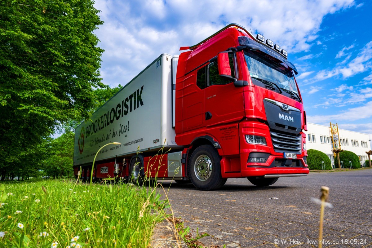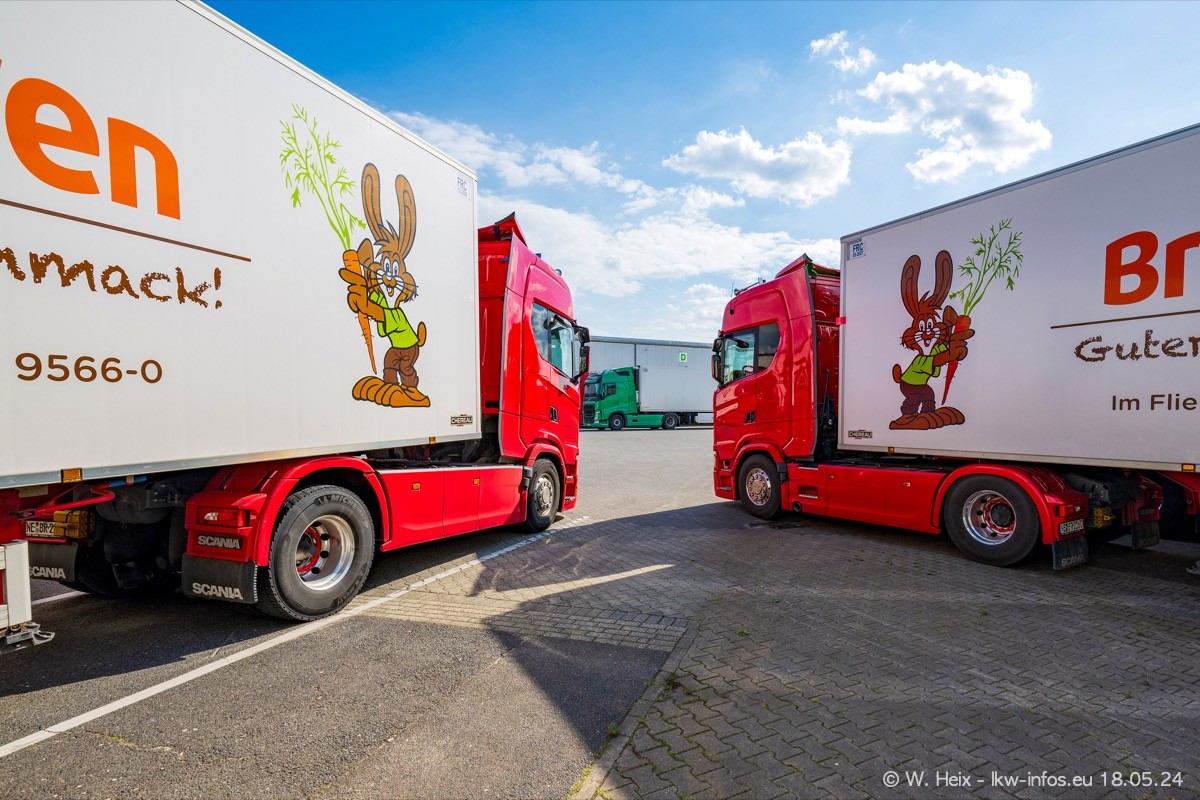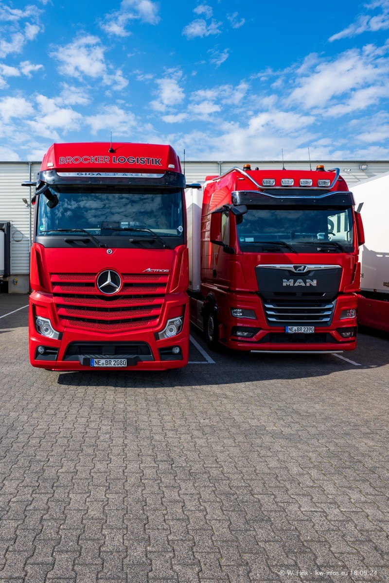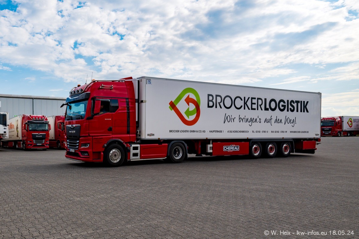 Nach über fünf Jahren war ich wieder bei Brocker Logistik in Korschenbroich. Diesmal wurde ich zu einem kleinen Fotoshooting eingeladen. Am späten Samstag Nachmittag war fast der komplette Fuhrpark zuhause. Das sind aktuell 38 LKW. Zwei fehlten. Zum 10-jährigen Firmenjubiläum wurde im März ein SCANIA 660 S V8 NextGen gekauft. Dieser ist etwas aufwändiger gestaltet als der restliche Fuhrpark, der sich aber auch sehen lassen kann. Auf dem weitläufigen Gelände gab es genug schöne Plätze für dieses kleine Fotoshooting.