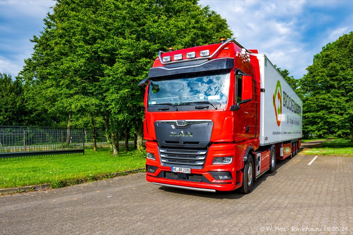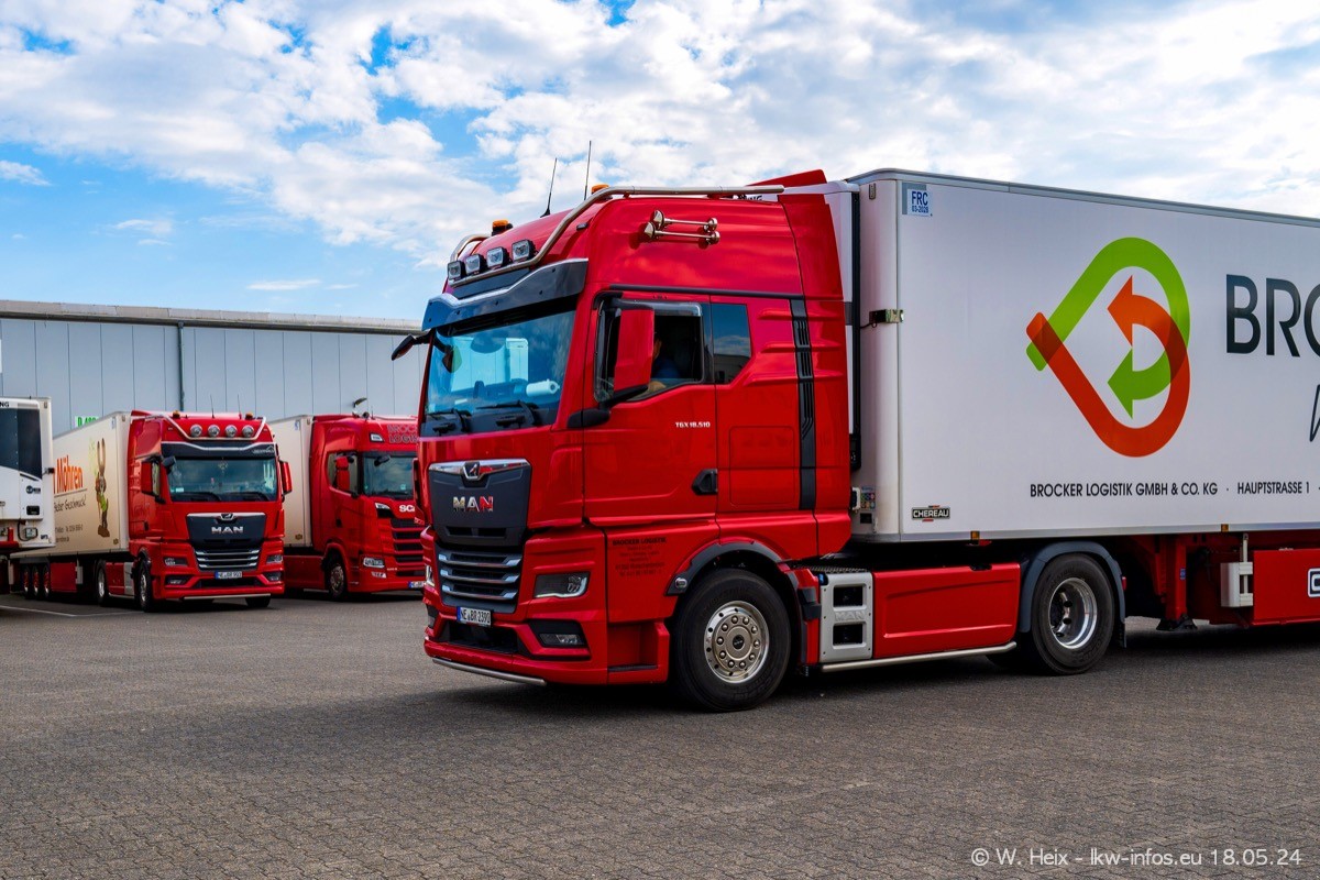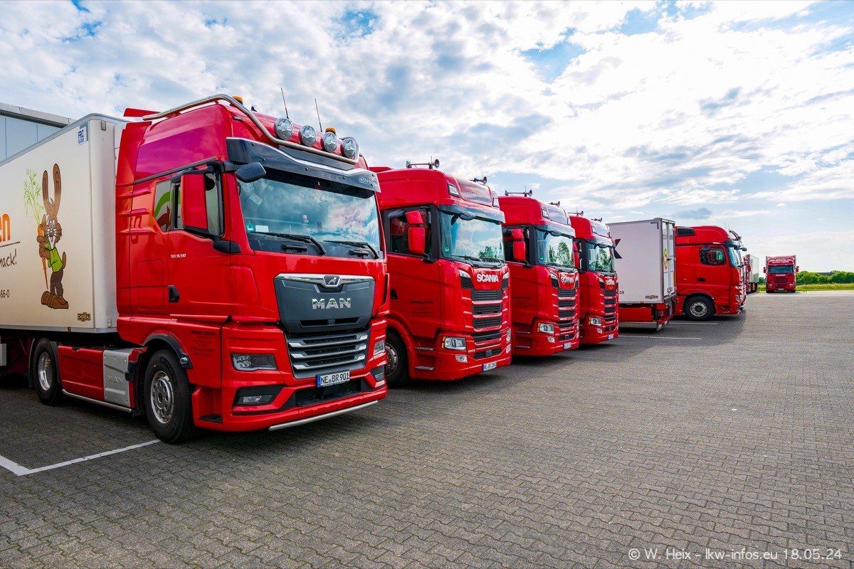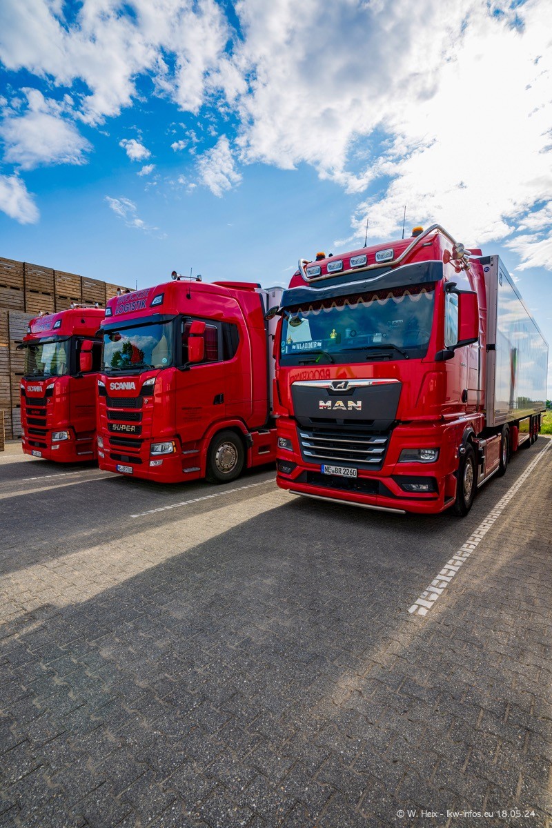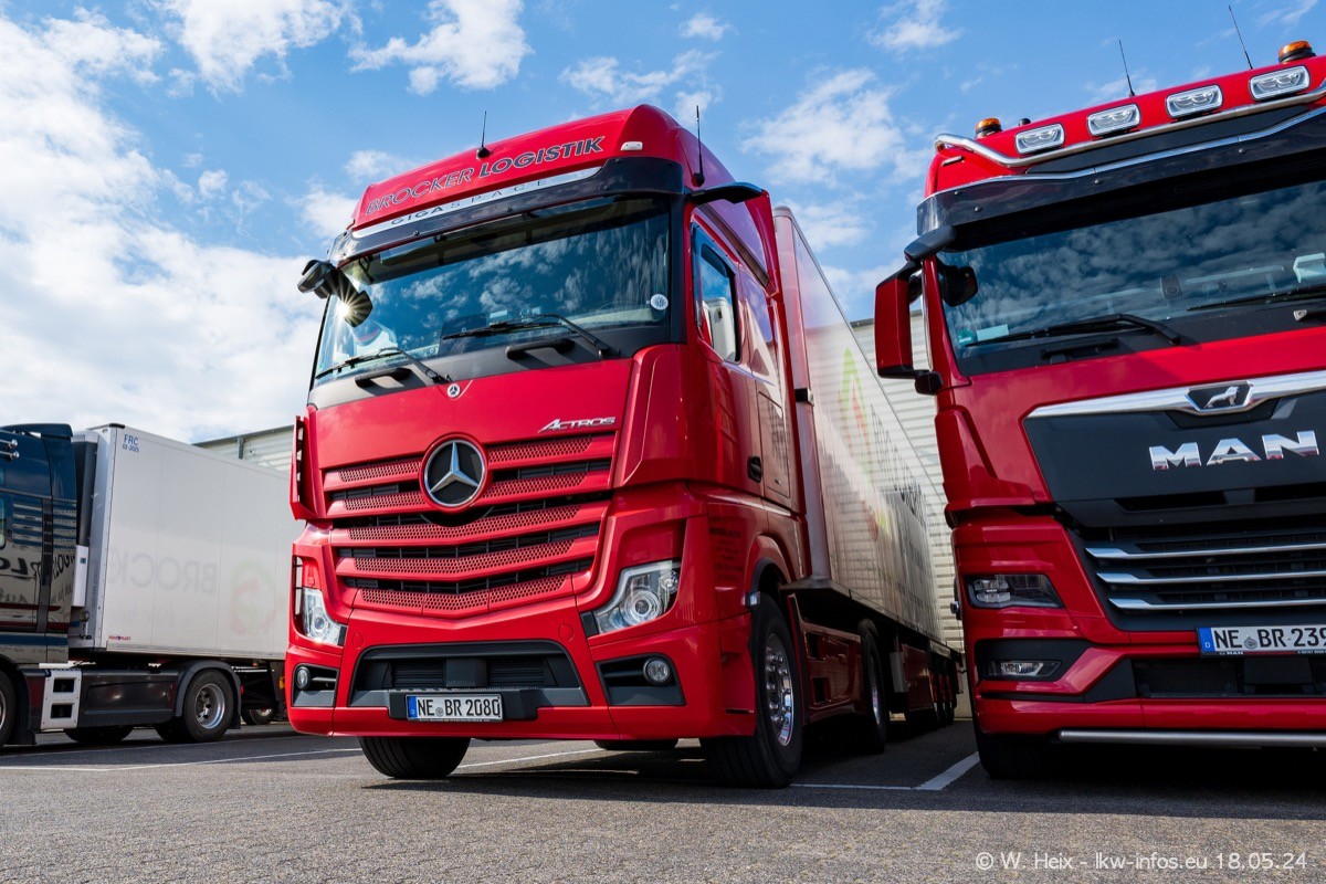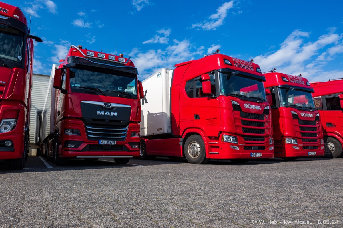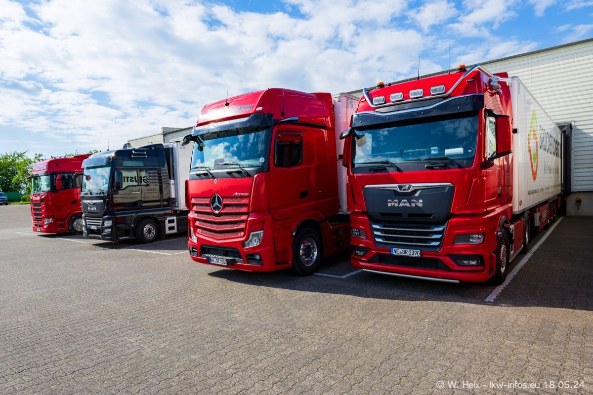 Nach über fünf Jahren war ich wieder bei Brocker Logistik in Korschenbroich. Diesmal wurde ich zu einem kleinen Fotoshooting eingeladen. Am späten Samstag Nachmittag war fast der komplette Fuhrpark zuhause. Das sind aktuell 38 LKW. Zwei fehlten. Zum 10-jährigen Firmenjubiläum wurde im März ein SCANIA 660 S V8 NextGen gekauft. Dieser ist etwas aufwändiger gestaltet als der restliche Fuhrpark, der sich aber auch sehen lassen kann. Auf dem weitläufigen Gelände gab es genug schöne Plätze für dieses kleine Fotoshooting.