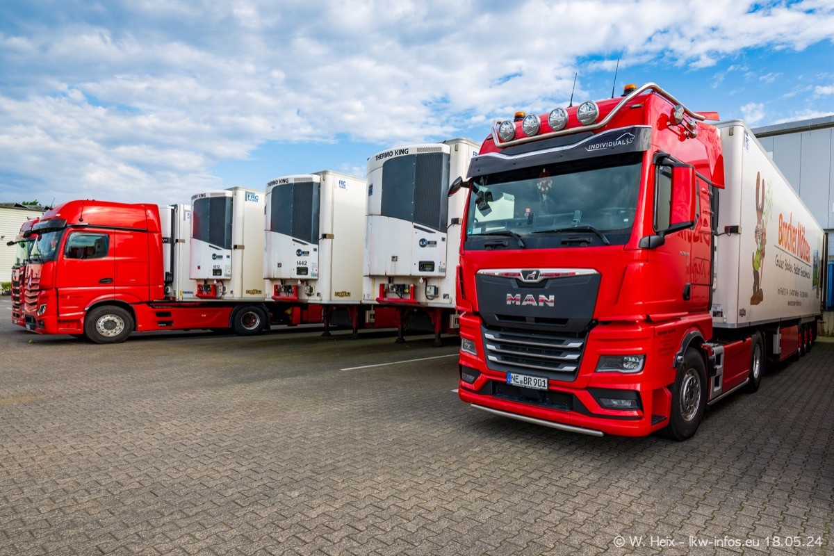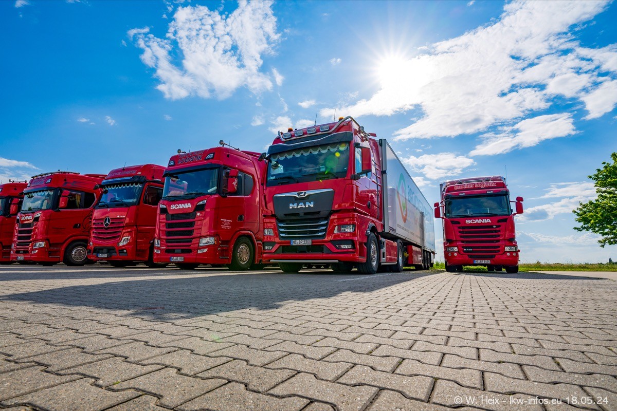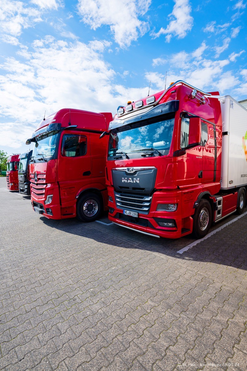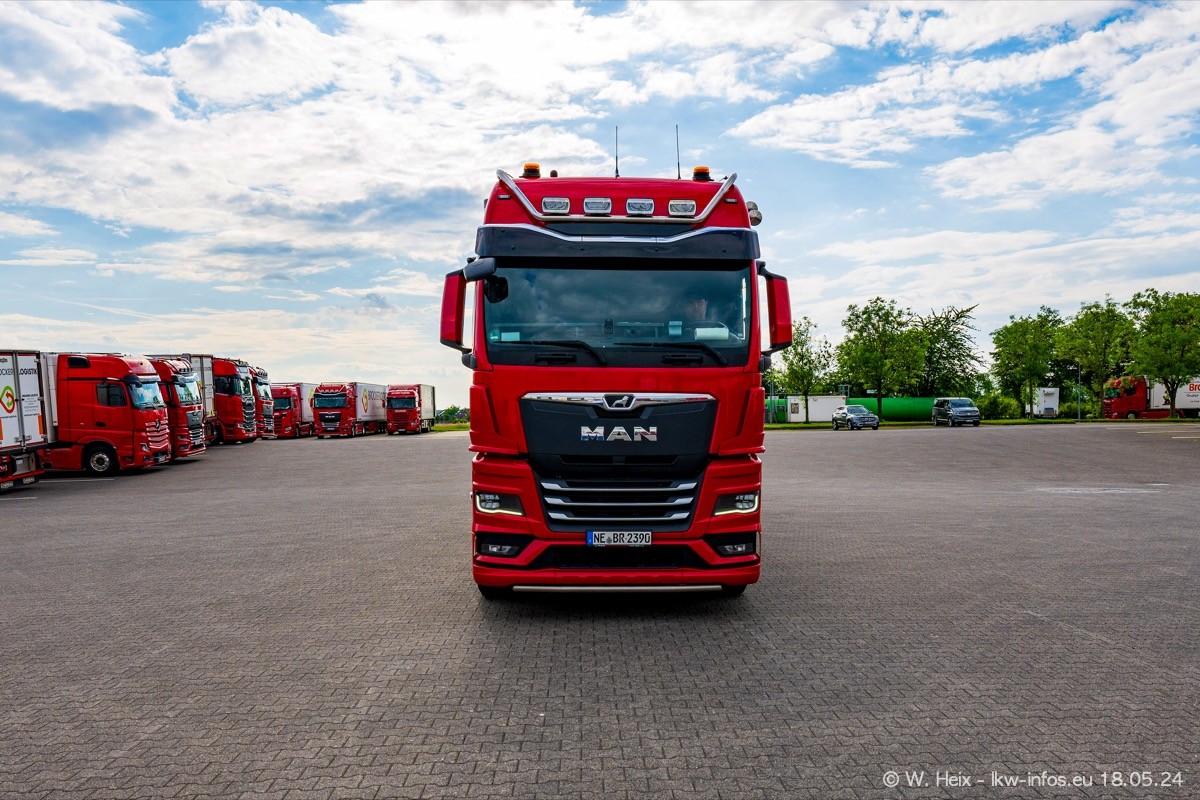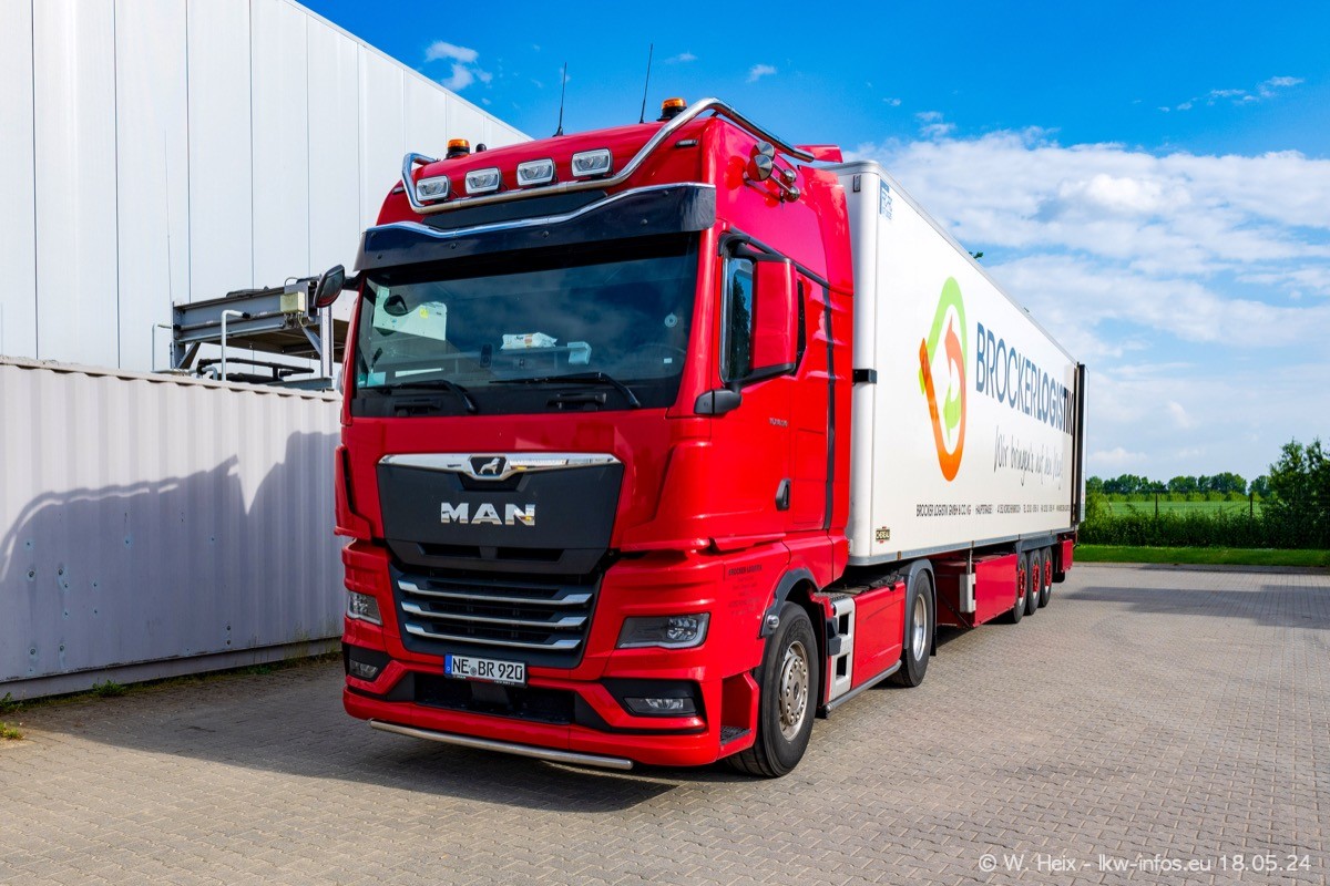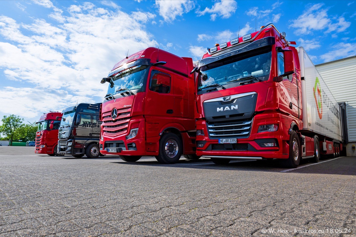 Nach über fünf Jahren war ich wieder bei Brocker Logistik in Korschenbroich. Diesmal wurde ich zu einem kleinen Fotoshooting eingeladen. Am späten Samstag Nachmittag war fast der komplette Fuhrpark zuhause. Das sind aktuell 38 LKW. Zwei fehlten. Zum 10-jährigen Firmenjubiläum wurde im März ein SCANIA 660 S V8 NextGen gekauft. Dieser ist etwas aufwändiger gestaltet als der restliche Fuhrpark, der sich aber auch sehen lassen kann. Auf dem weitläufigen Gelände gab es genug schöne Plätze für dieses kleine Fotoshooting.