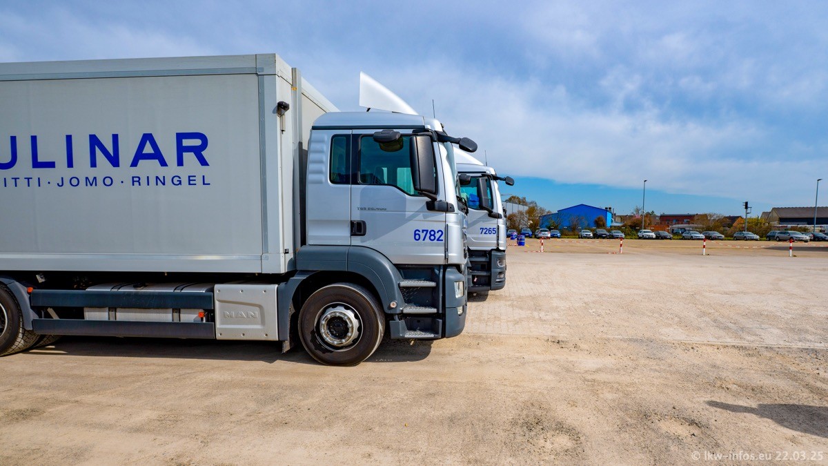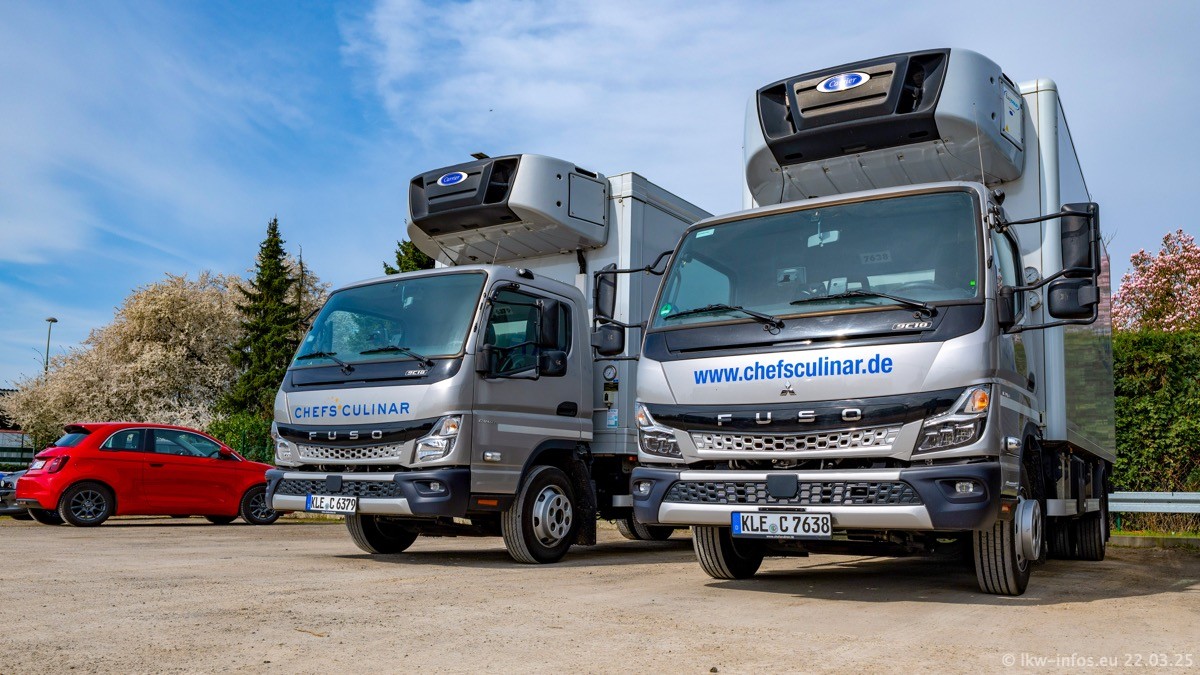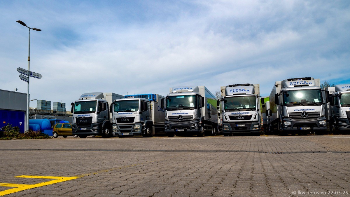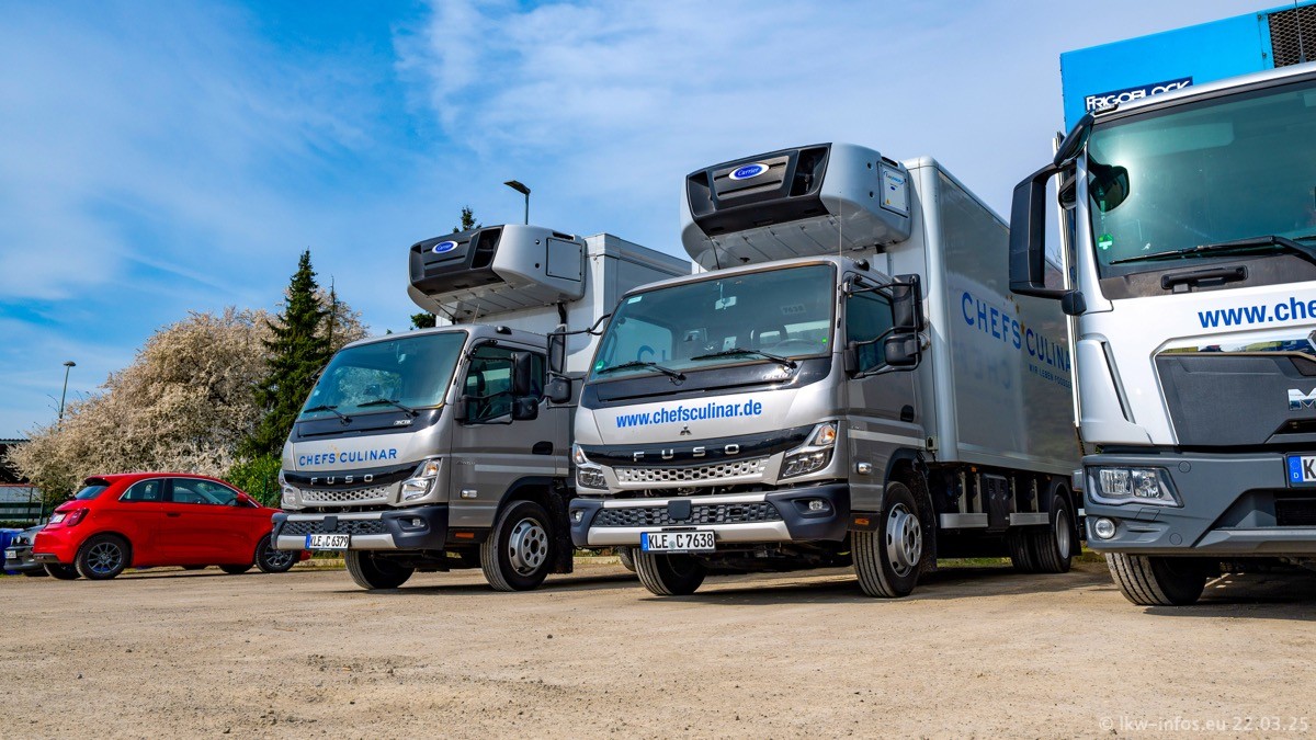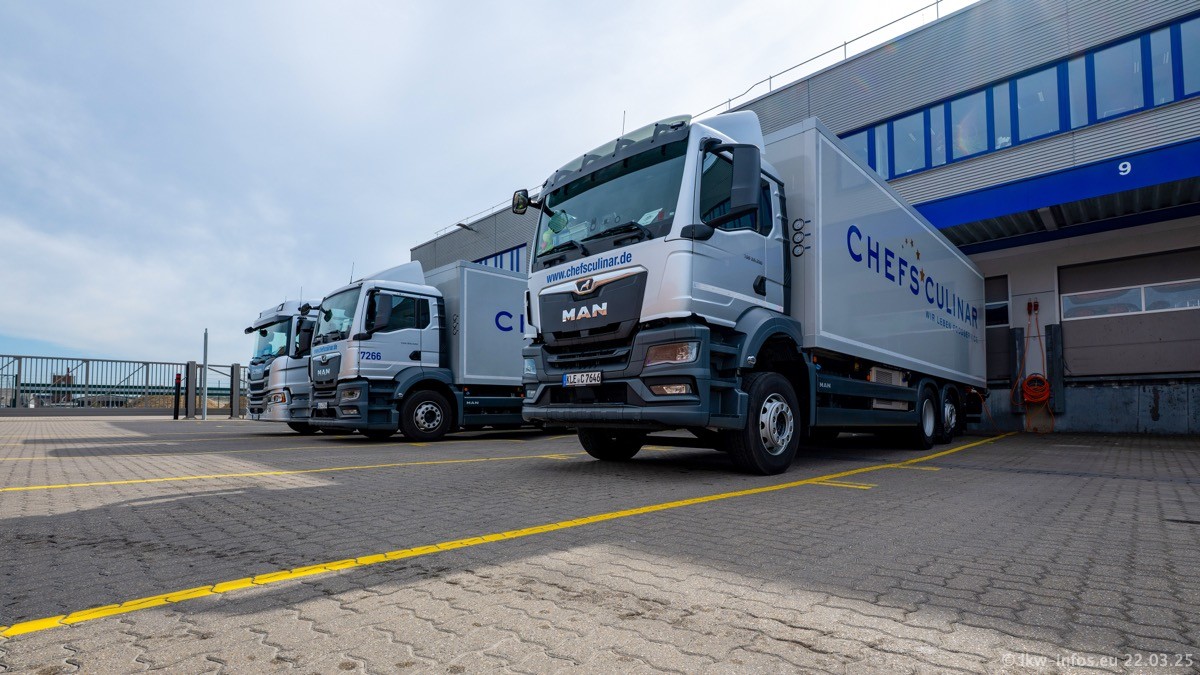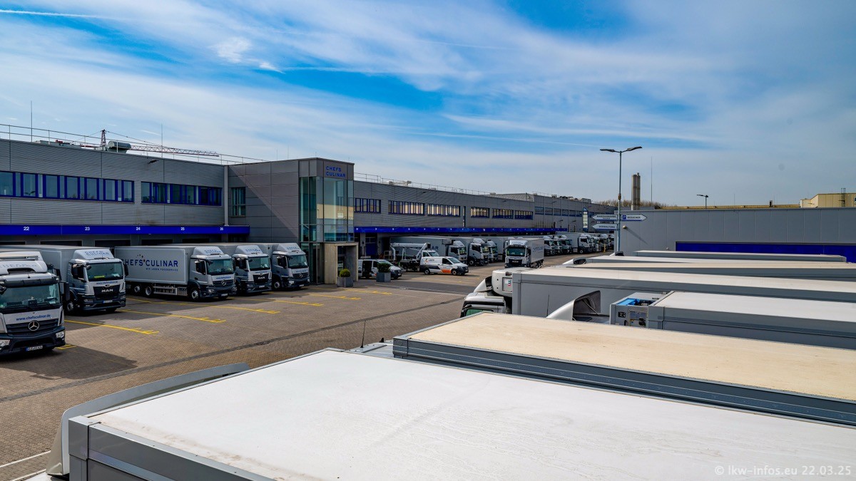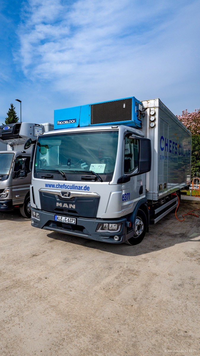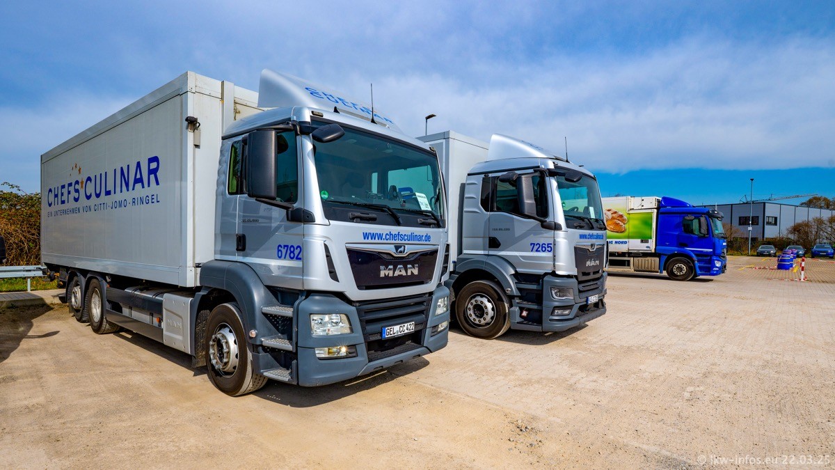 Mein letzter Besuch bei CHEFS CULINAR war Mitte 2021, war also vor fast vier Jahren. Entsprechend viel hat sich im Fuhrpark verändert. Insgesamt gibt es aktuell gut 170 LKW am Standort Weeze. Das sind ein paar letzte VOLVO FE, Mercedes-Benz Antos und Actros, MAN TGL, TGS und 2 TGX Sattelzüge. Dazu komen drei Fuso Canter und ein paar IVECO Daily und mindestens ein Mercedes-Benz Sprinter. Seit April 2024 ist mit SCANIA ein neuer Hersteller im Fuprpark vertreten. Das sind aktuell 10 SCANIA P 320 NextGen. Die letzten sind im Oktober 2024 dazu gekommen. In den letzten zwei Jahren wurden außerdem 70 neue MAN TGL und TGS gekauft, die ältere Fahrzeuge ersetzen und ein paar Mercedes-Benz Actros sind ebenfalls neu. Außerdem gibt es noch eine "Besonderheit": In der nächsten Woche wird der letzte MAN TGS im alten blau-gelben Design "JOMO" den Fuhrpark verlassen. Die Umstellung auf das heutige Design begann im Jahr 201. Der LKW ist im Teil 5 ganz am Ende der Galerie zu sehen.