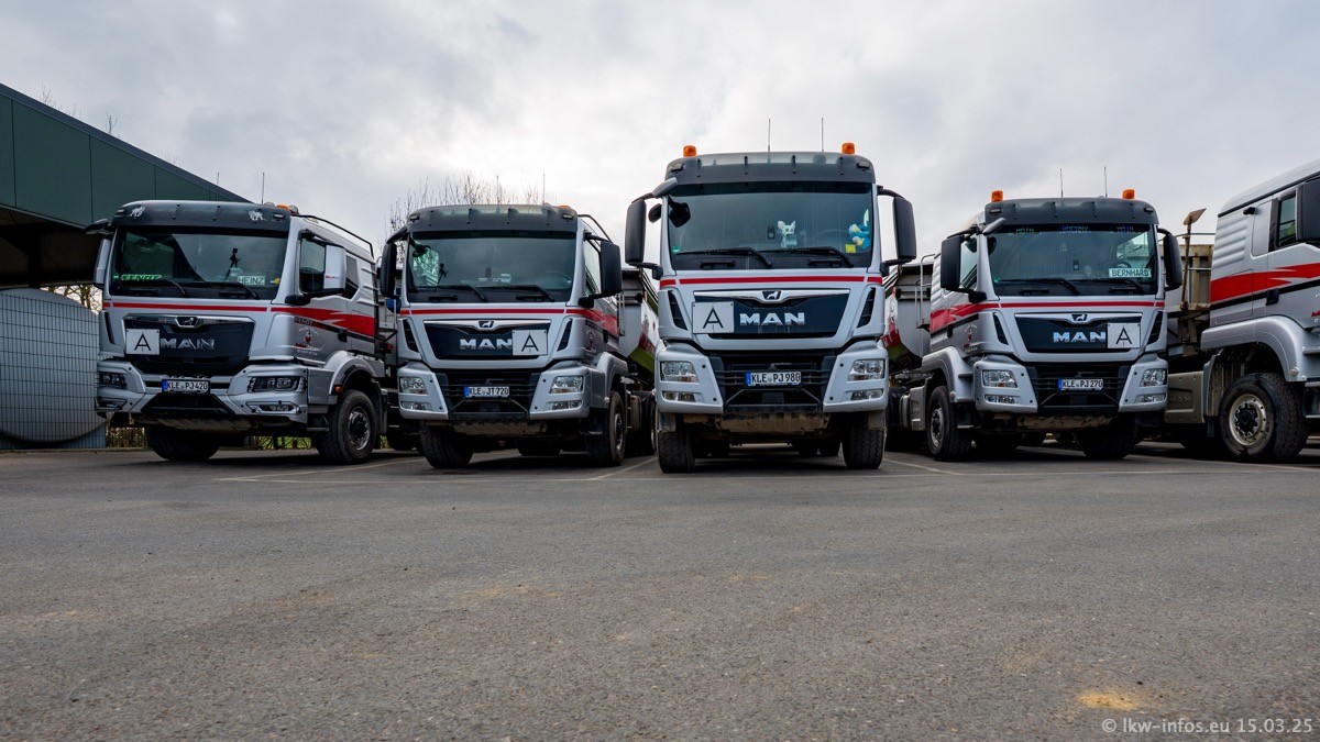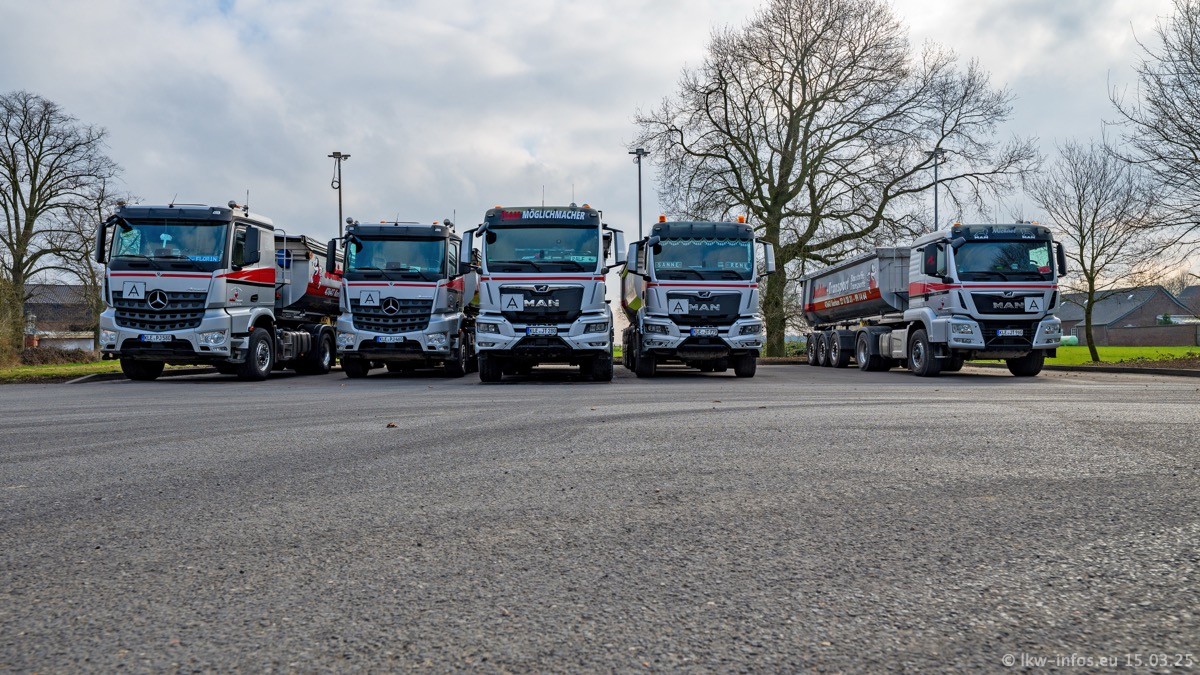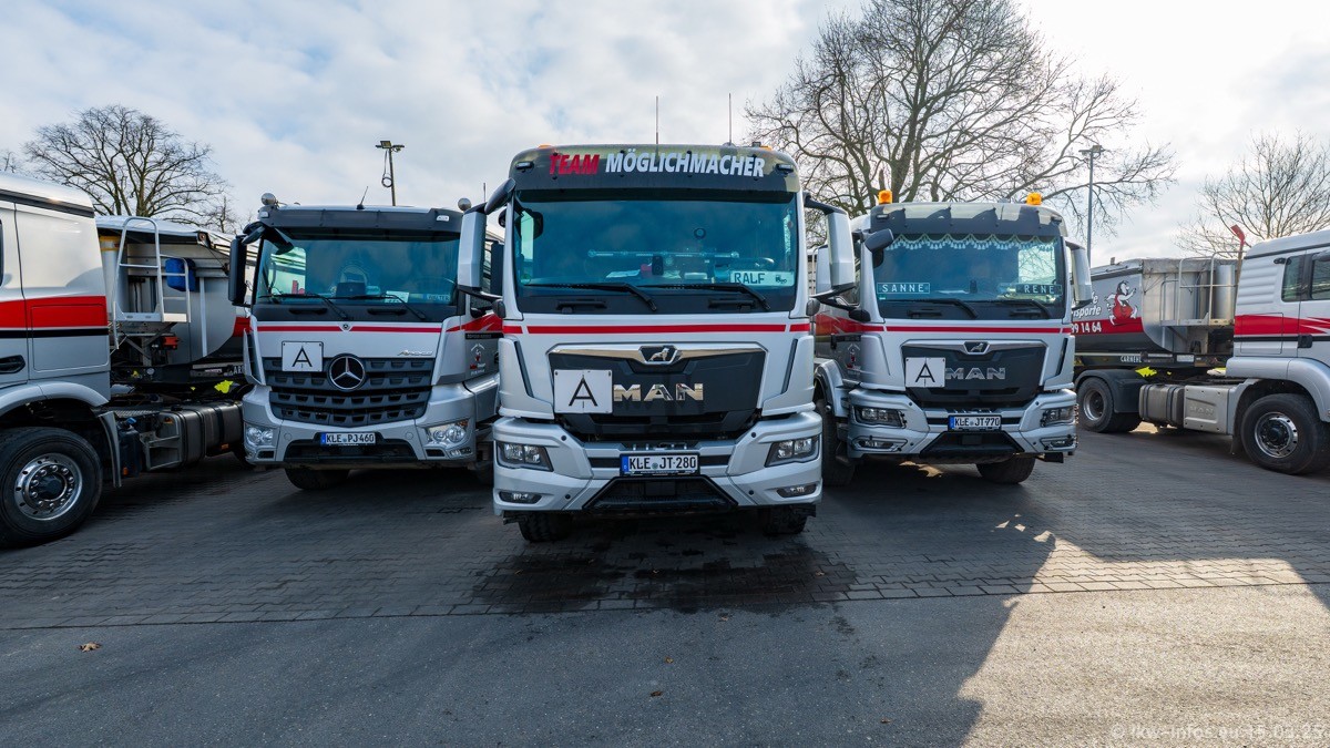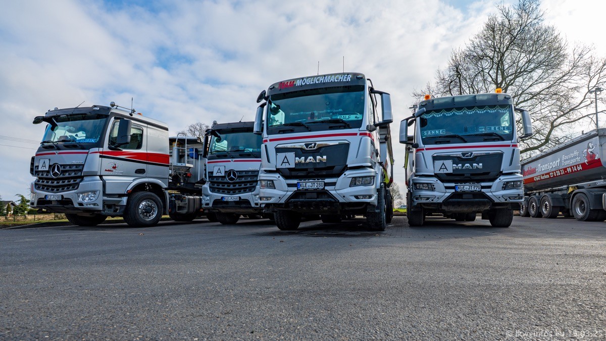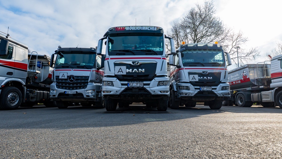 Neu sind die beiden Mercedes-Benz Arocs 8x4 Kipper, die aber schon im Sommer/Herbst 2024 gekauft wurden.