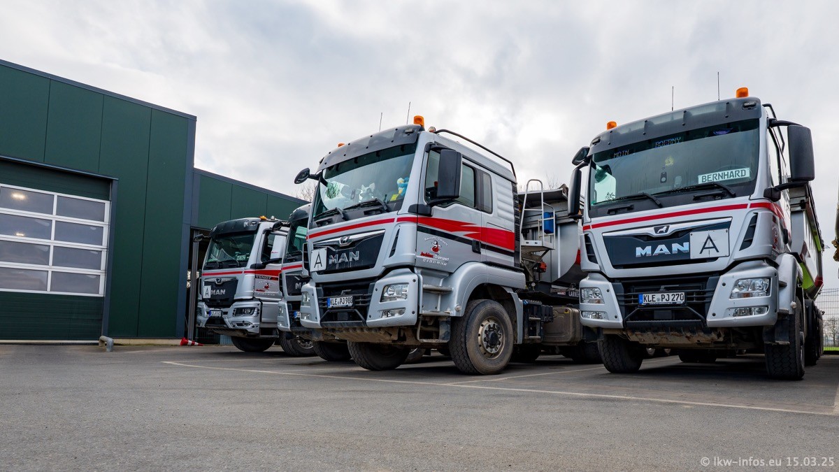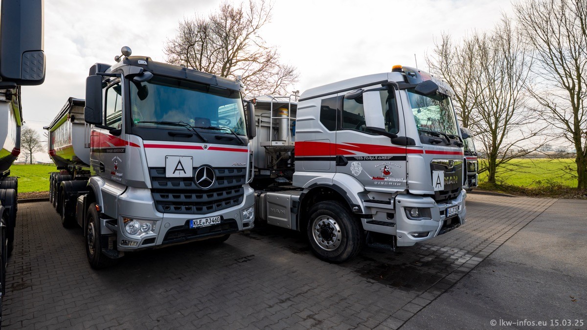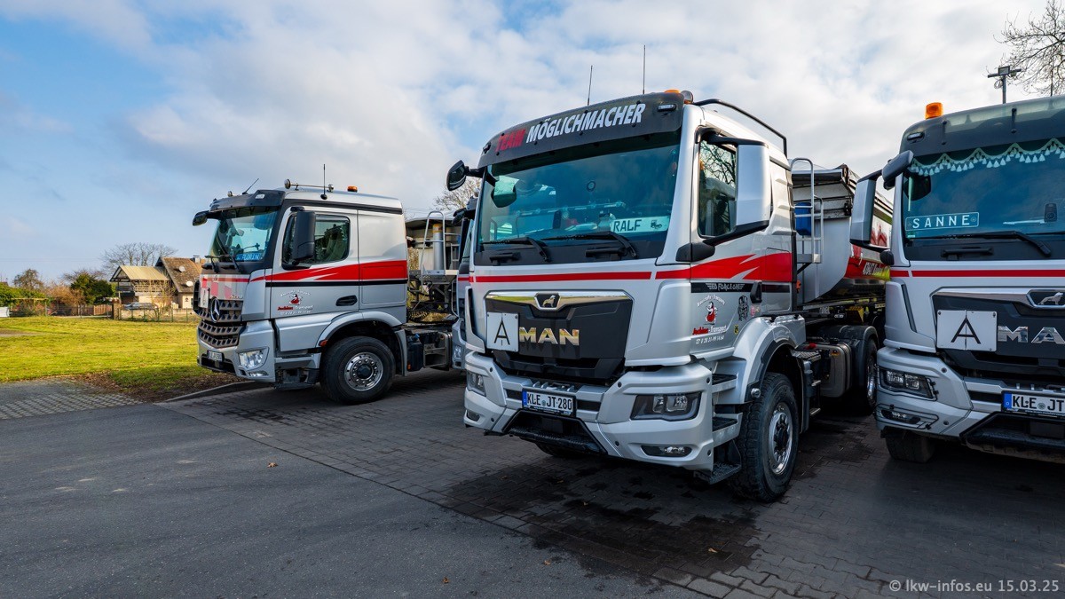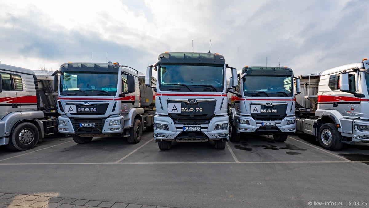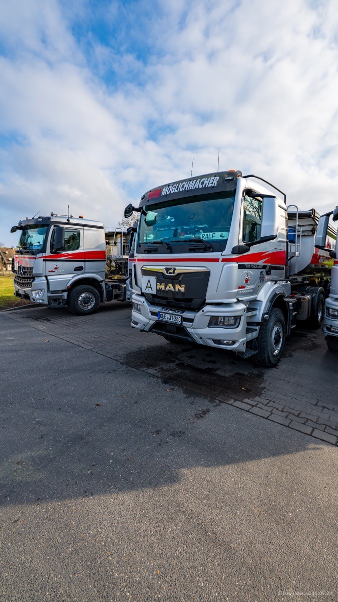 Neu sind die beiden Mercedes-Benz Arocs 8x4 Kipper, die aber schon im Sommer/Herbst 2024 gekauft wurden.