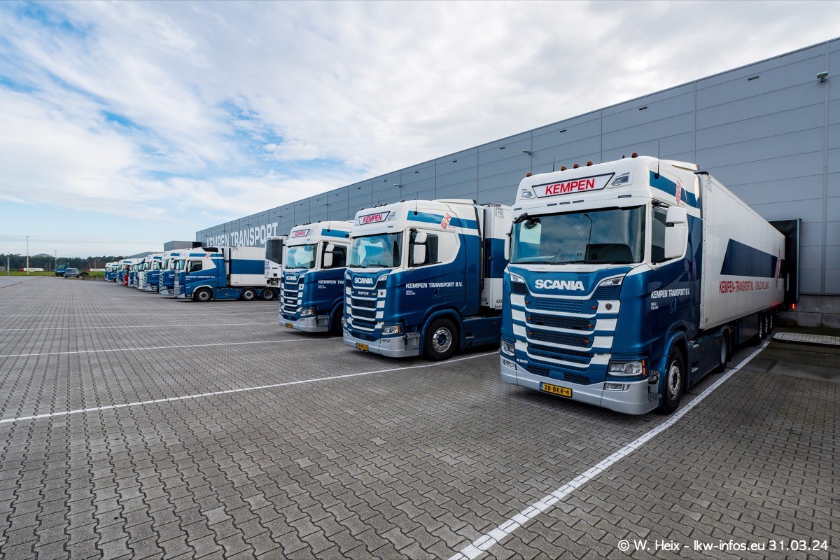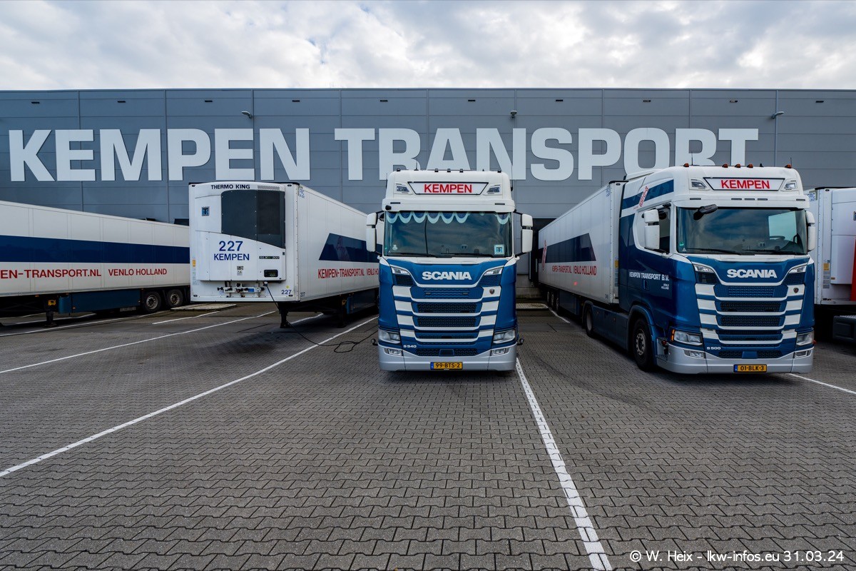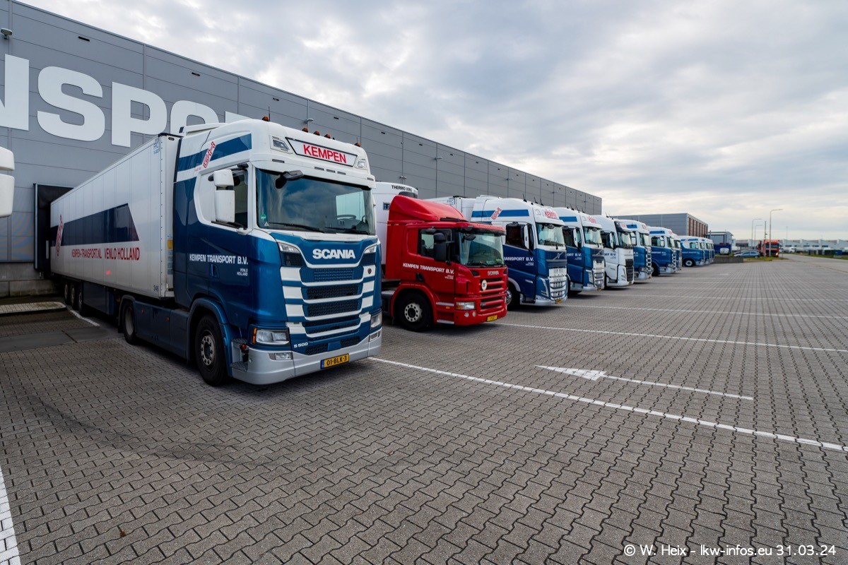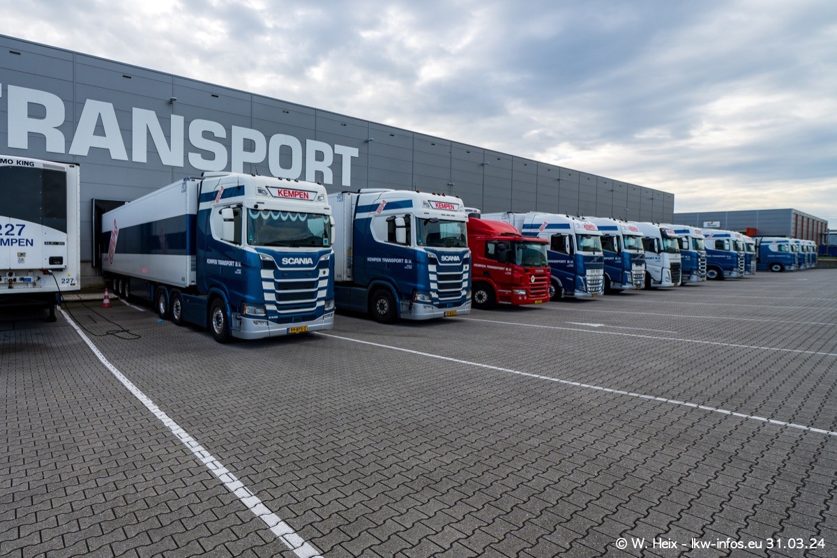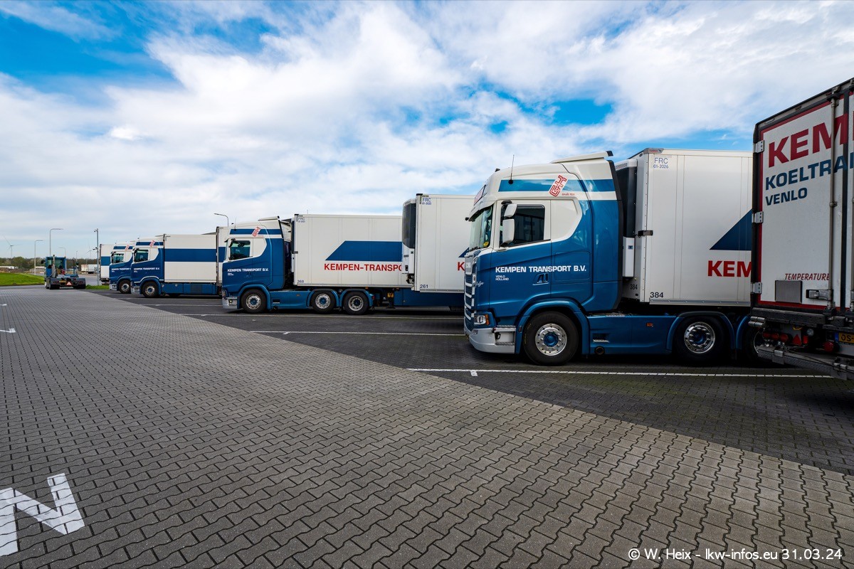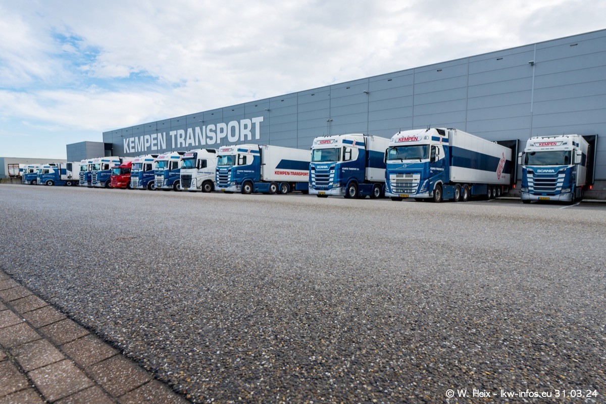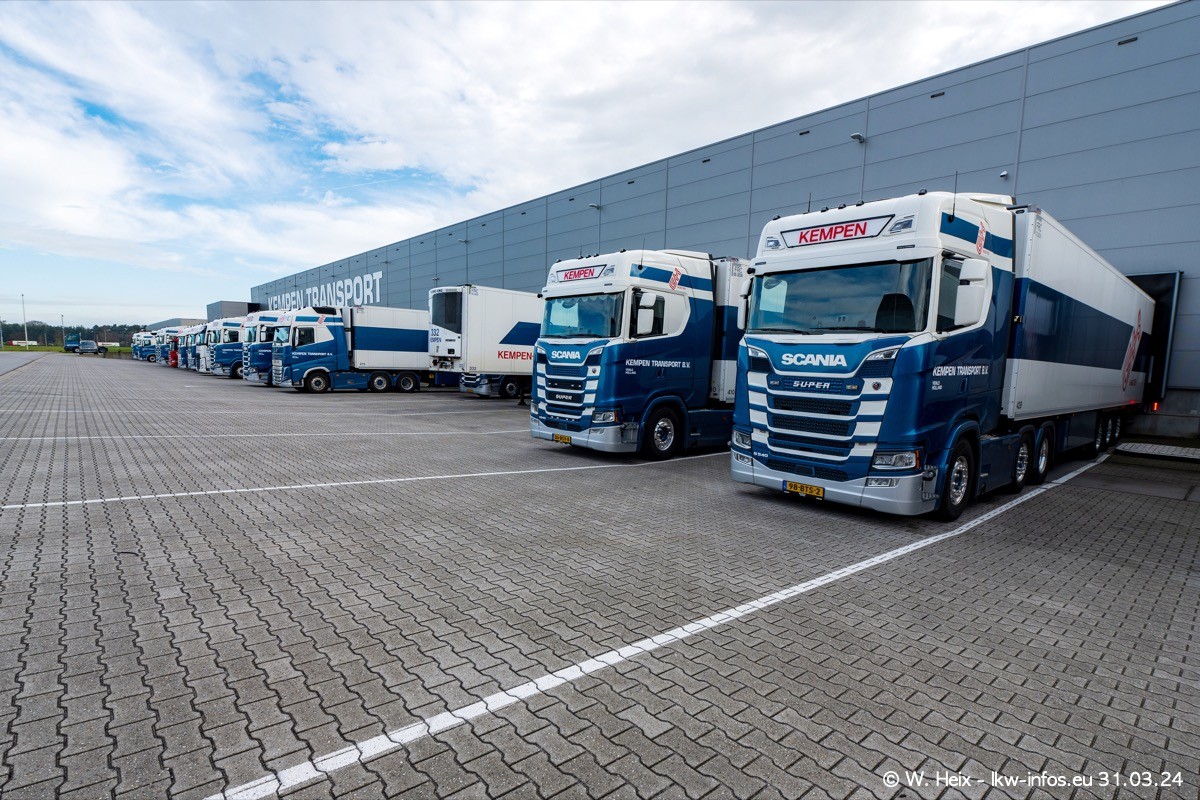 In diesem Jahr sind schon insgesamt mindestens 10 neue LKW in den Fuhrpark gekommen. Alle neuen LKW sind seit 2024 daran zu erkennen, dass aon der Fromt oben am Dach der Kempen-Schriftzug jetzt weiß ist in einem blauen Feld. Bisher war dieser immer rot auf weiß. Es waren so gut wie alle LKW zuzhause und standen auch wieder auf den Nachbargrundstücken. Diesmal konnte ich keinen SCANIA R Streamline und keinen DAF XF mehr sehen bis auf den neuen blauen DAF XG+ natürlich. Vermutlich sind jetzt alle alten SCANIA und DAF ersetzt durch VOLVO FH 5 und SCANIA R/S NextGen. Es sind natürlich auch wieder Bilder von den Chatern (Subunternehmern) in den Galerien enthalten. Auch hier tut sich immer wieder mal was.