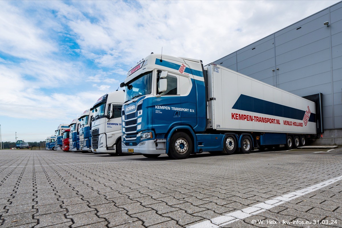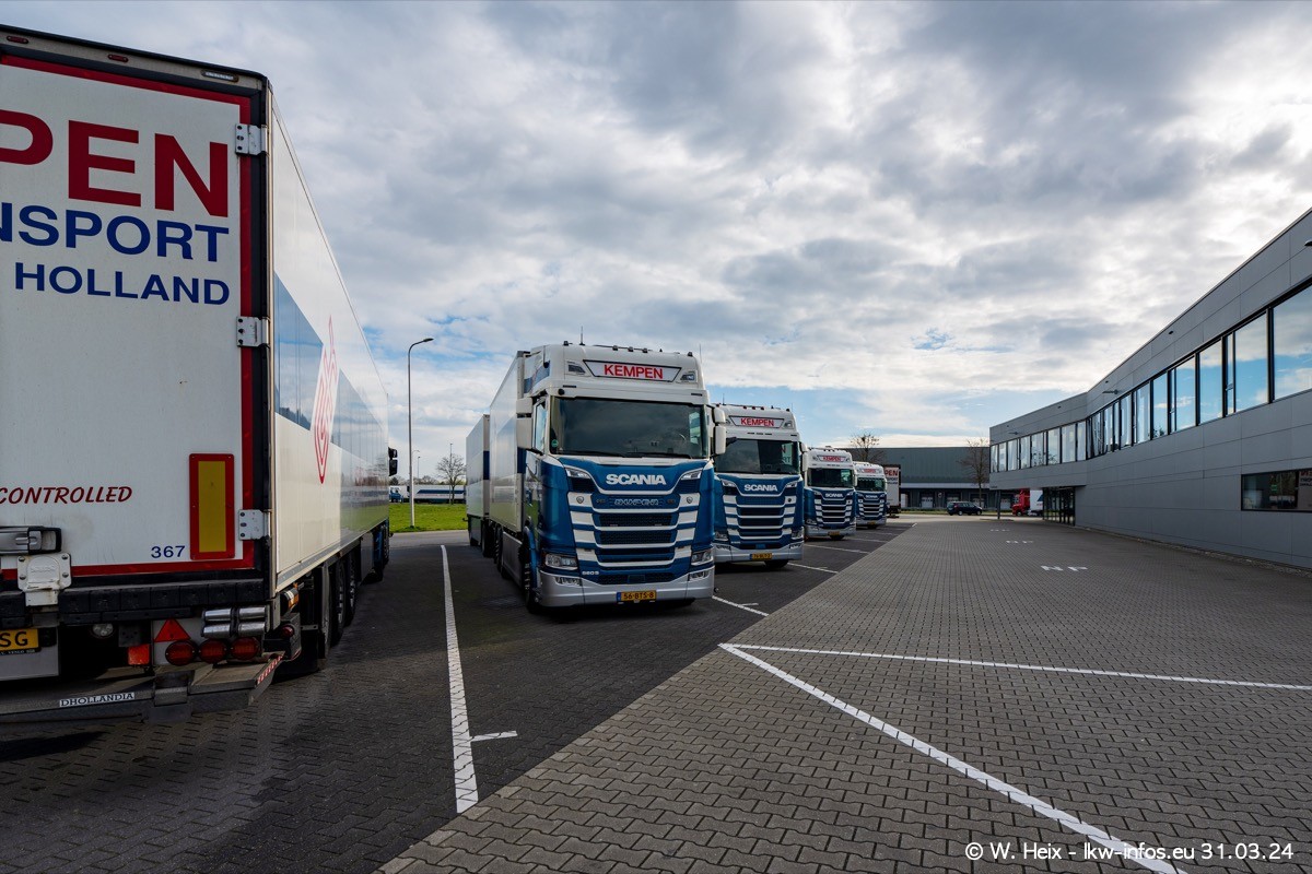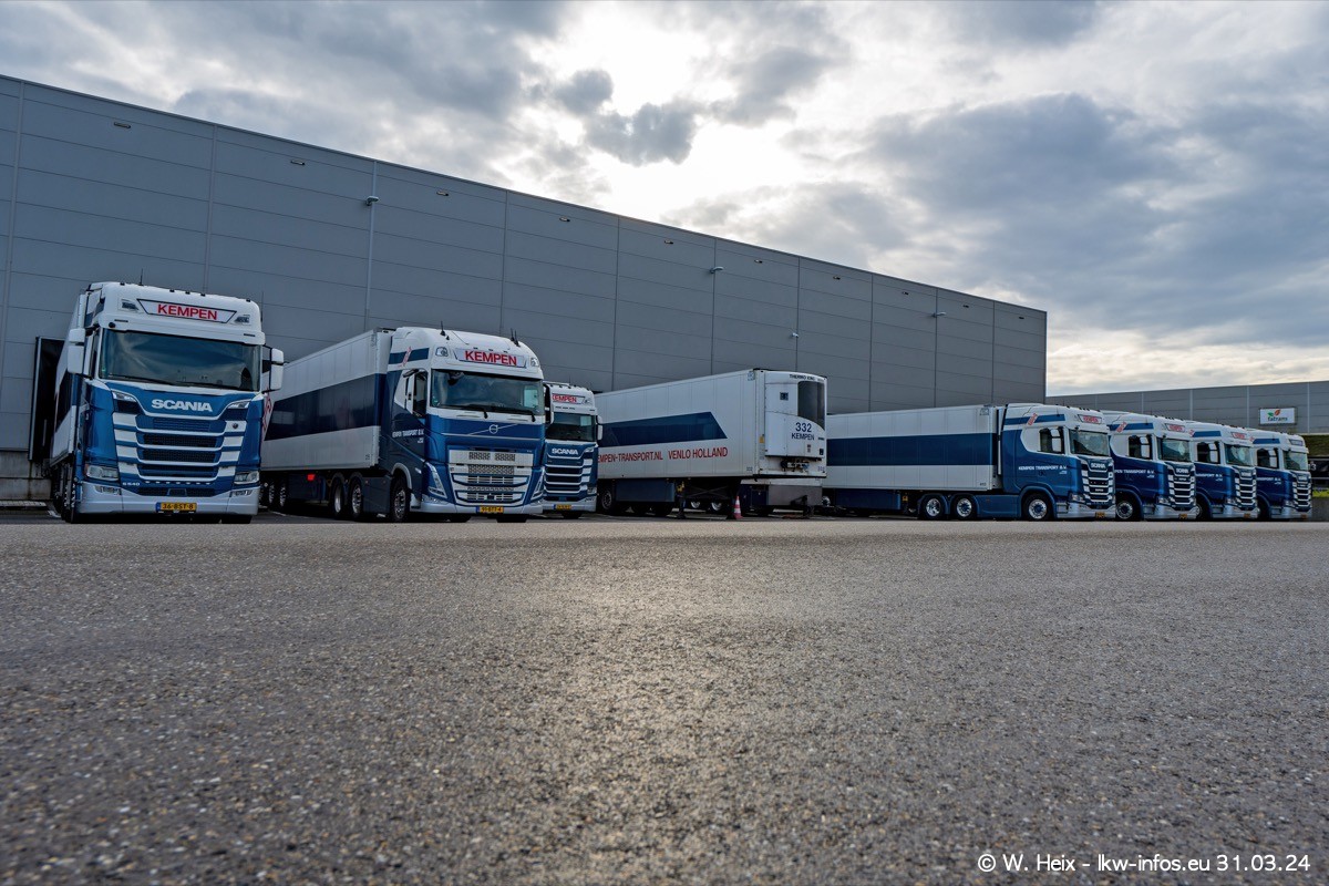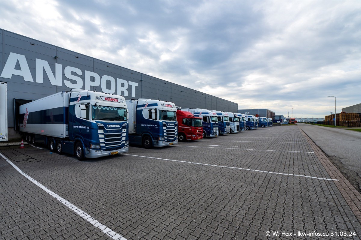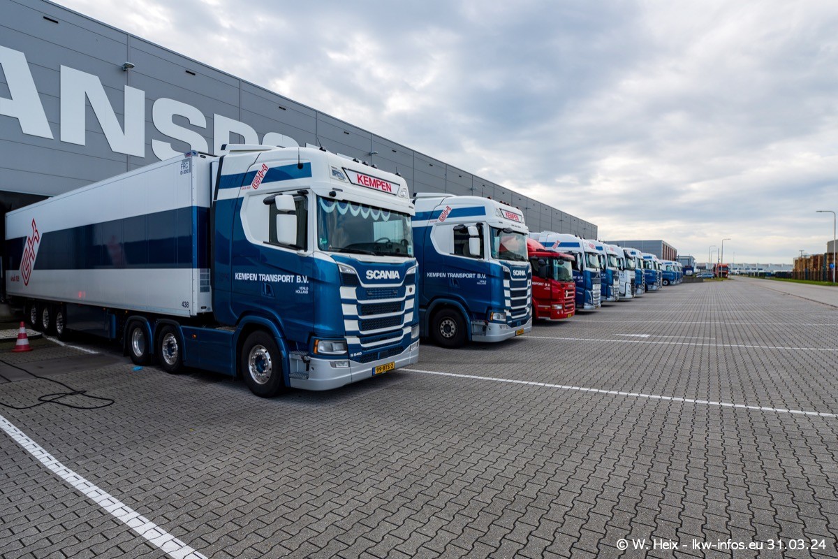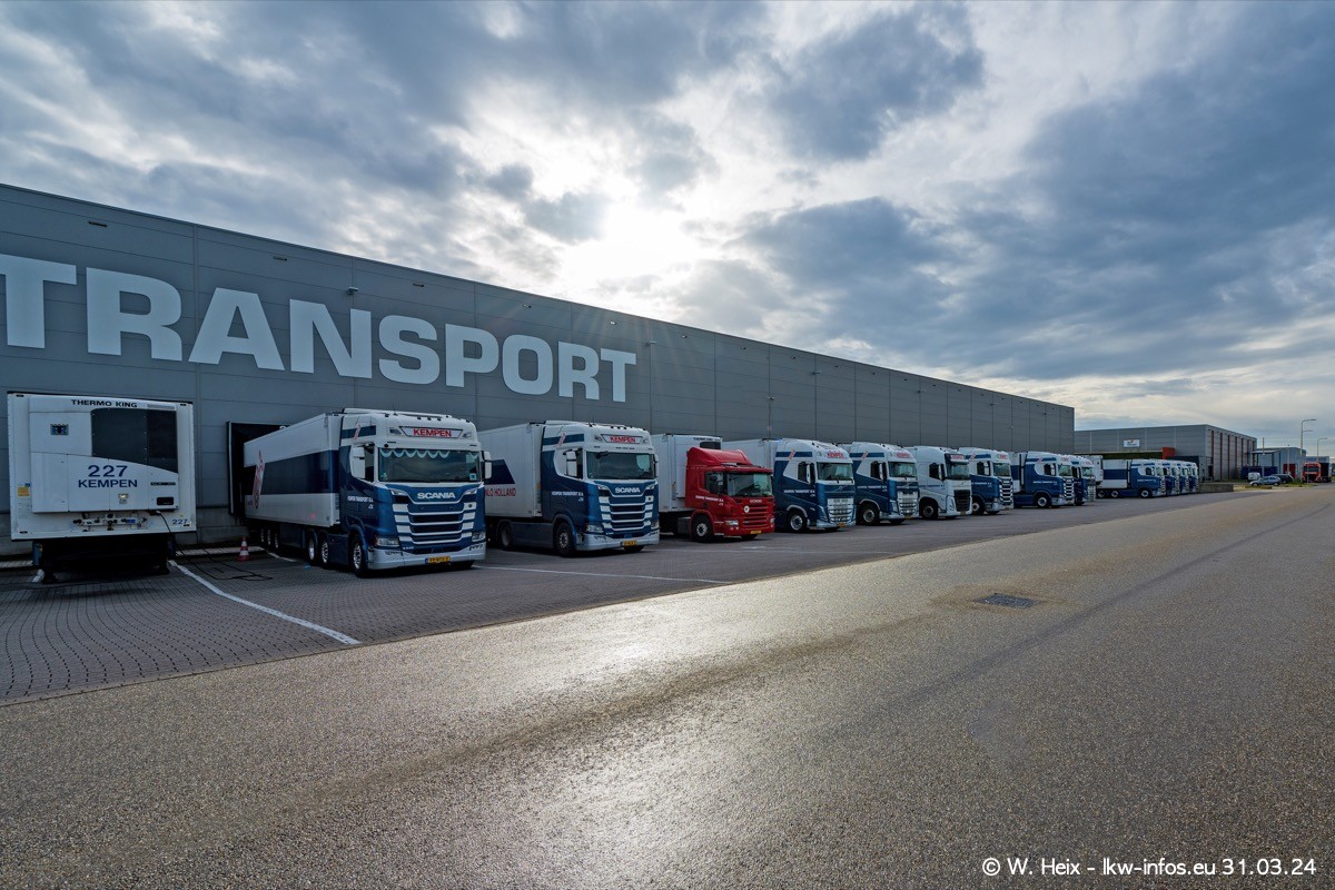 In diesem Jahr sind schon insgesamt mindestens 10 neue LKW in den Fuhrpark gekommen. Alle neuen LKW sind seit 2024 daran zu erkennen, dass aon der Fromt oben am Dach der Kempen-Schriftzug jetzt weiß ist in einem blauen Feld. Bisher war dieser immer rot auf weiß. Es waren so gut wie alle LKW zuzhause und standen auch wieder auf den Nachbargrundstücken. Diesmal konnte ich keinen SCANIA R Streamline und keinen DAF XF mehr sehen bis auf den neuen blauen DAF XG+ natürlich. Vermutlich sind jetzt alle alten SCANIA und DAF ersetzt durch VOLVO FH 5 und SCANIA R/S NextGen. Es sind natürlich auch wieder Bilder von den Chatern (Subunternehmern) in den Galerien enthalten. Auch hier tut sich immer wieder mal was.