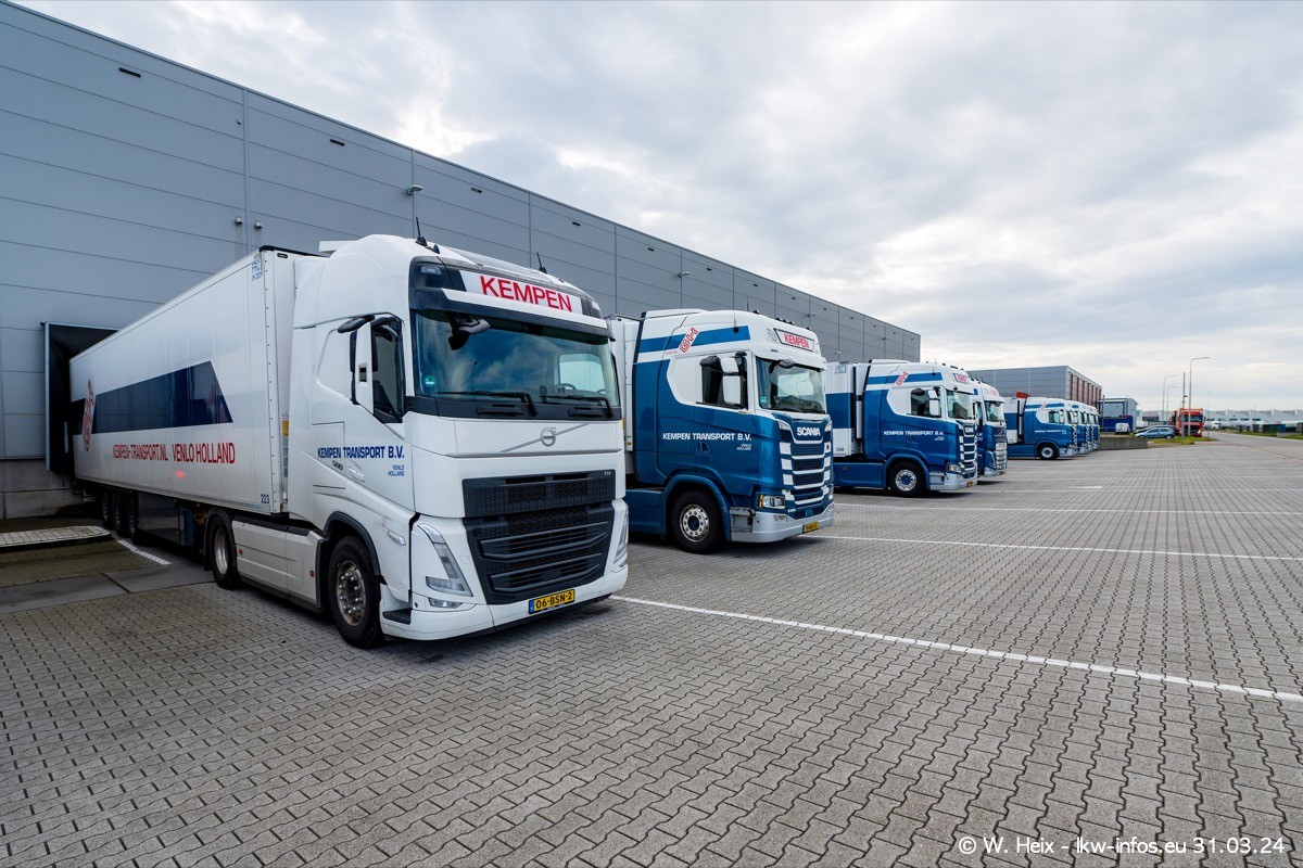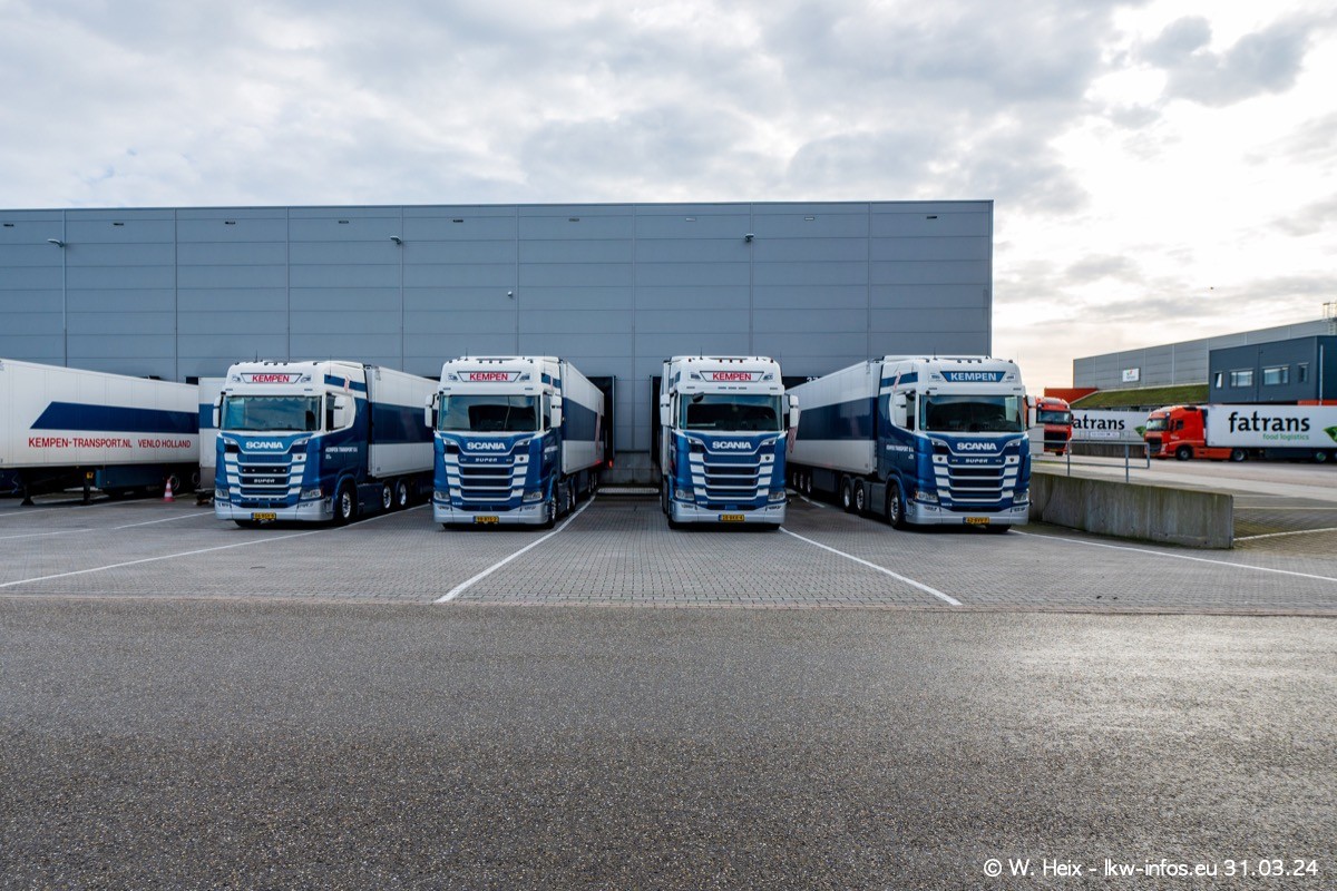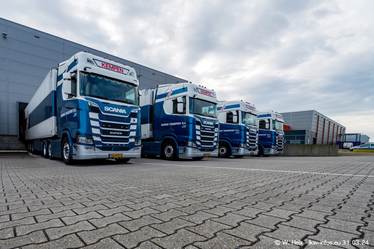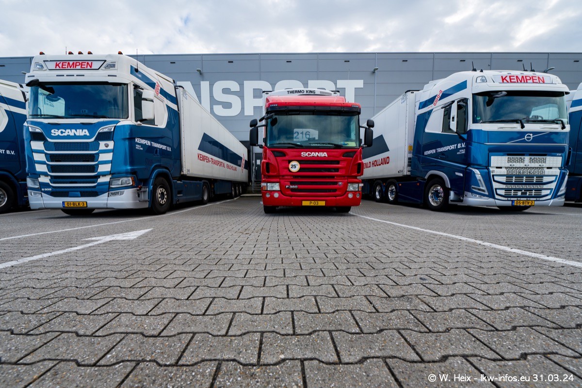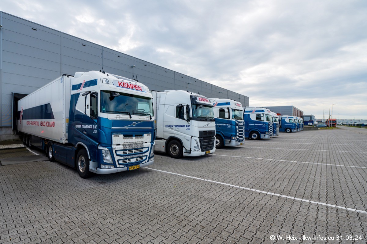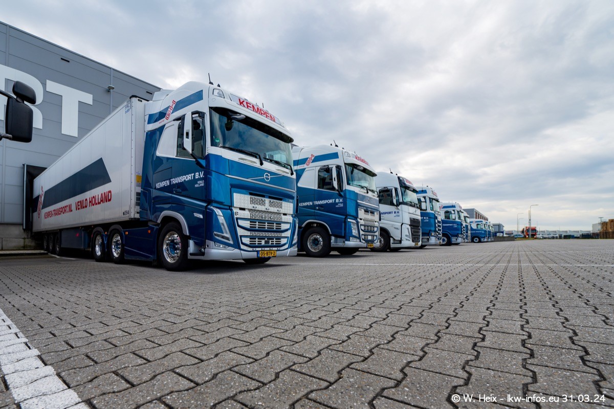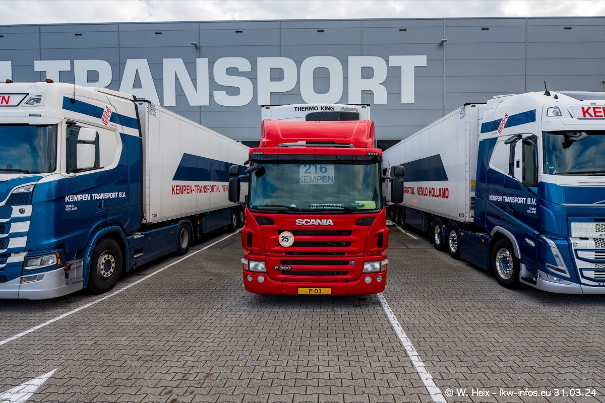 In diesem Jahr sind schon insgesamt mindestens 10 neue LKW in den Fuhrpark gekommen. Alle neuen LKW sind seit 2024 daran zu erkennen, dass aon der Fromt oben am Dach der Kempen-Schriftzug jetzt weiß ist in einem blauen Feld. Bisher war dieser immer rot auf weiß. Es waren so gut wie alle LKW zuzhause und standen auch wieder auf den Nachbargrundstücken. Diesmal konnte ich keinen SCANIA R Streamline und keinen DAF XF mehr sehen bis auf den neuen blauen DAF XG+ natürlich. Vermutlich sind jetzt alle alten SCANIA und DAF ersetzt durch VOLVO FH 5 und SCANIA R/S NextGen. Es sind natürlich auch wieder Bilder von den Chatern (Subunternehmern) in den Galerien enthalten. Auch hier tut sich immer wieder mal was.